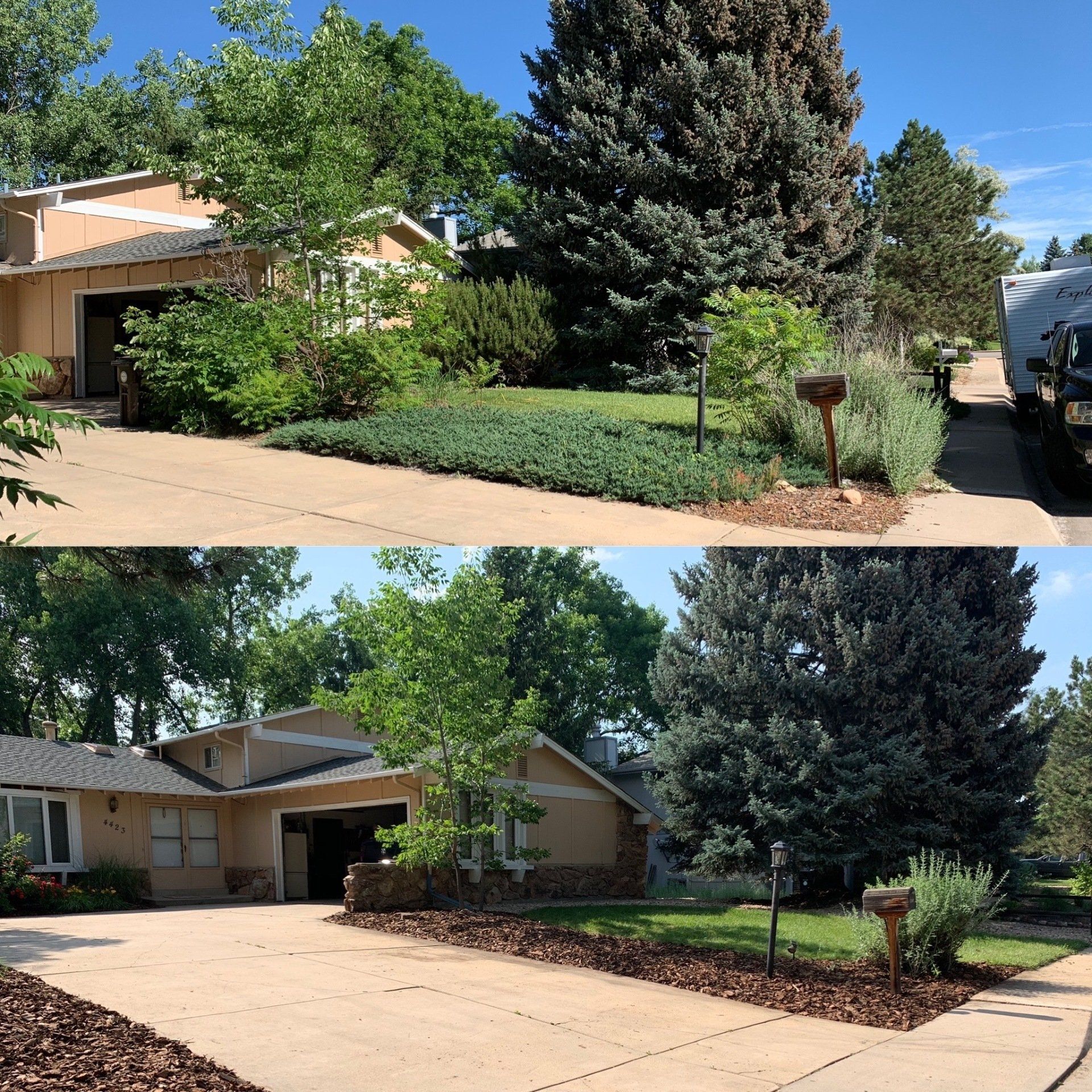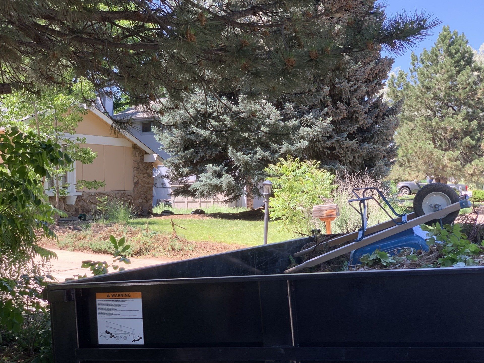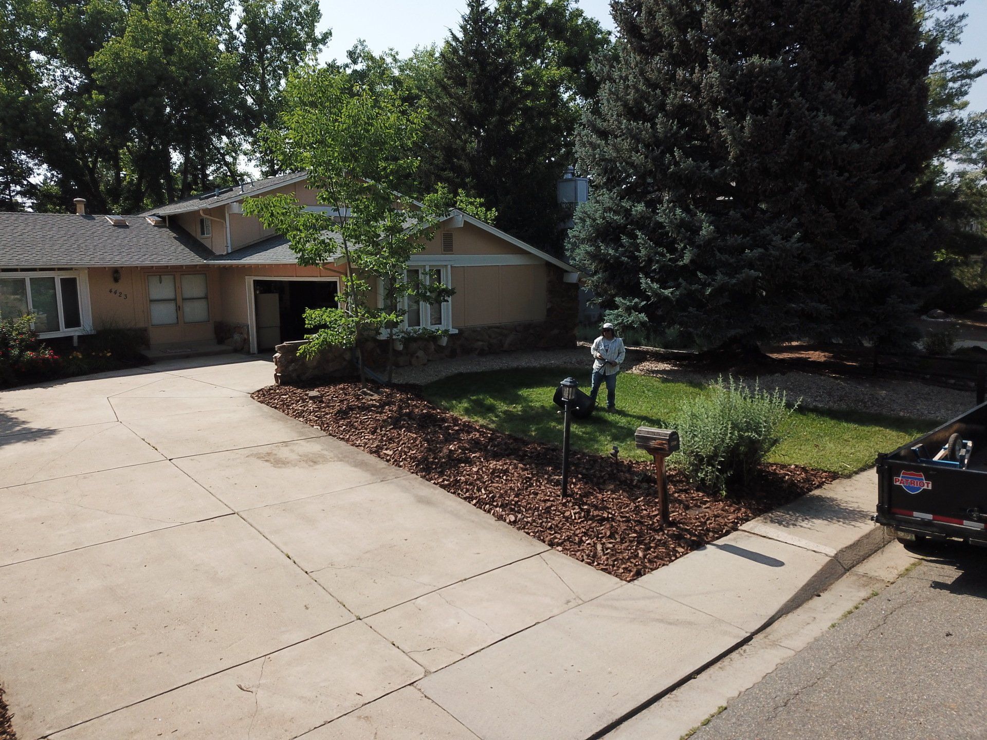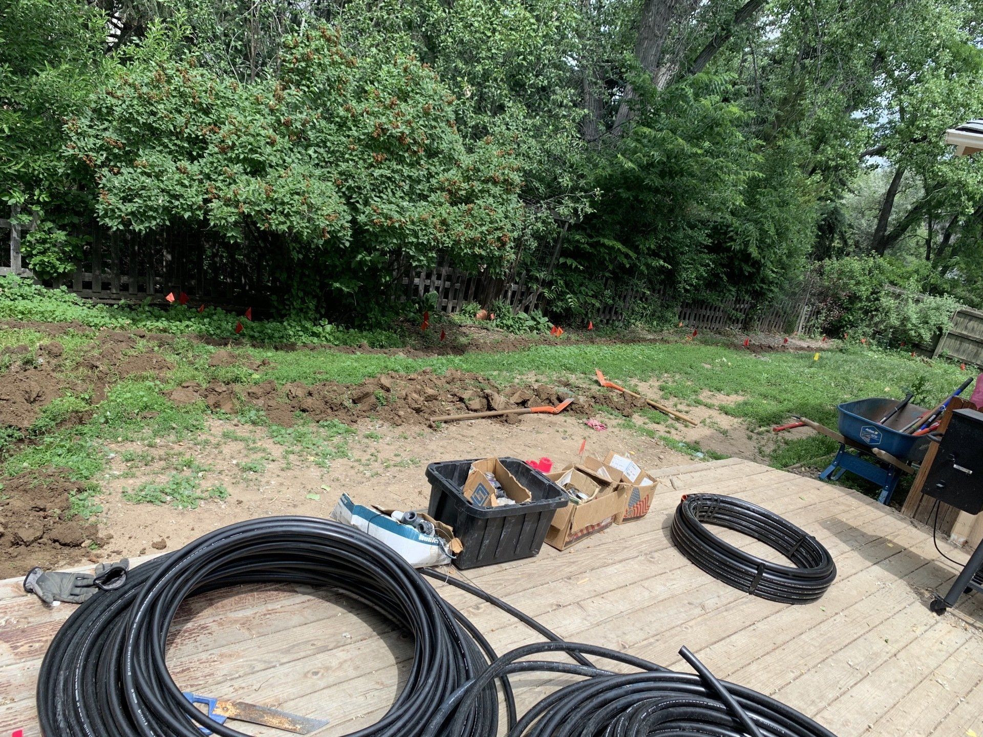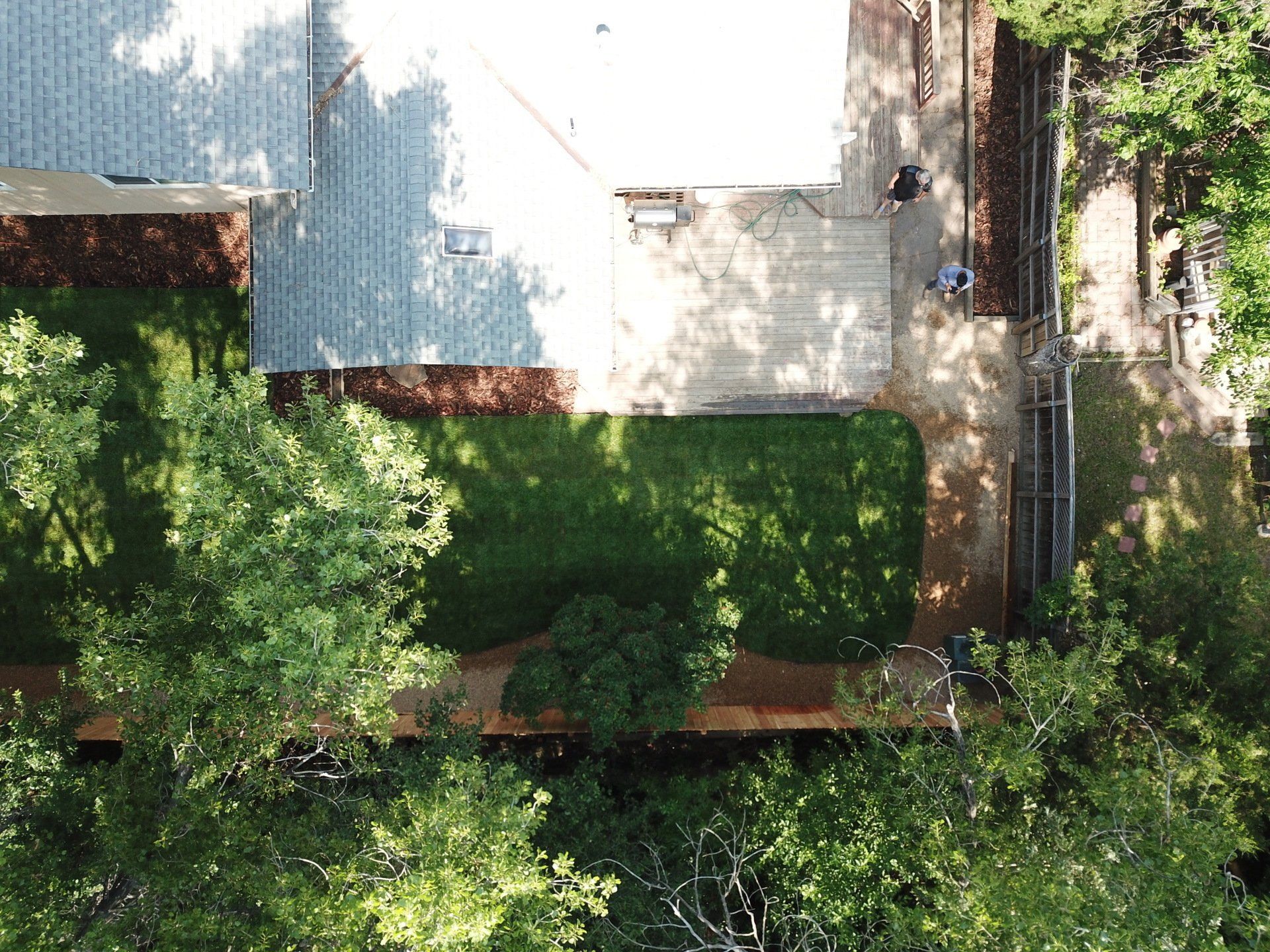 Backyard requiring upgrades due to pets and neglect. Quality cedar fence built with pea gravel, Kentucky bluegrass, and