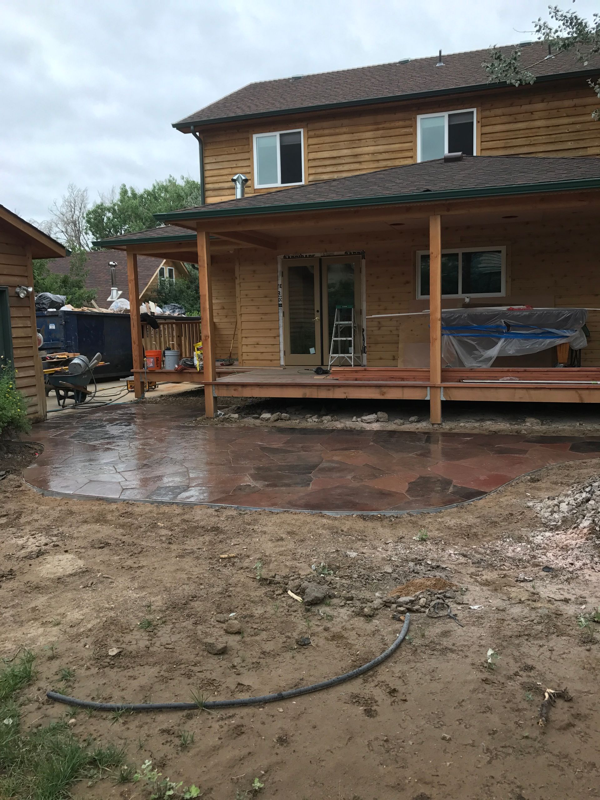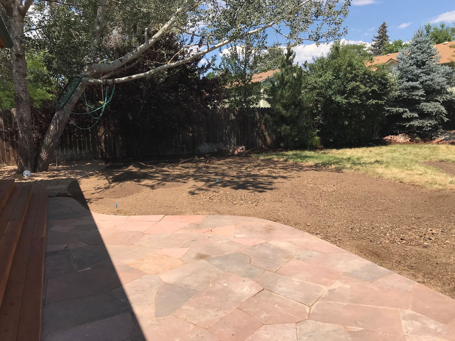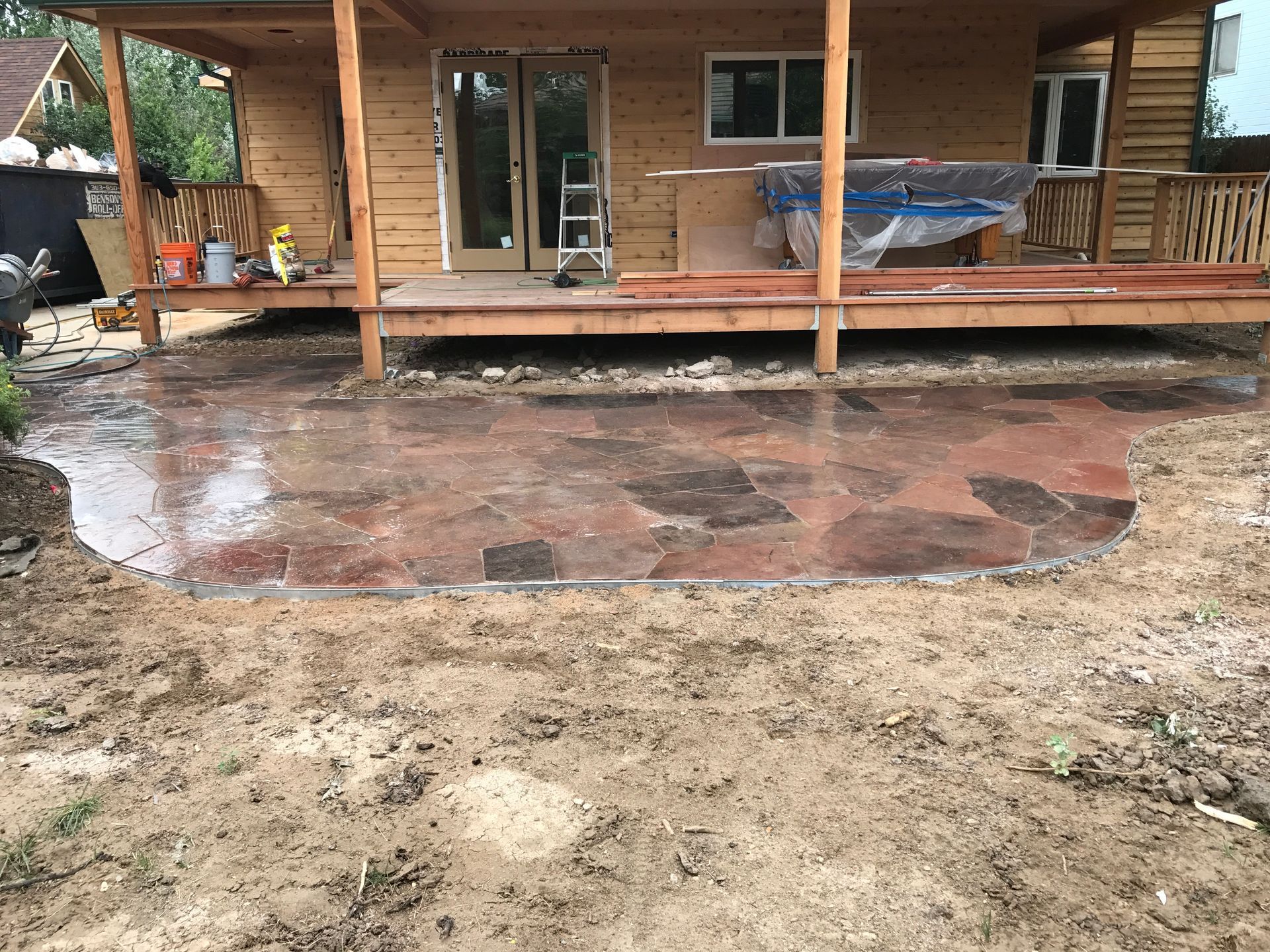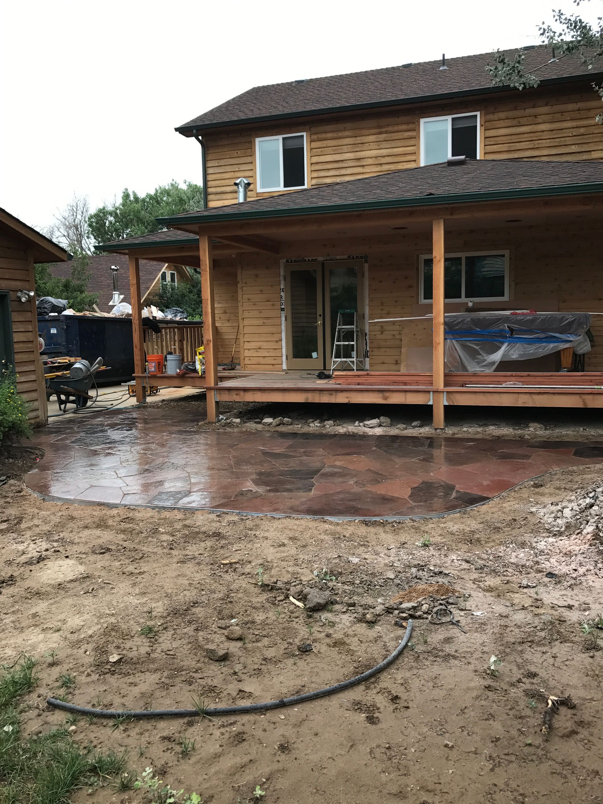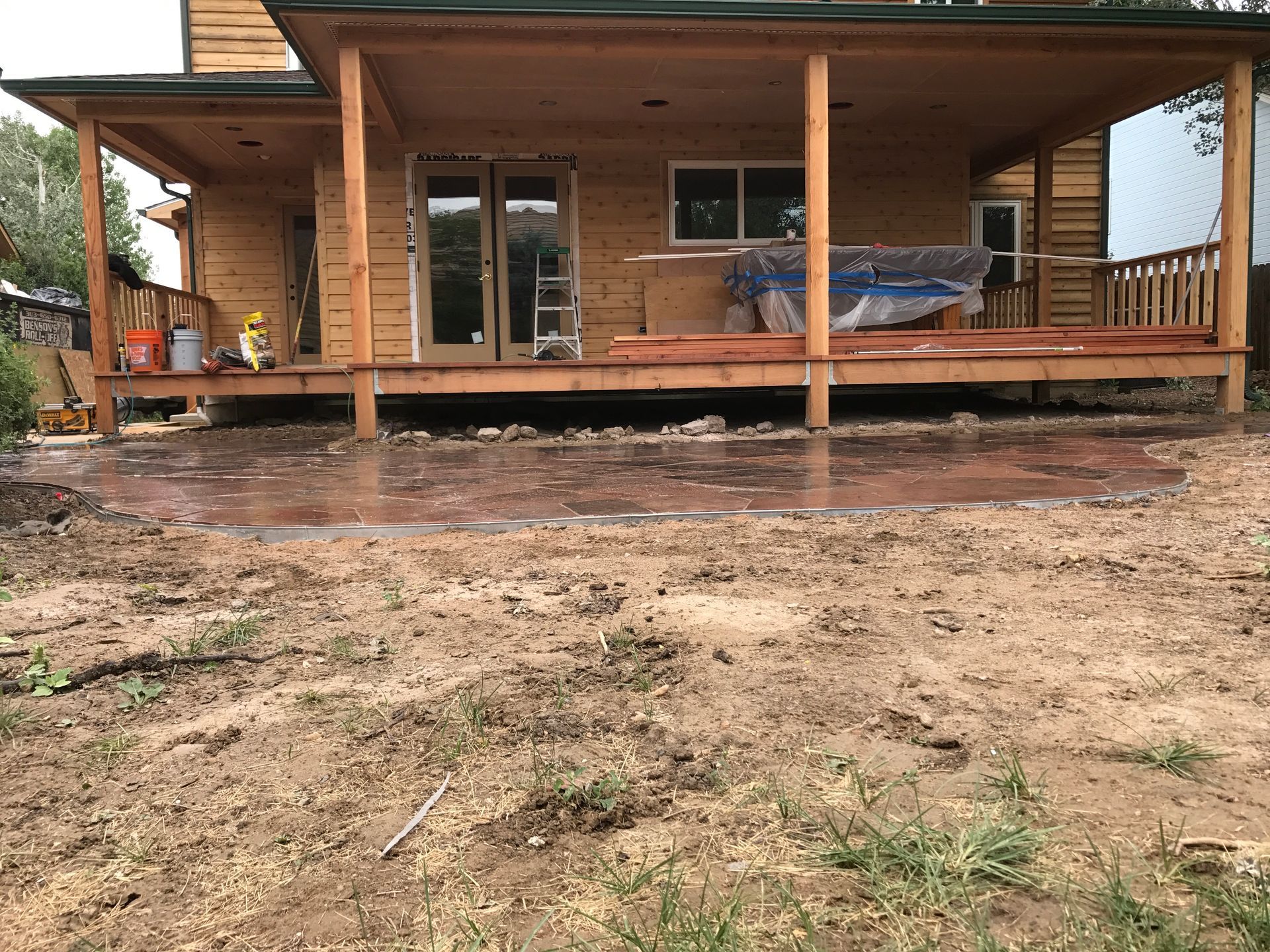 New Colorado red flagstone patio with drainage solutions. Lafayette, CO 2018