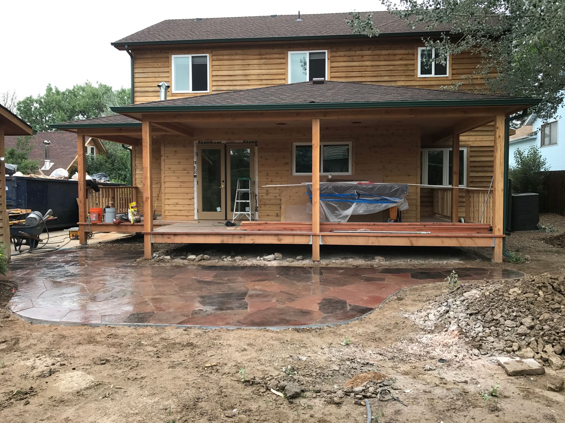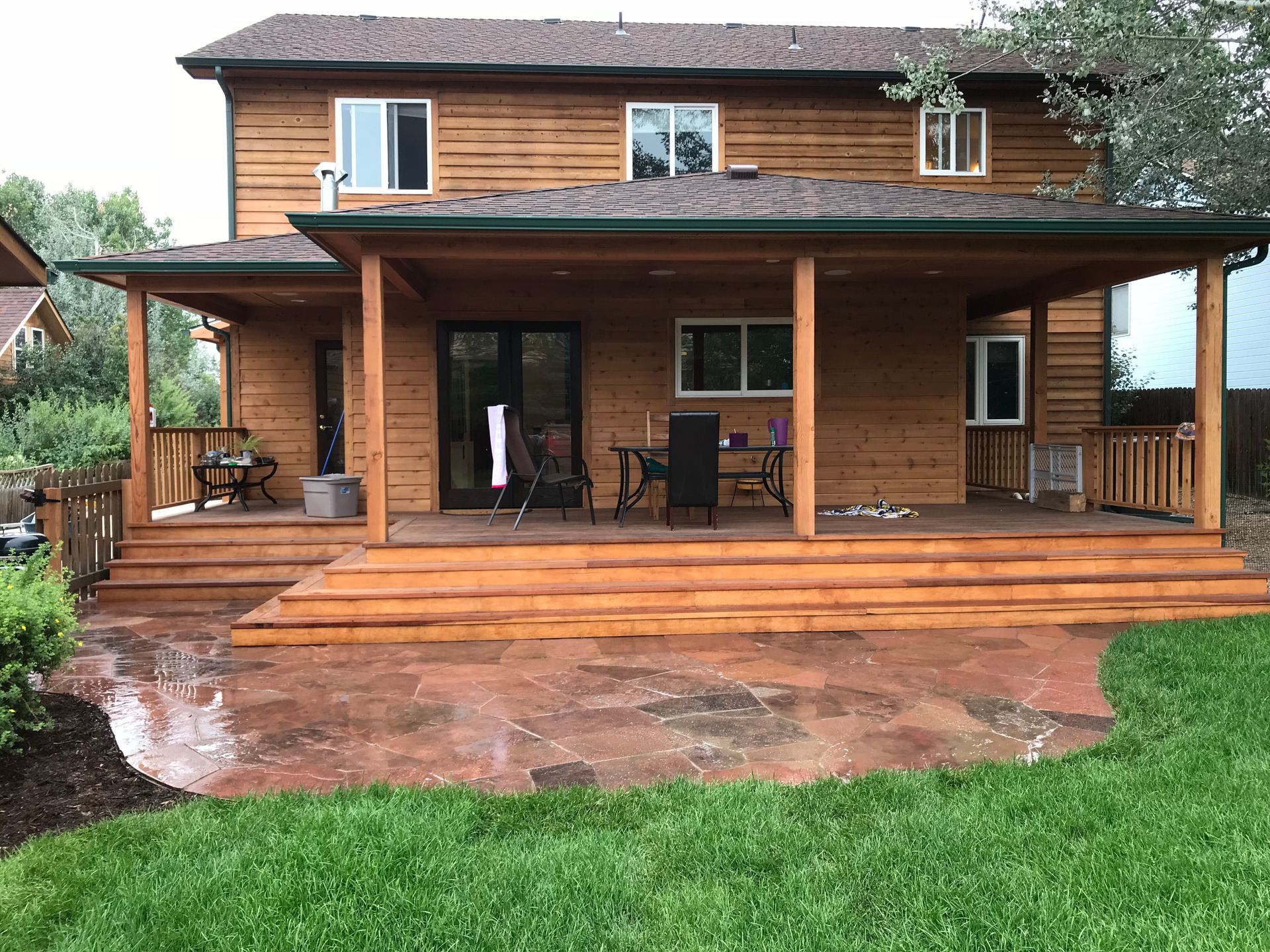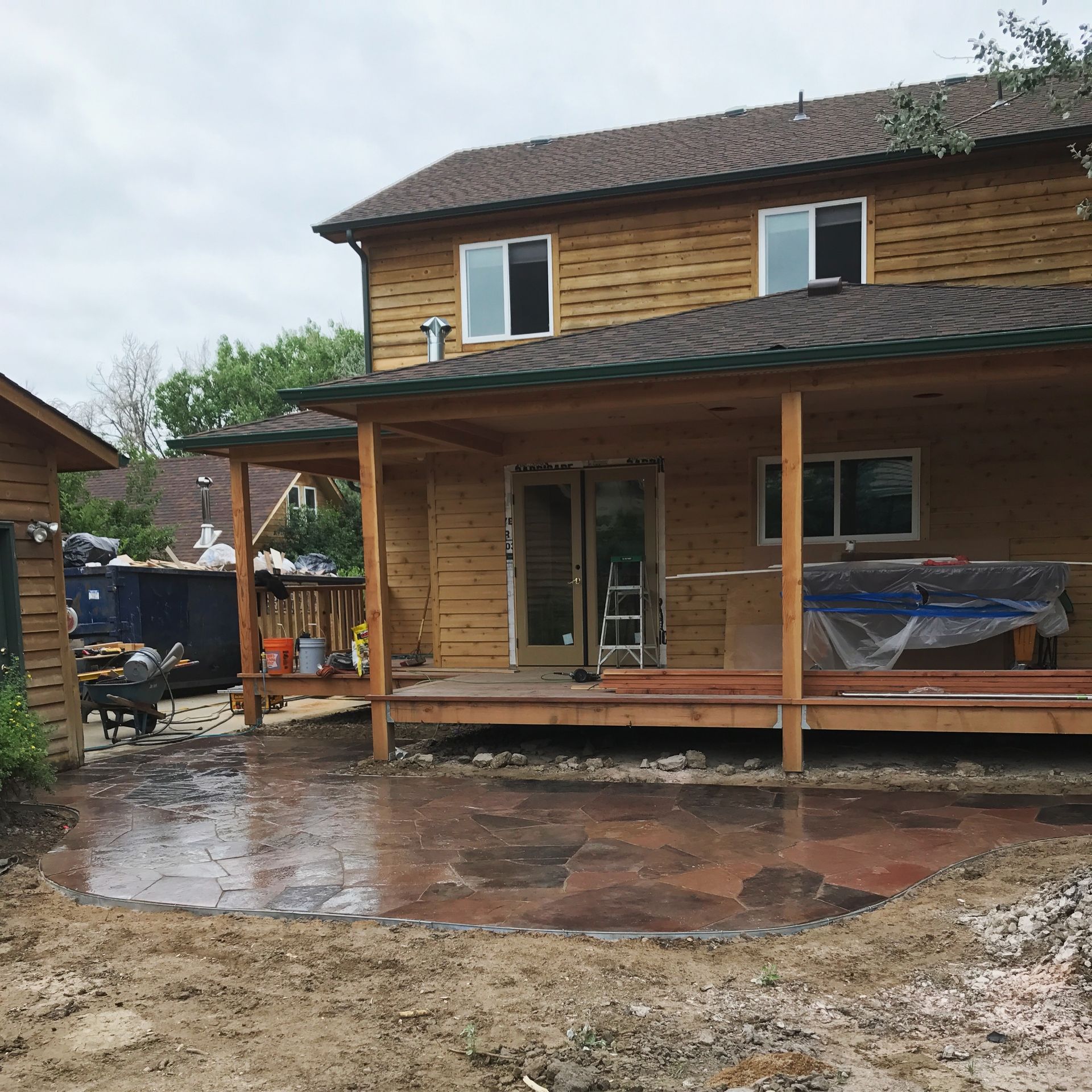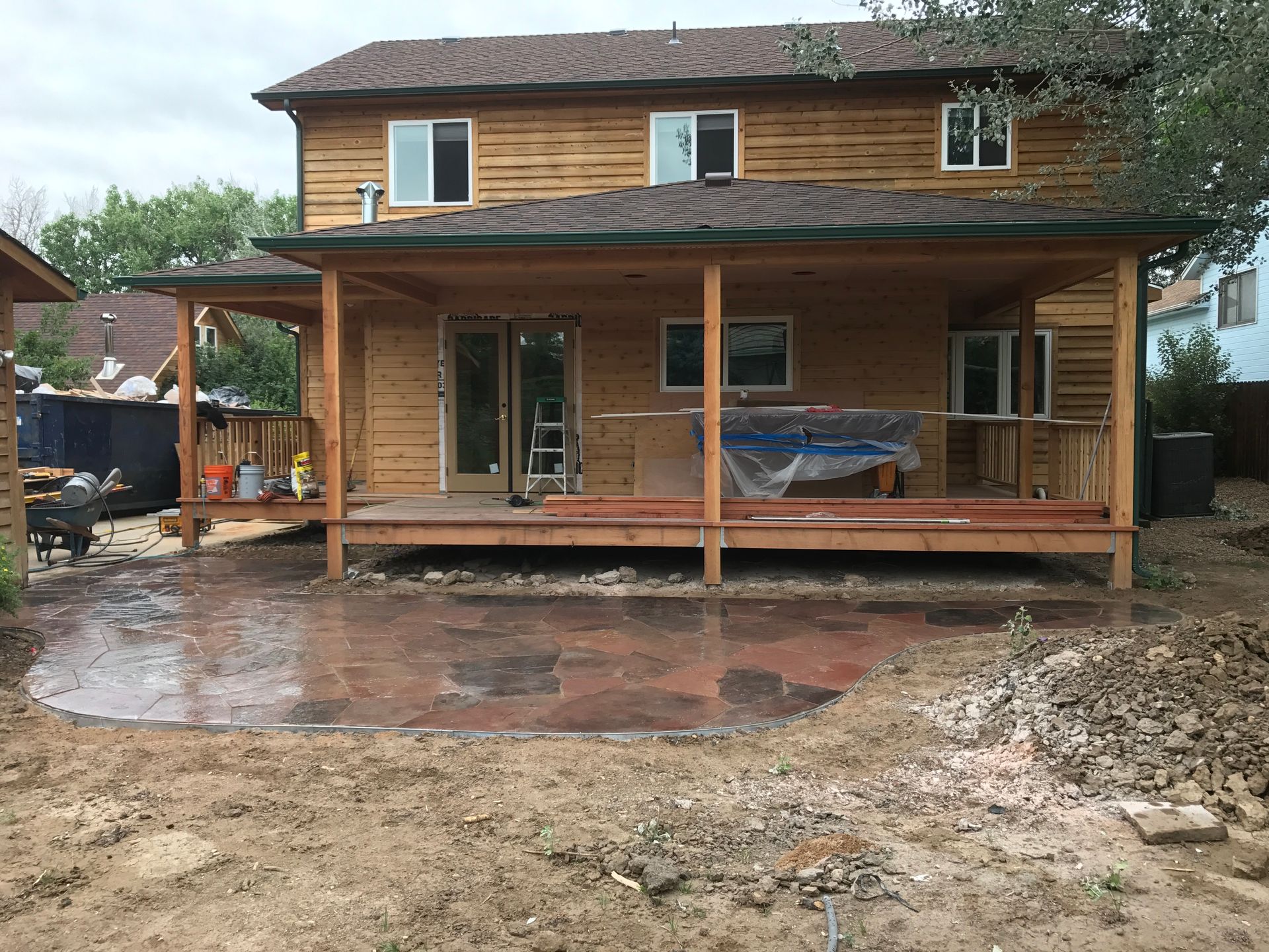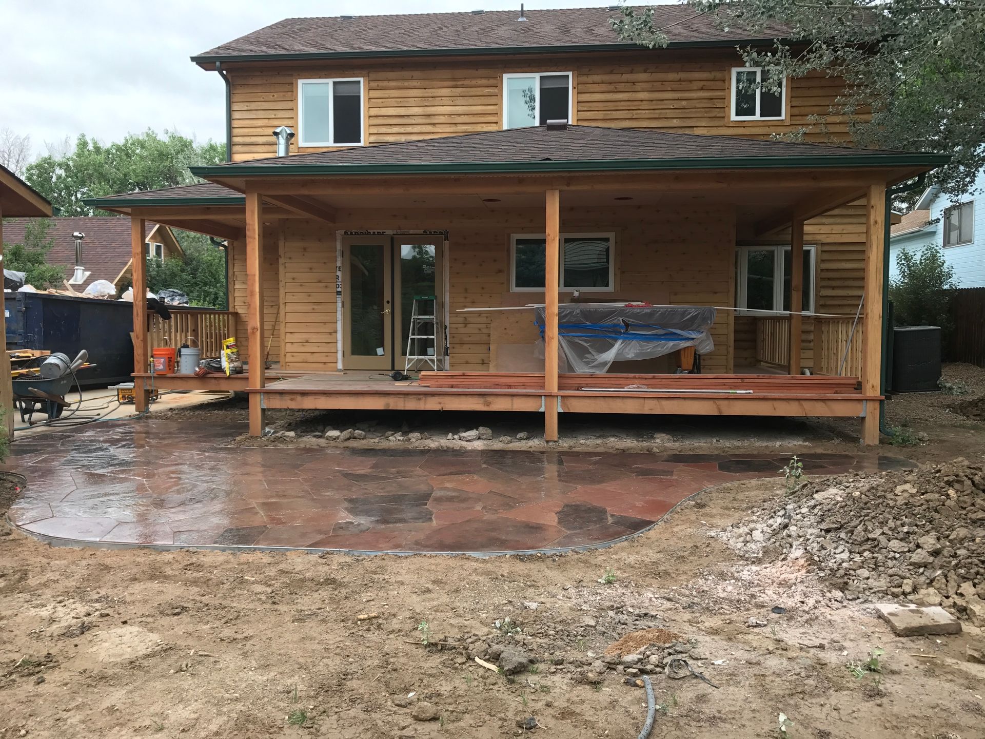 New Colorado red flagstone patio with drainage solutions. Lafayette, CO 2018