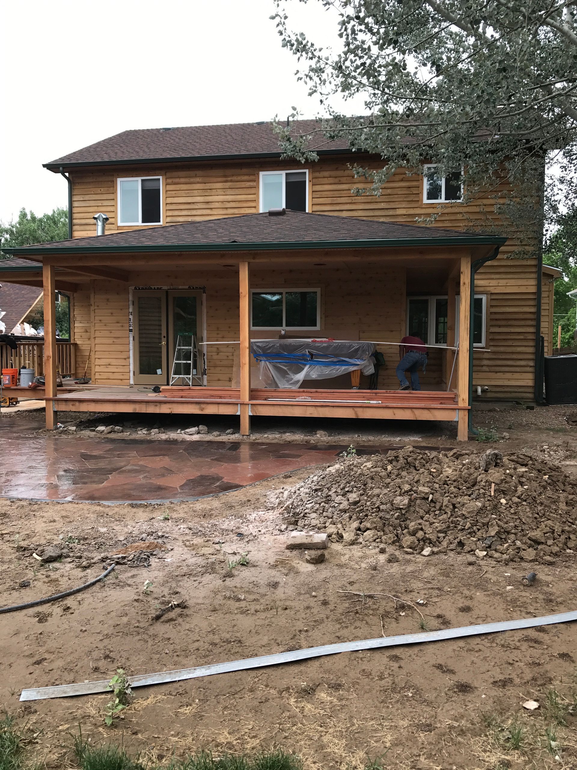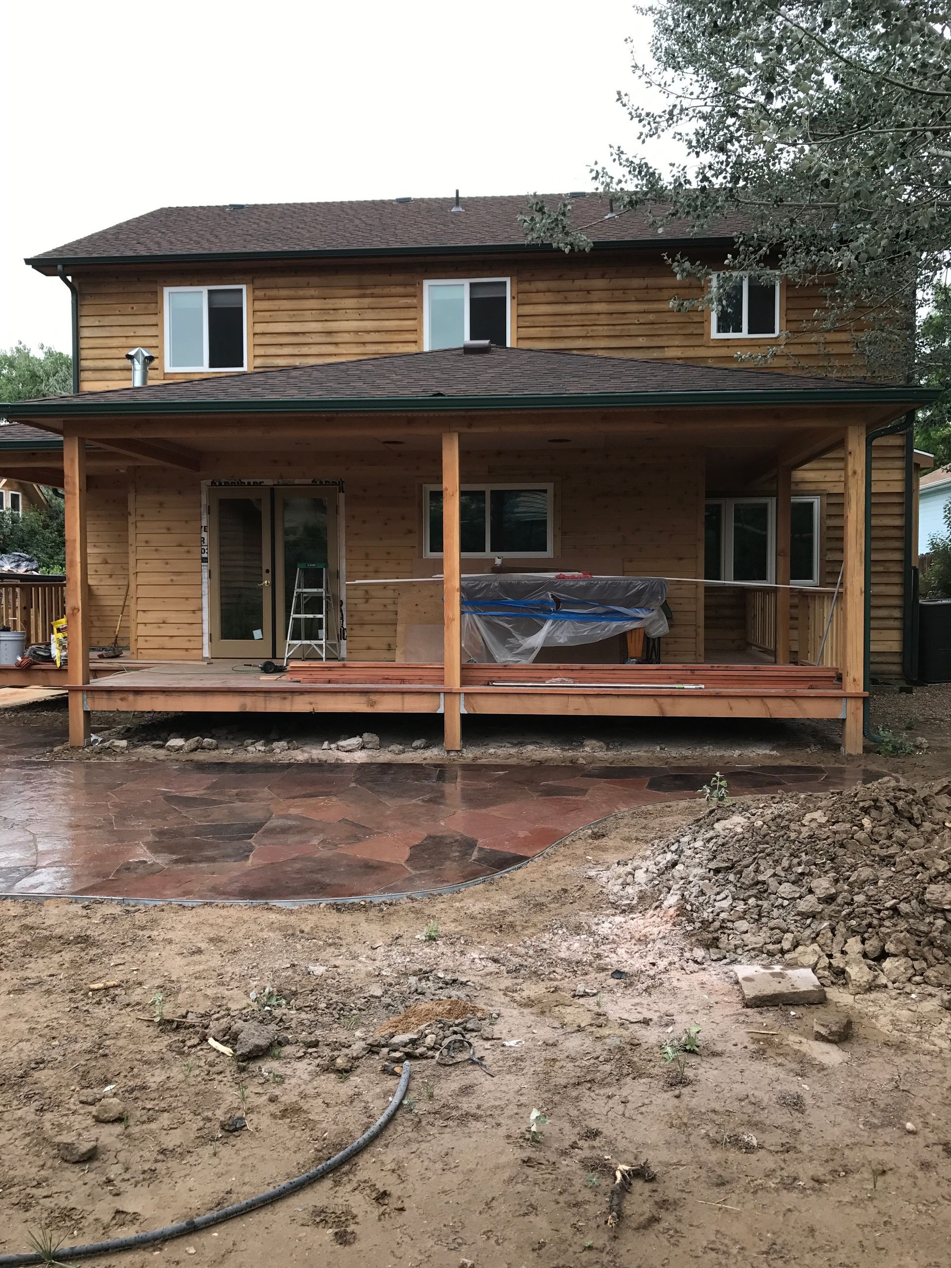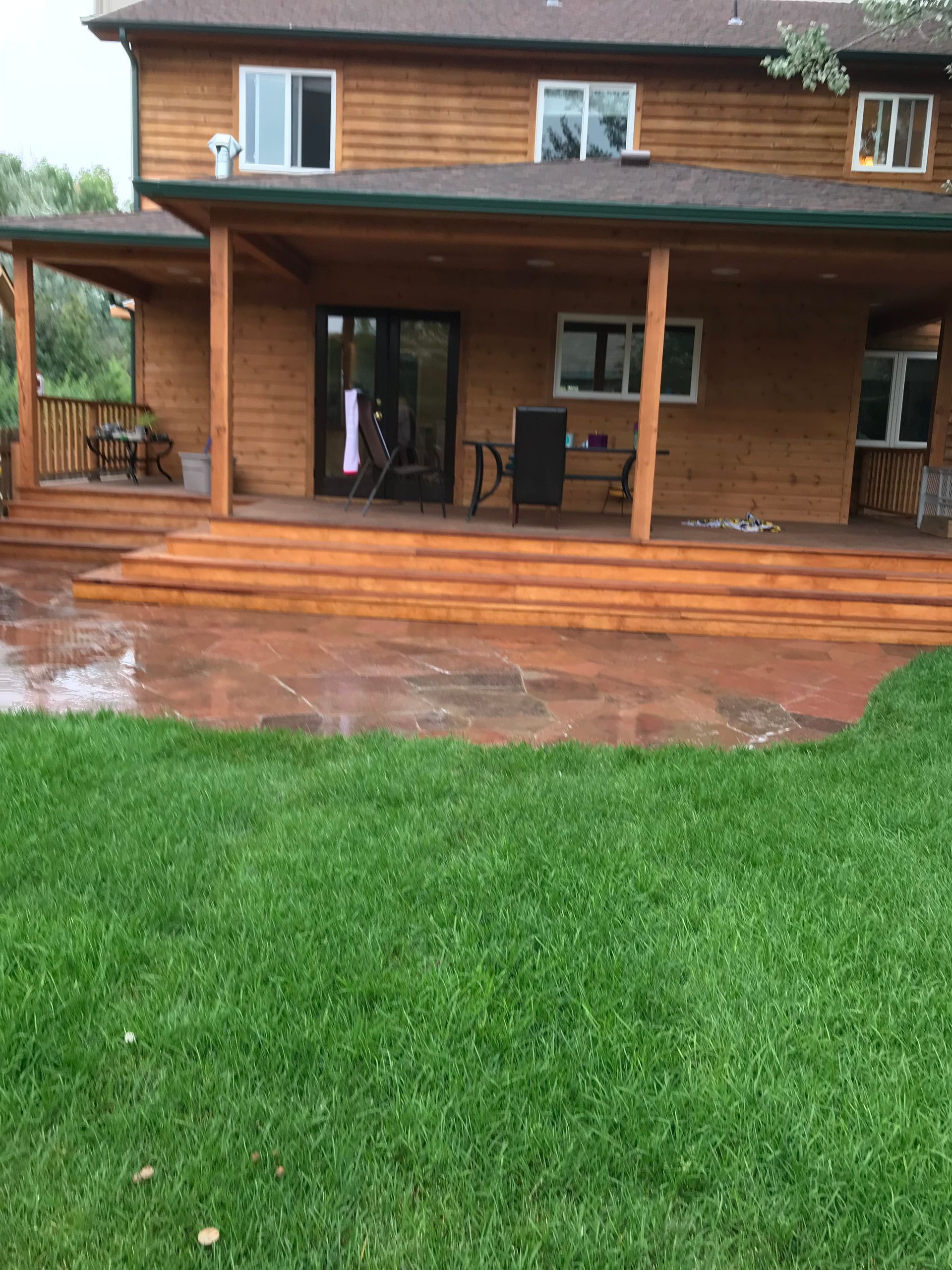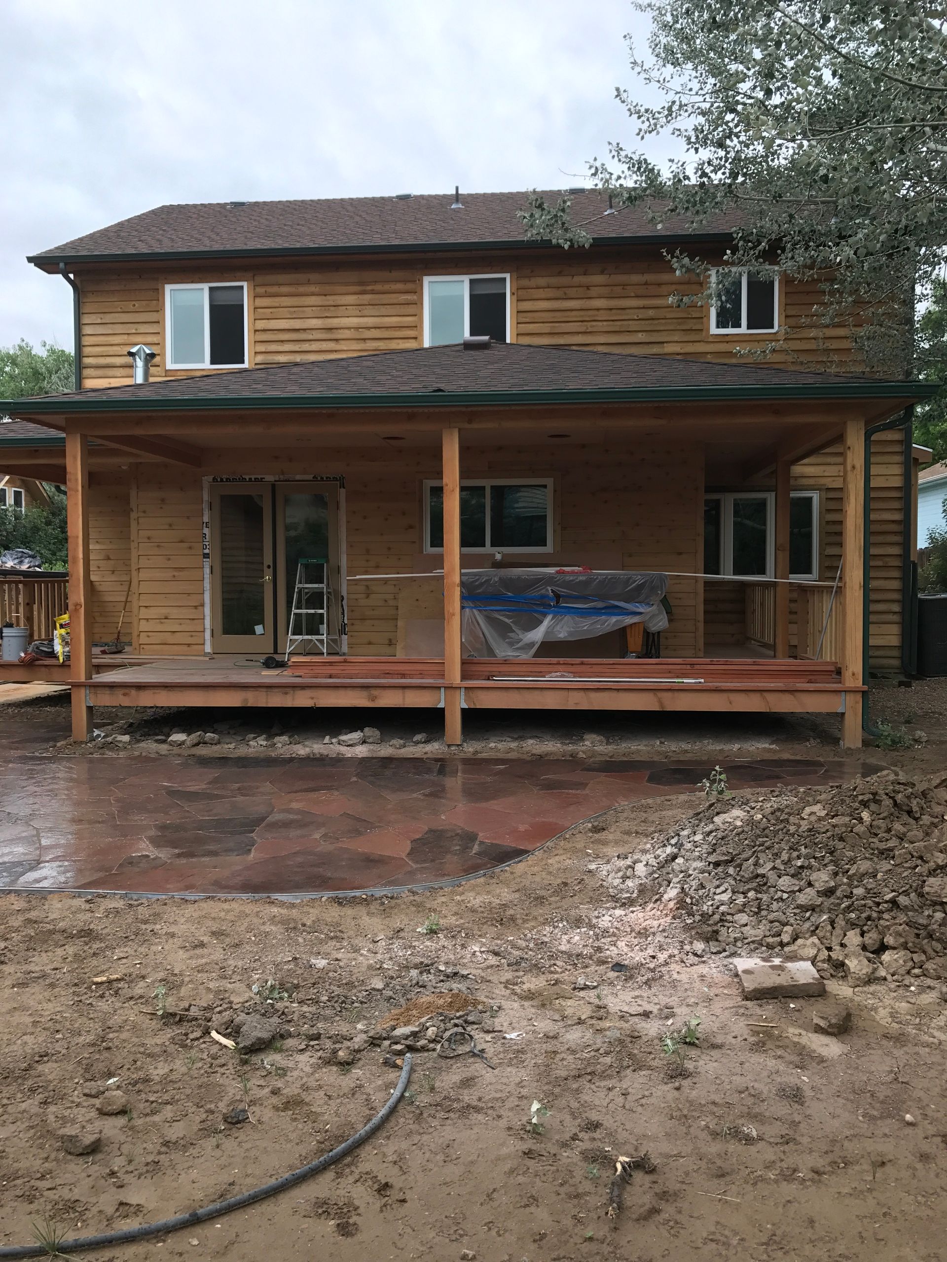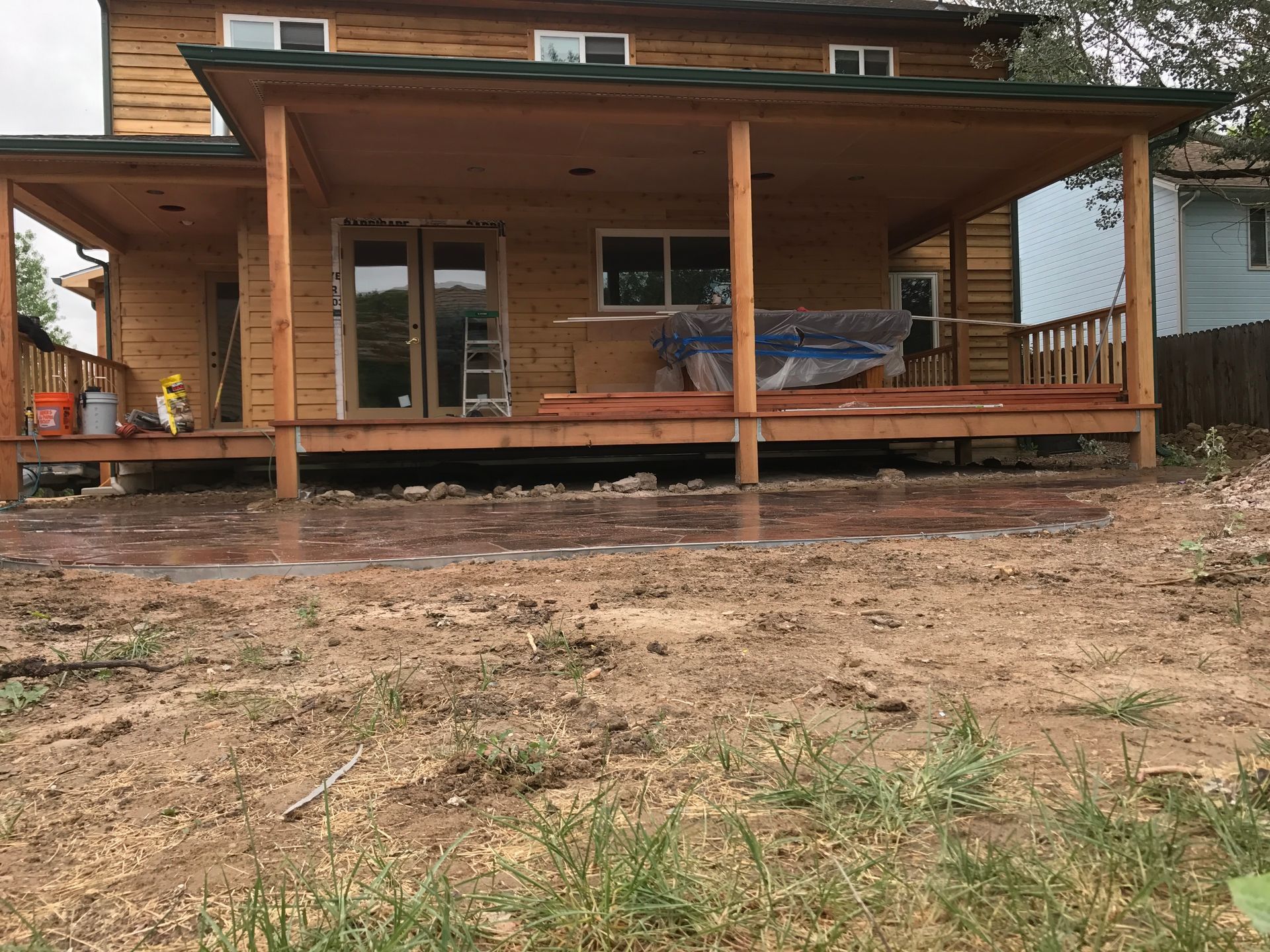 New Colorado red flagstone patio with drainage solutions. Lafayette, CO 2018