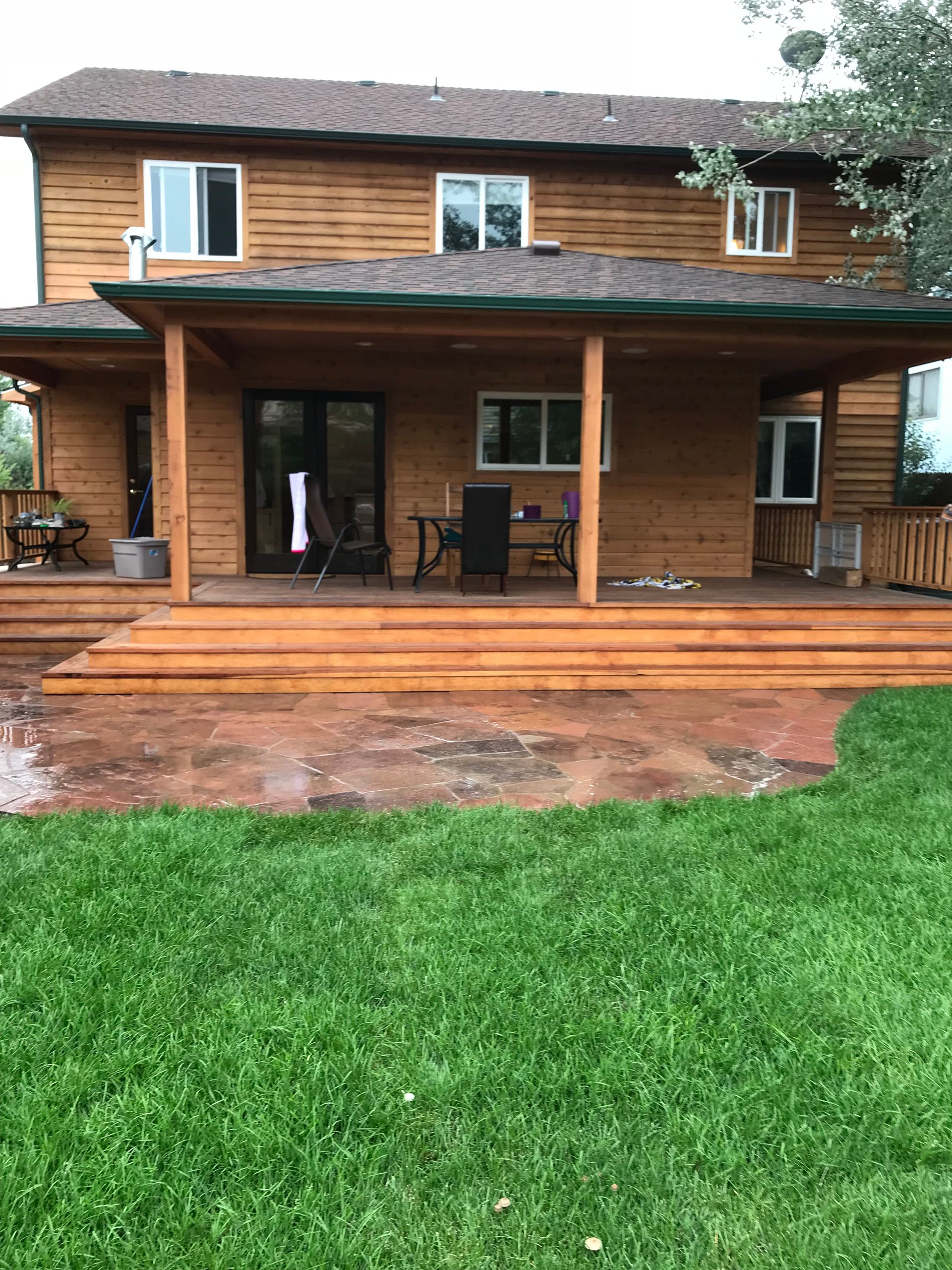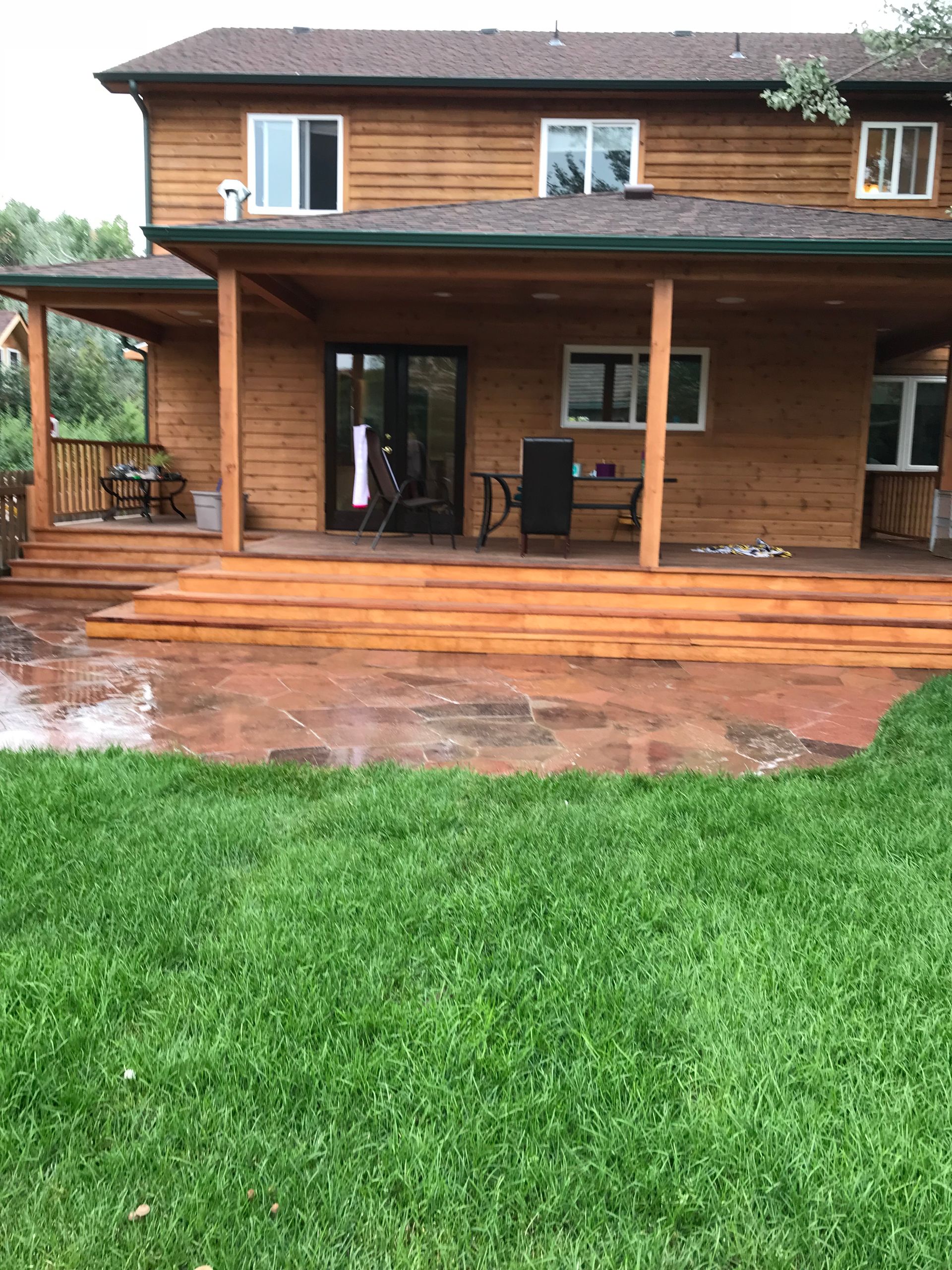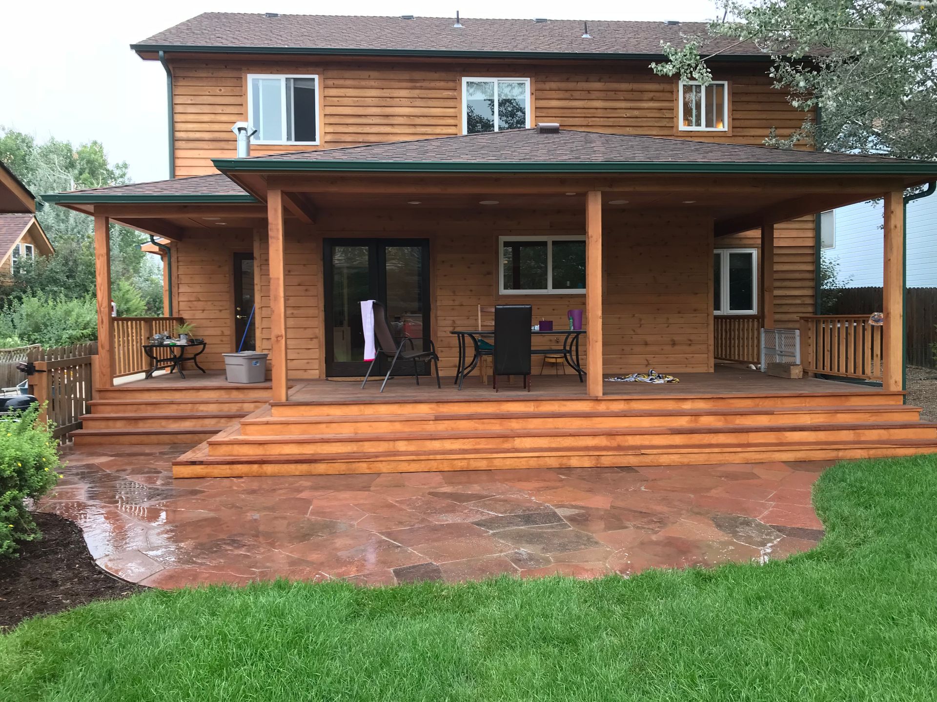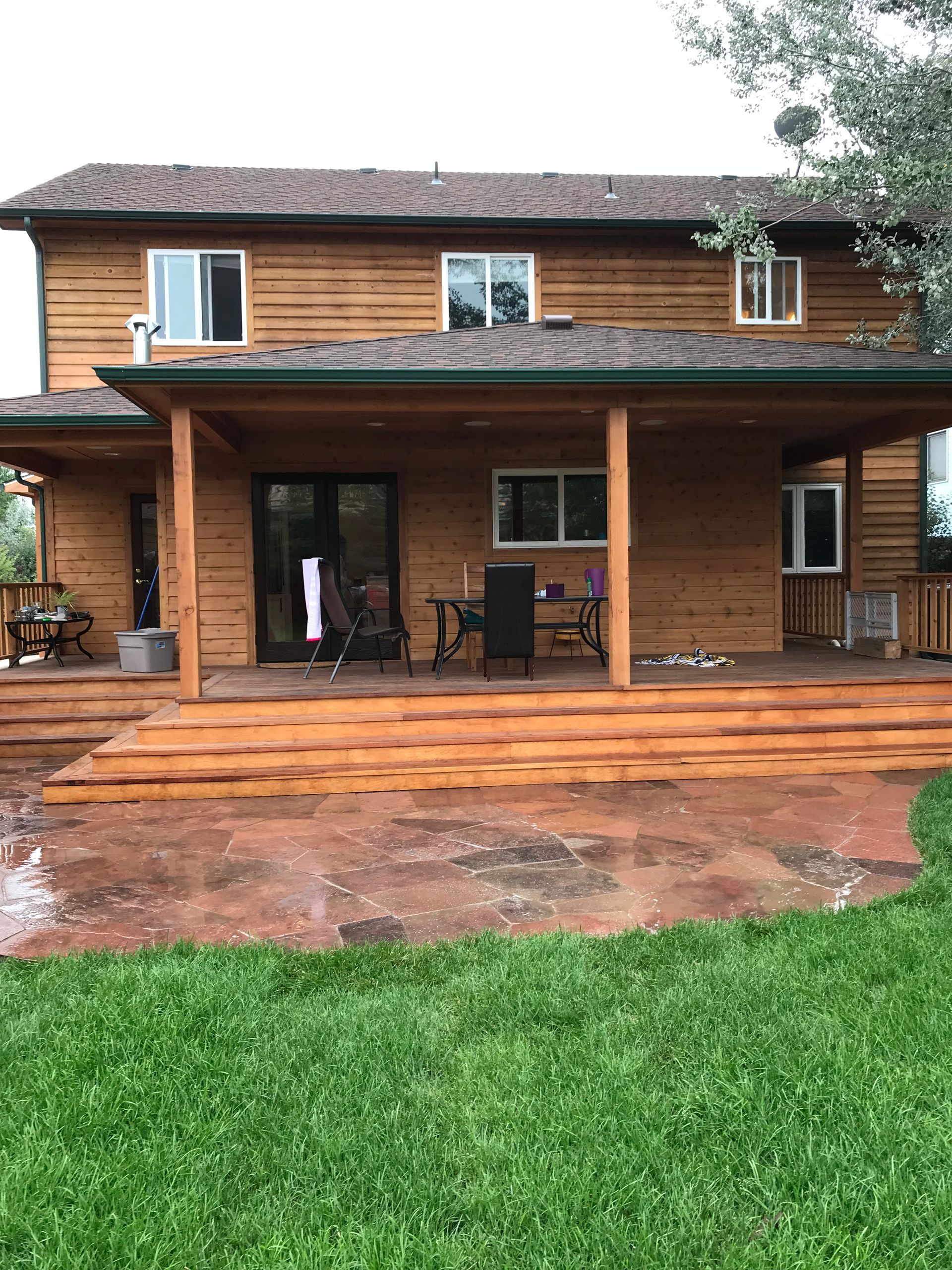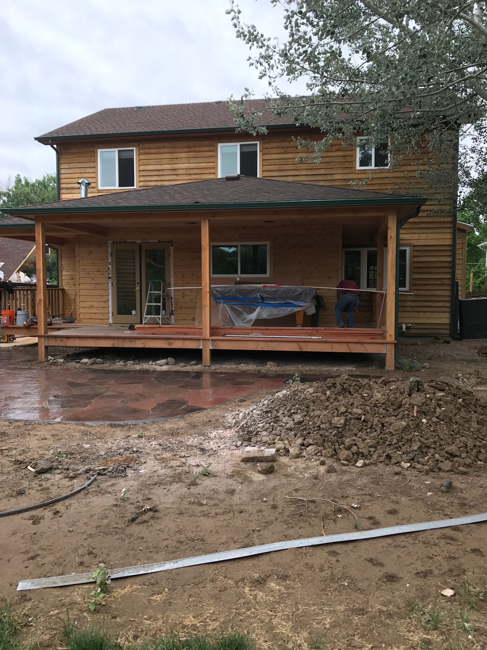 New Colorado red flagstone patio with drainage solutions. Lafayette, CO 2018