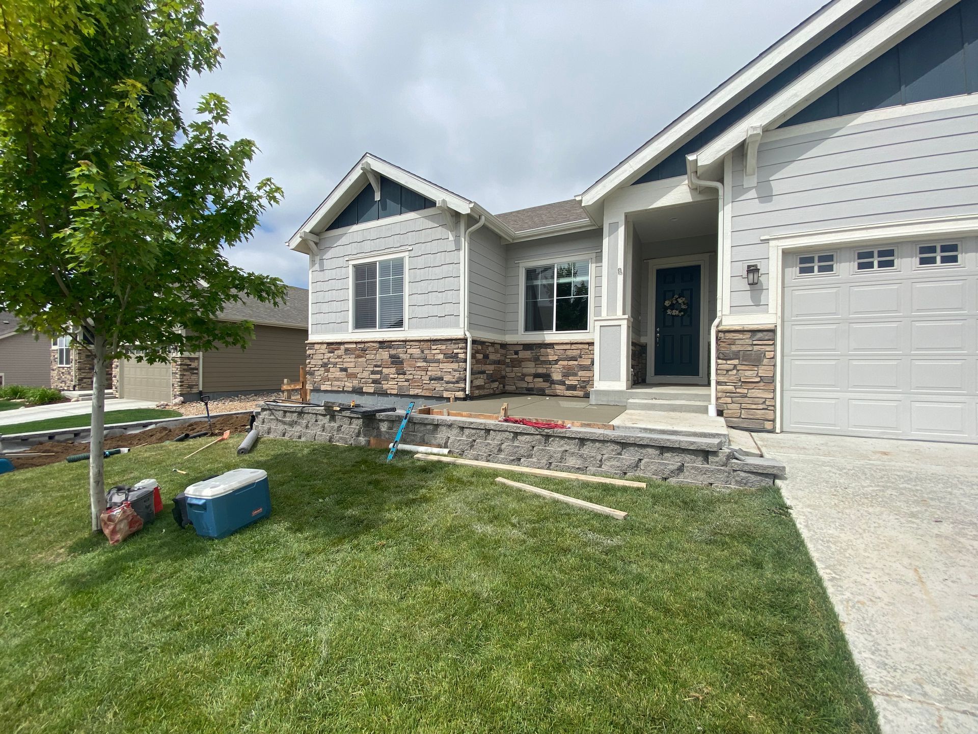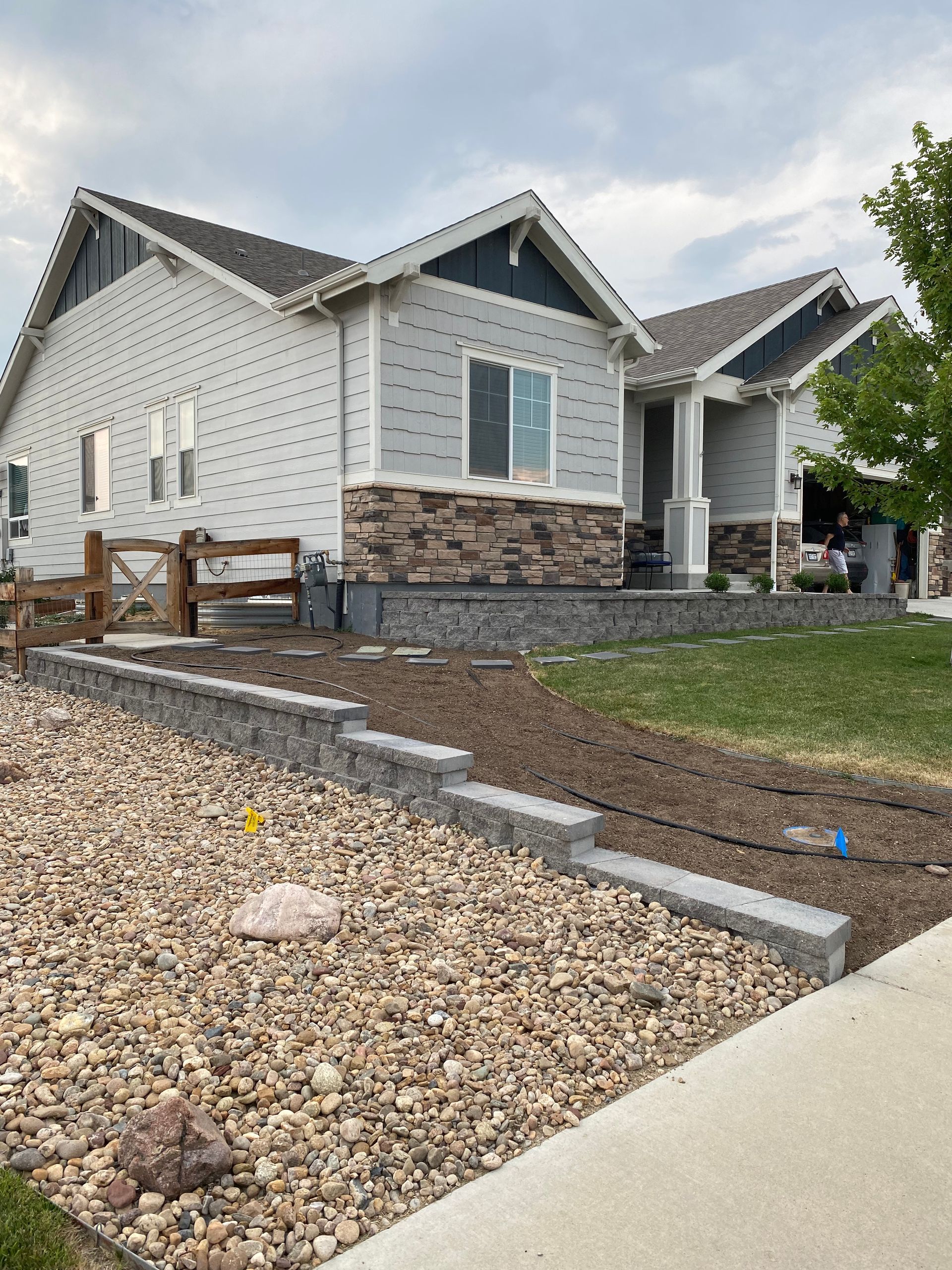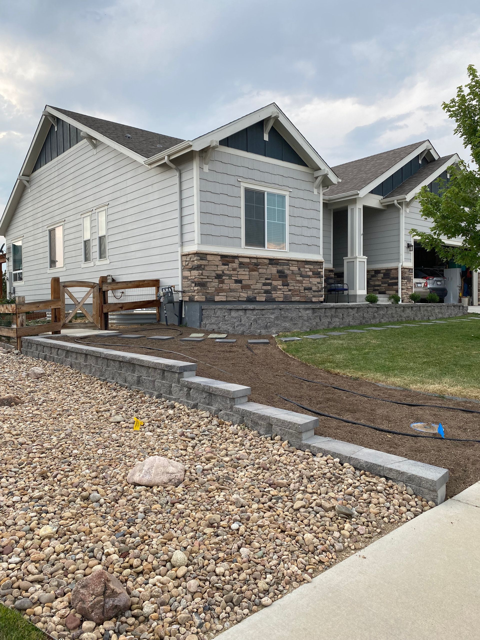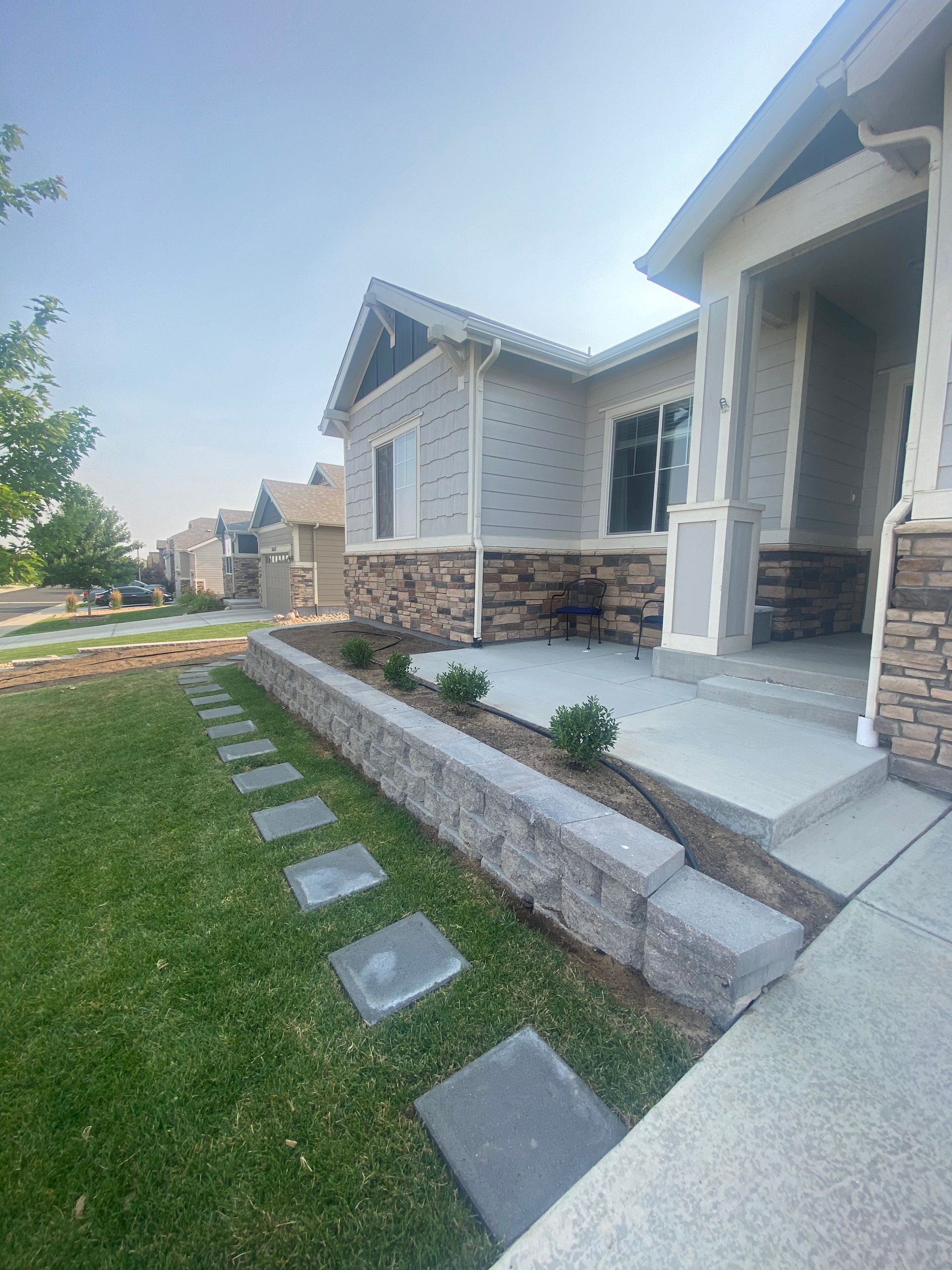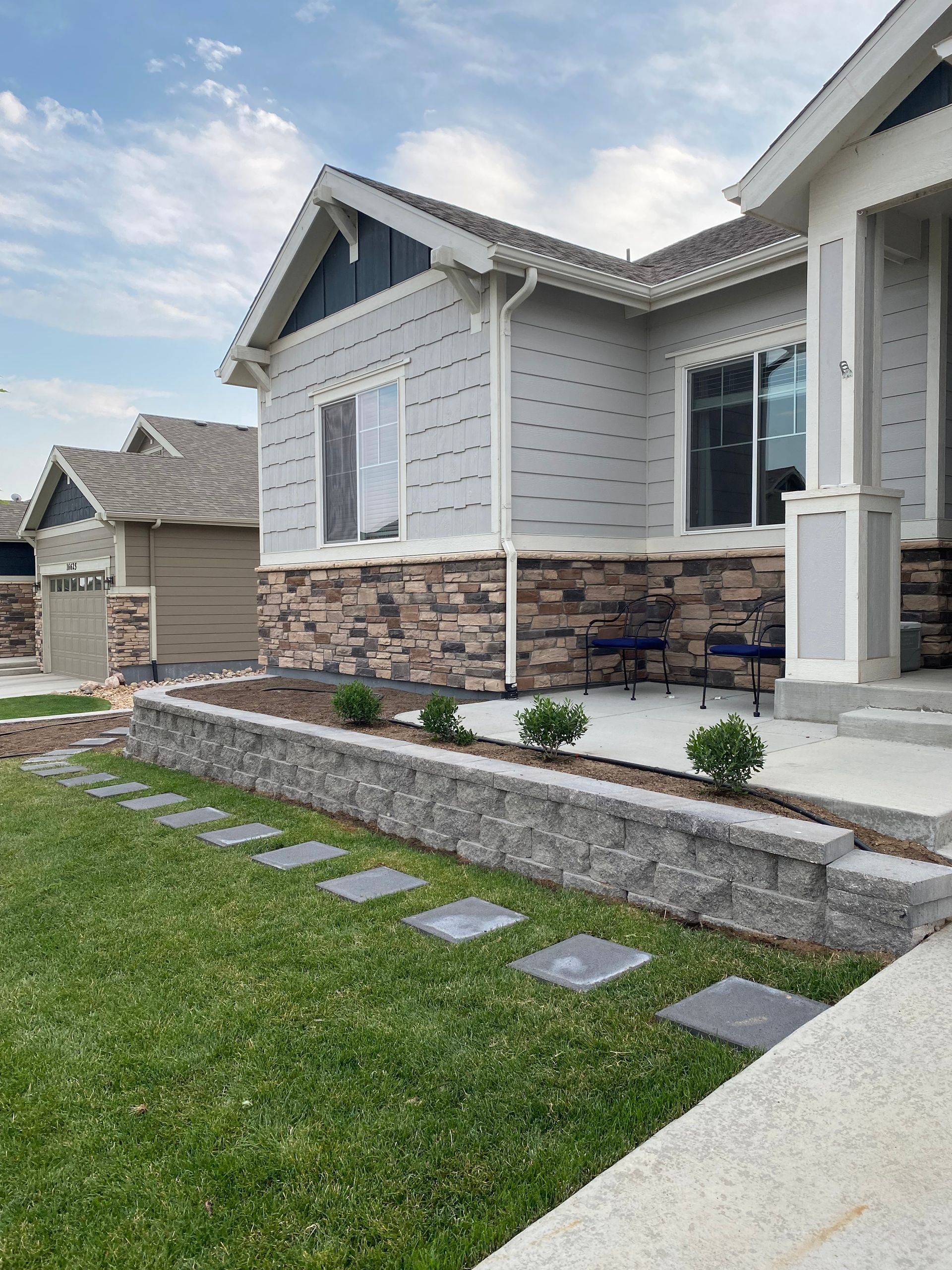 Upgrades to front and back yard landscaping and hardscape. New retaining wall block and capstones, good soil to plant directly into, completion of edging in back yard and concrete patio poured. Mead, CO 2021