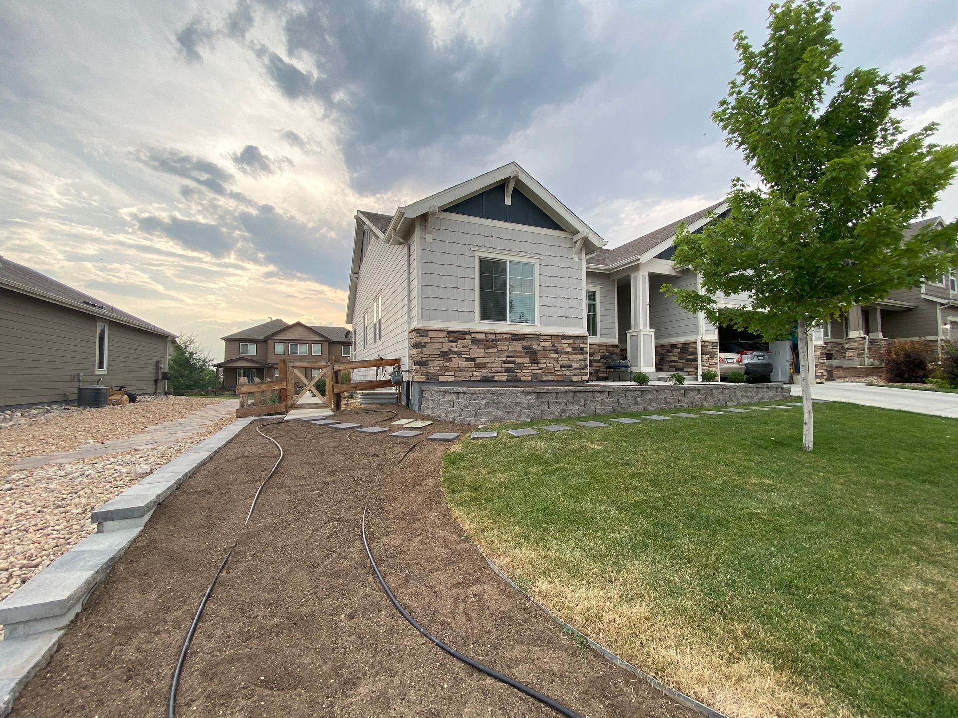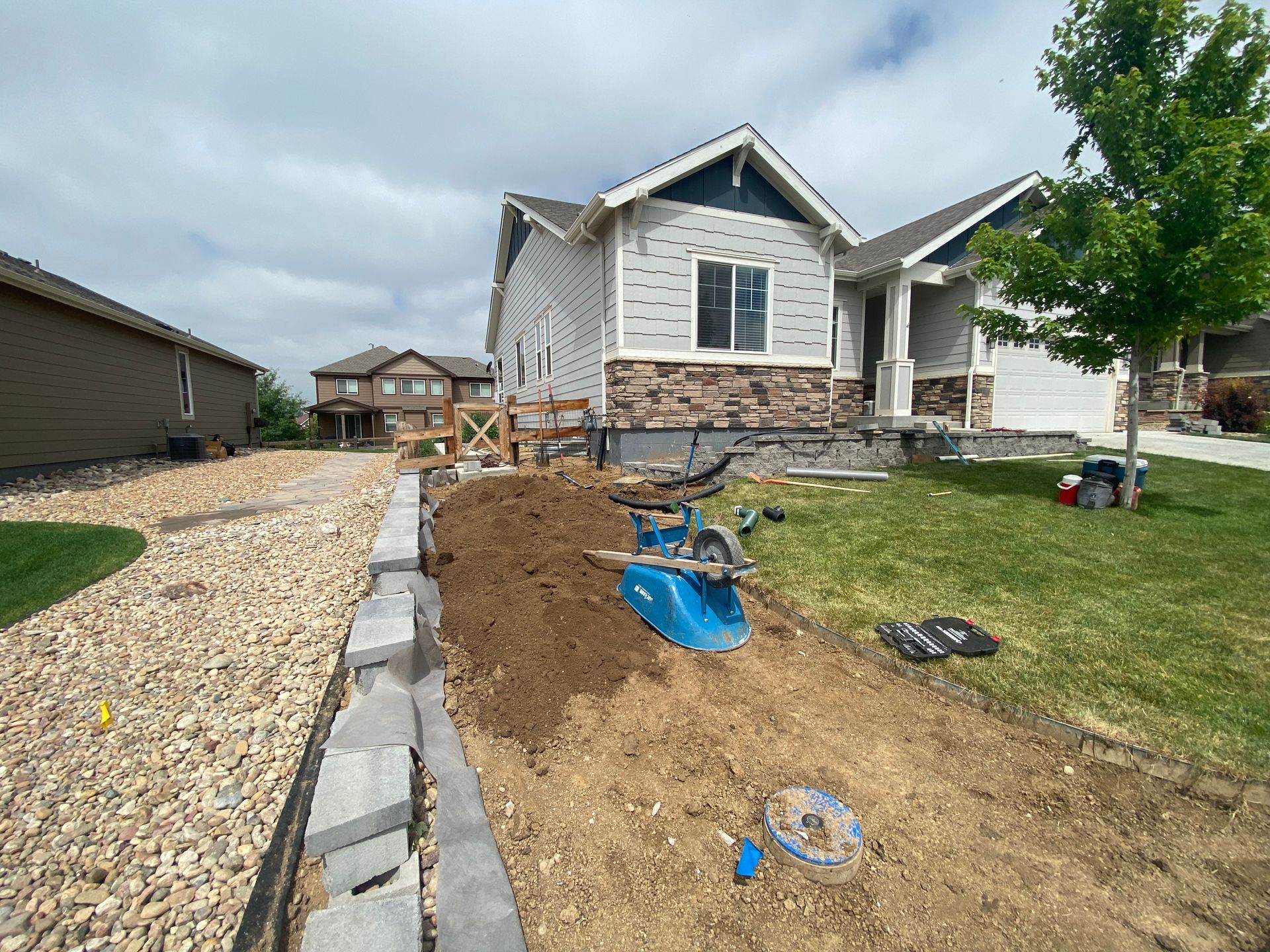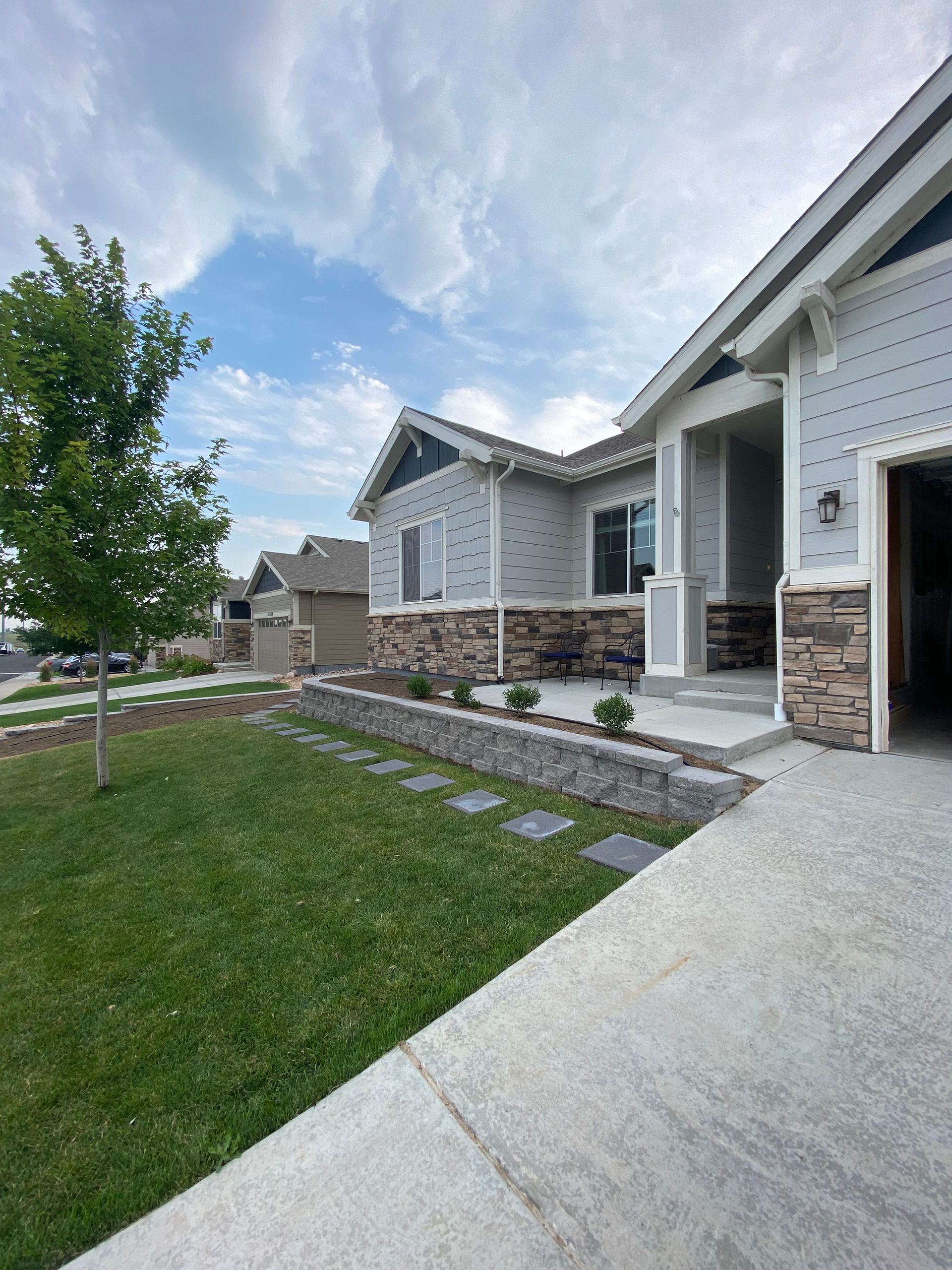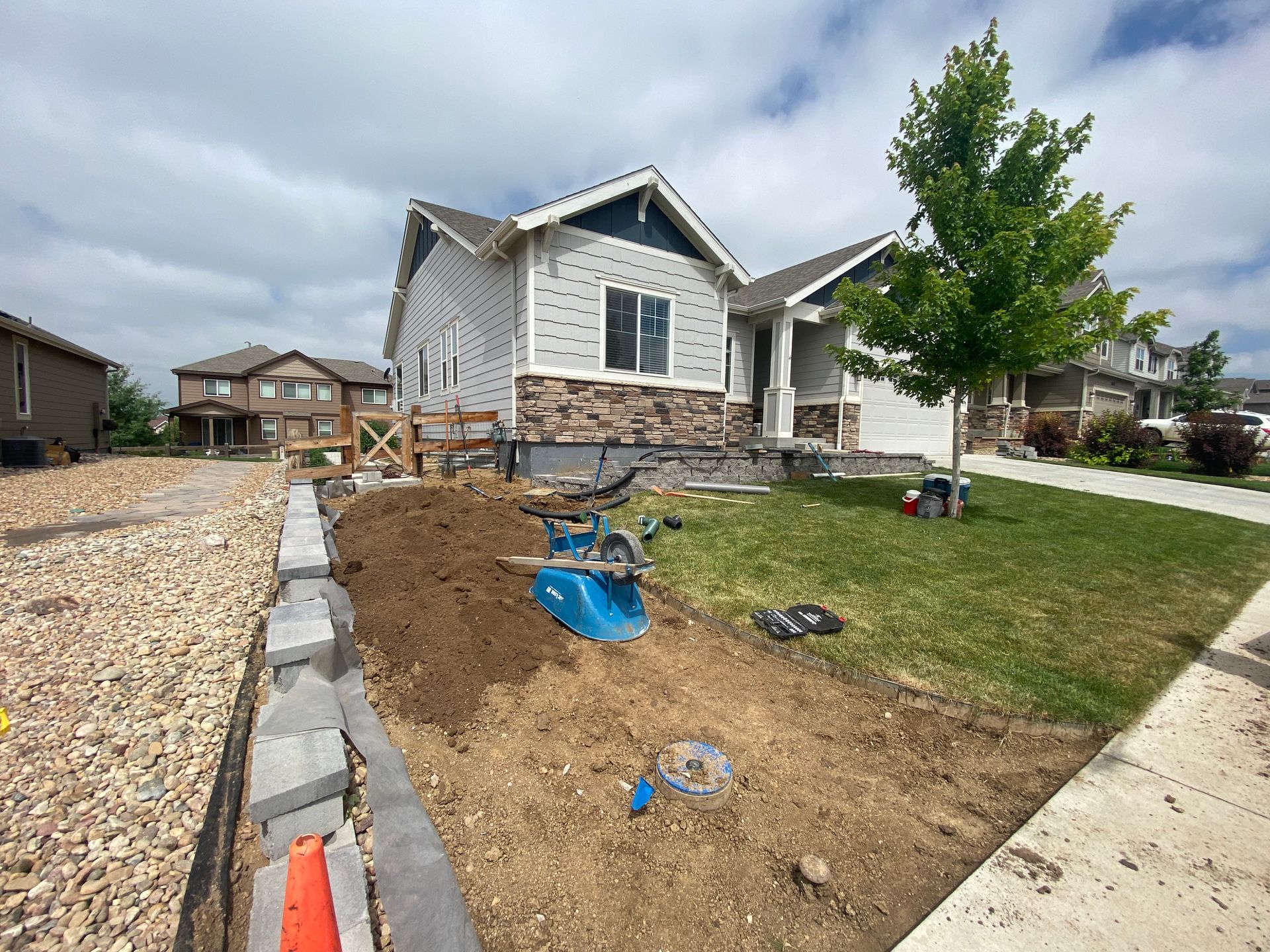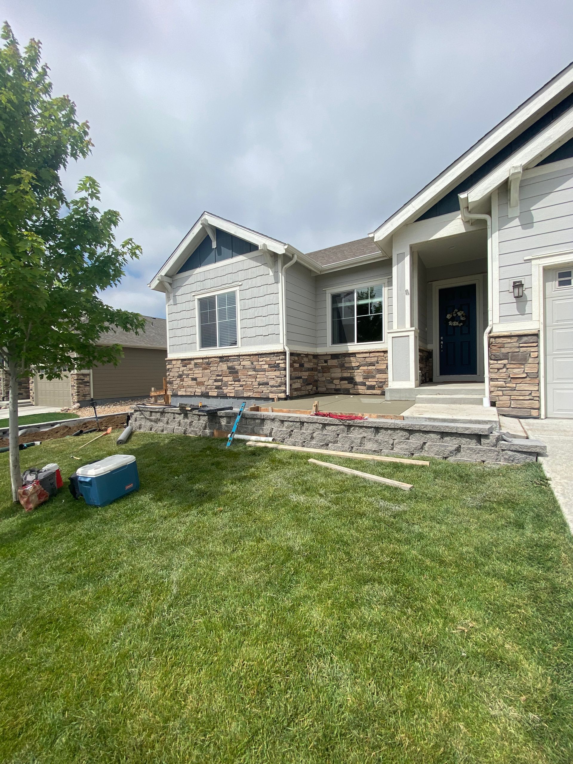 Upgrades to front and back yard landscaping and hardscape. New retaining wall block and capstones, good soil to plant directly into, completion of edging in back yard and concrete patio poured. Mead, CO 2021