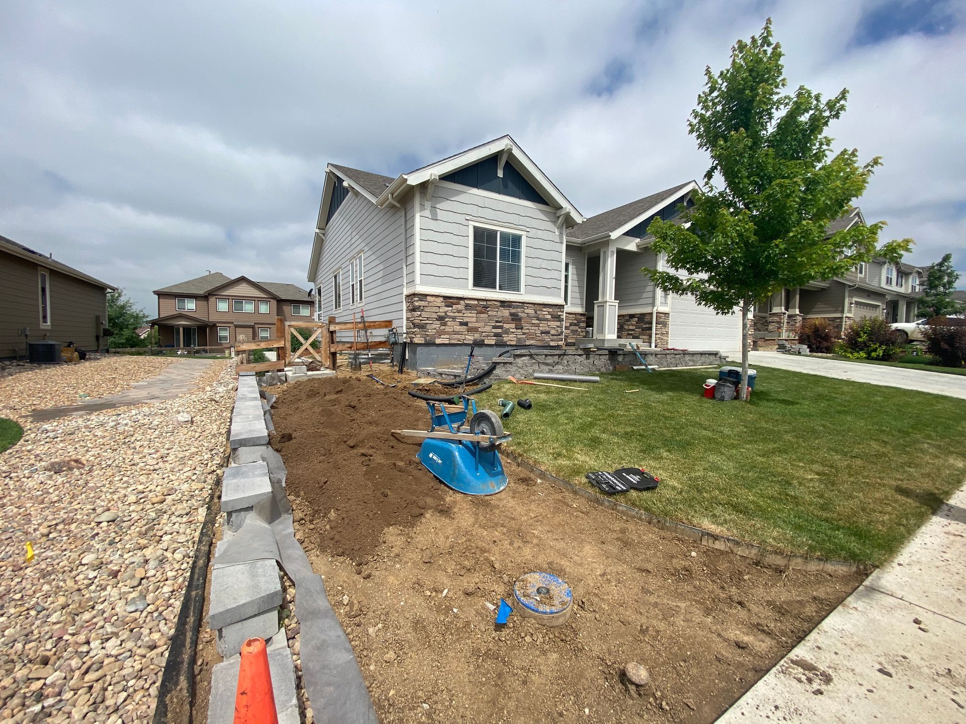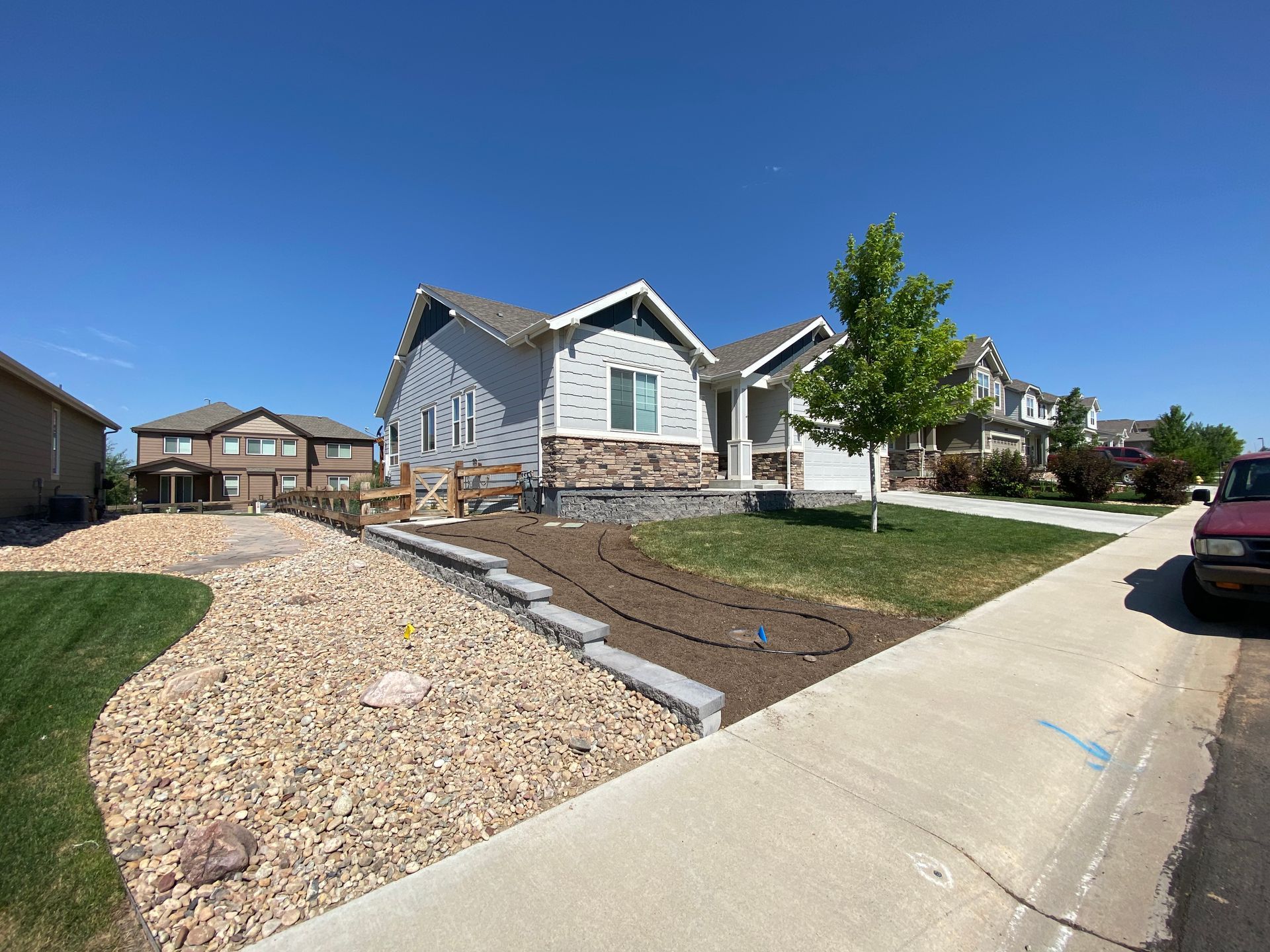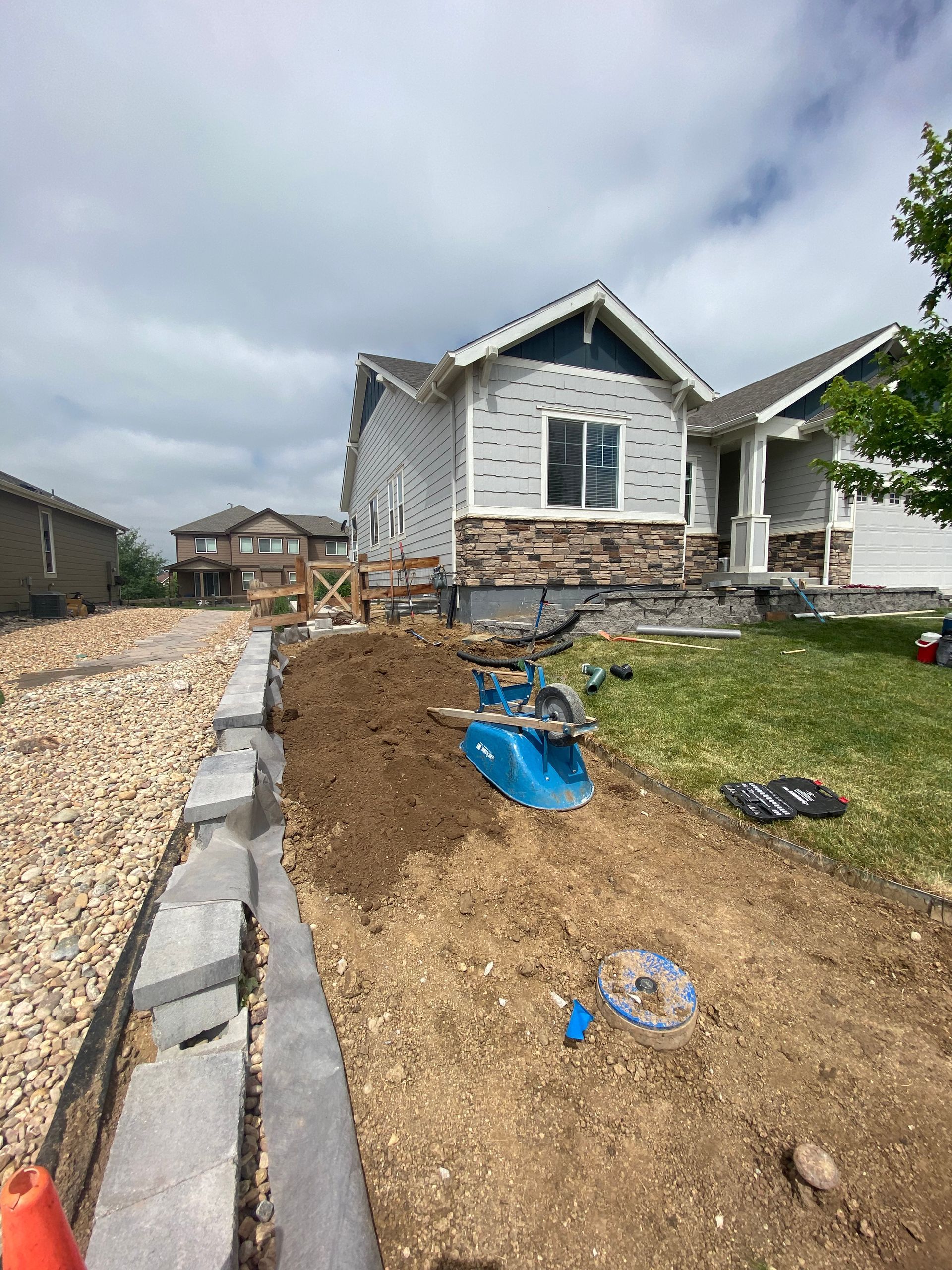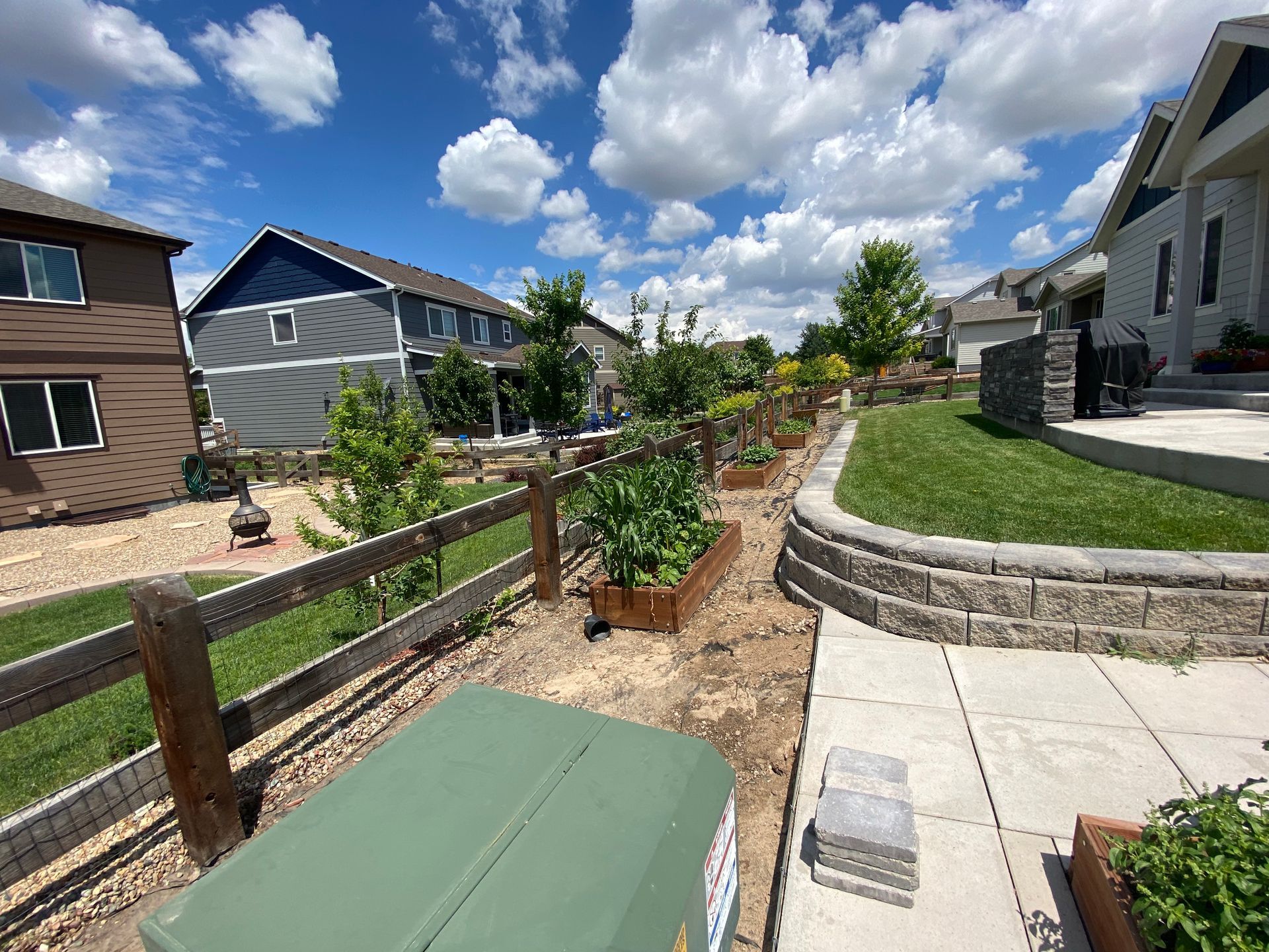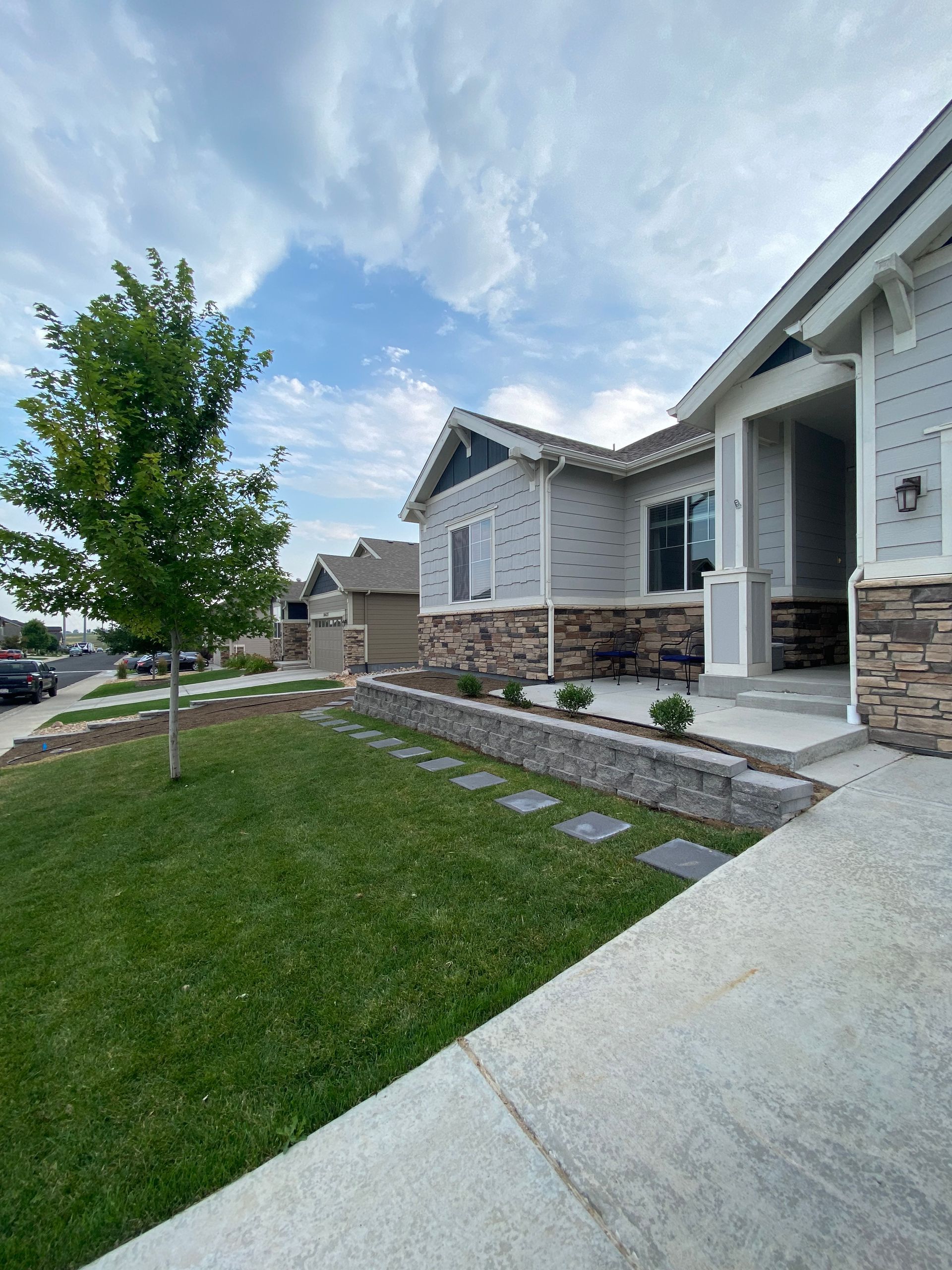 Upgrades to front and back yard landscaping and hardscape. New retaining wall block and capstones, good soil to plant directly into, completion of edging in back yard and concrete patio poured. Mead, CO 2021