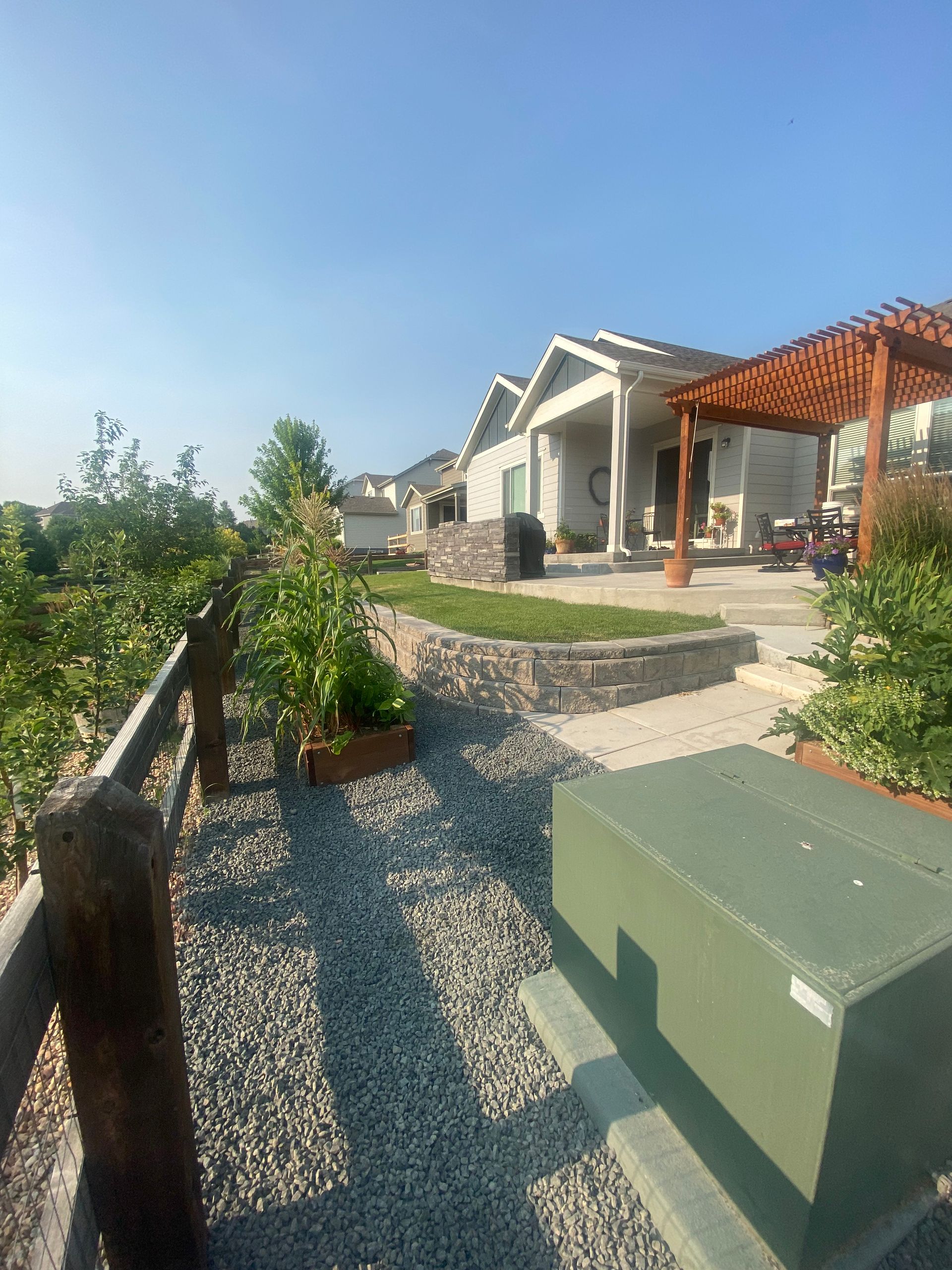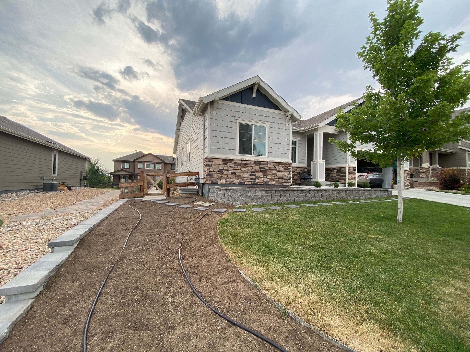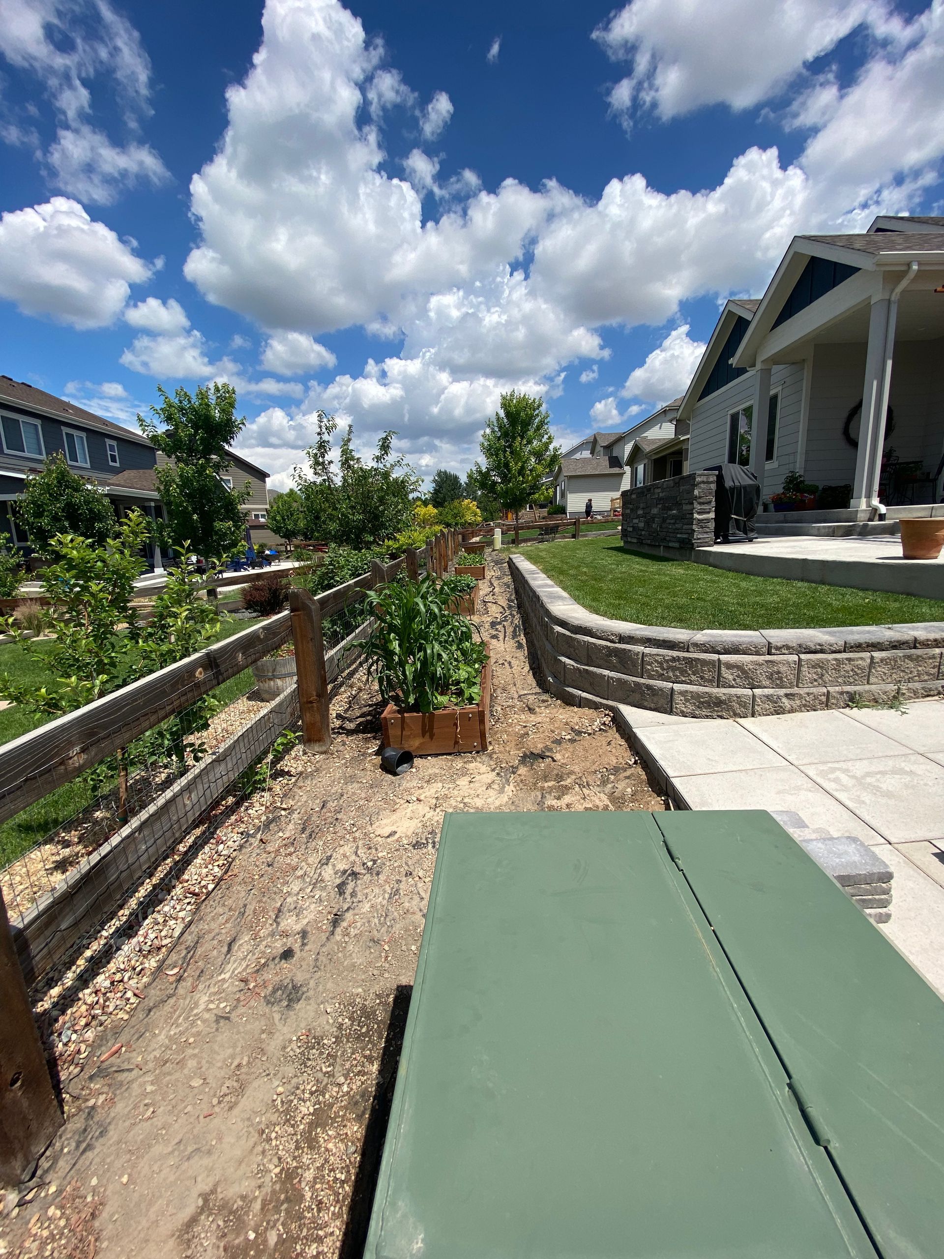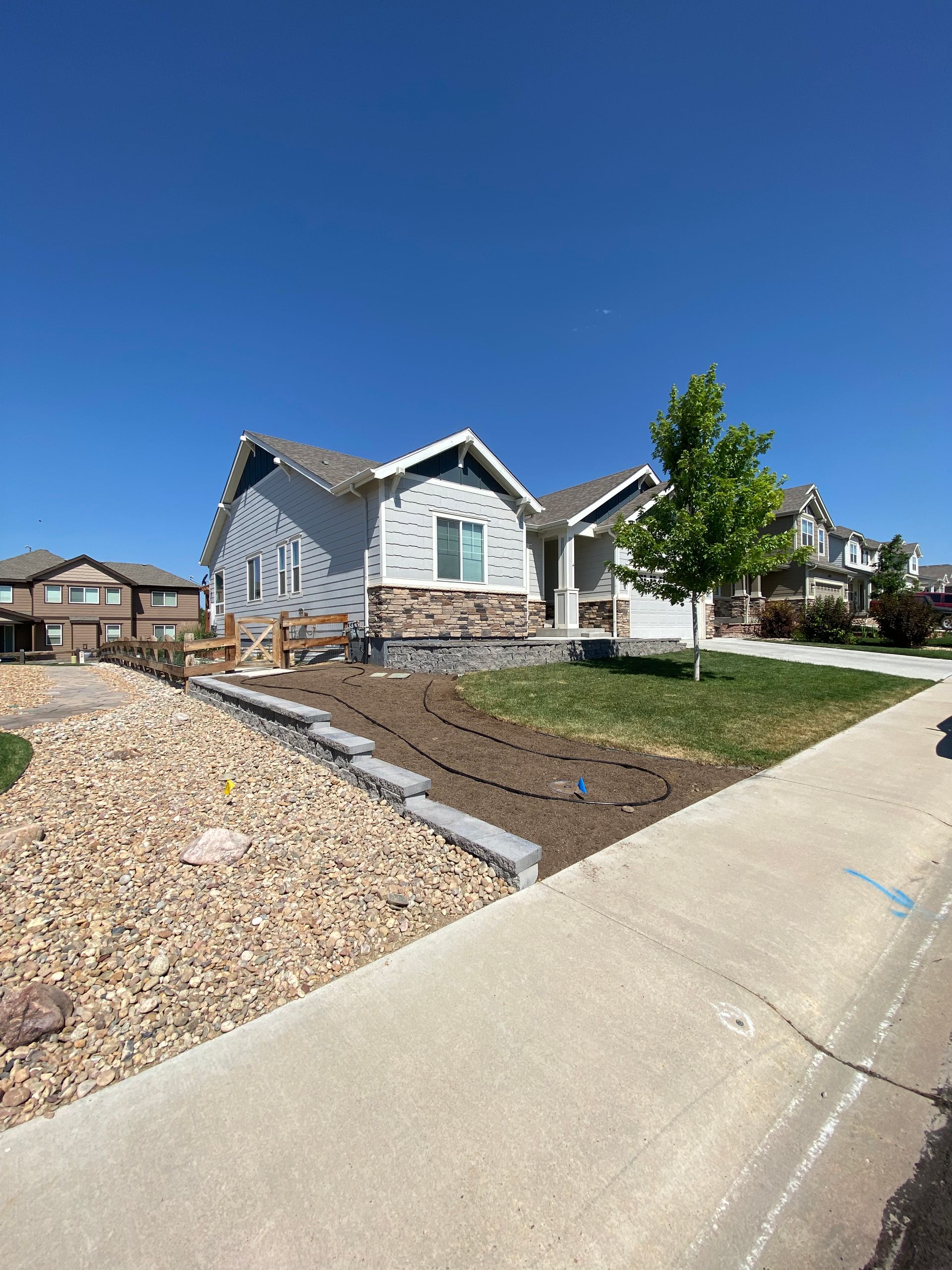 Upgrades to front and back yard landscaping and hardscape. New retaining wall block and capstones, good soil to plant directly into, completion of edging in back yard and concrete patio poured. Mead, CO 2021