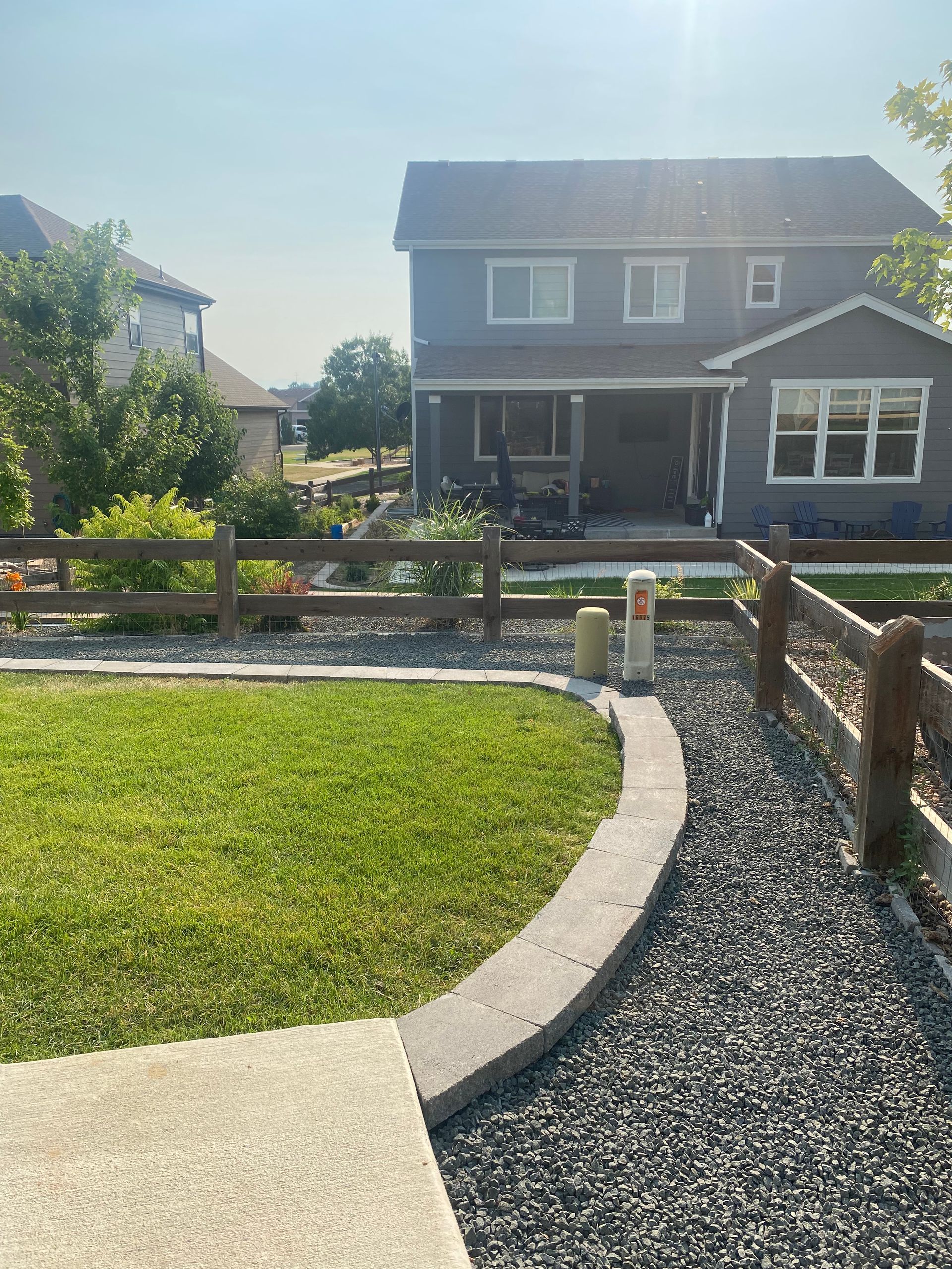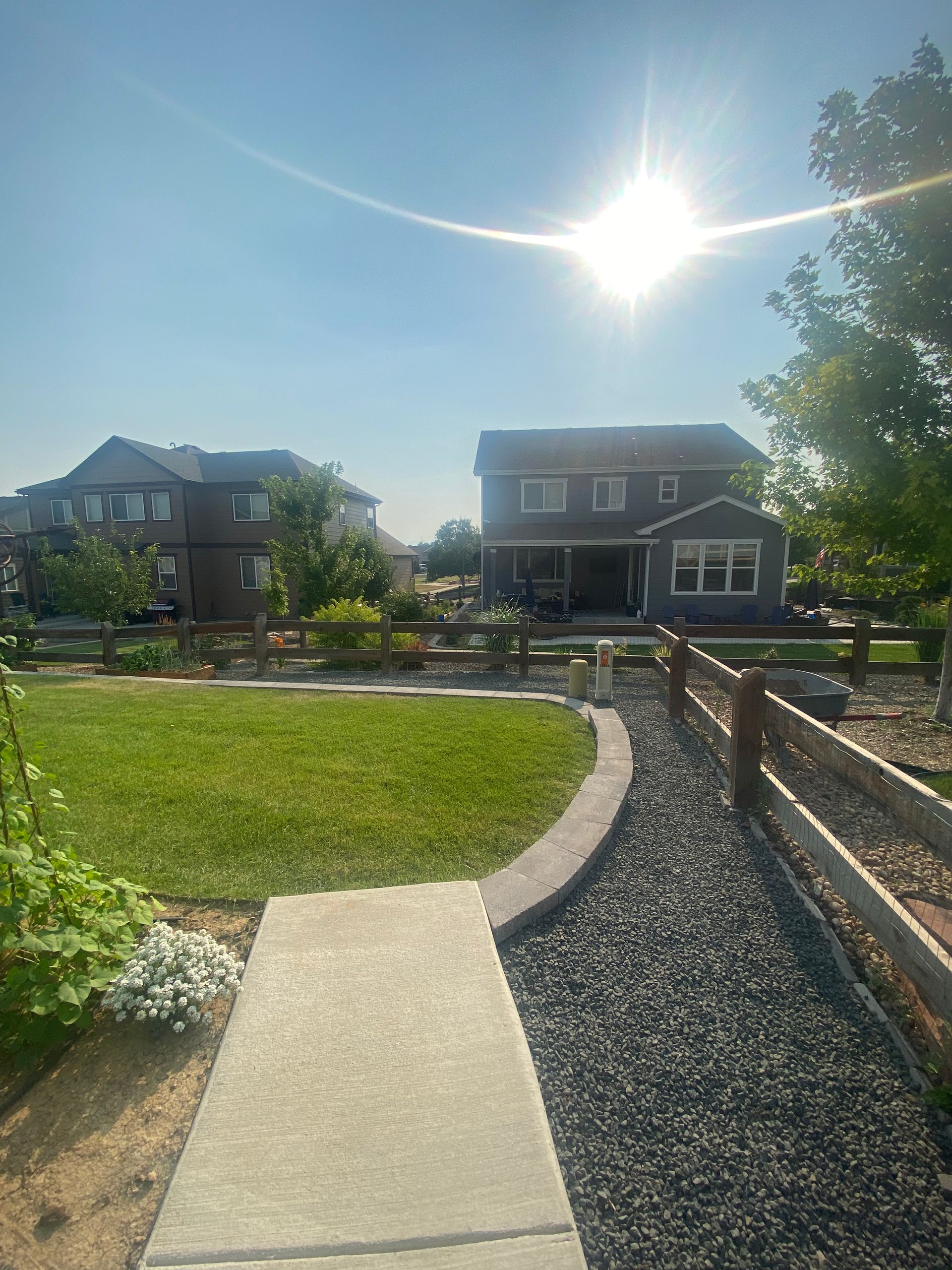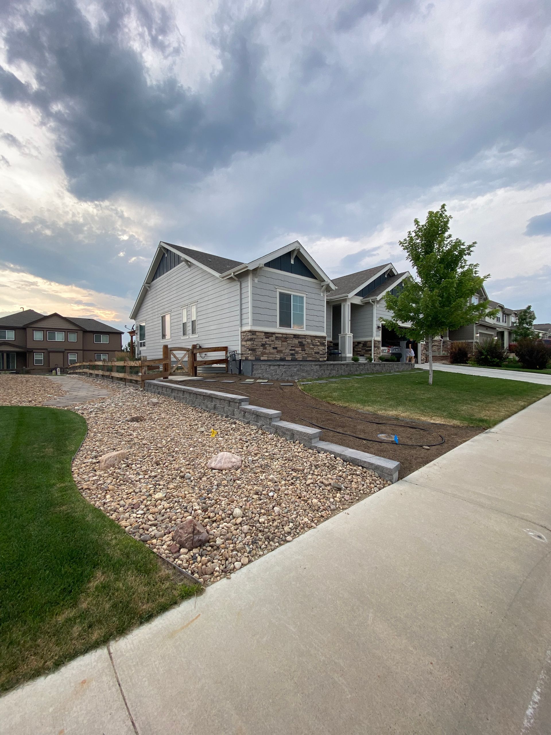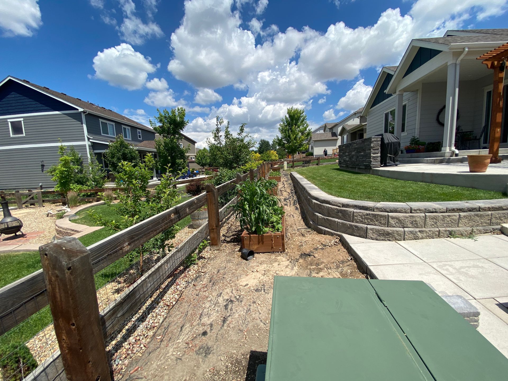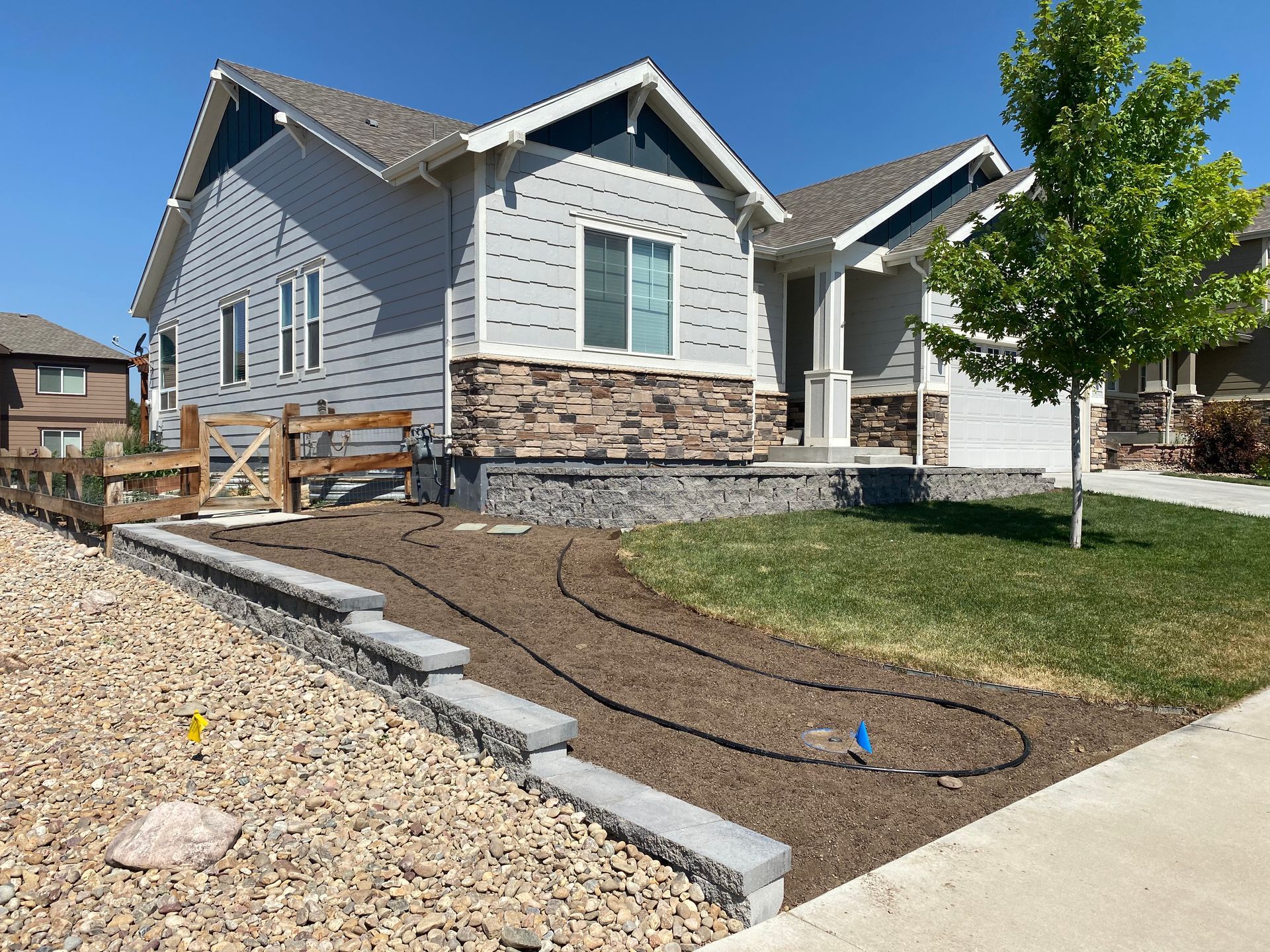 Upgrades to front and back yard landscaping and hardscape. New retaining wall block and capstones, good soil to plant directly into, completion of edging in back yard and concrete patio poured. Mead, CO 2021