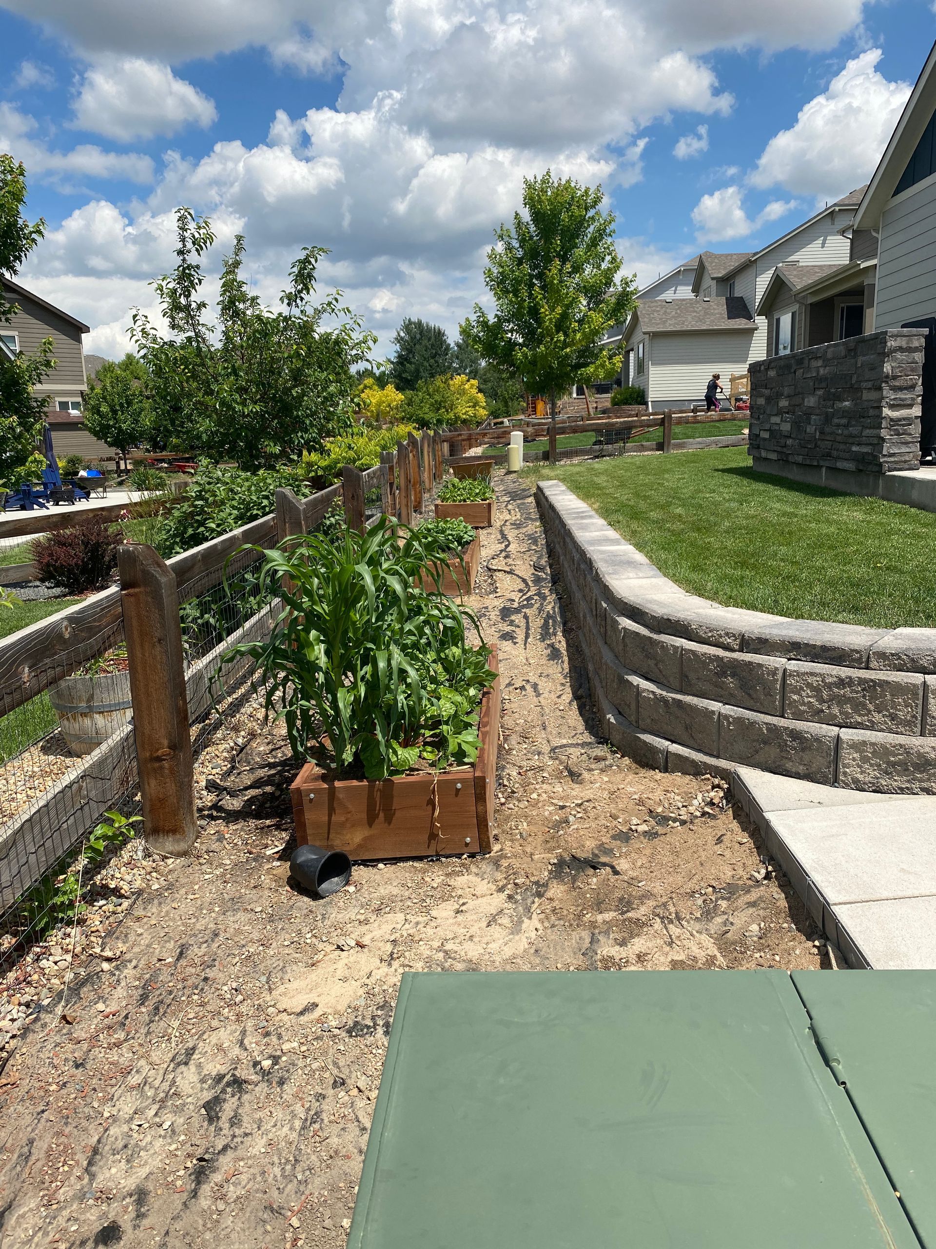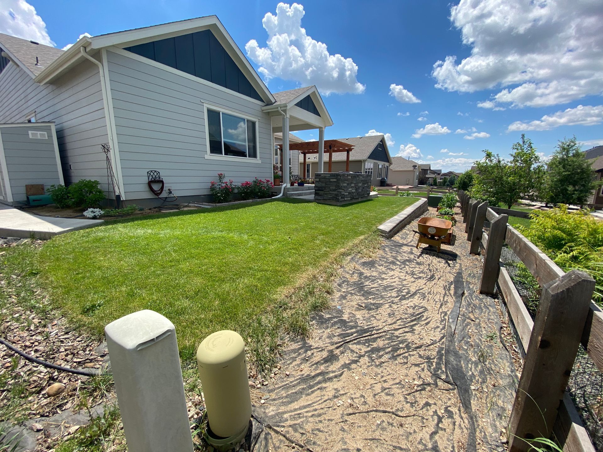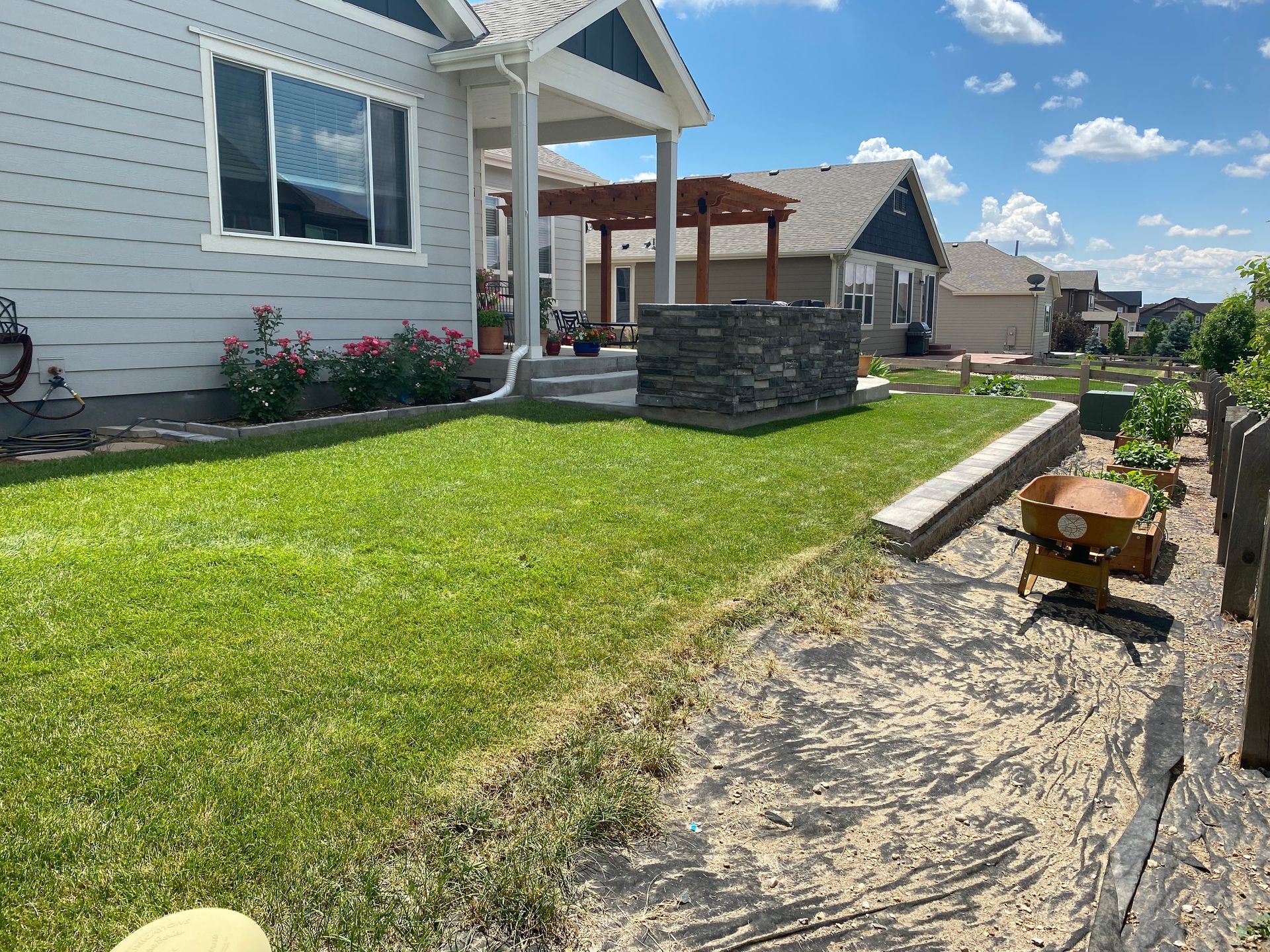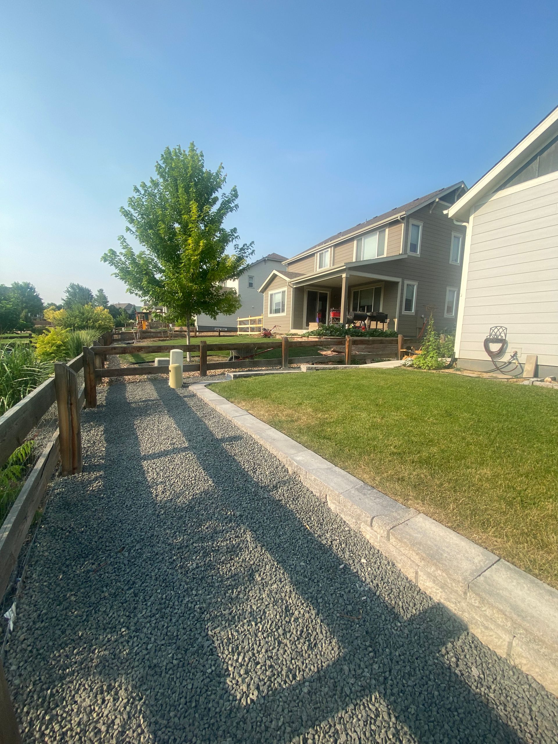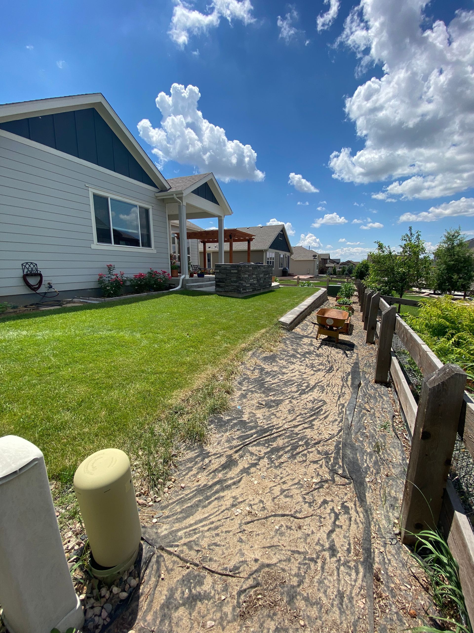 Upgrades to front and back yard landscaping and hardscape. New retaining wall block and capstones, good soil to plant directly into, completion of edging in back yard and concrete patio poured. Mead, CO 2021