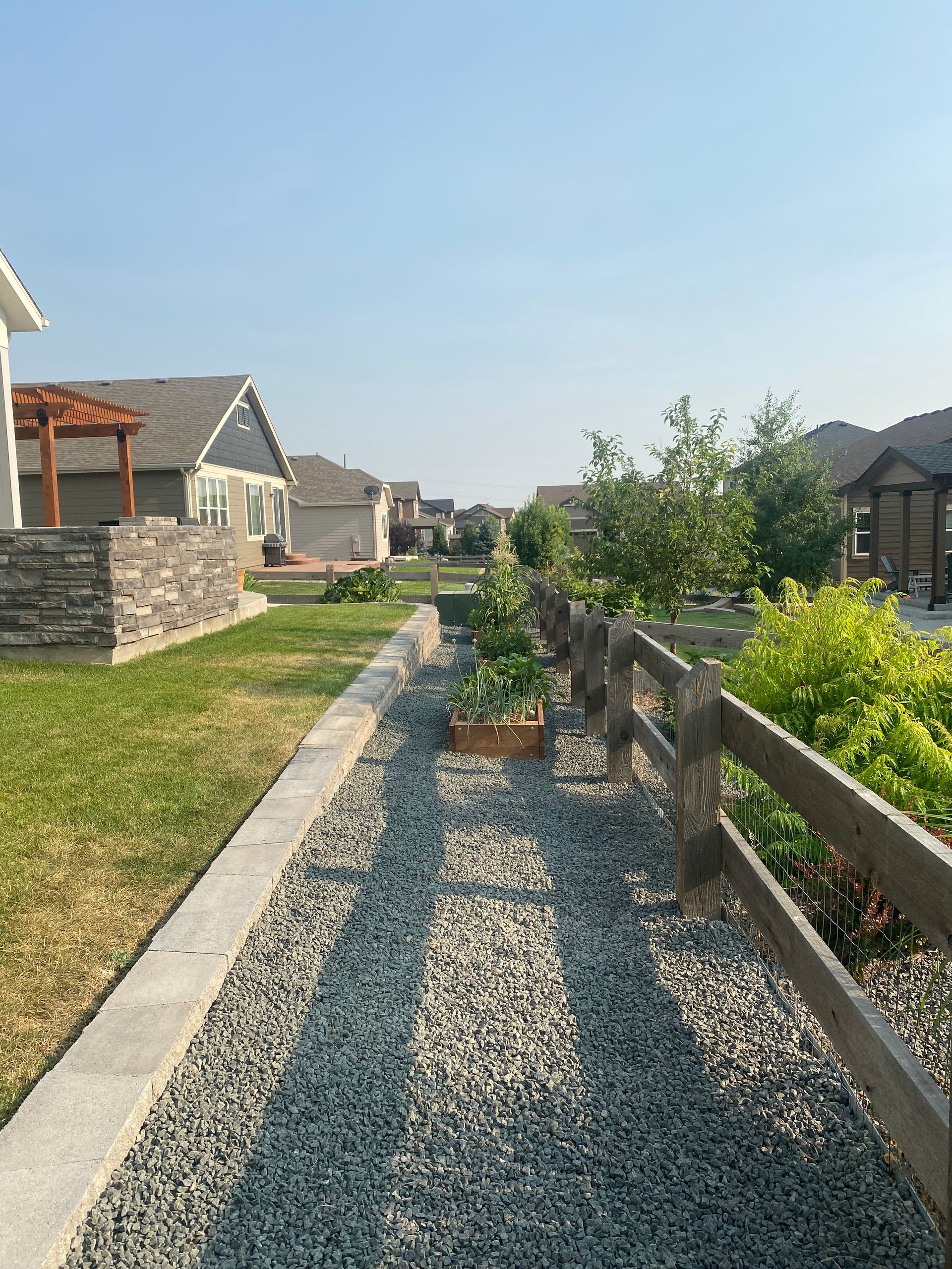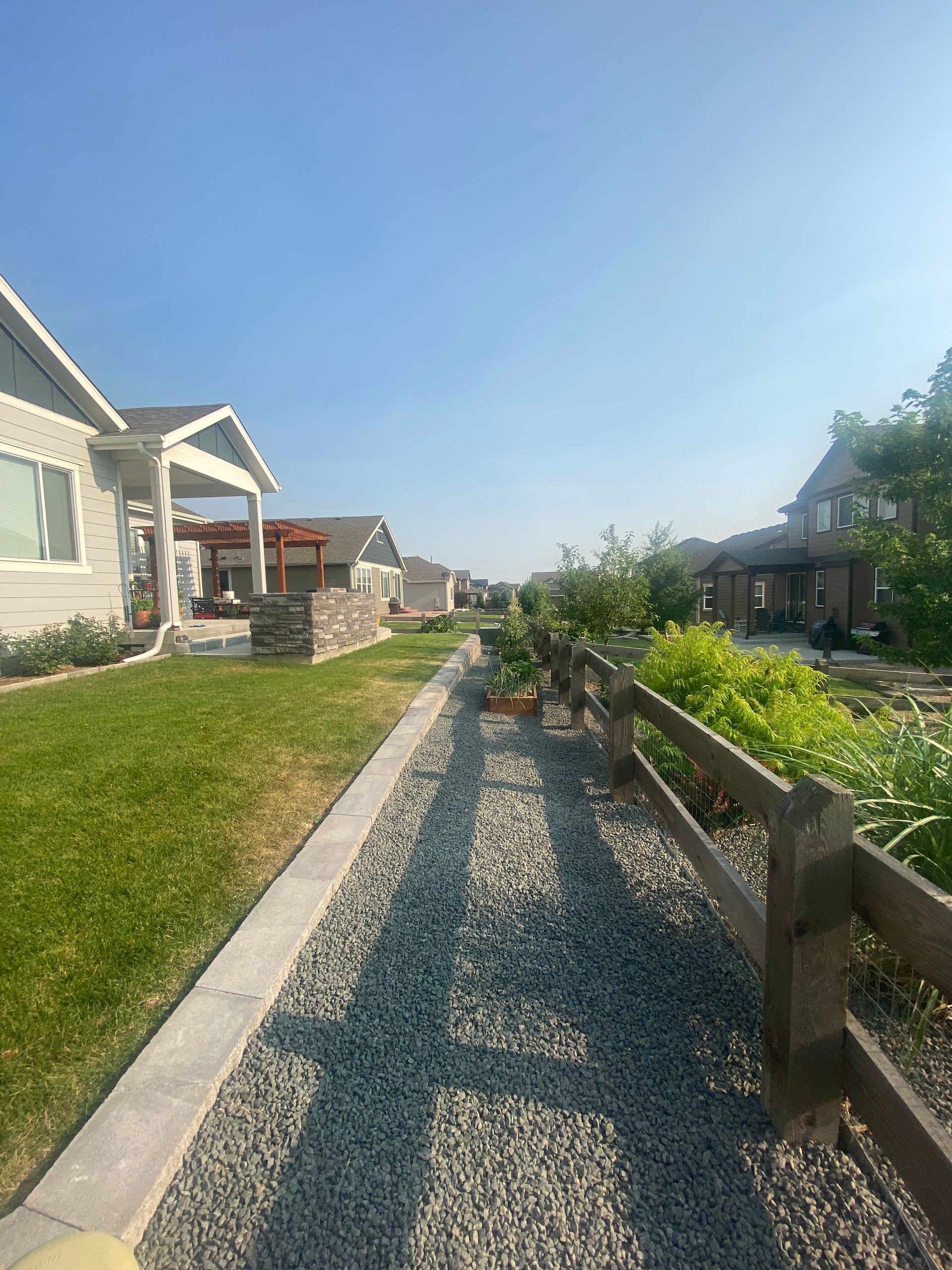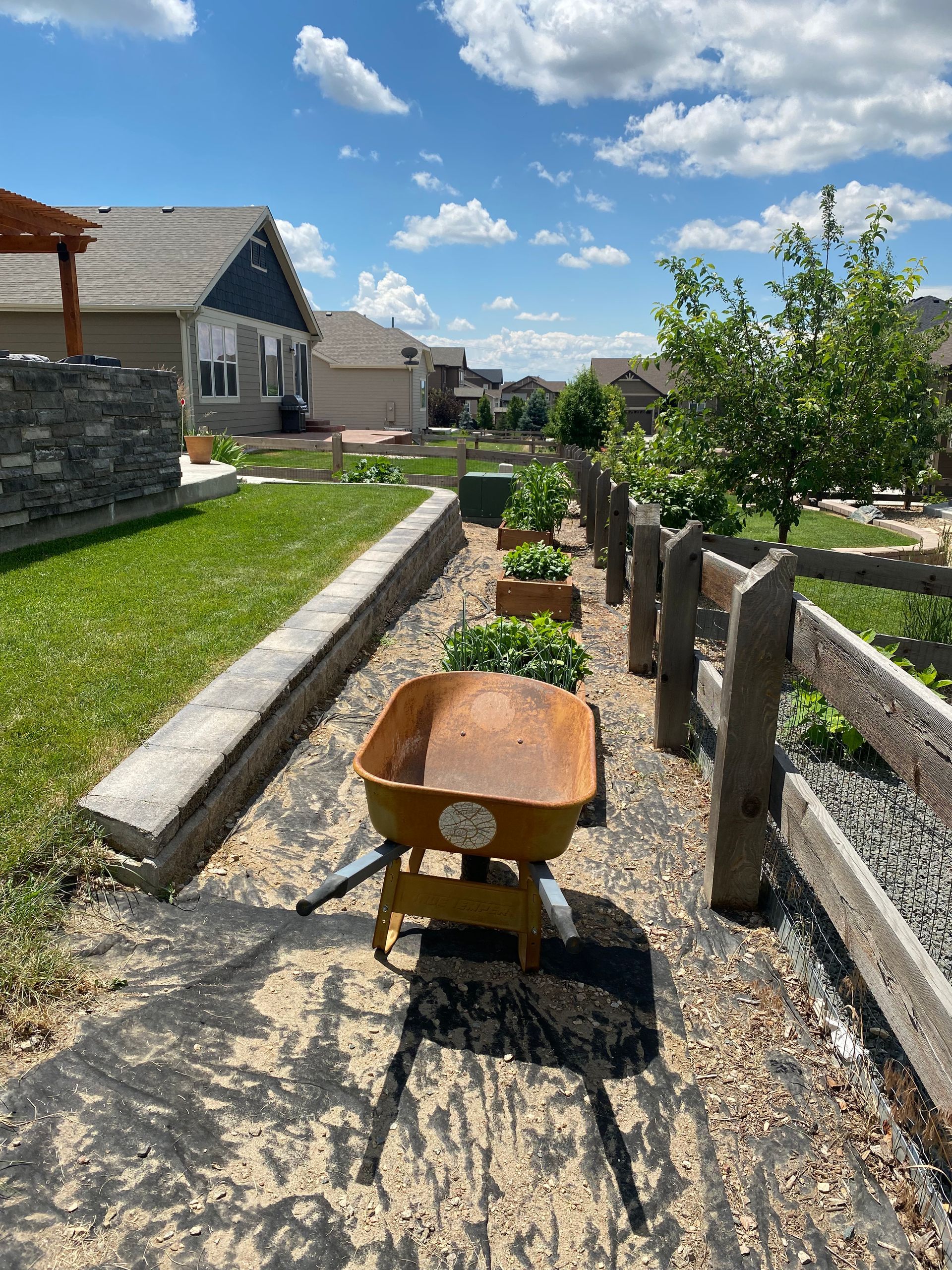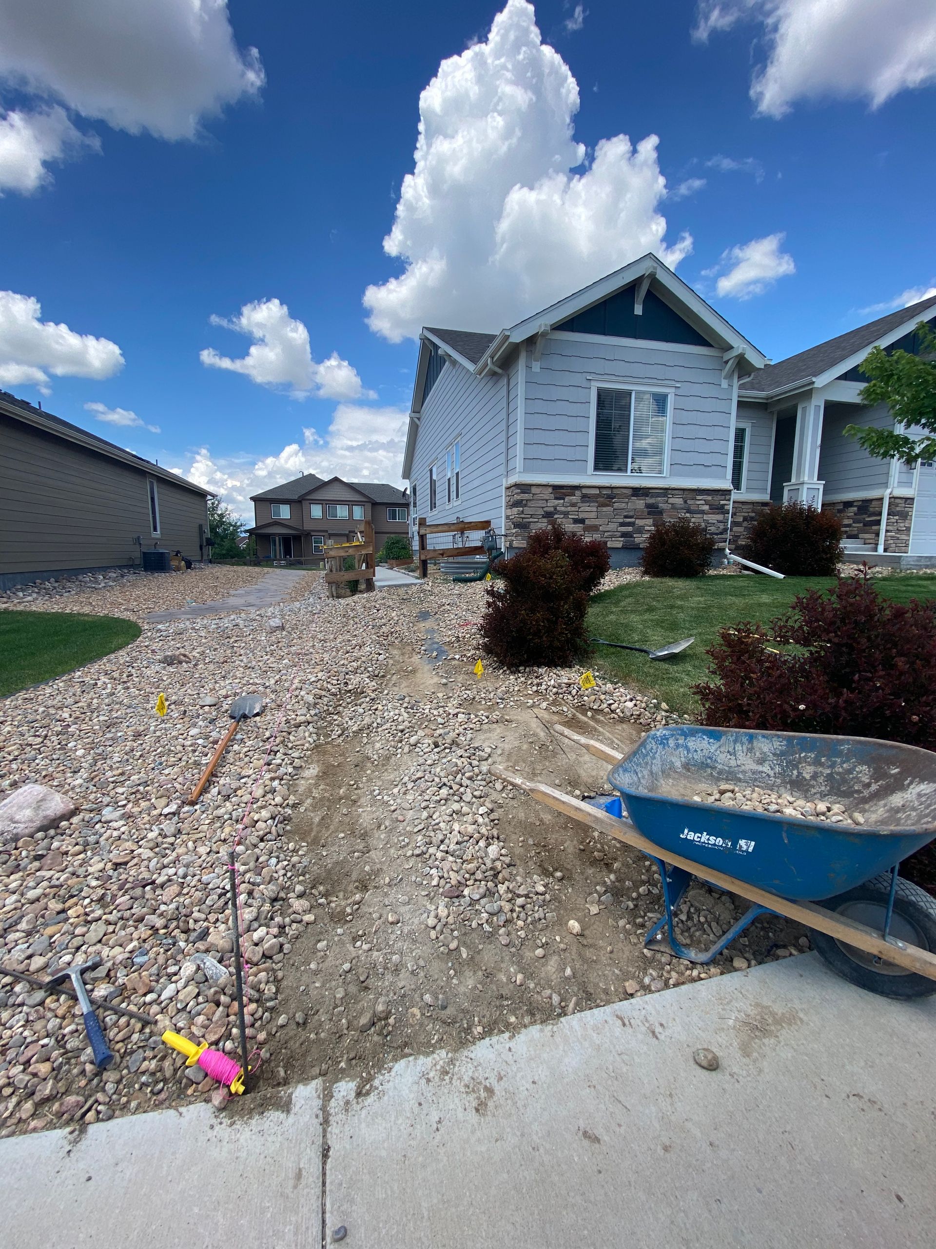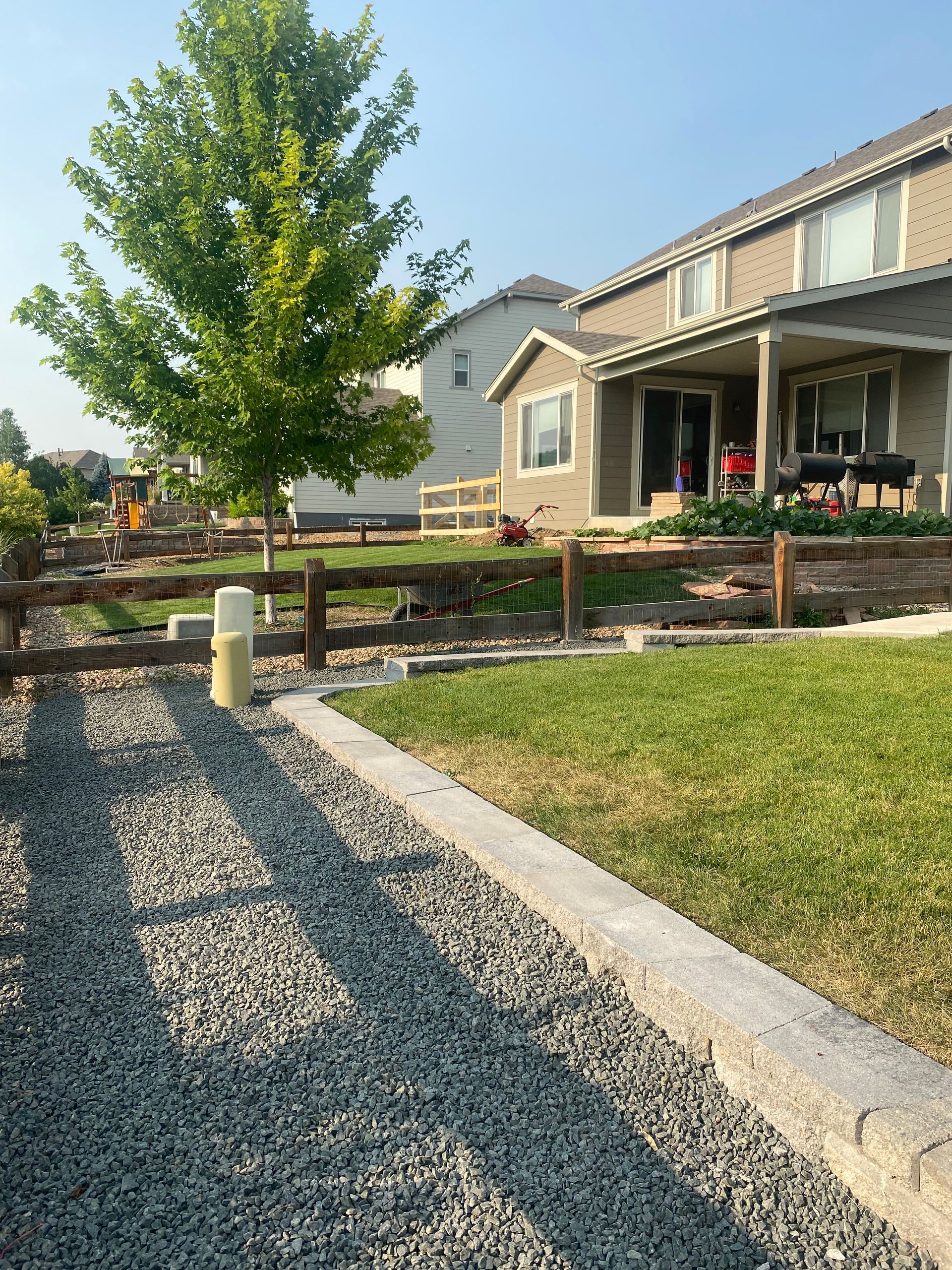 Upgrades to front and back yard landscaping and hardscape. New retaining wall block and capstones, good soil to plant directly into, completion of edging in back yard and concrete patio poured. Mead, CO 2021