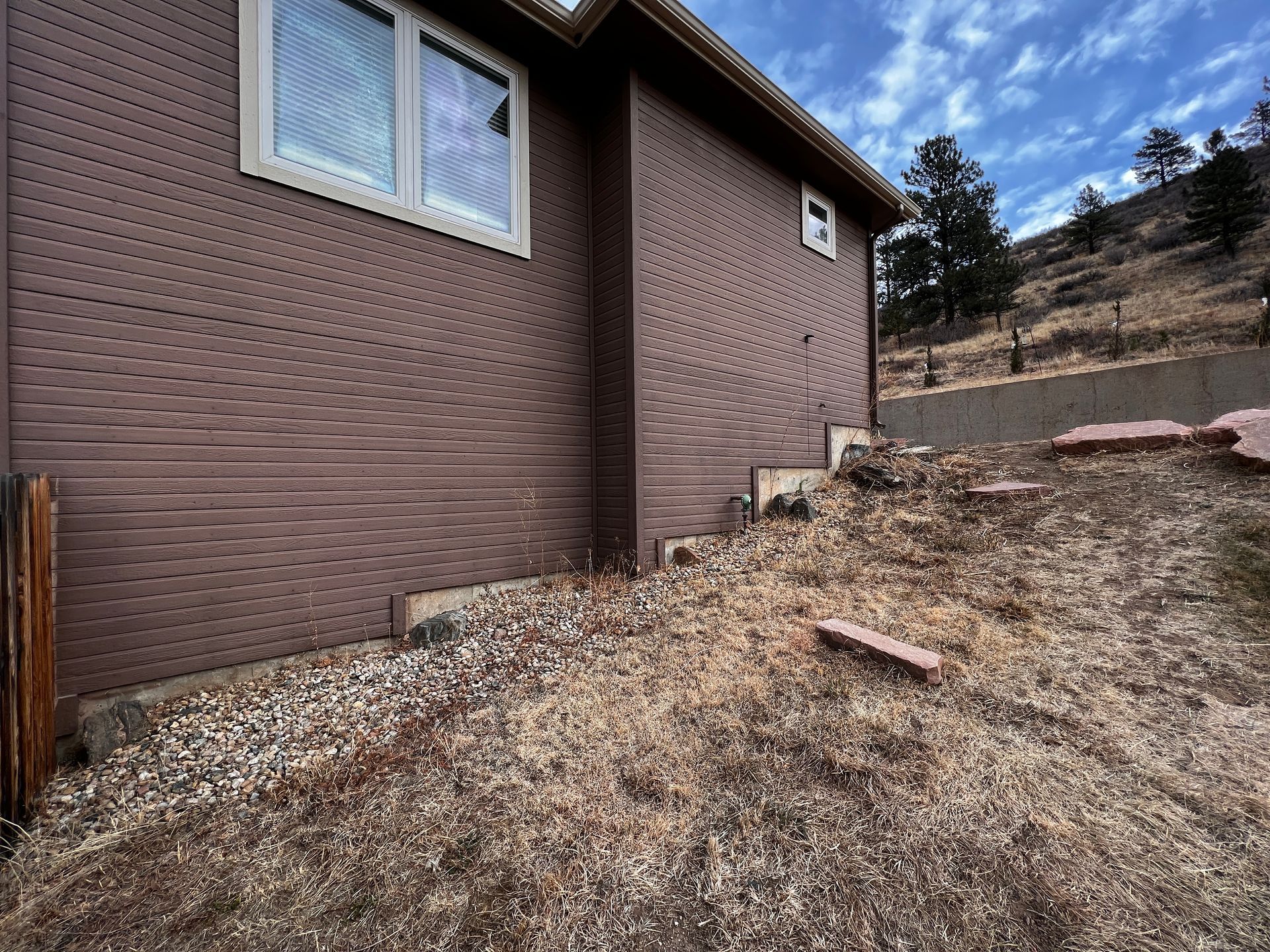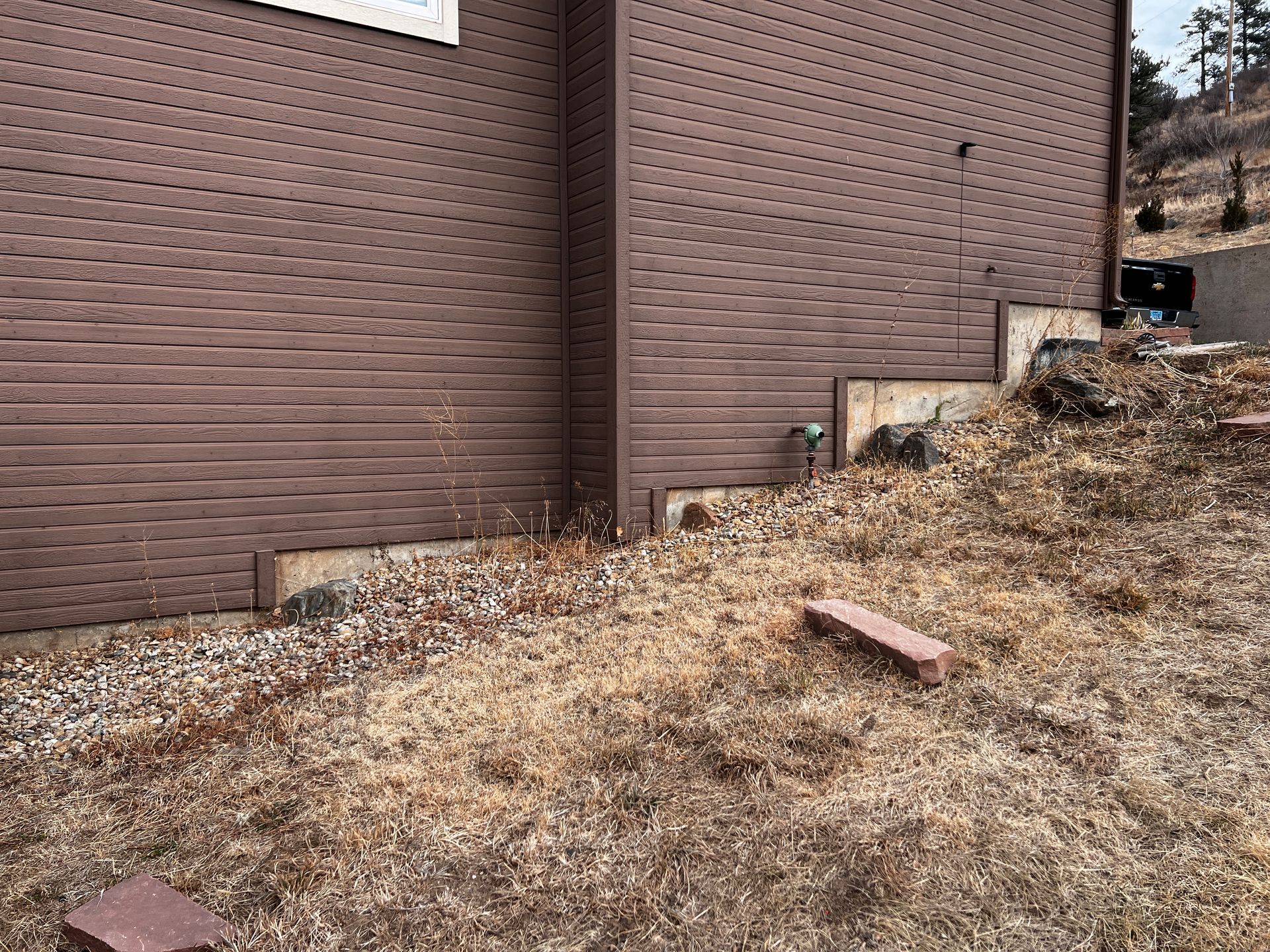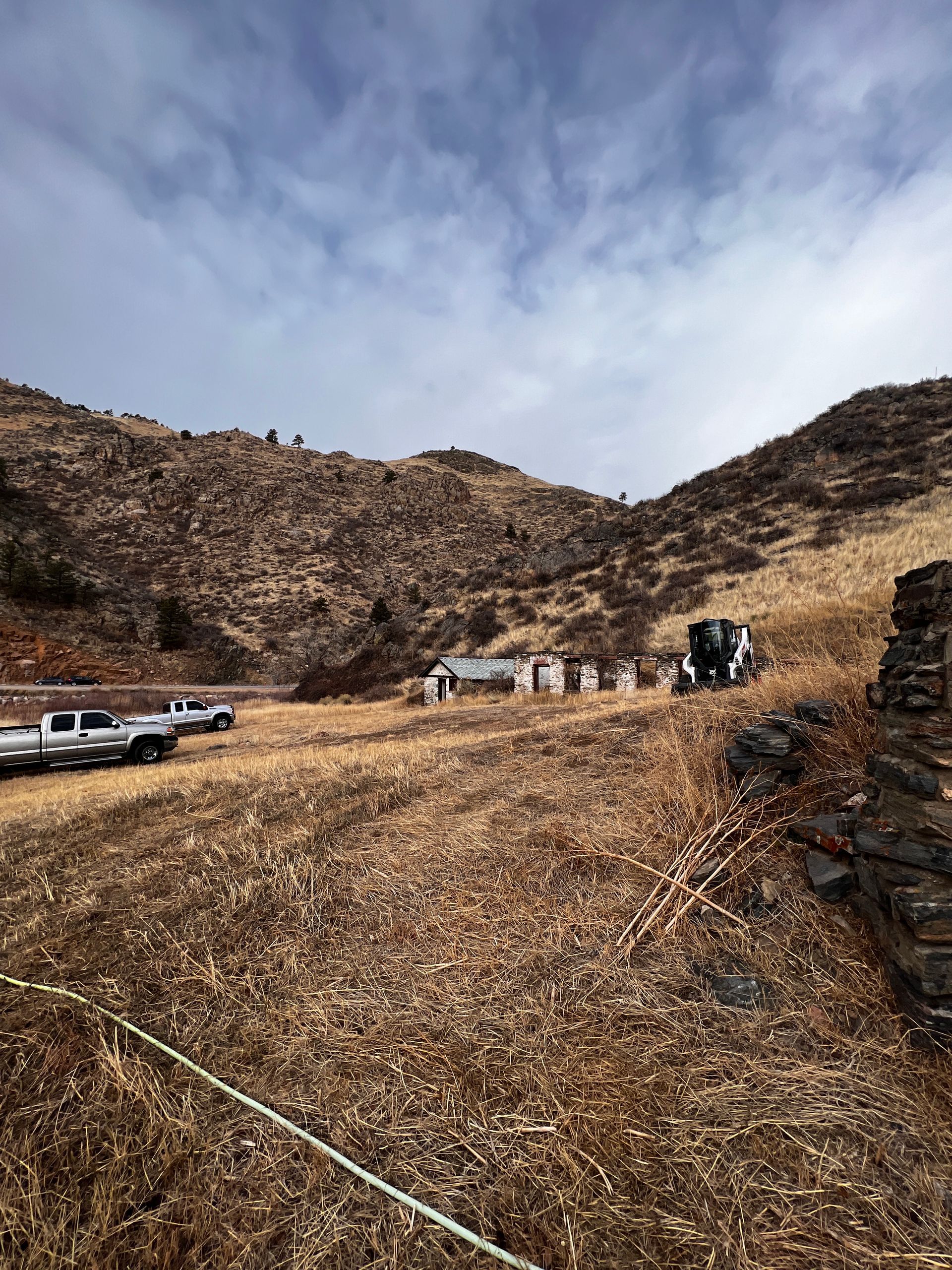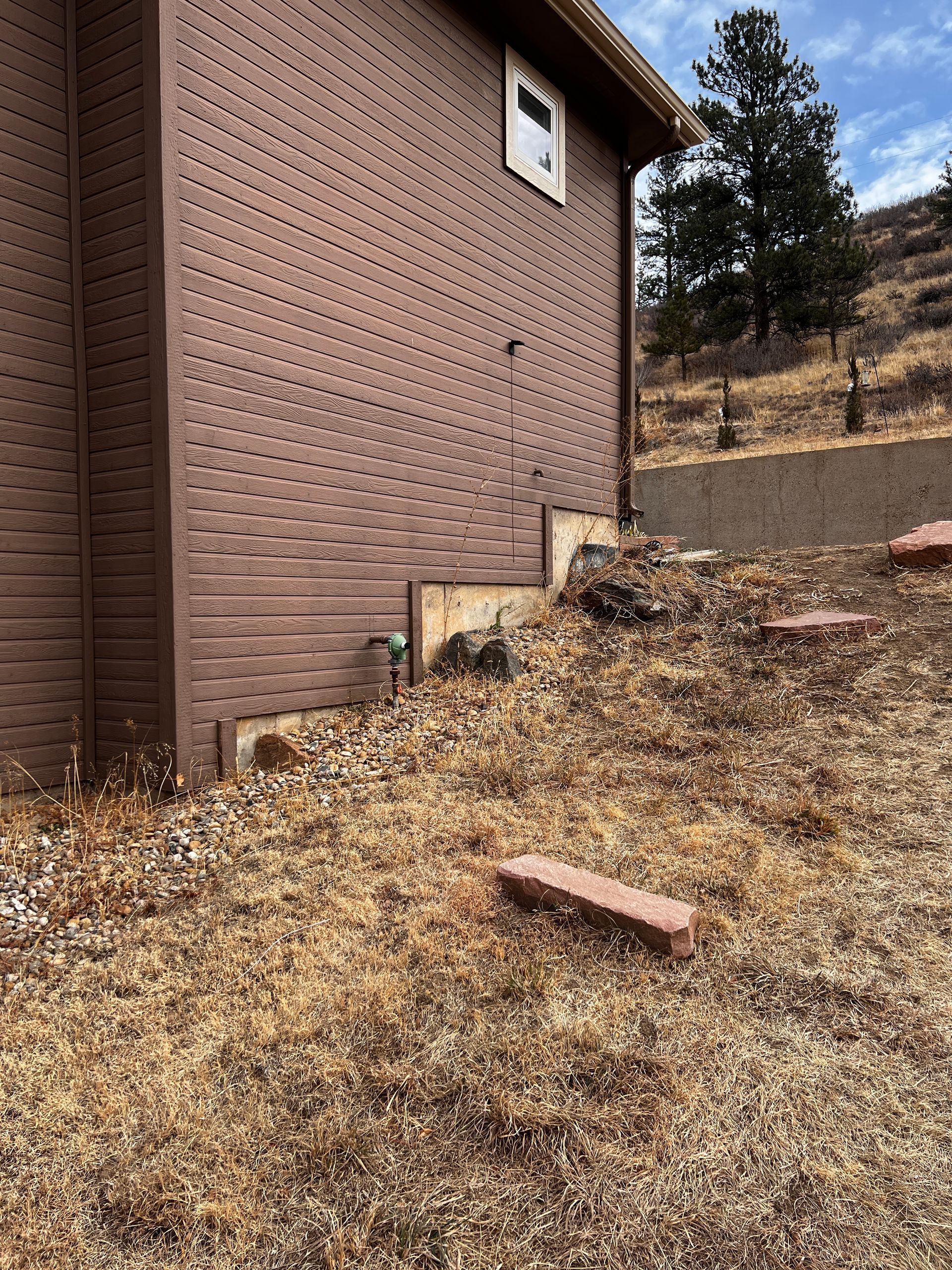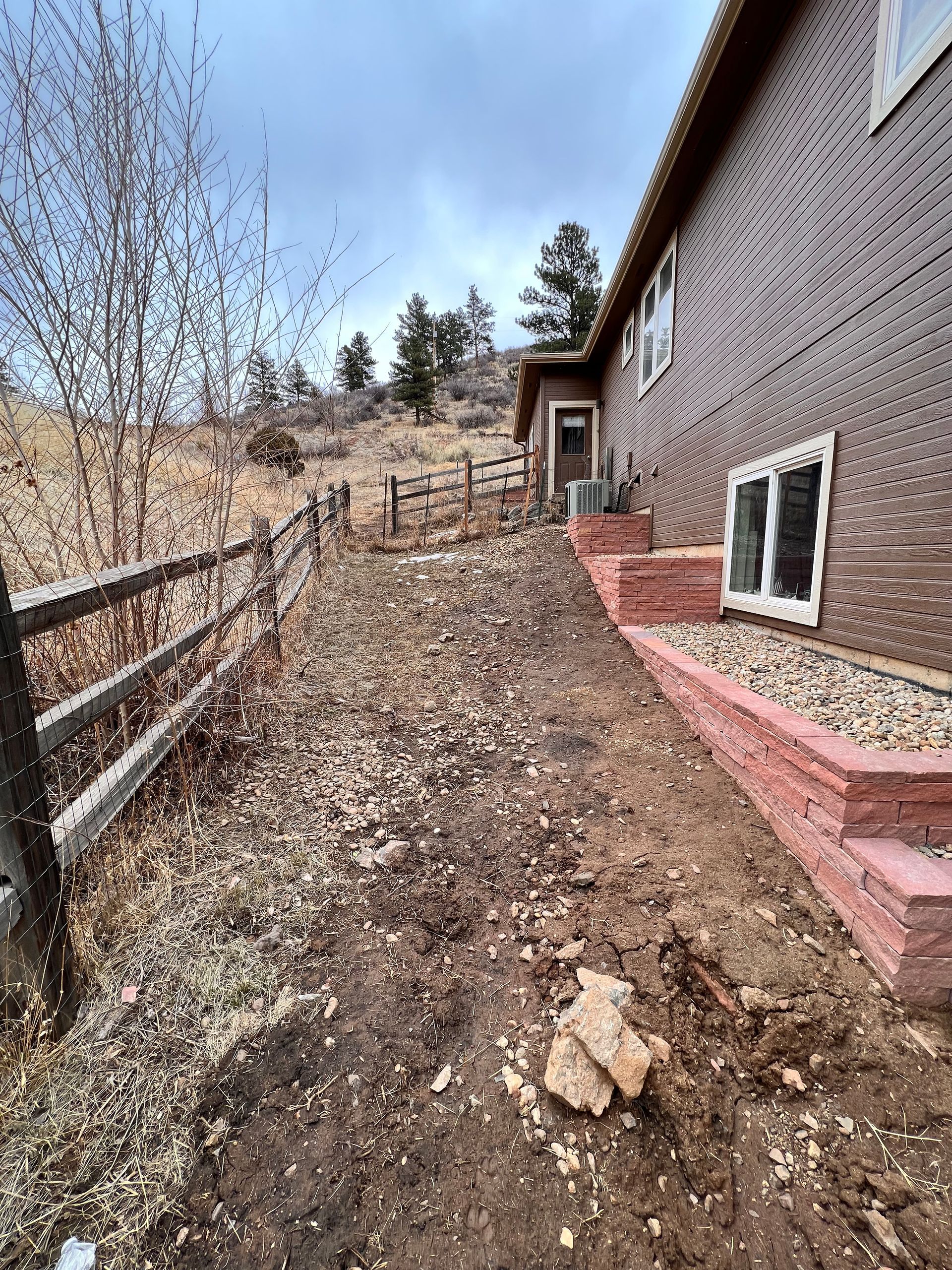 As part of fire mitigation work, Colorado red stripstone dry stacked 3' away from entire house with river rock in new beds. Boulder retaining wall also. Lyons, CO 2022