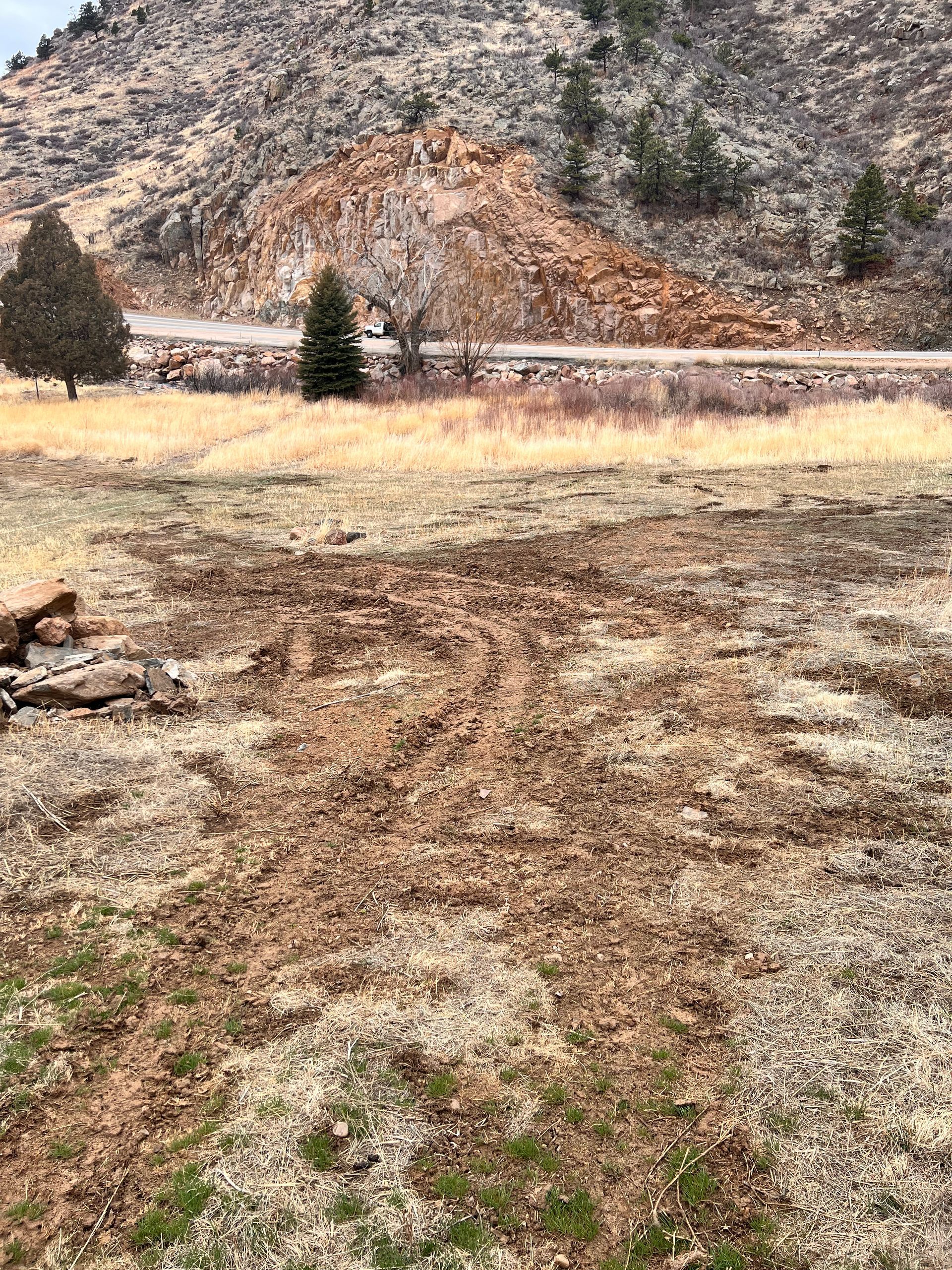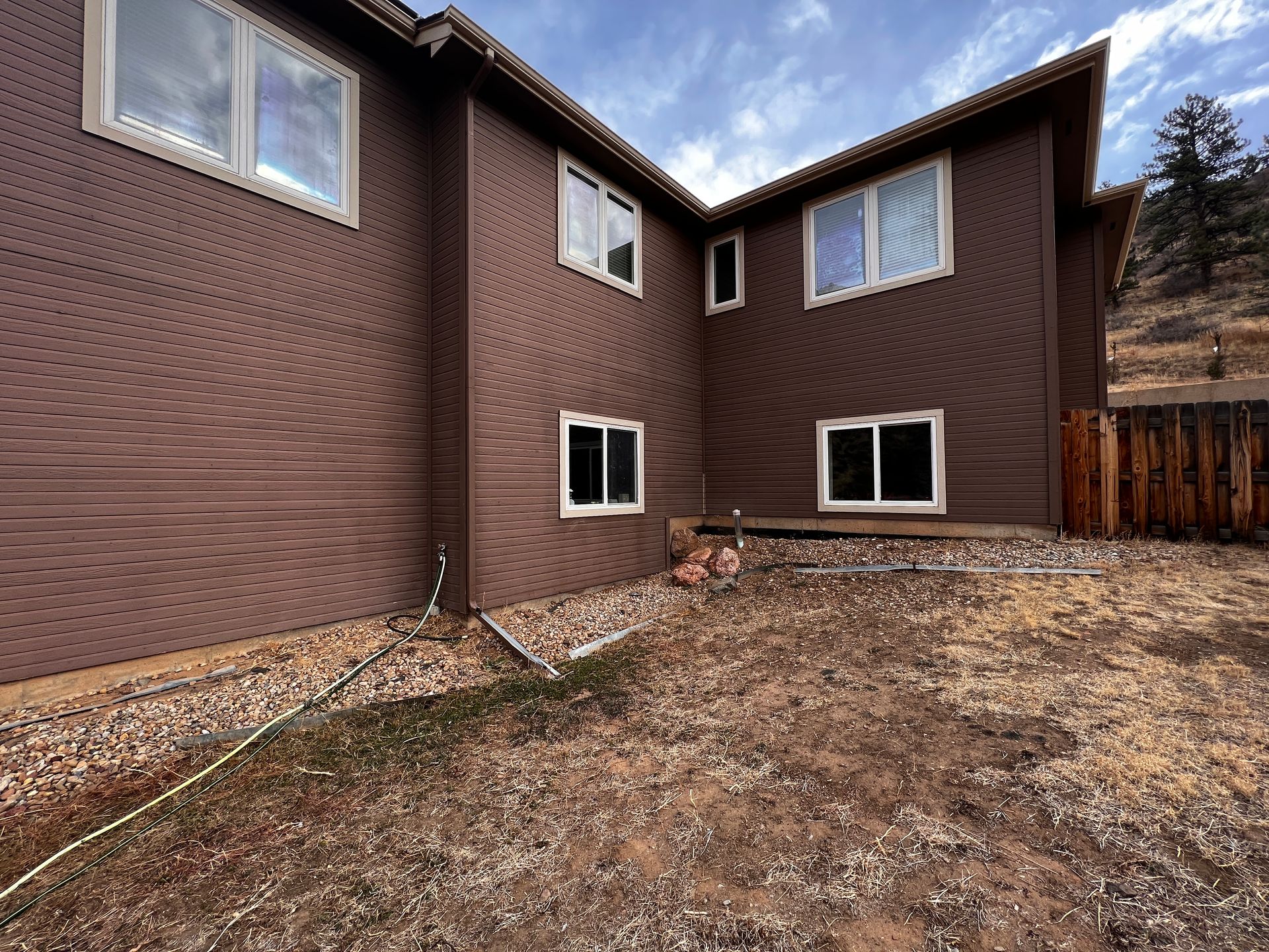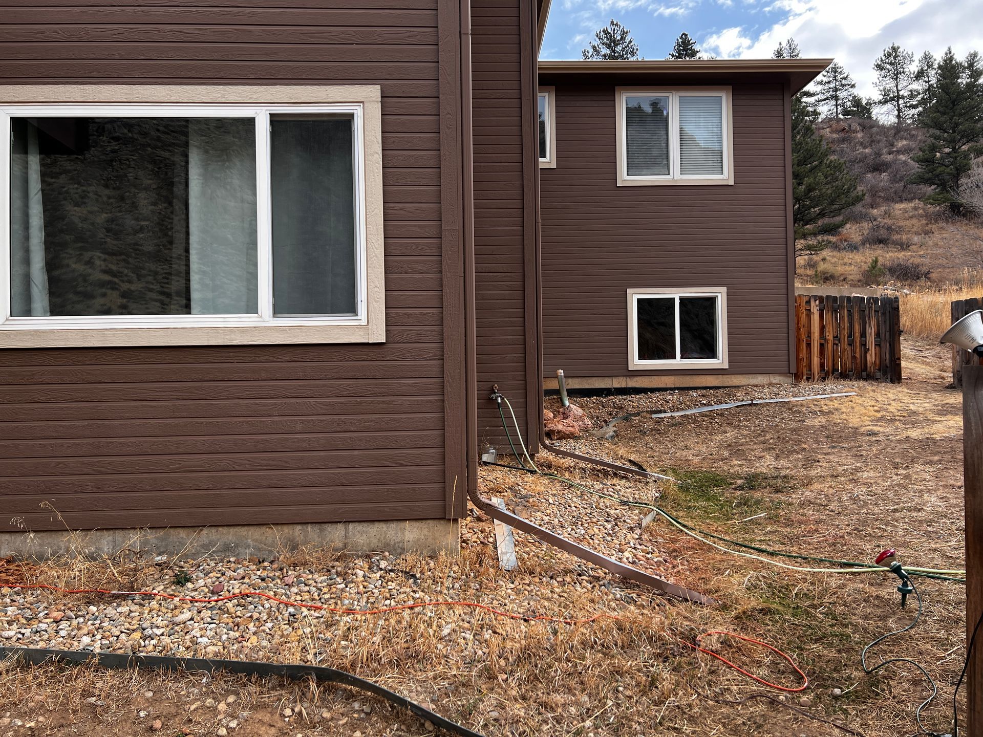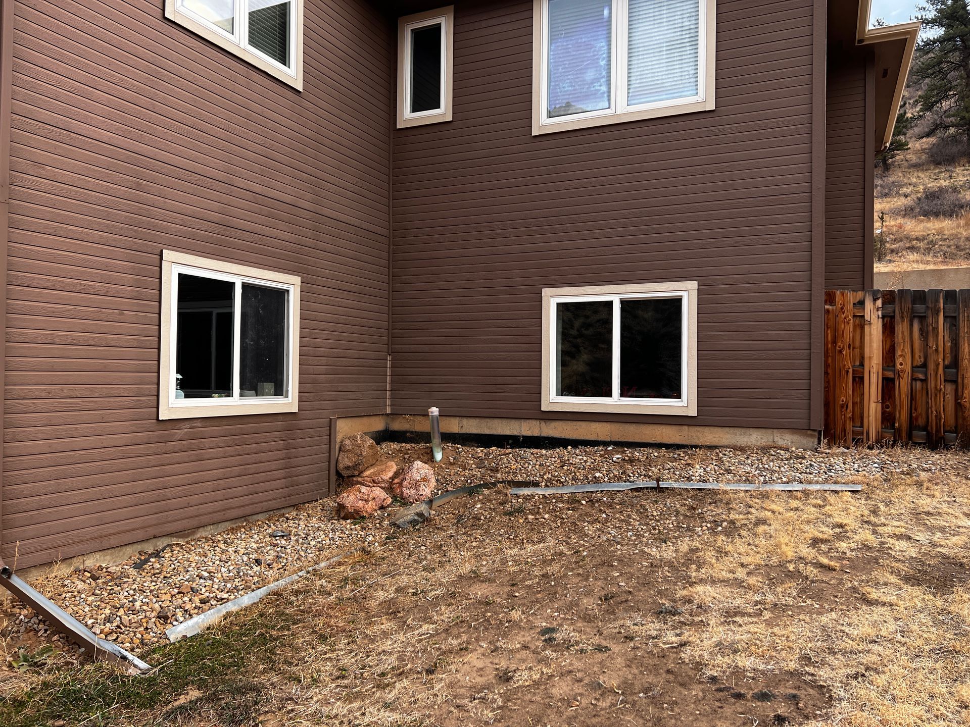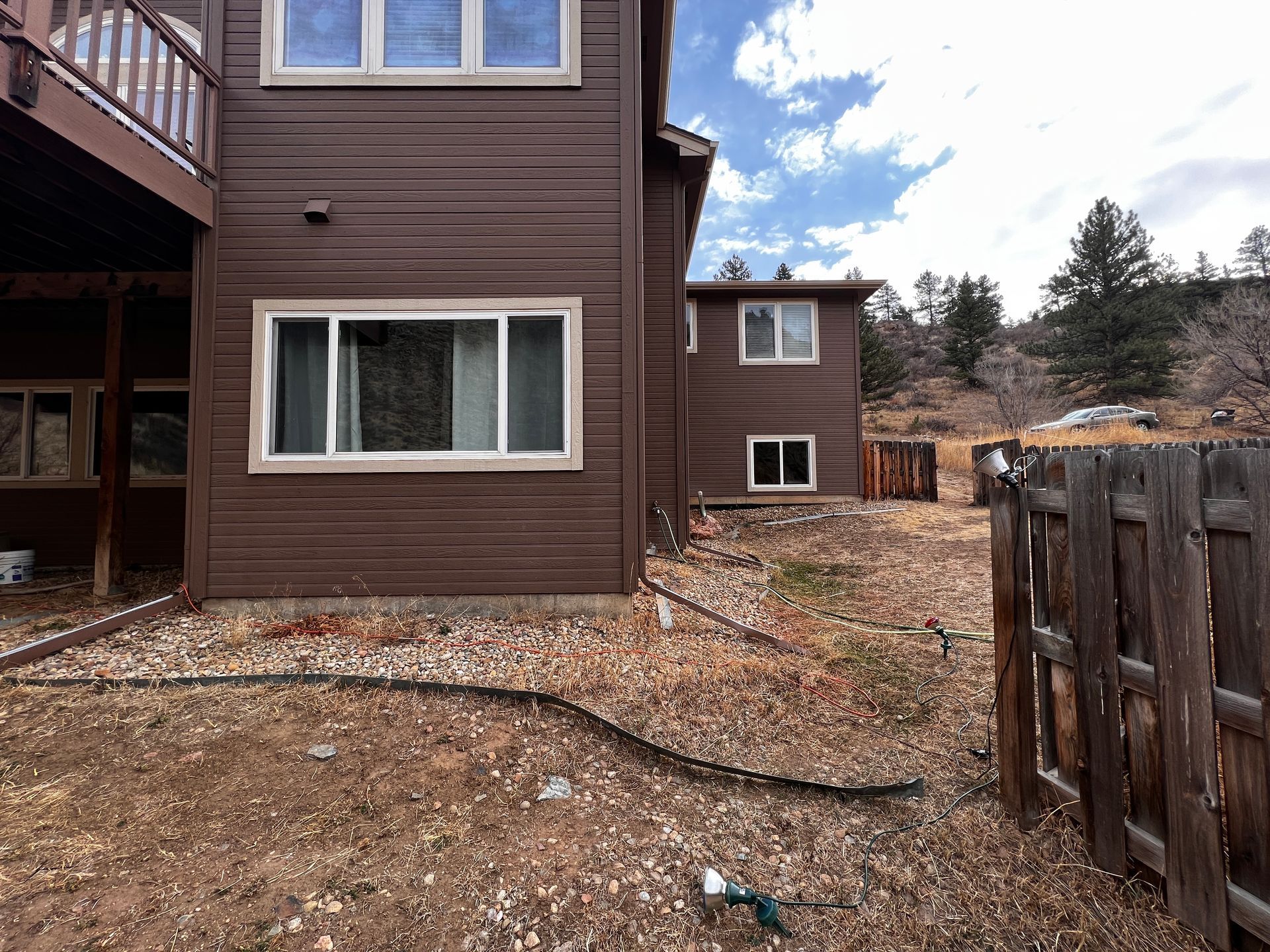 As part of fire mitigation work, Colorado red stripstone dry stacked 3' away from entire house with river rock in new beds. Boulder retaining wall also. Lyons, CO 2022