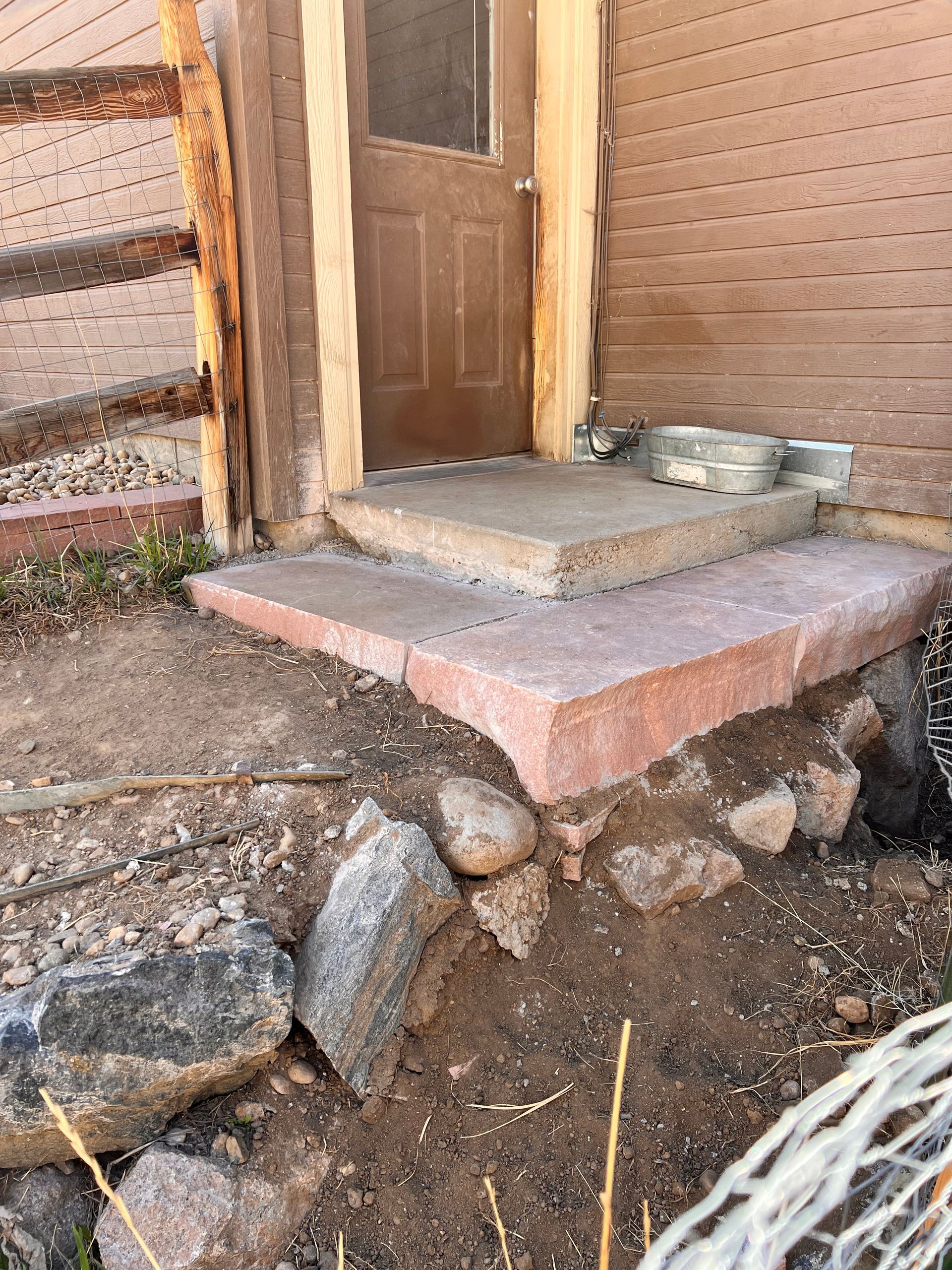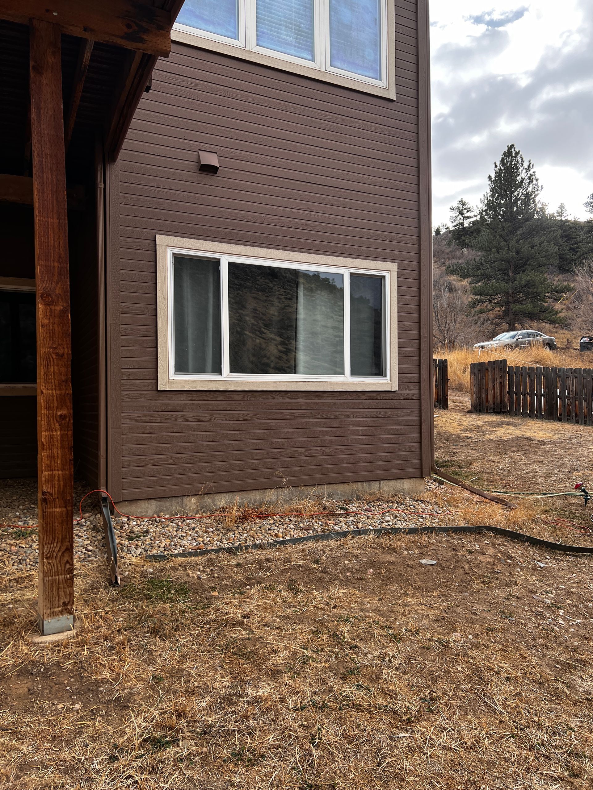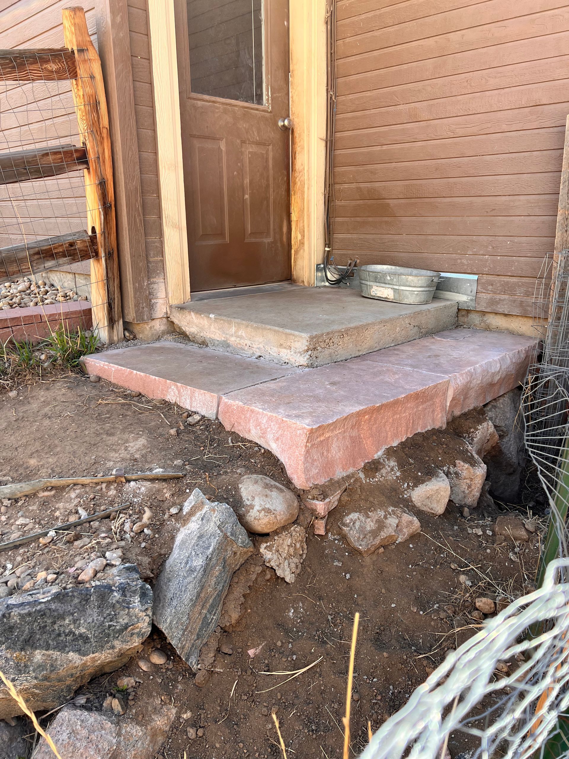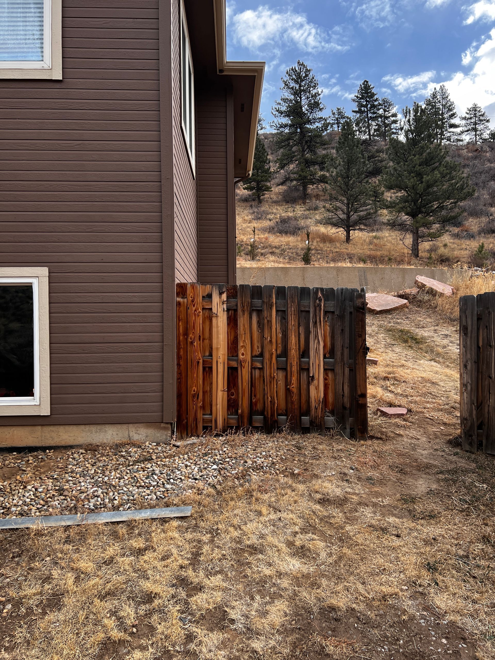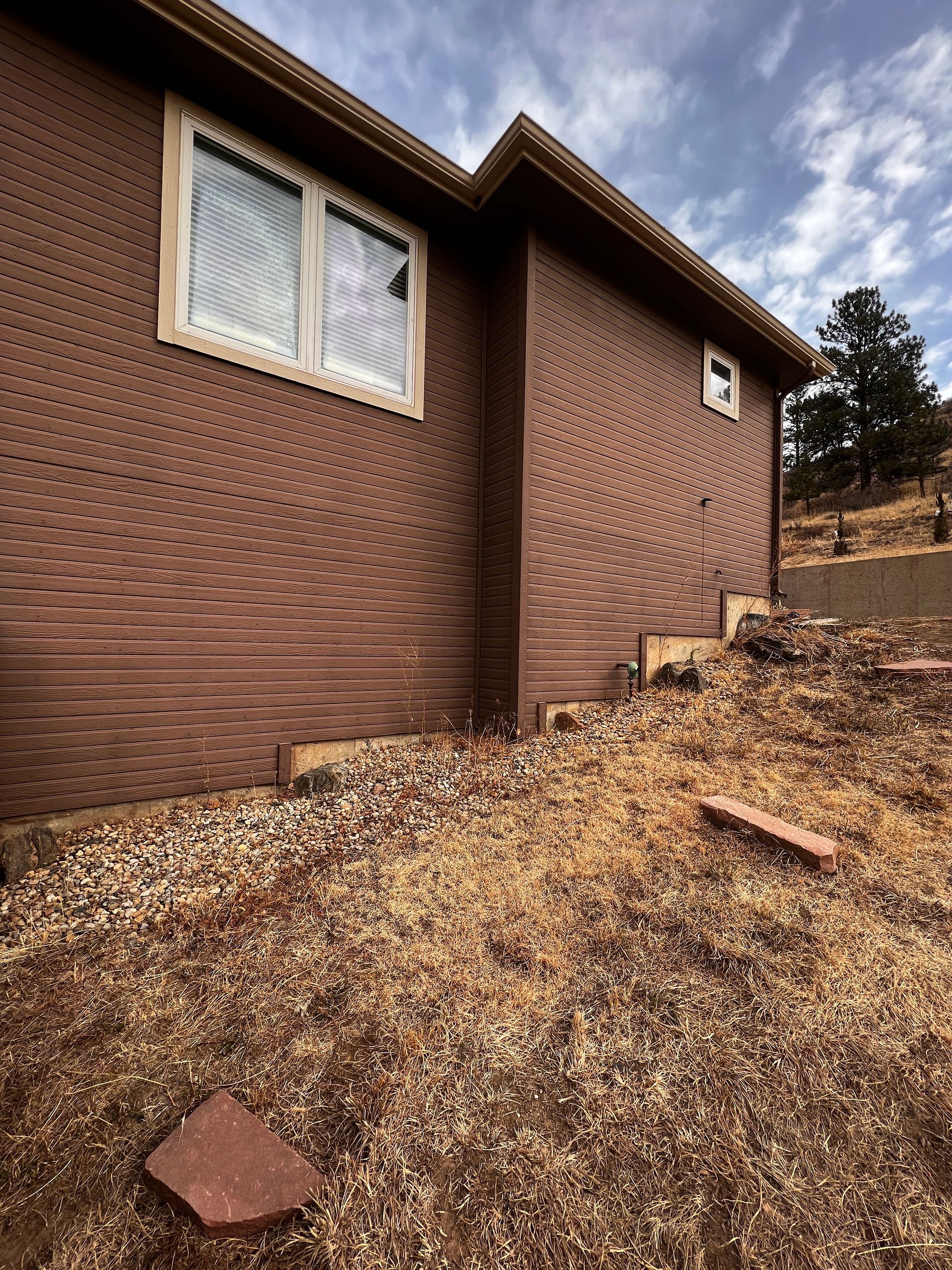 As part of fire mitigation work, Colorado red stripstone dry stacked 3' away from entire house with river rock in new beds. Boulder retaining wall also. Lyons, CO 2022