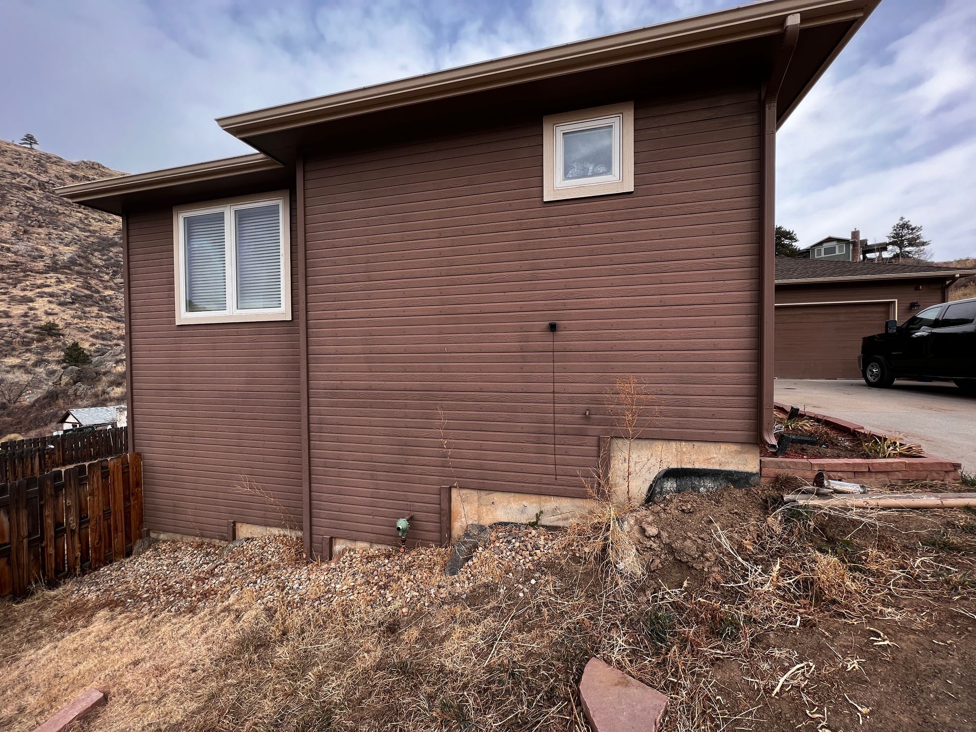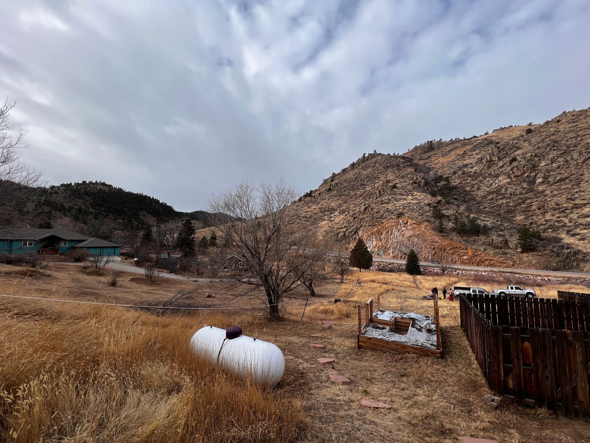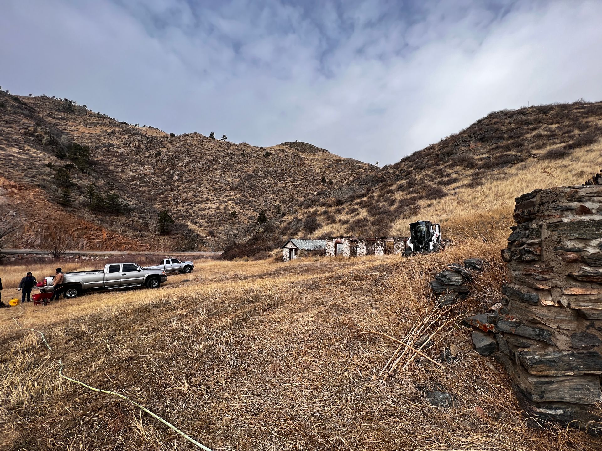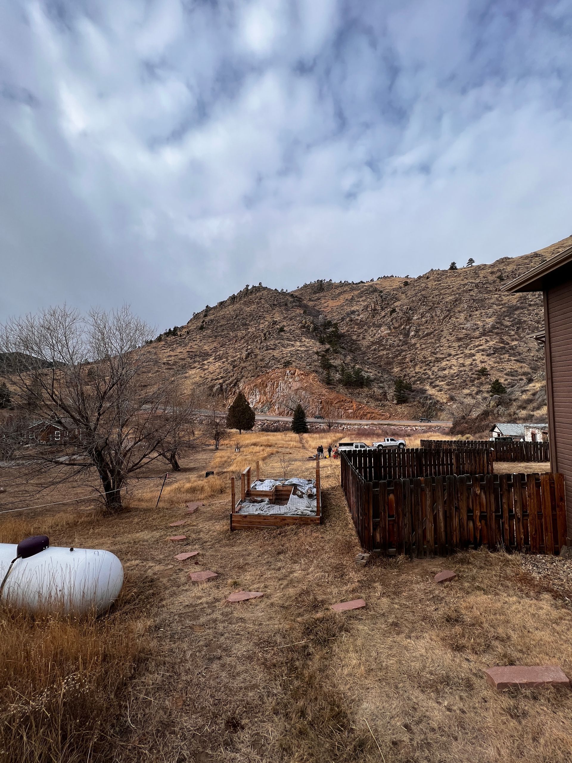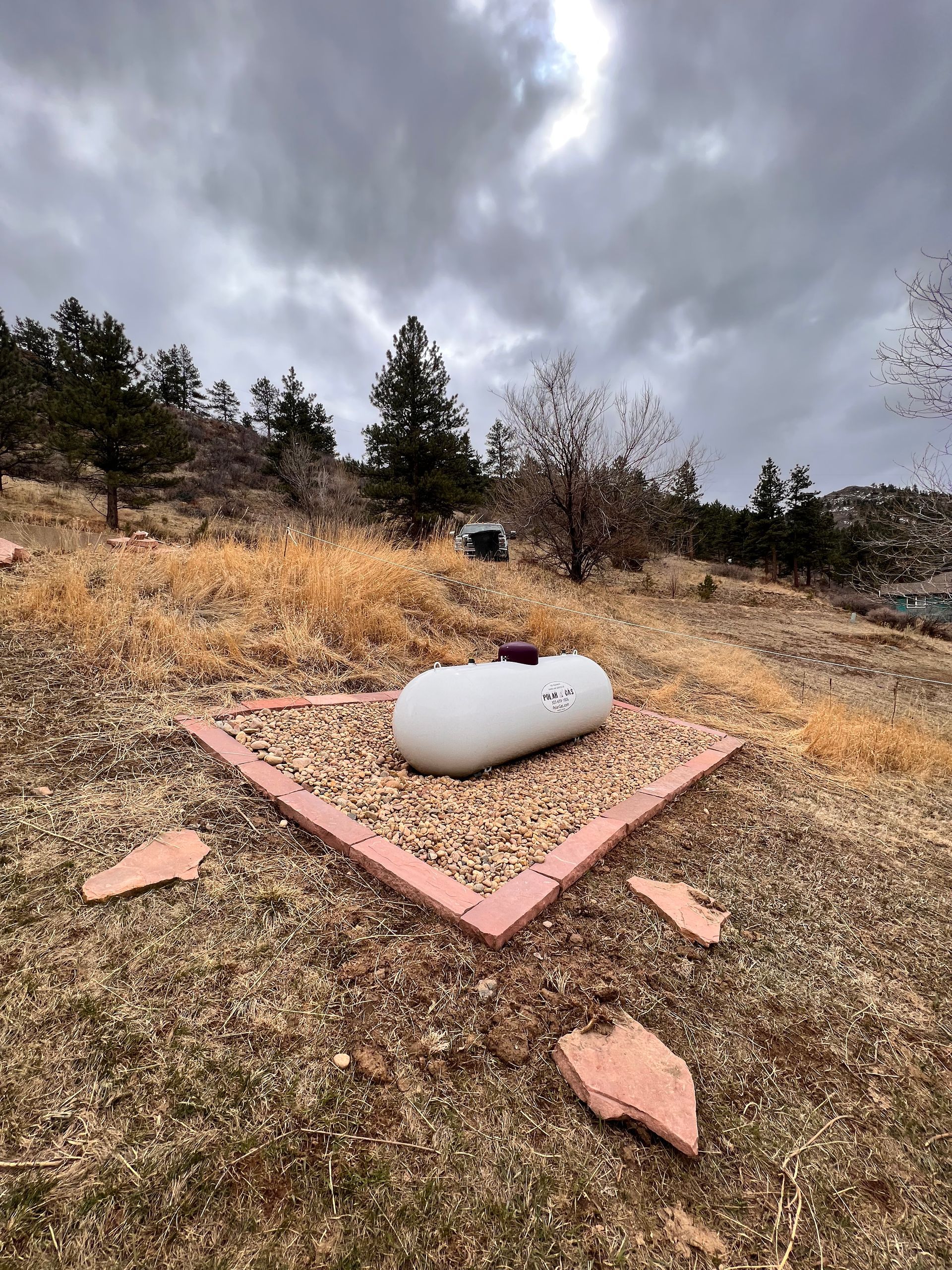As part of fire mitigation work, Colorado red stripstone dry stacked 3' away from entire house with river rock in new beds. Boulder retaining wall also. Lyons, CO 2022