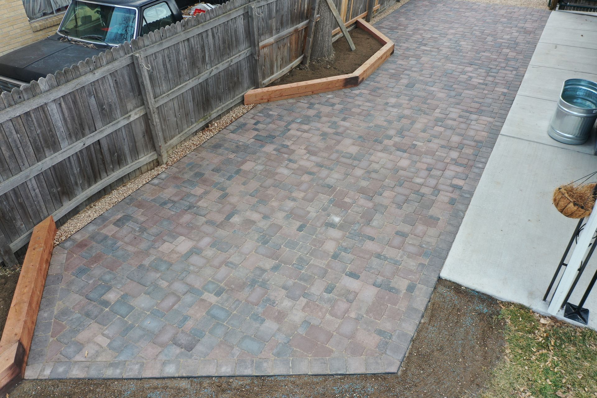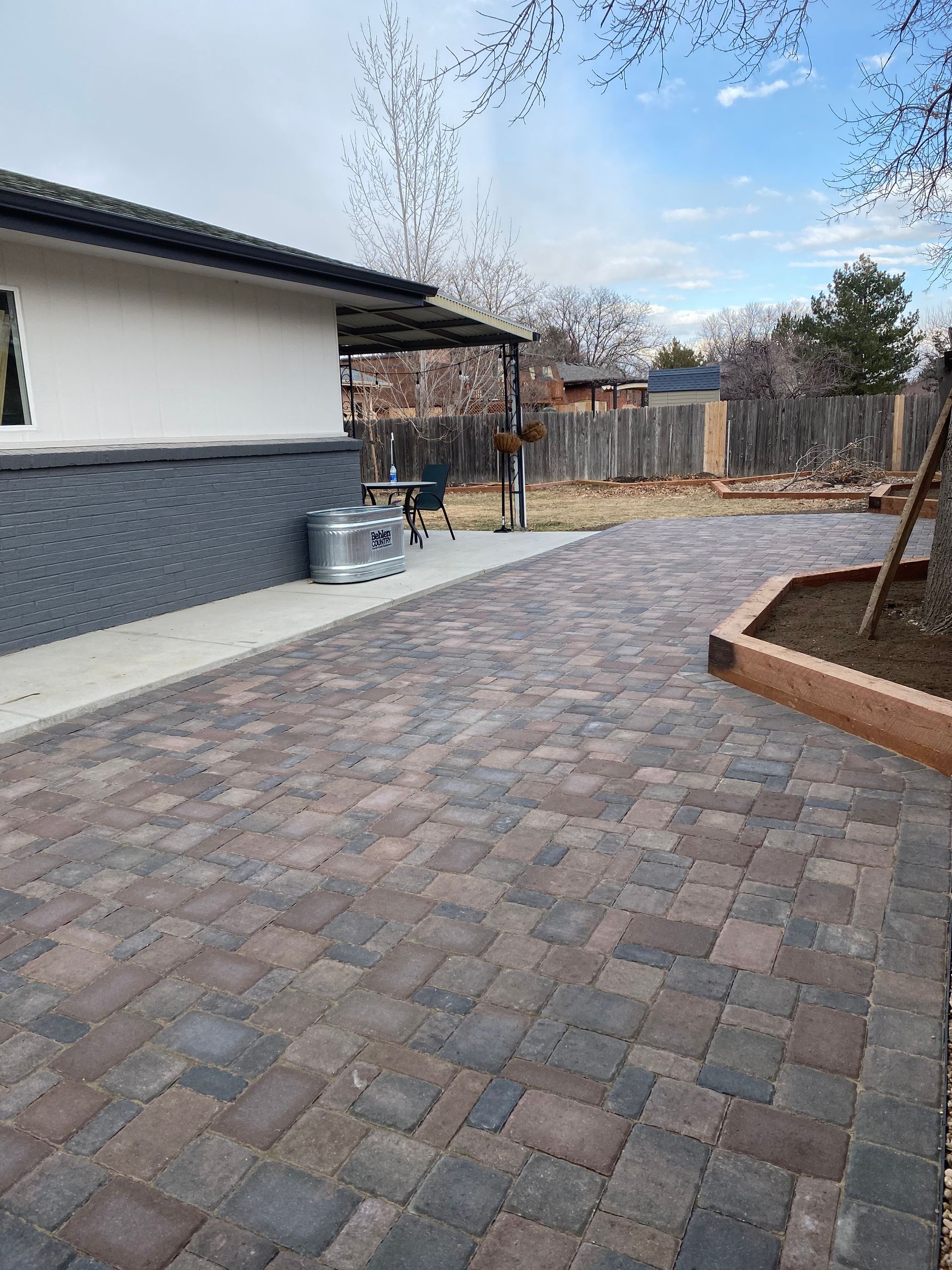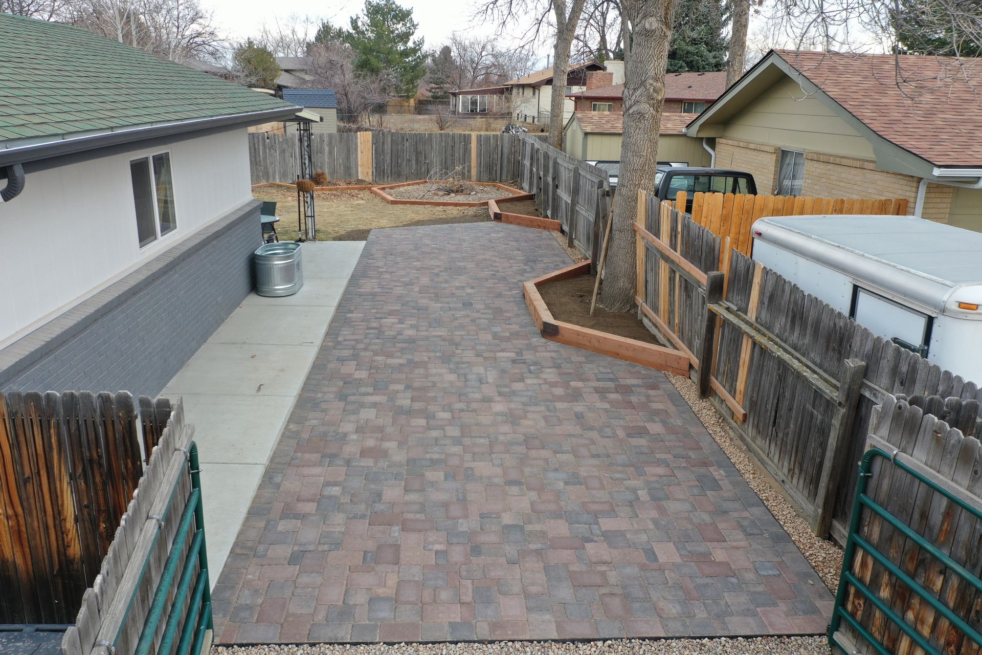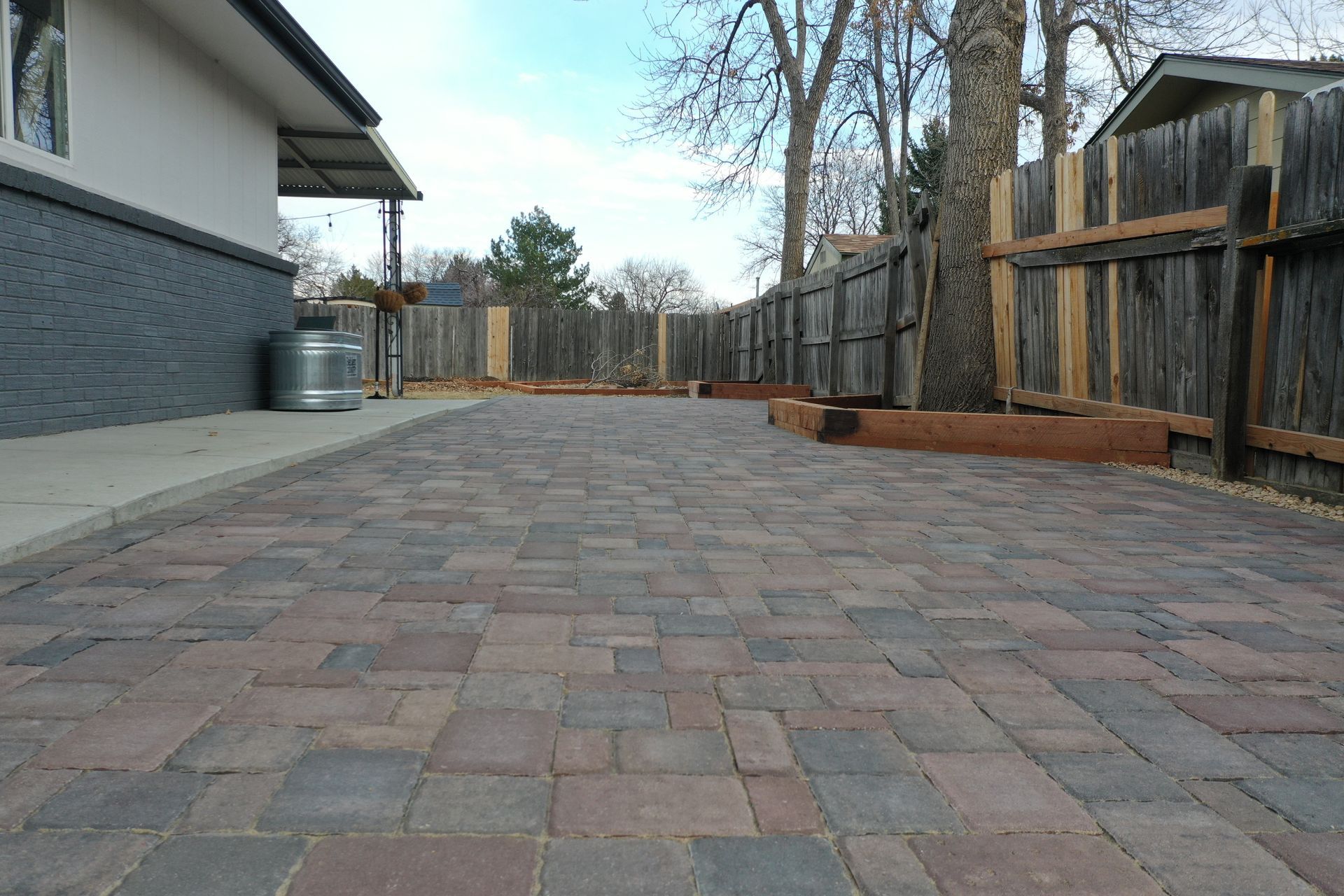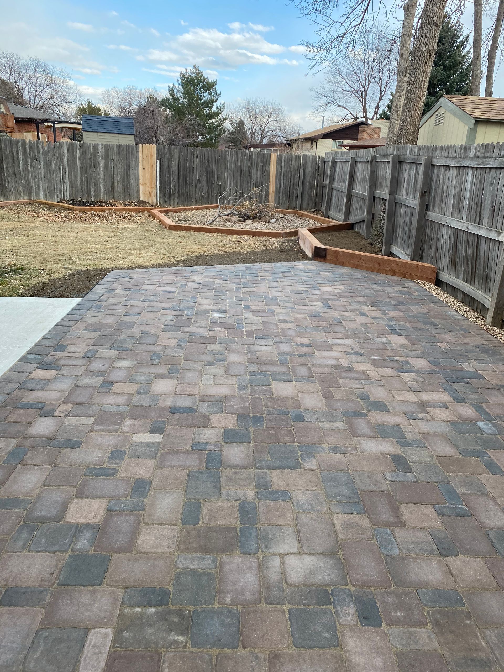 Install of paver patio and driveway that could be used for vehicular use. Planting boxes around trees using pine timbers. Planting and amending of soil areas in front yard. Longmont, CO 2021 & 2022