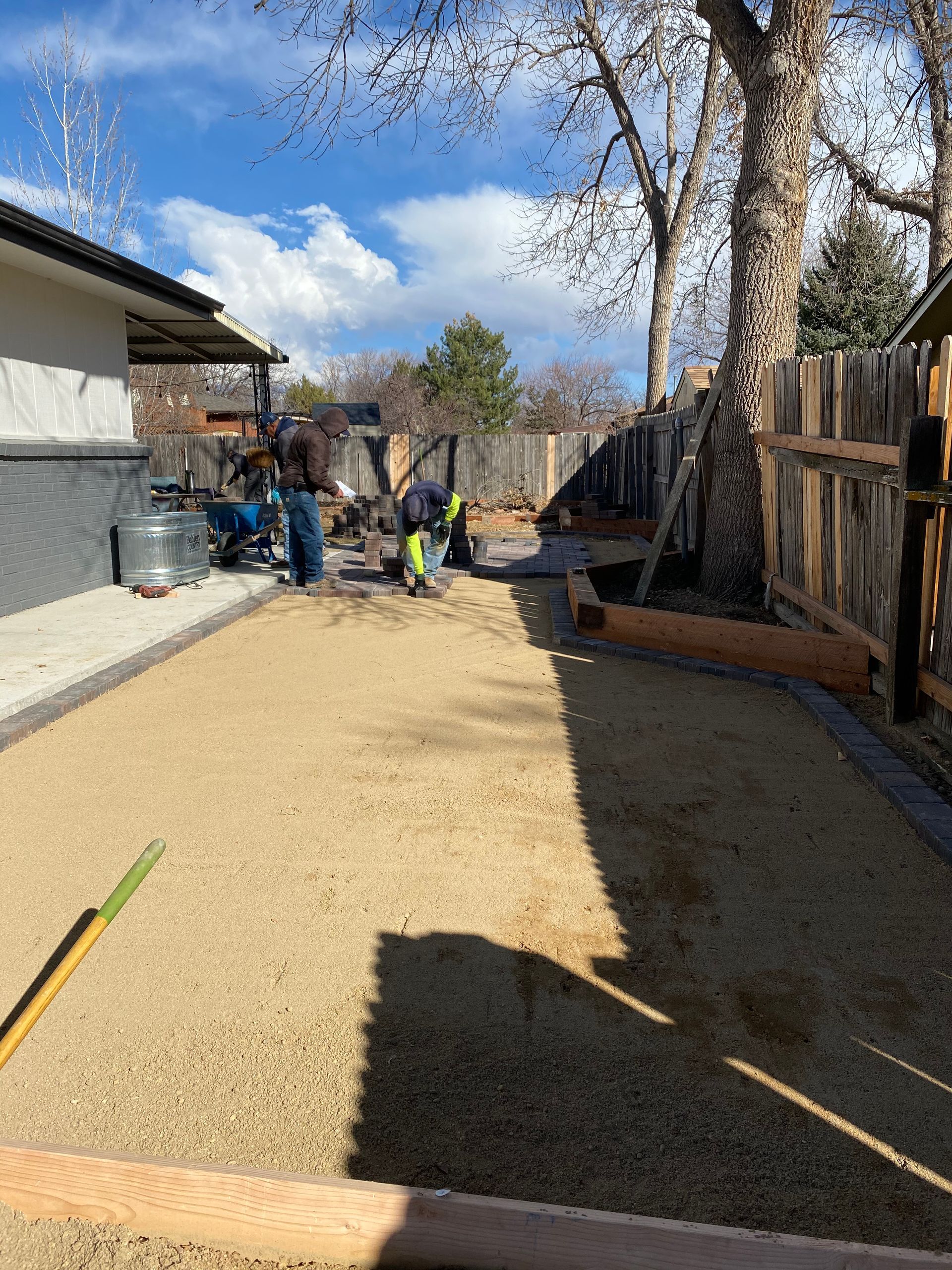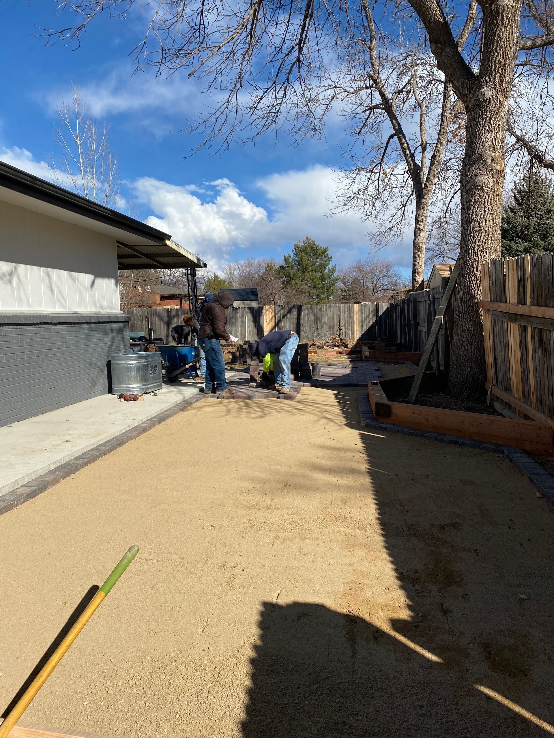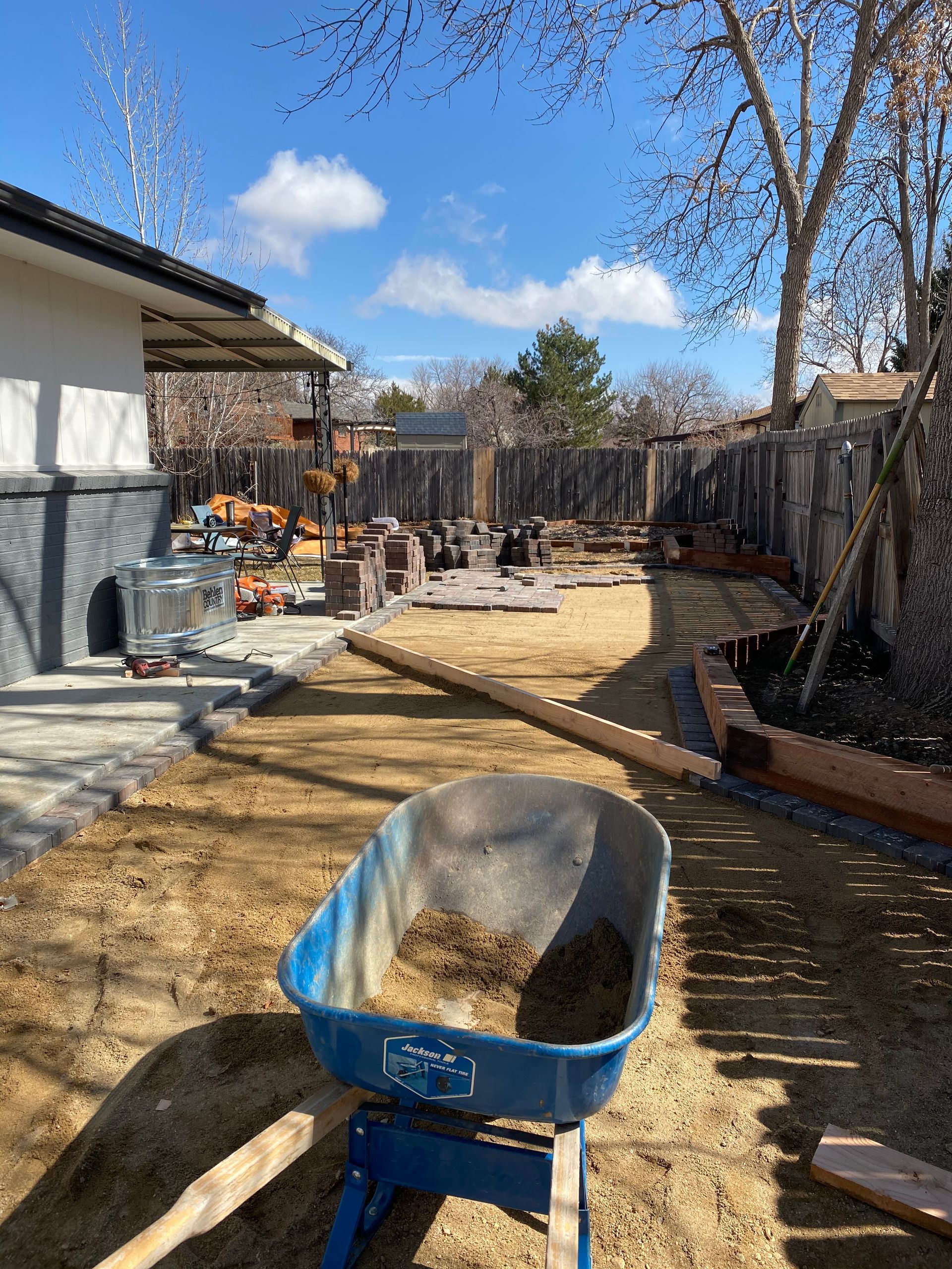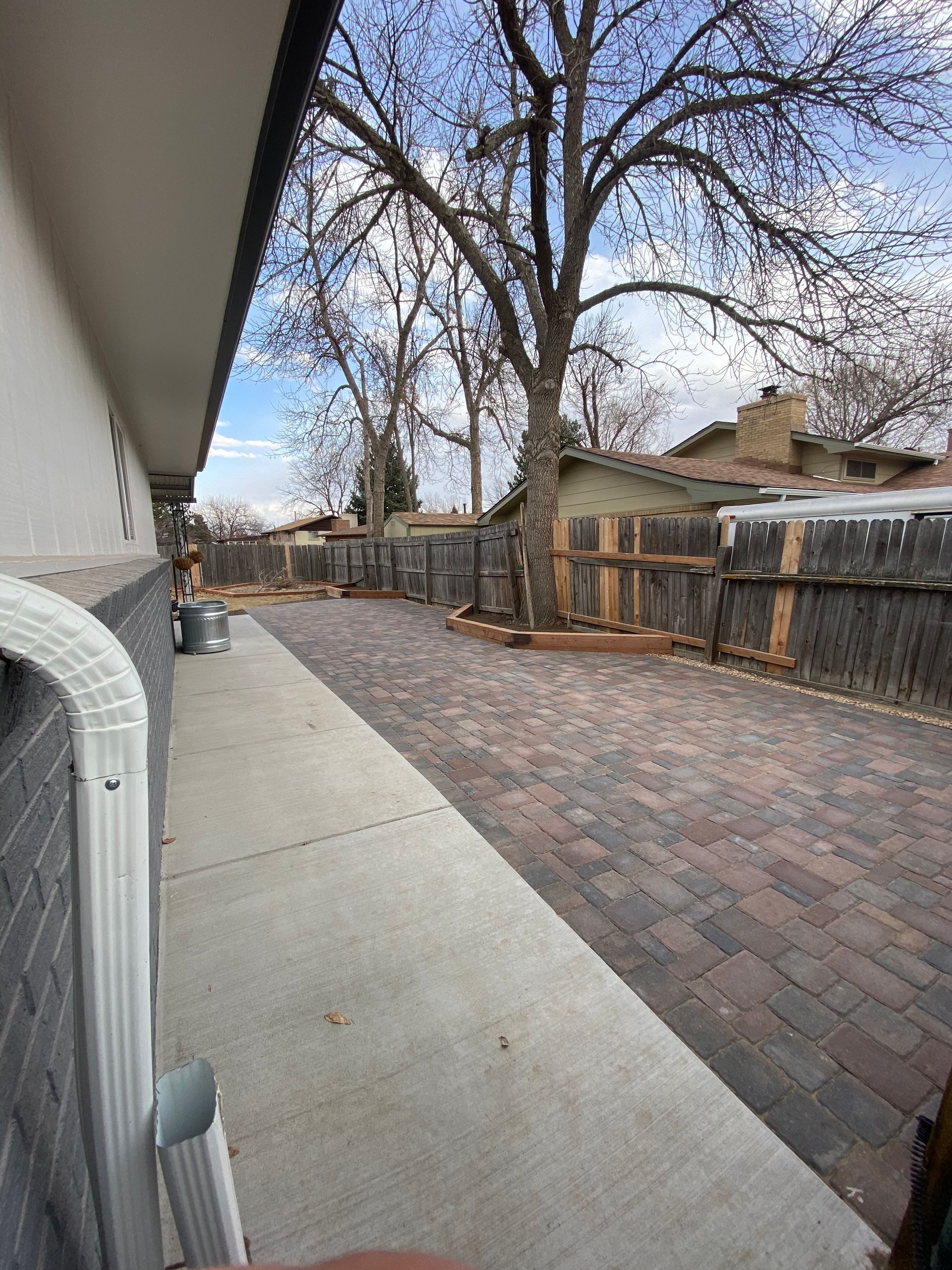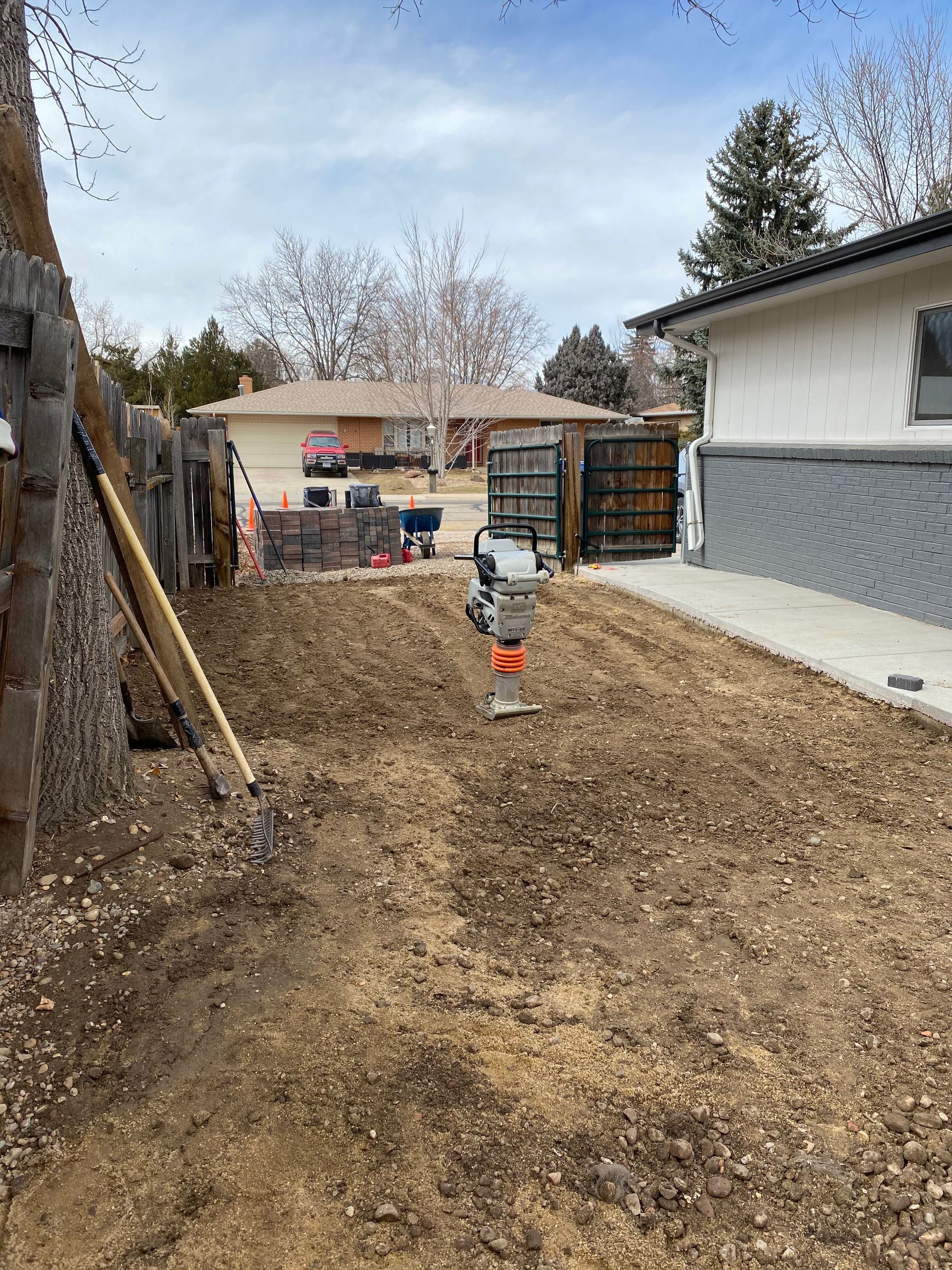 Install of paver patio and driveway that could be used for vehicular use. Planting boxes around trees using pine timbers. Planting and amending of soil areas in front yard. Longmont, CO 2021 & 2022
