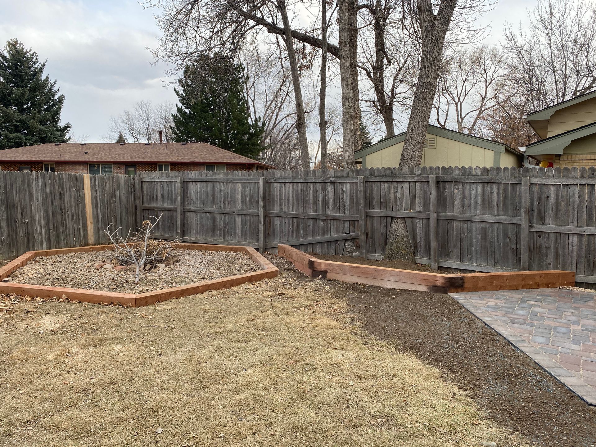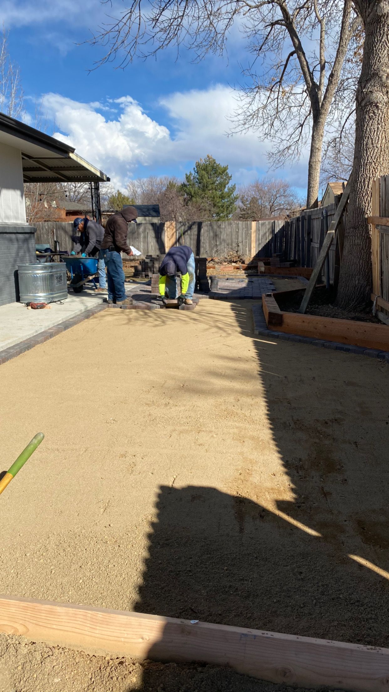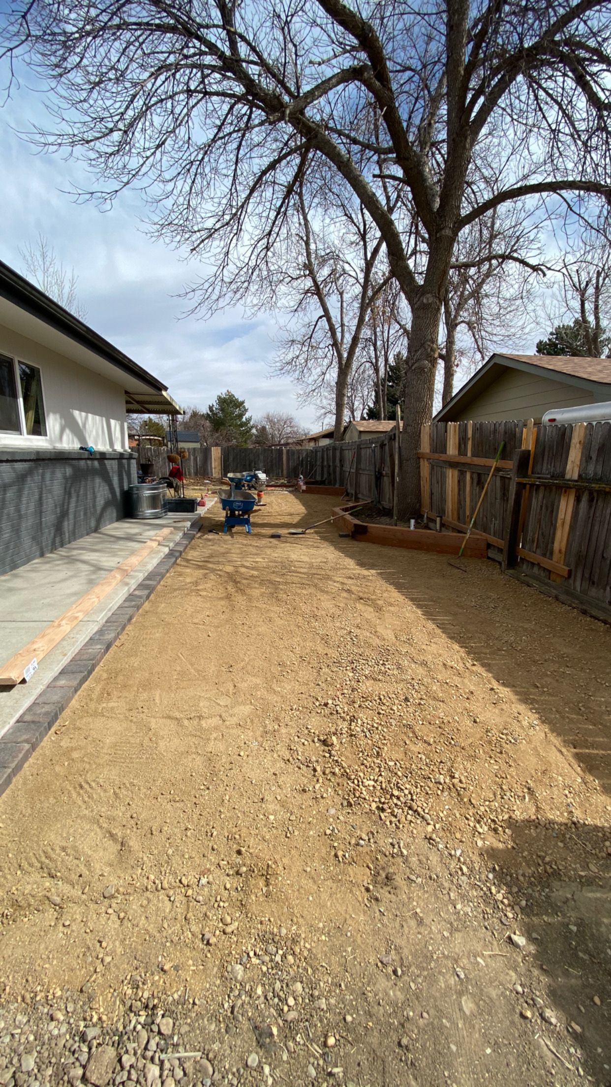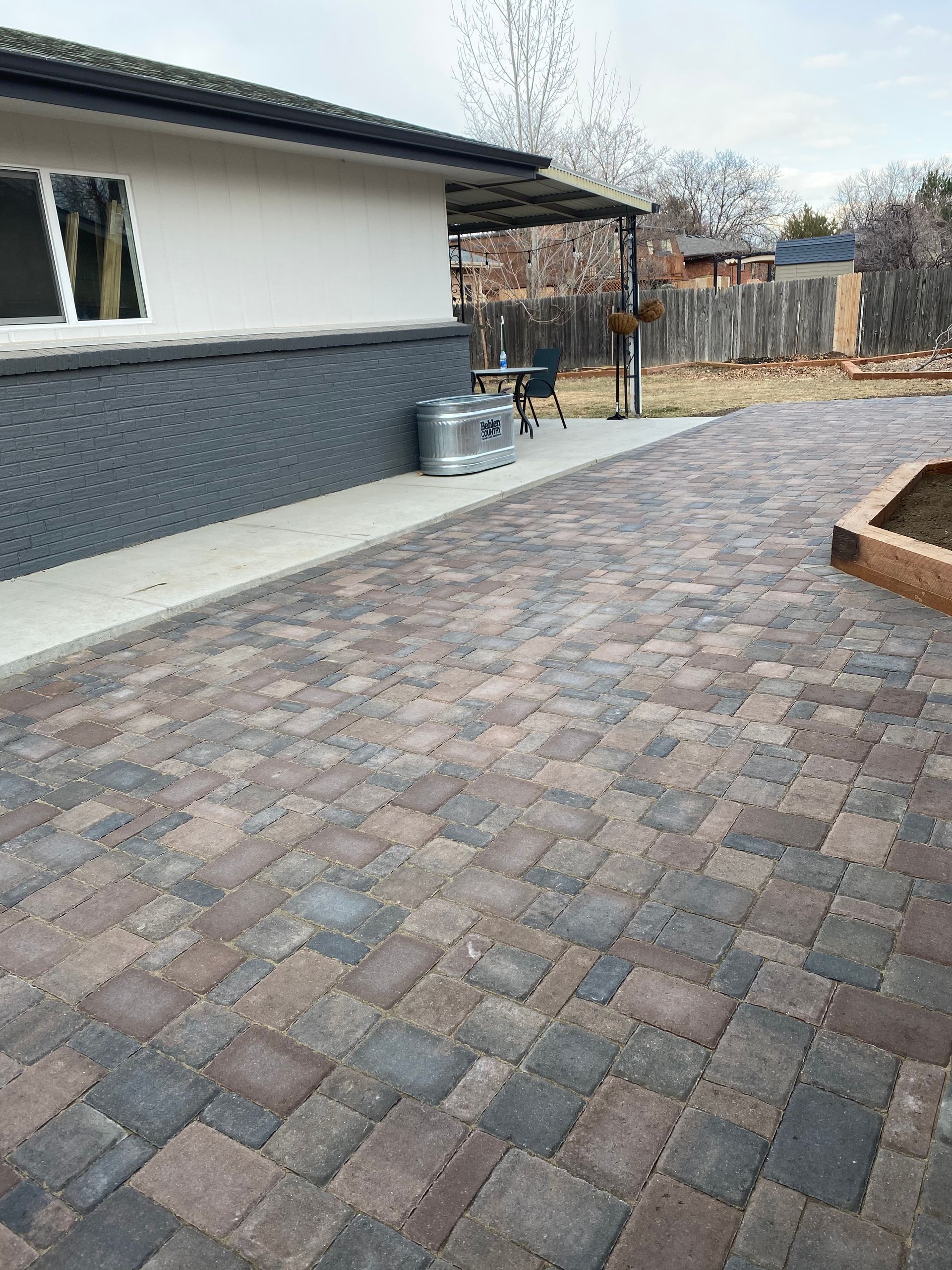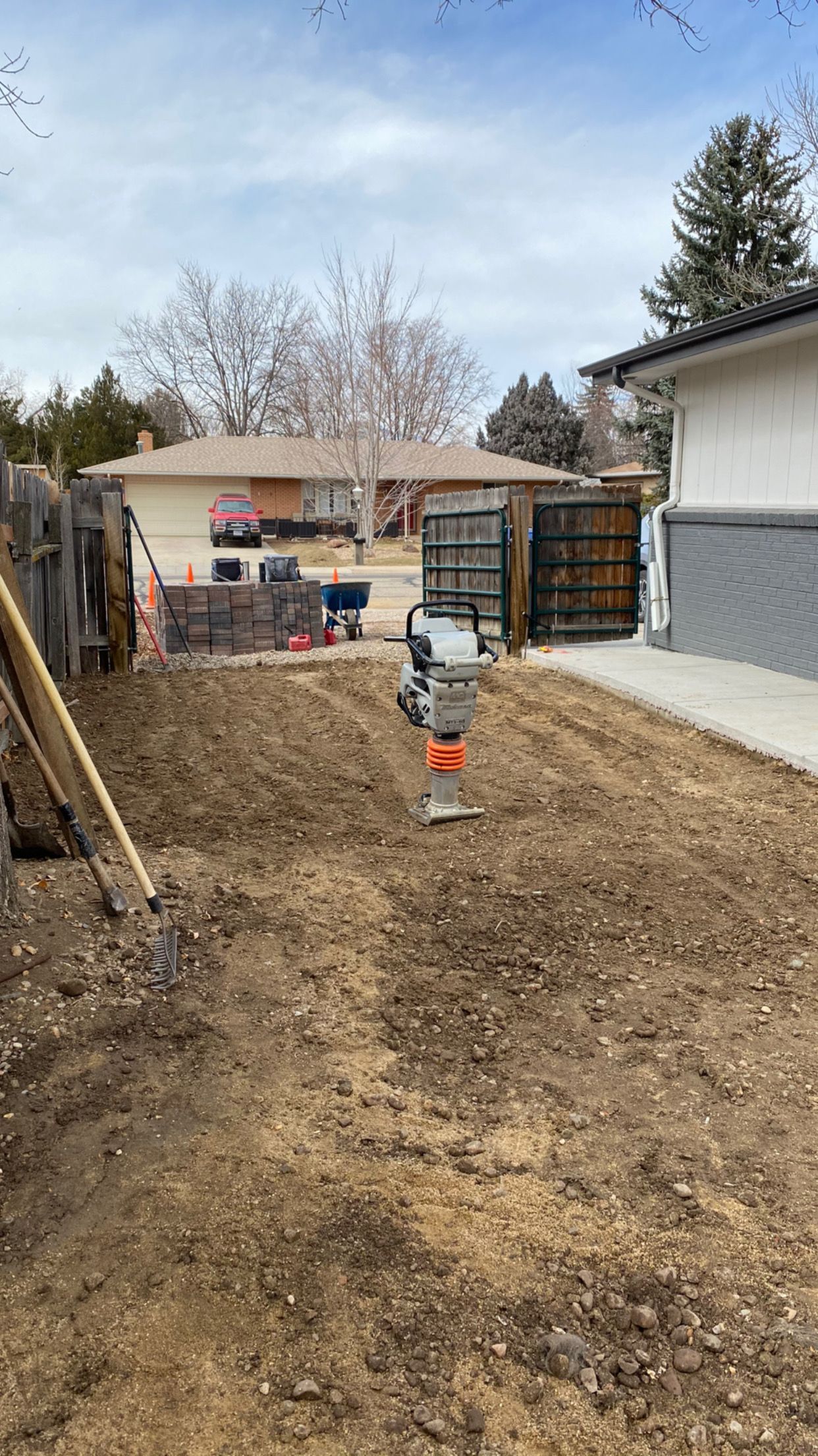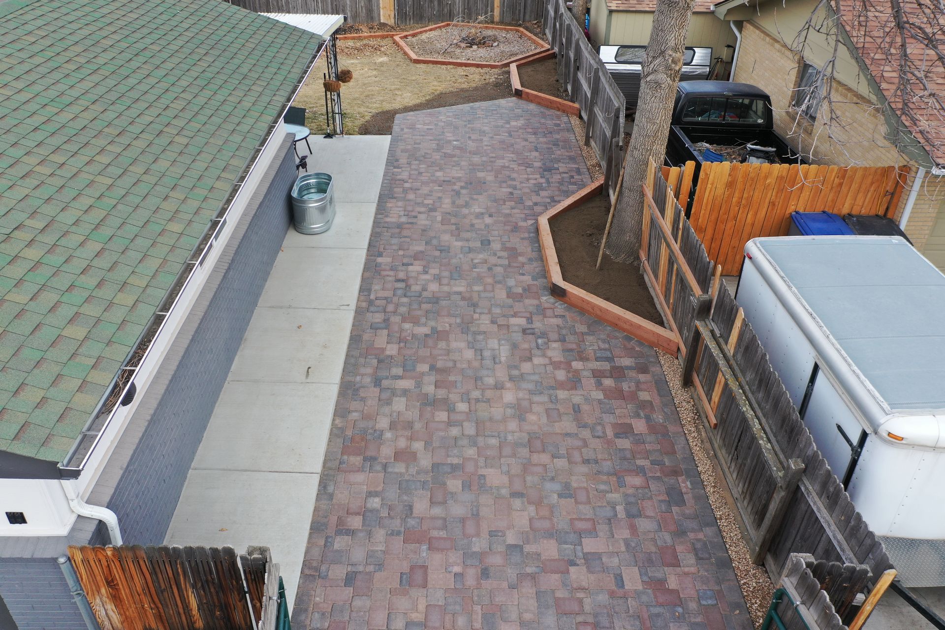 Install of paver patio and driveway that could be used for vehicular use. Planting boxes around trees using pine timbers. Planting and amending of soil areas in front yard. Longmont, CO 2021 & 2022