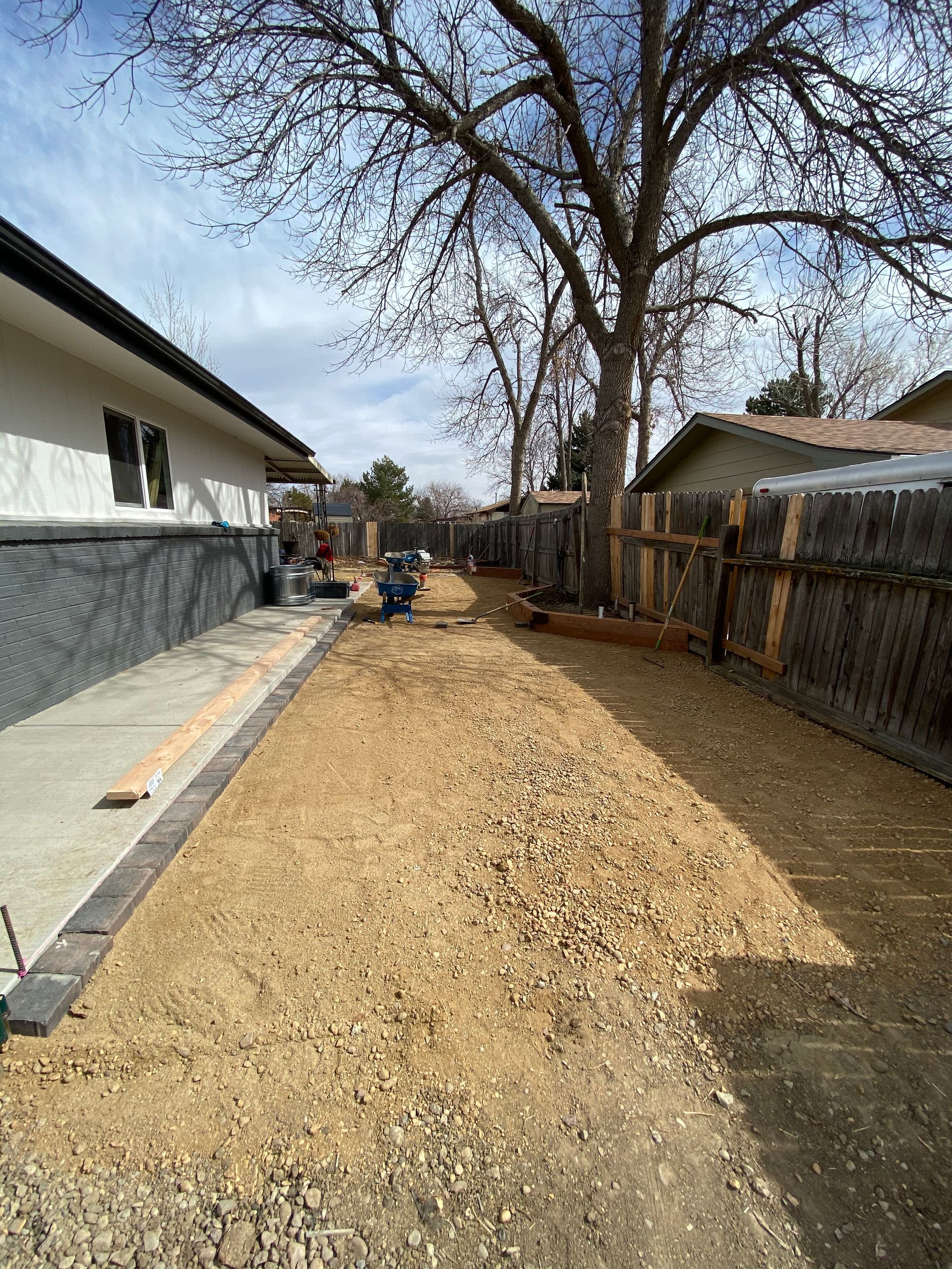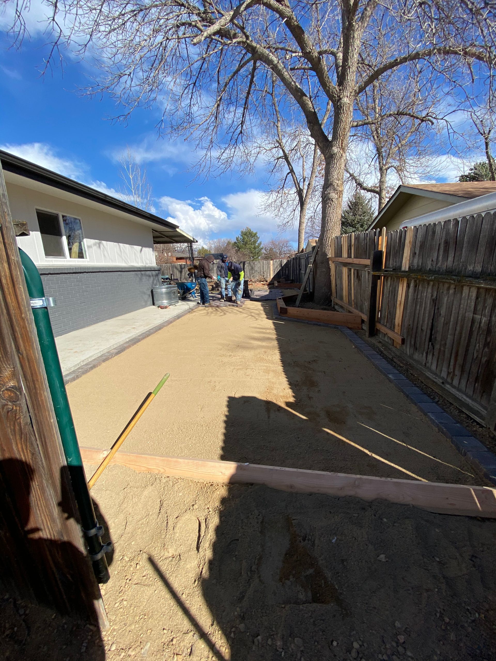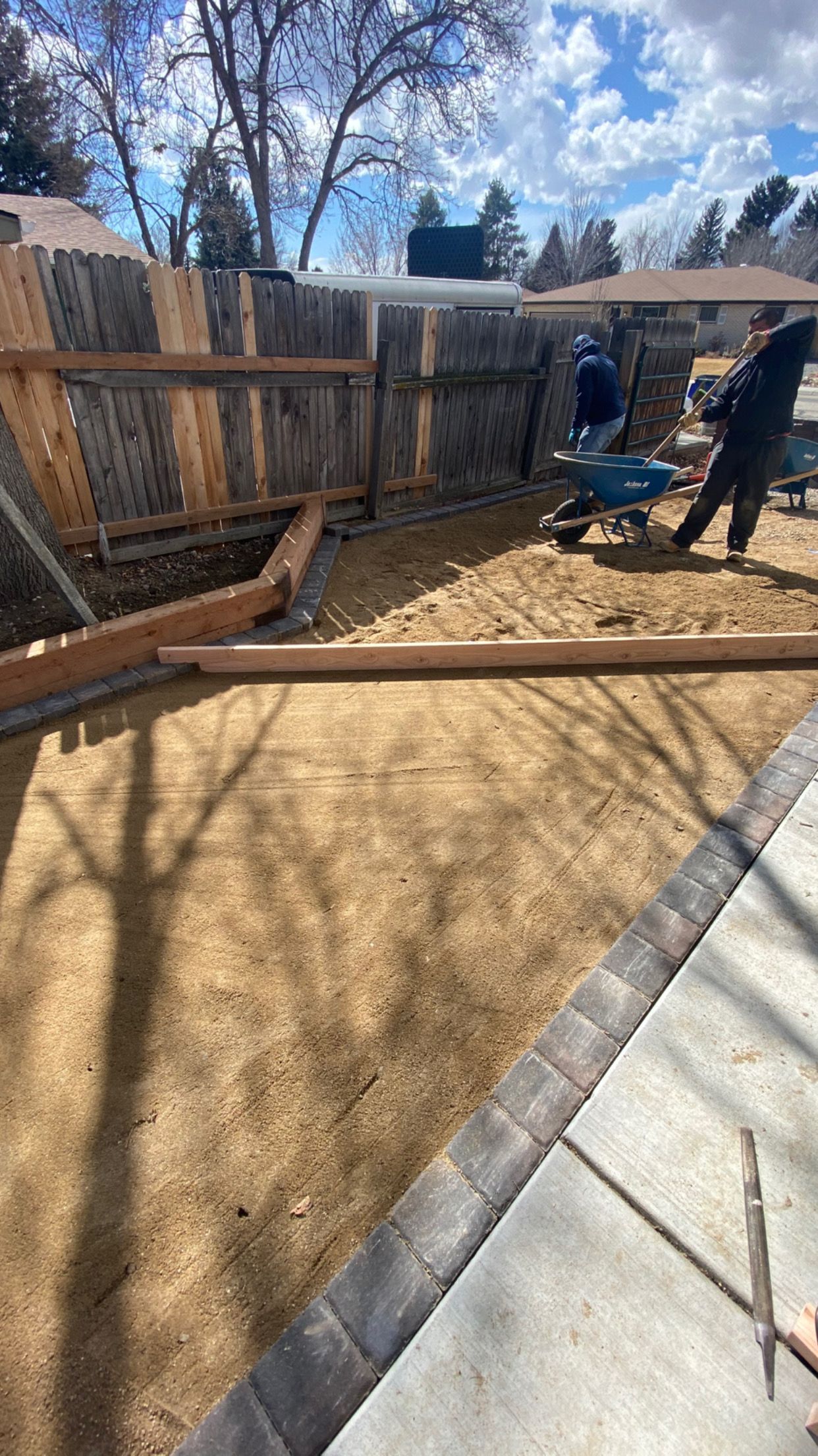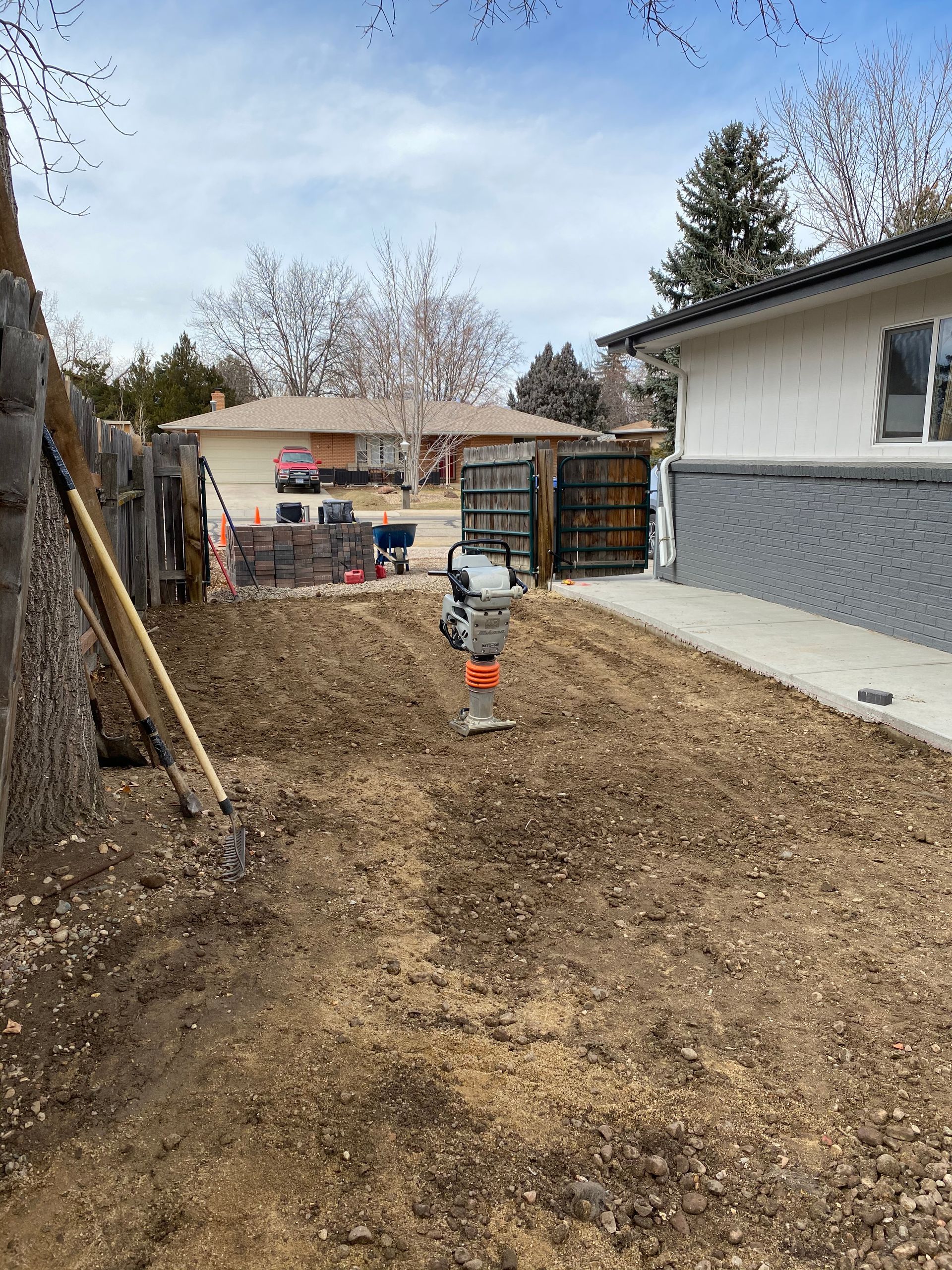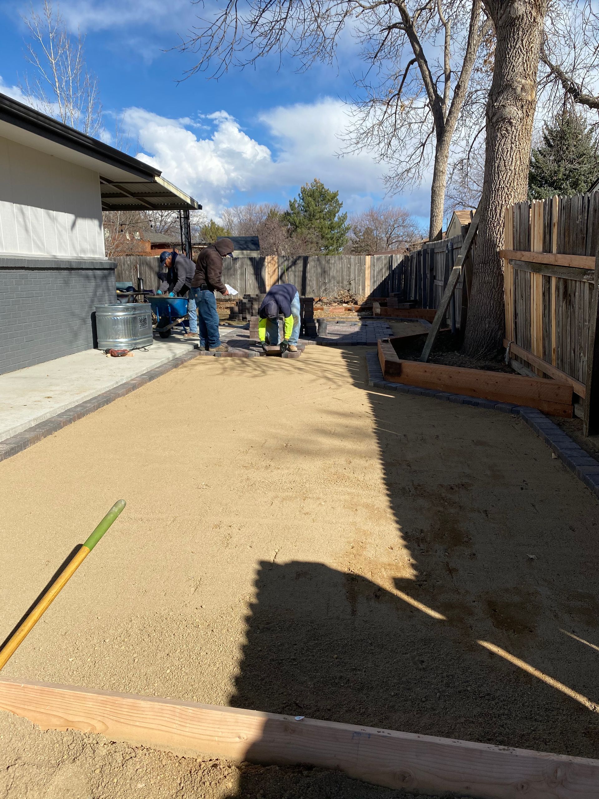 Install of paver patio and driveway that could be used for vehicular use. Planting boxes around trees using pine timbers. Planting and amending of soil areas in front yard. Longmont, CO 2021 & 2022