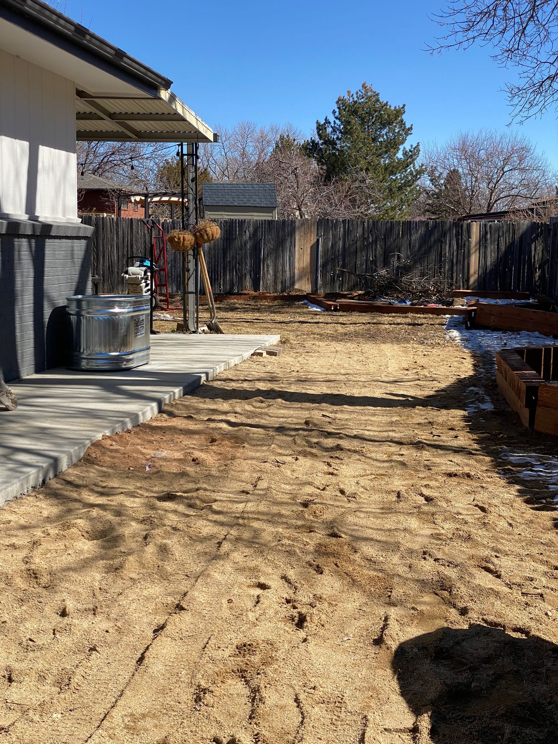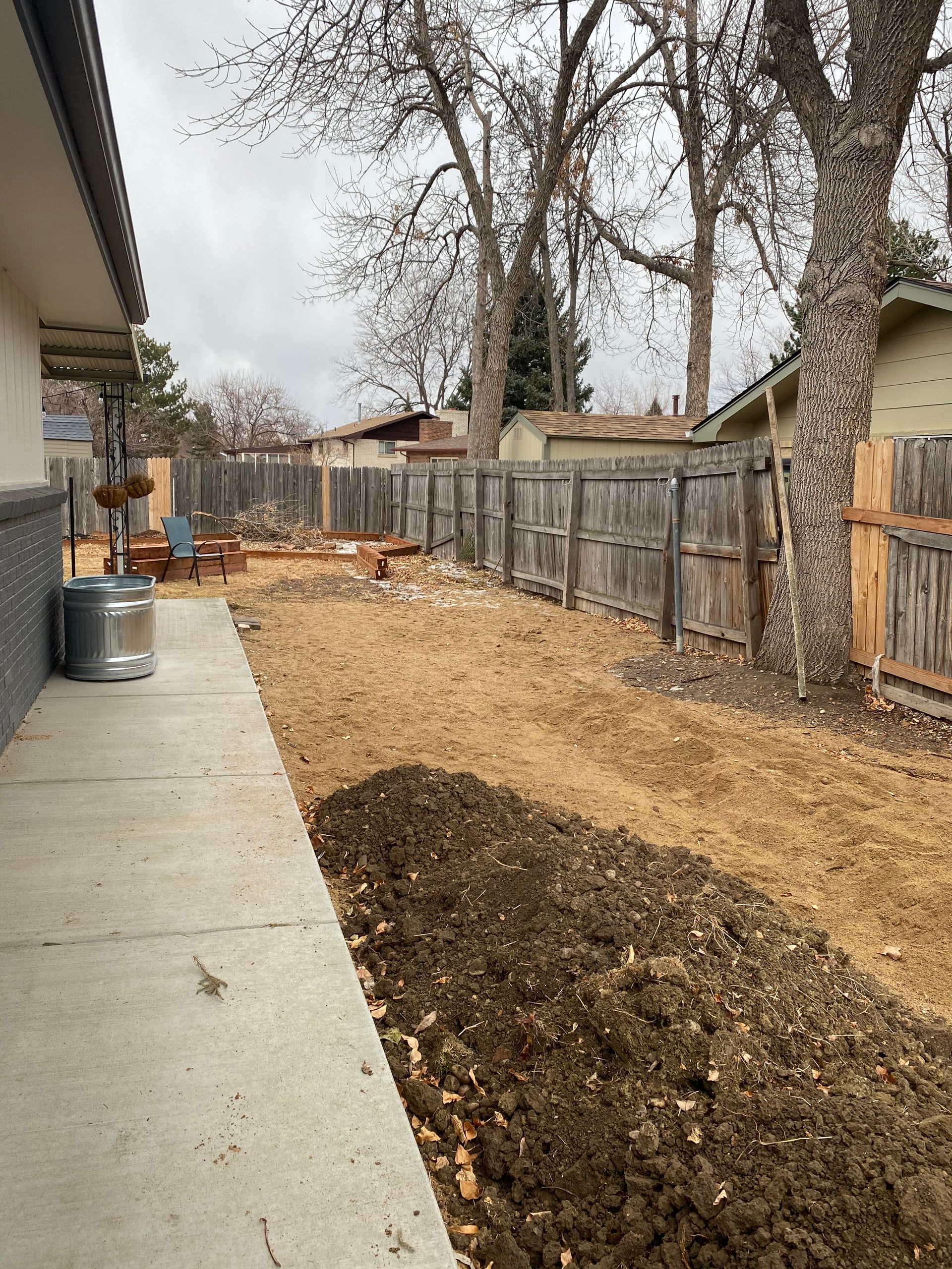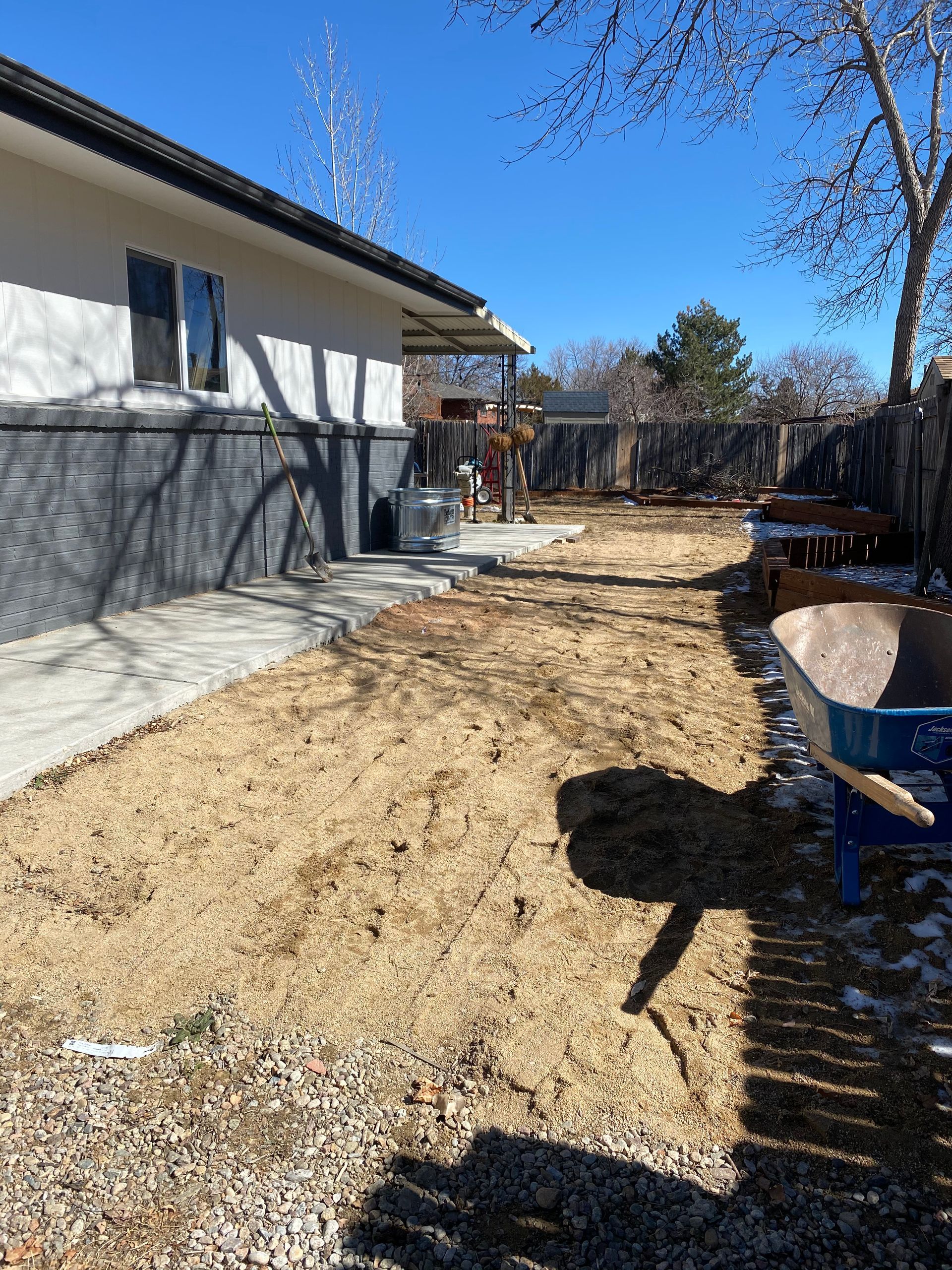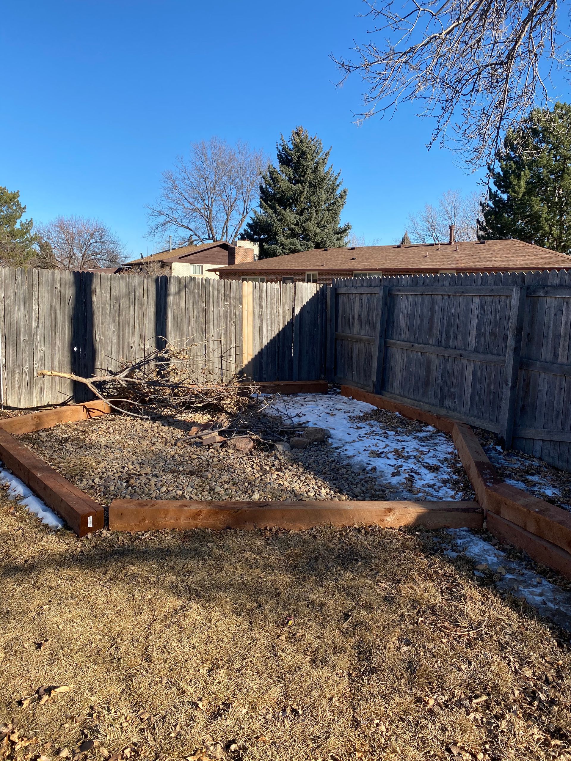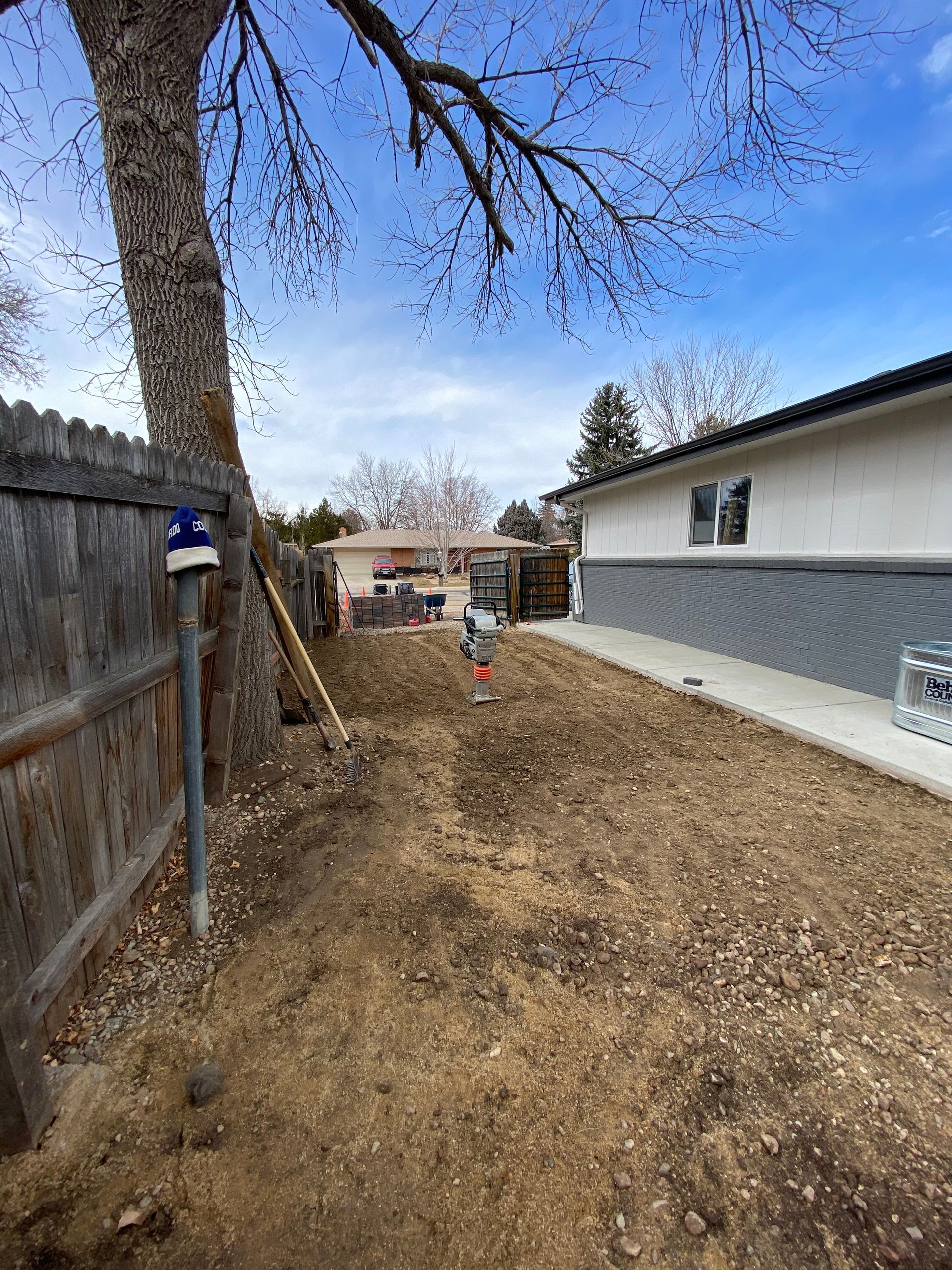Install of paver patio and driveway that could be used for vehicular use. Planting boxes around trees using pine timbers. Planting and amending of soil areas in front yard. Longmont, CO 2021 & 2022
