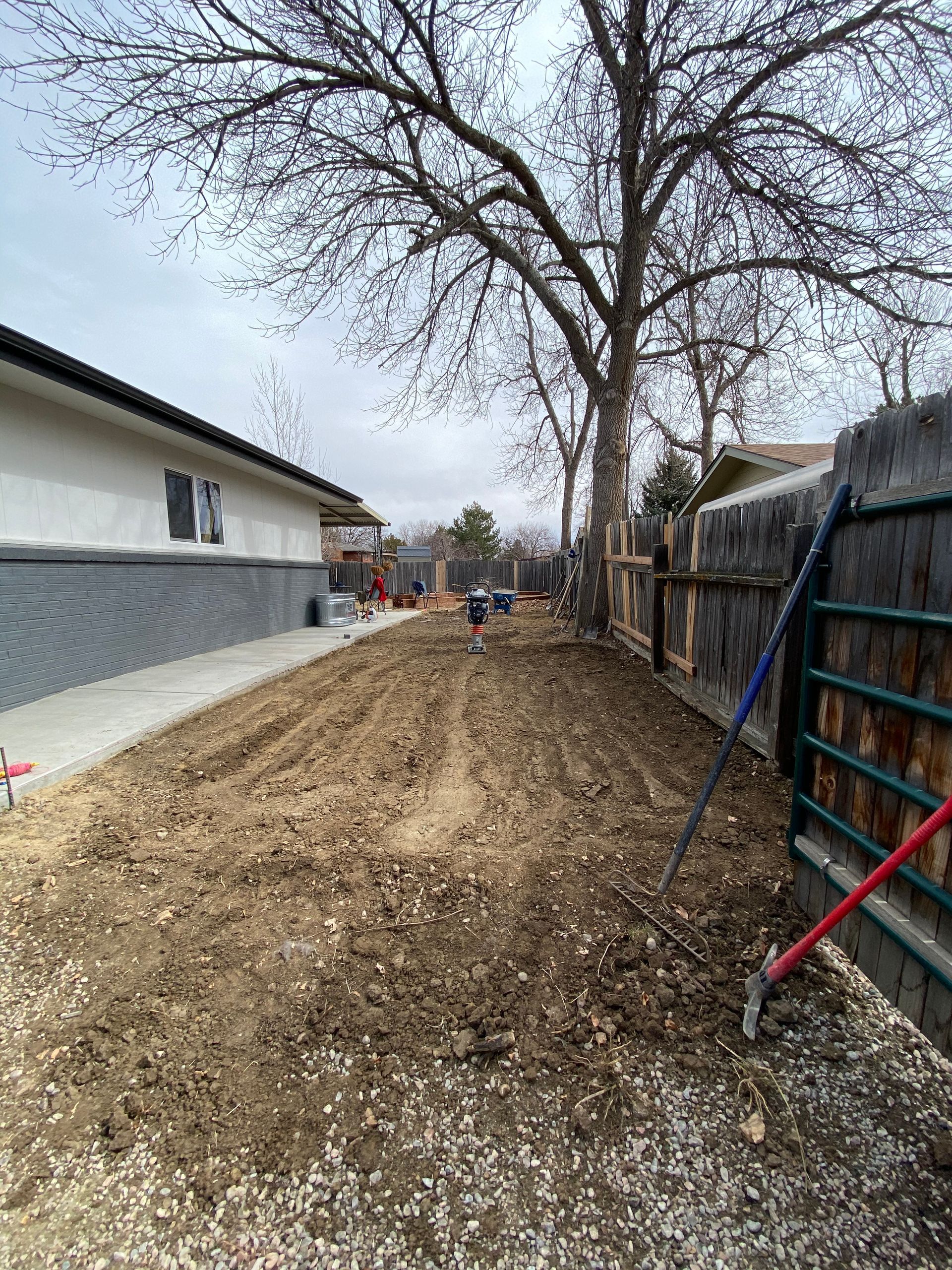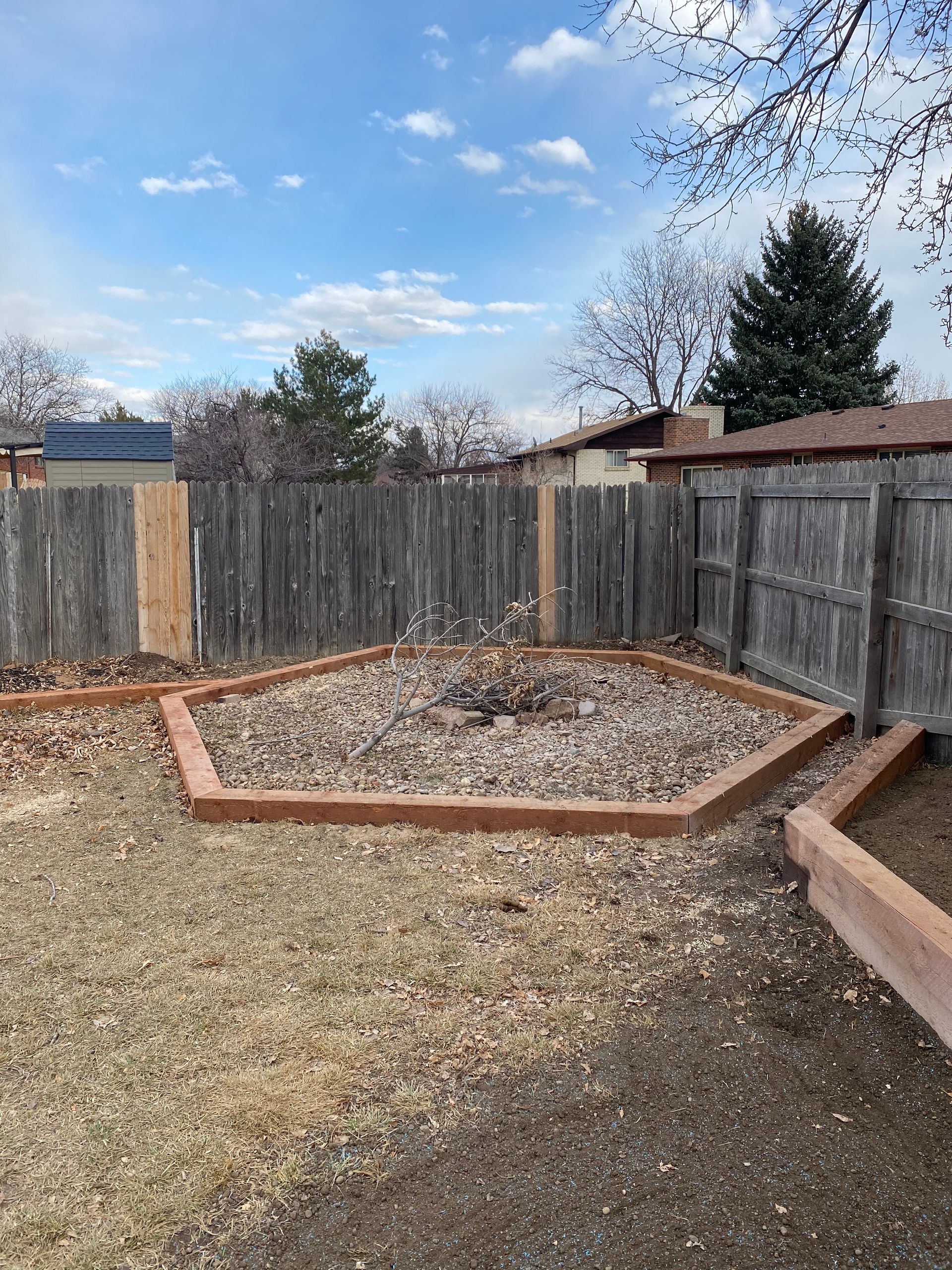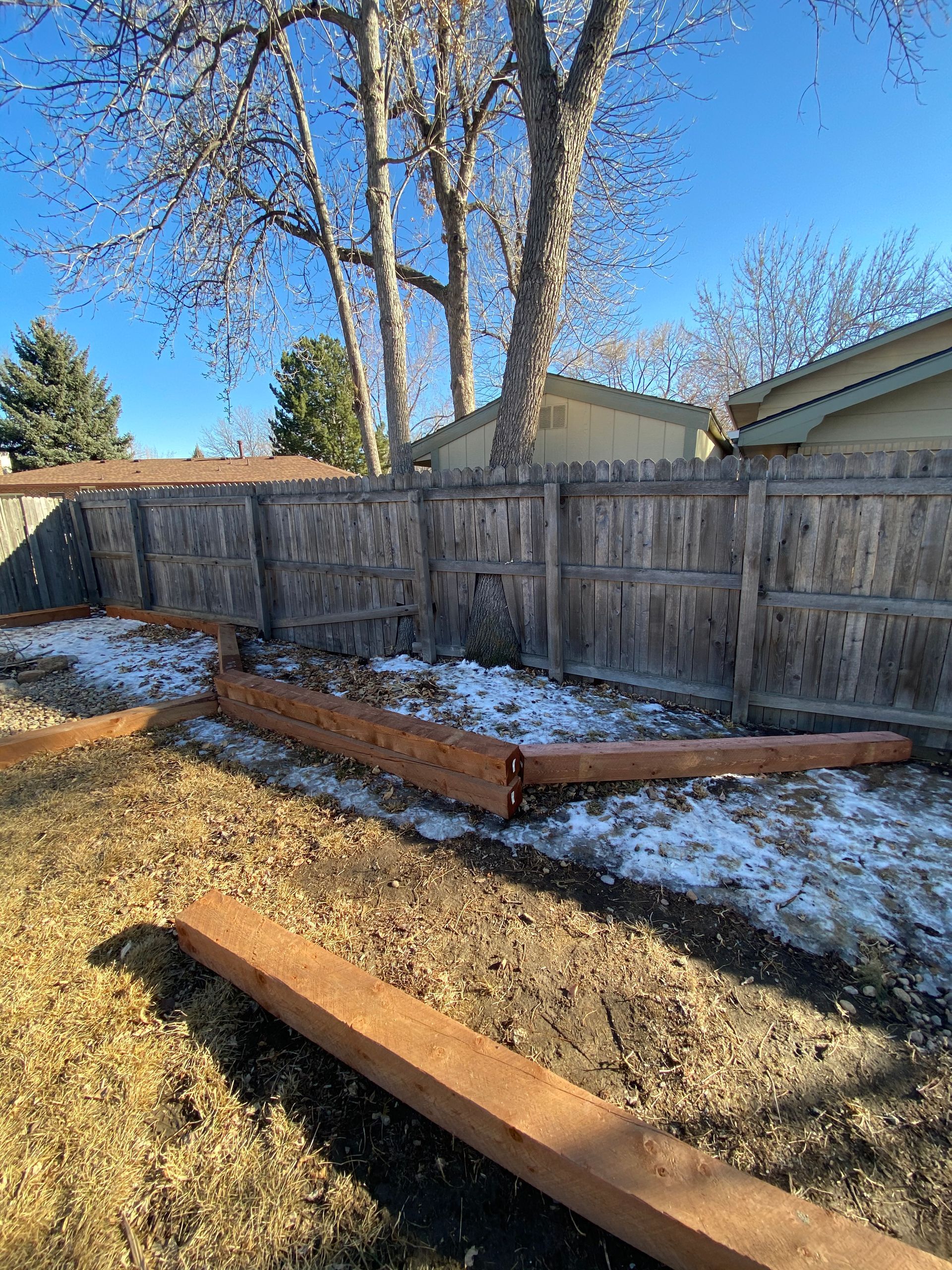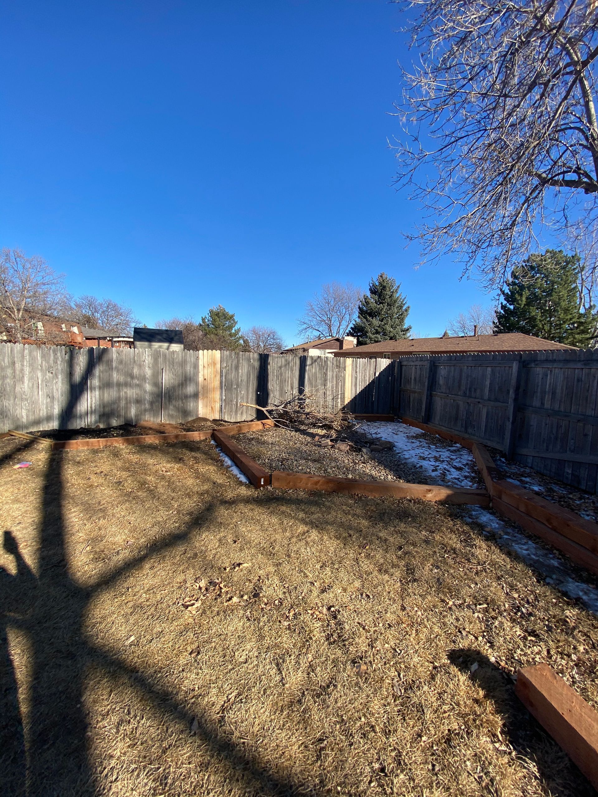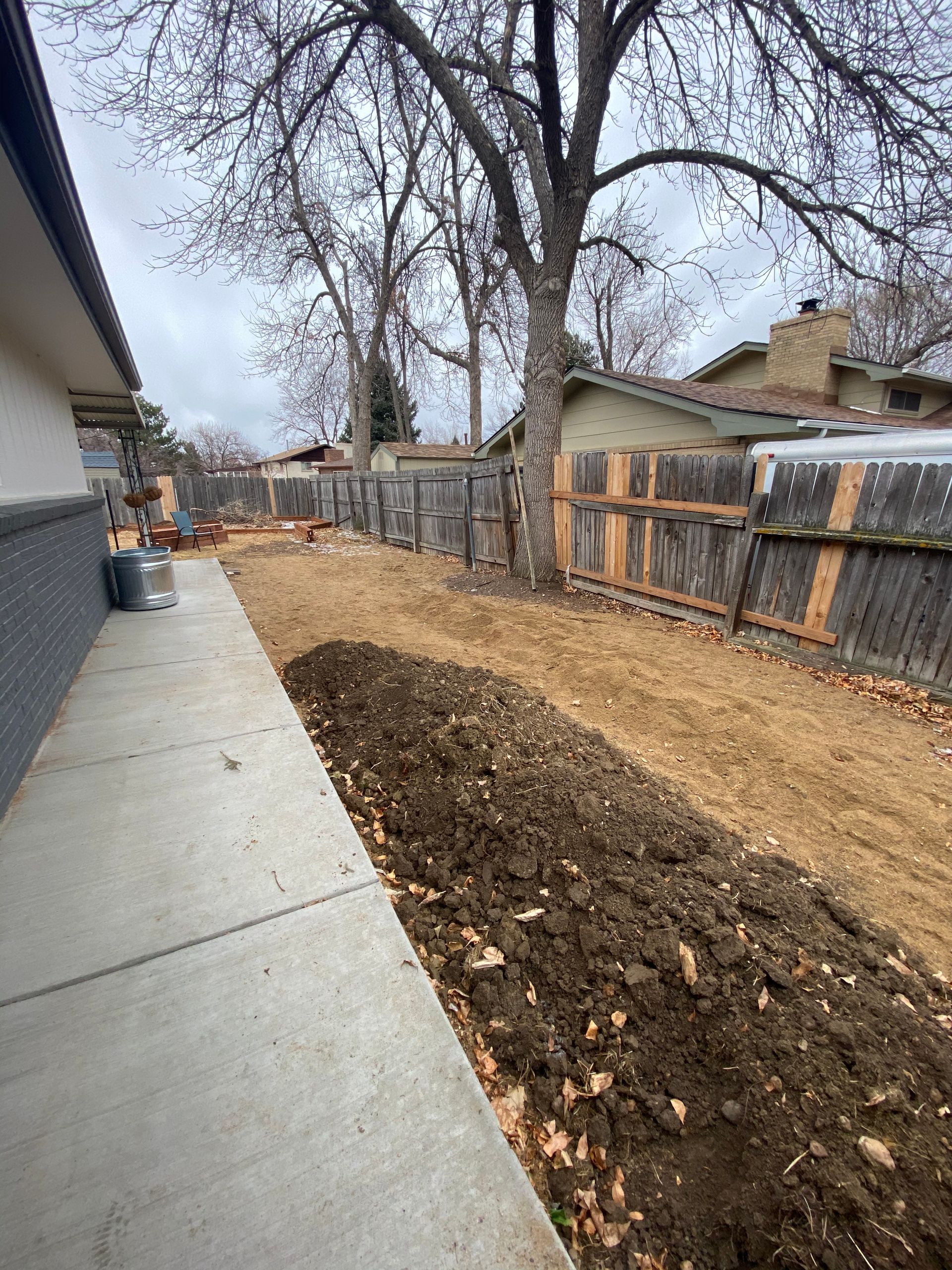 Install of paver patio and driveway that could be used for vehicular use. Planting boxes around trees using pine timbers. Planting and amending of soil areas in front yard. Longmont, CO 2021 & 2022
