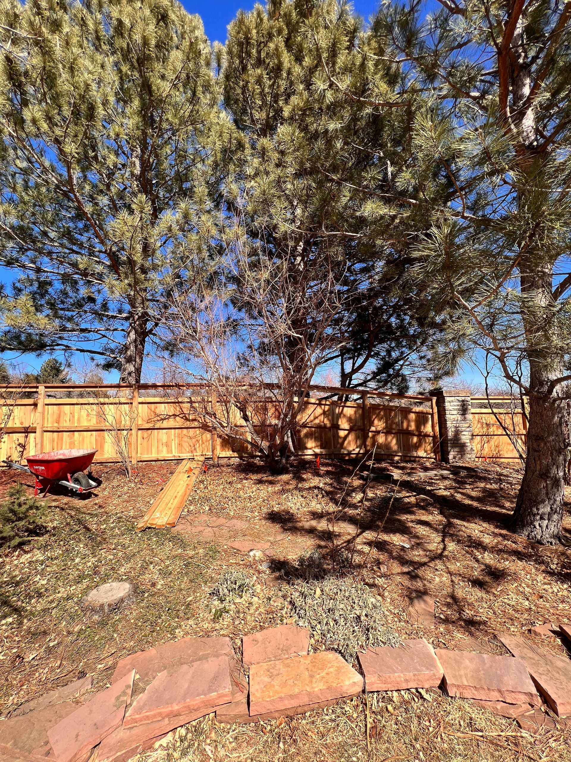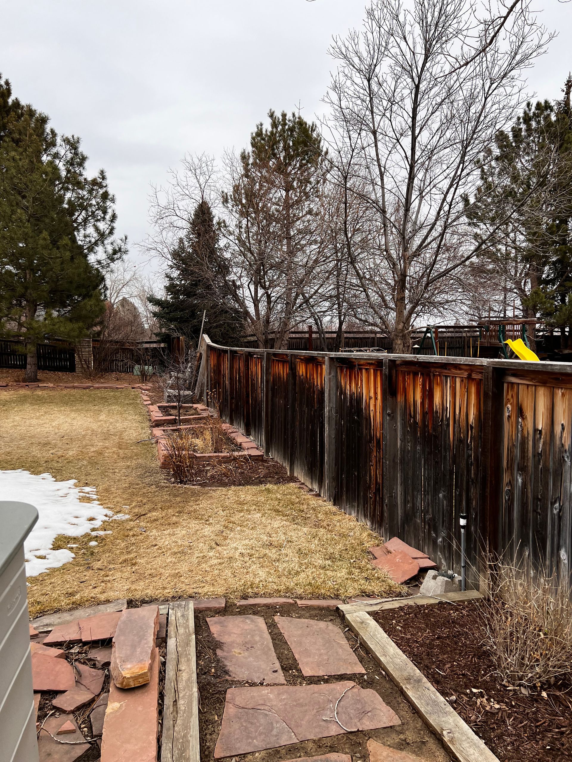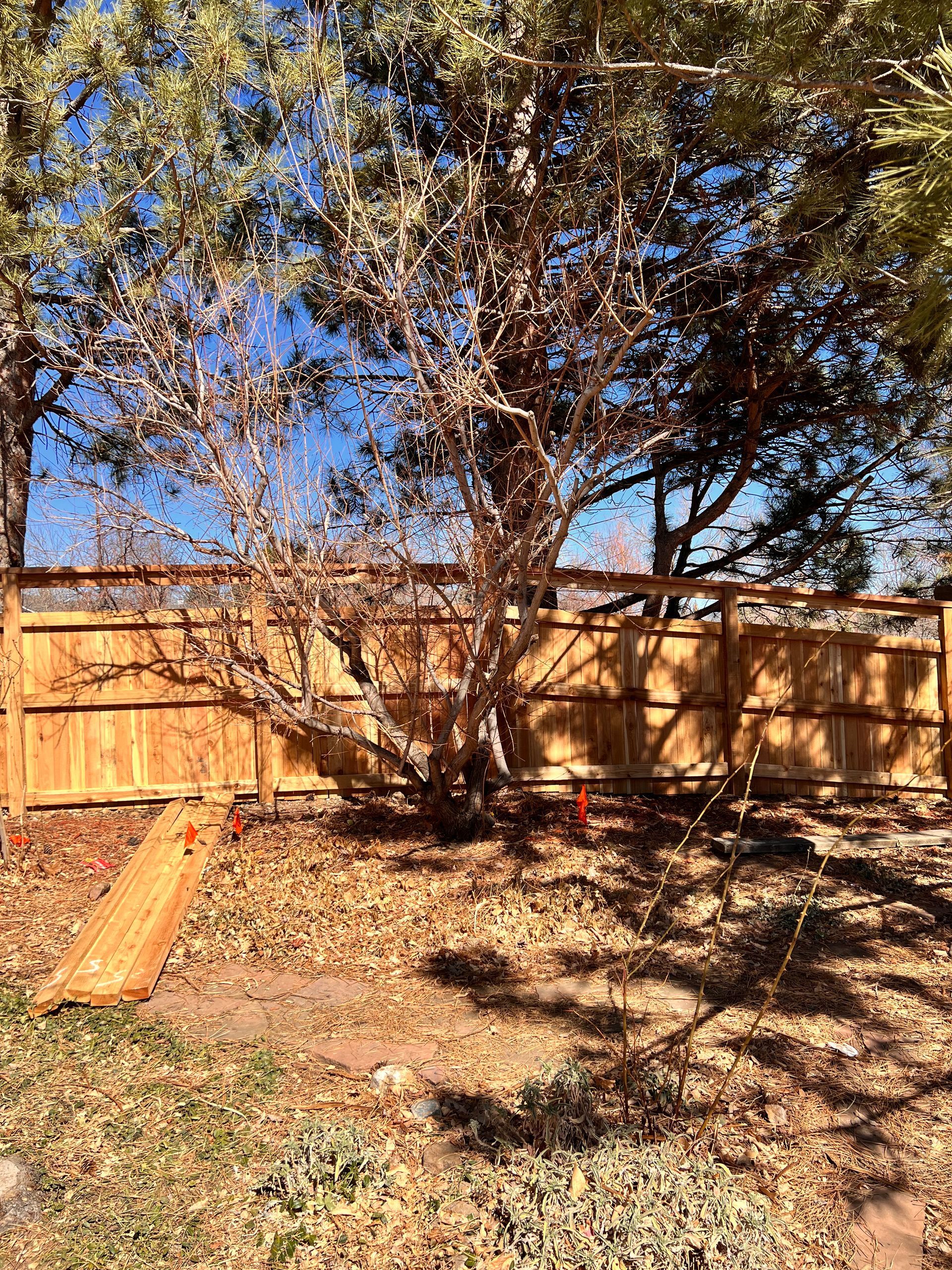 New fence installed after Marshall fire and heavy wind damage. Same look and style as before. Louisville, CO 2022