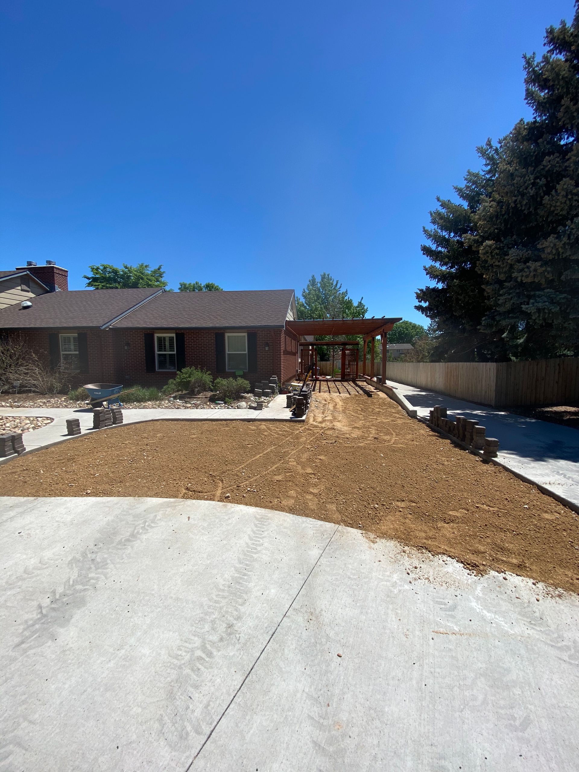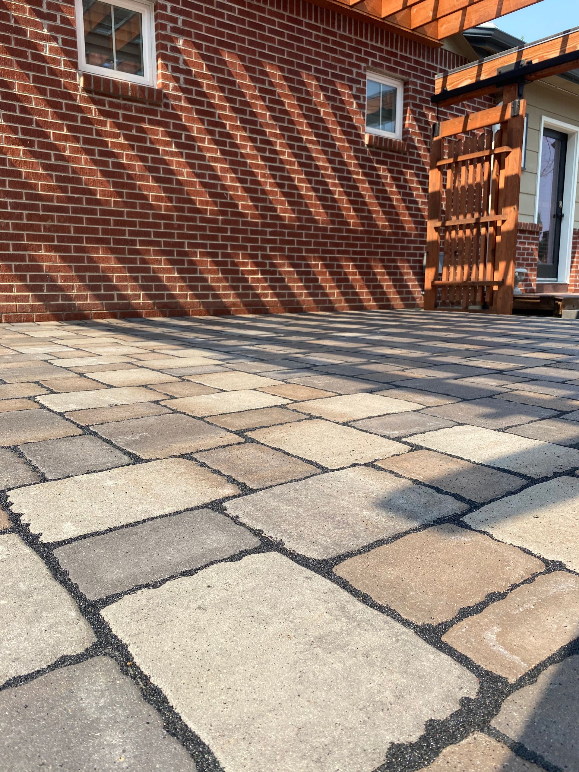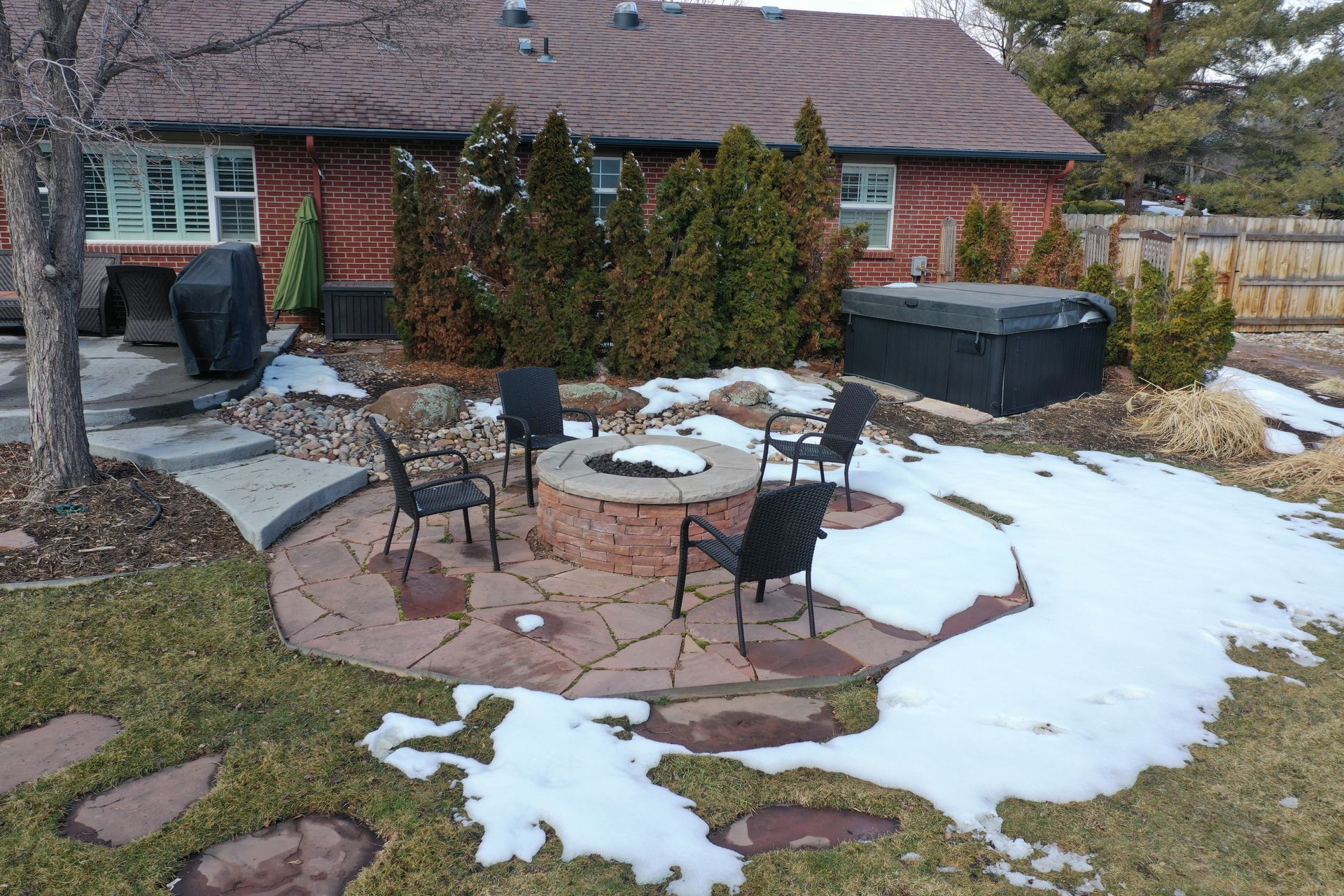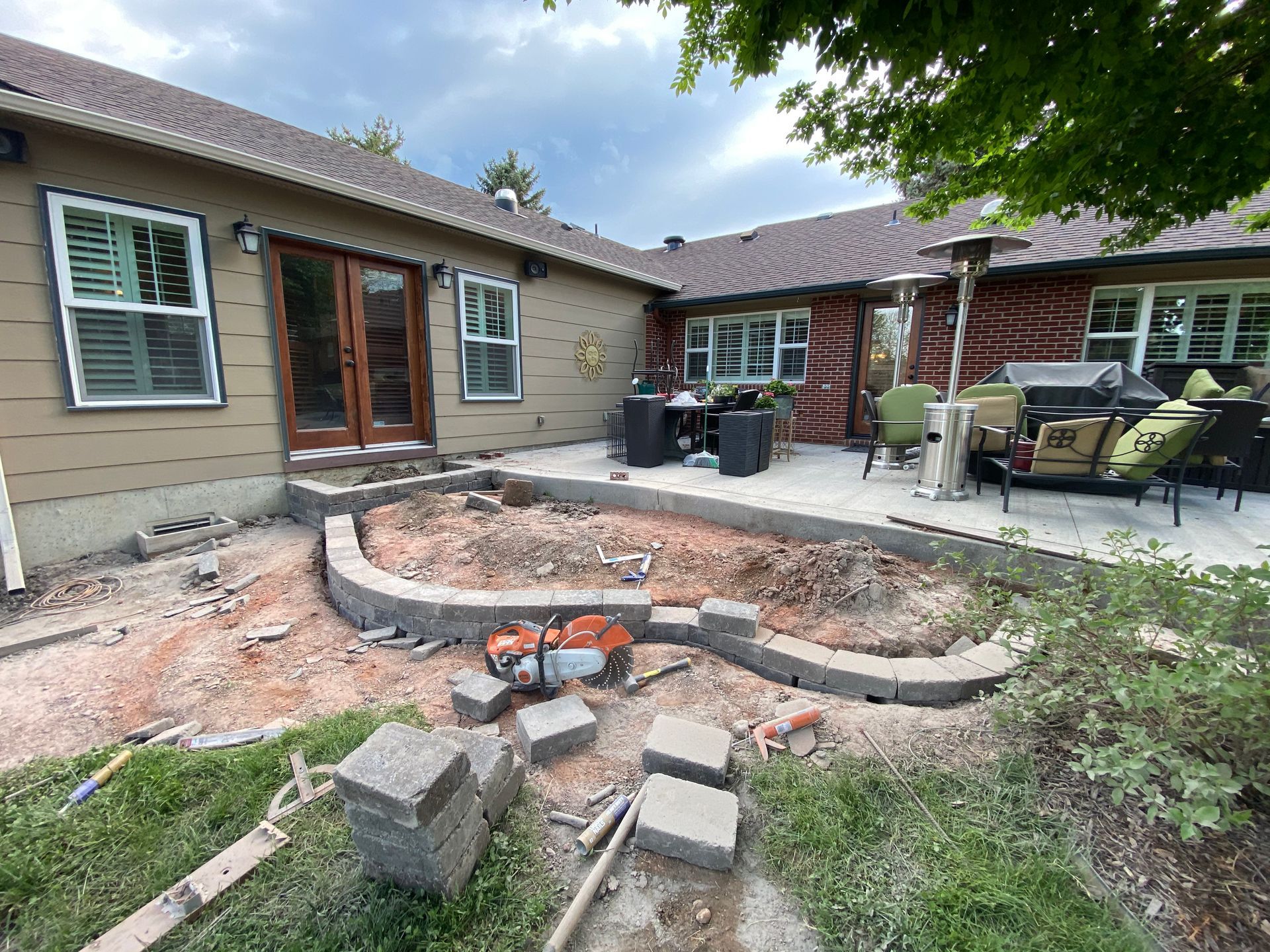Patio areas that used to be Colorado red flagstone were changed to pavers with a new paver driveway addition. Borgert cobble series pavers. Longmont, CO 2021