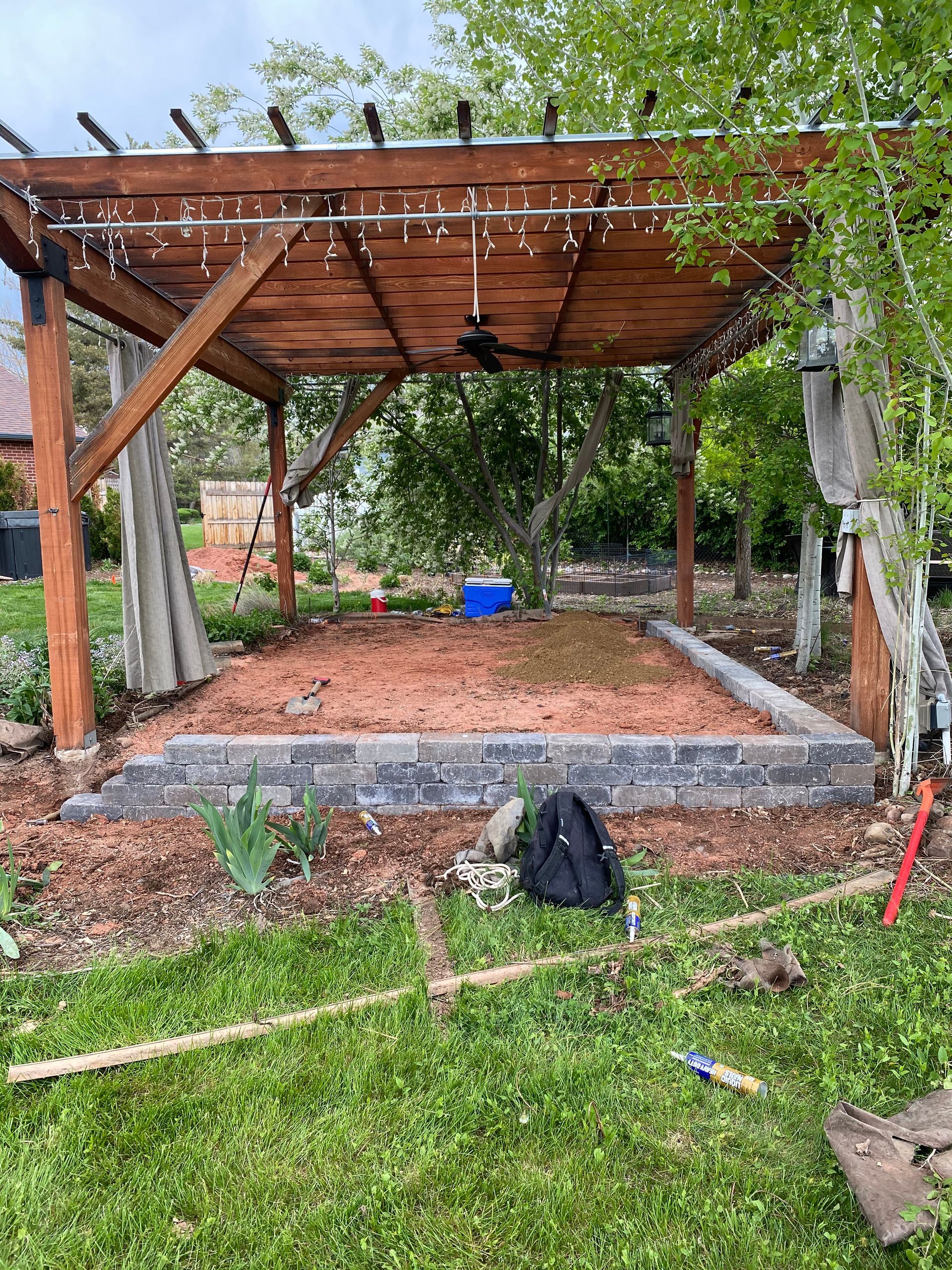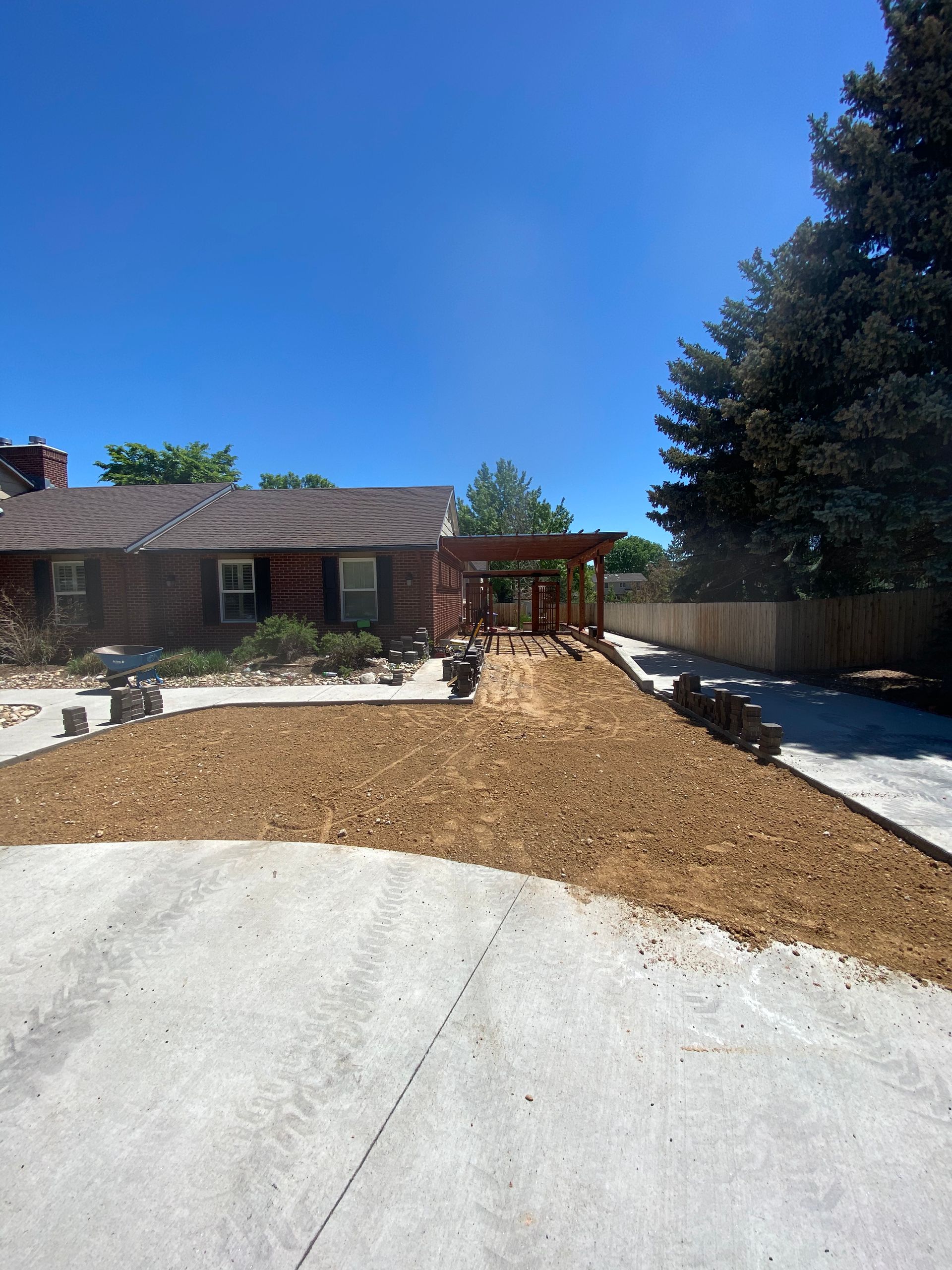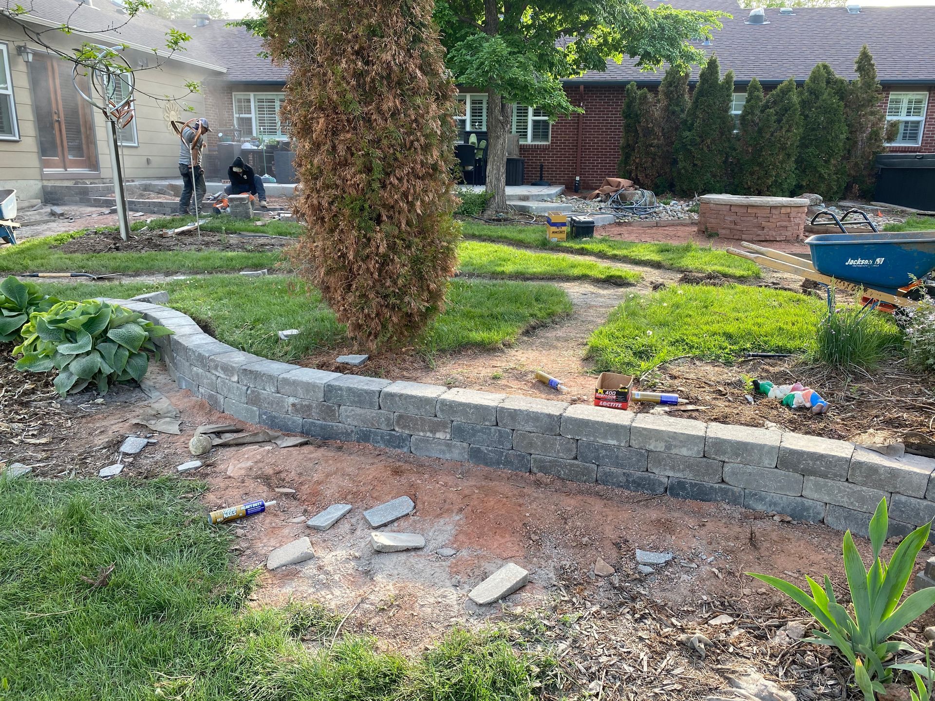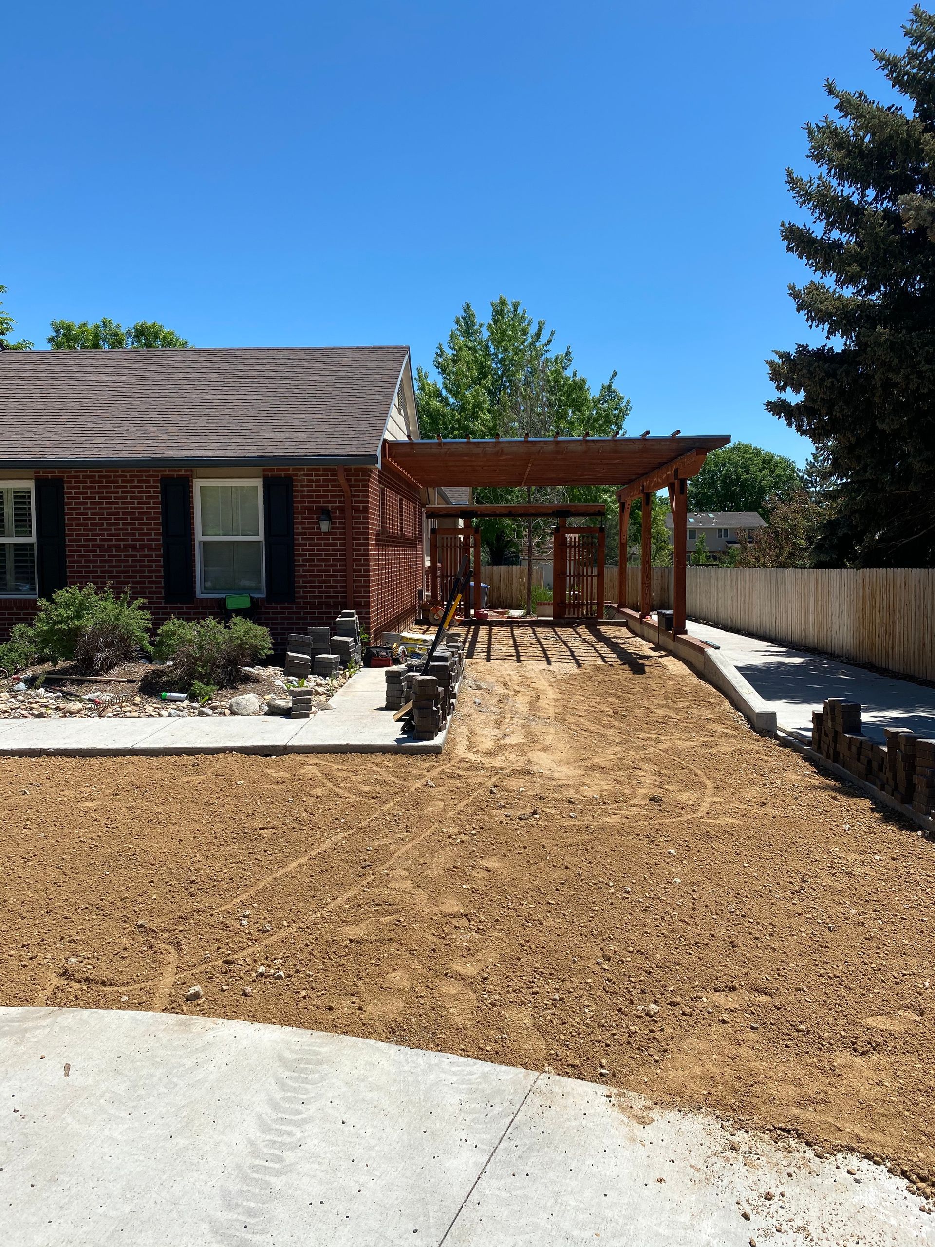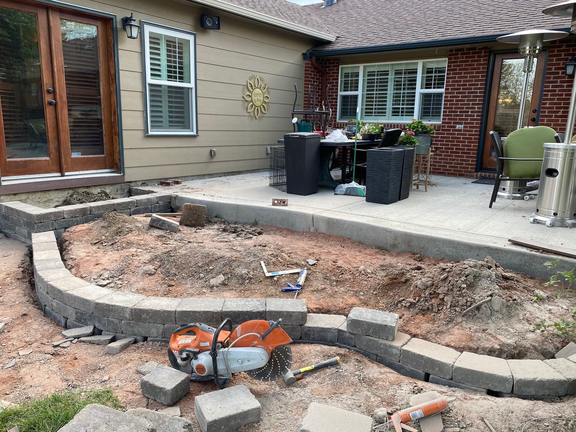 Patio areas that used to be Colorado red flagstone were changed to pavers with a new paver driveway addition. Borgert cobble series pavers. Longmont, CO 2021