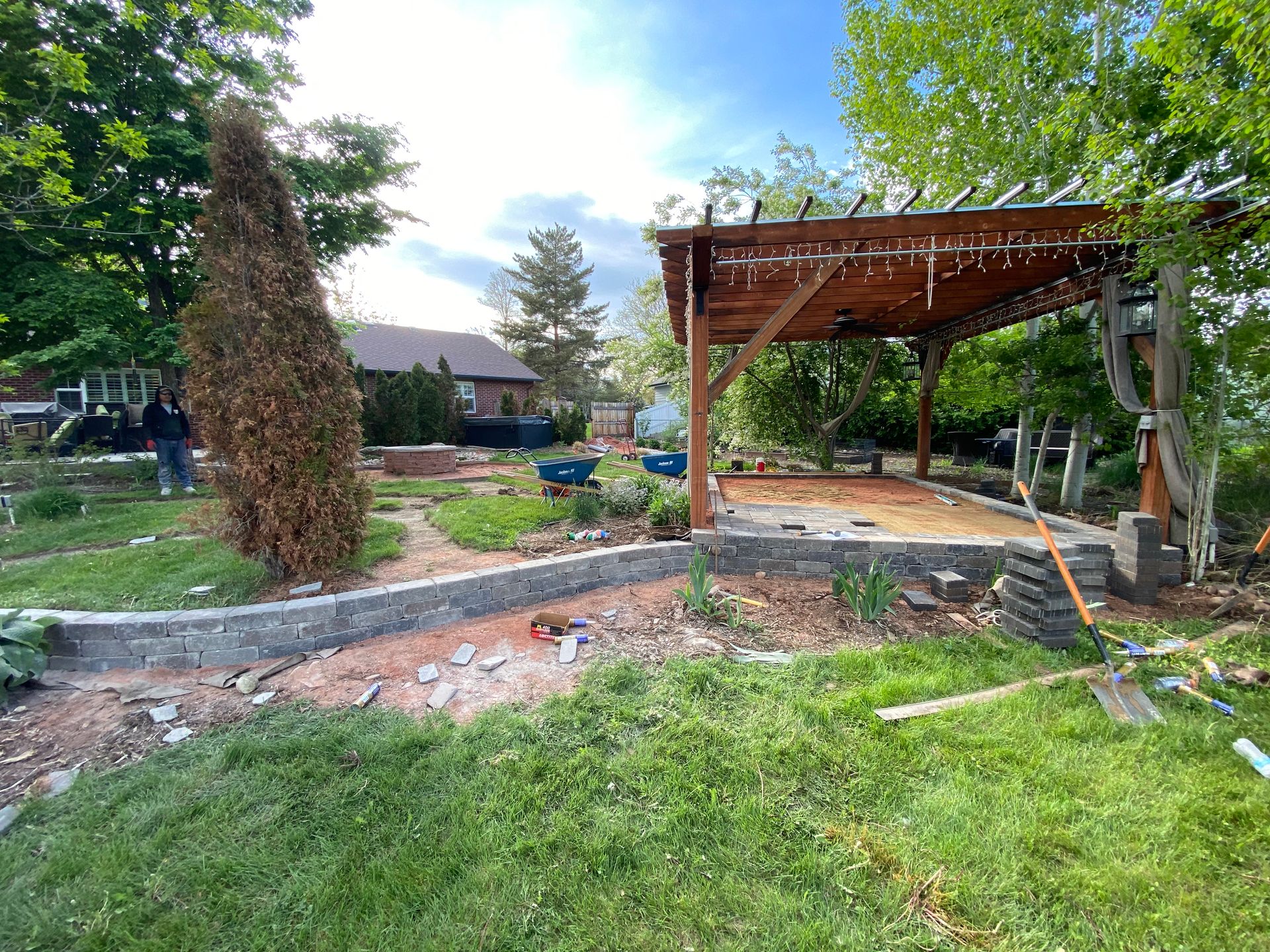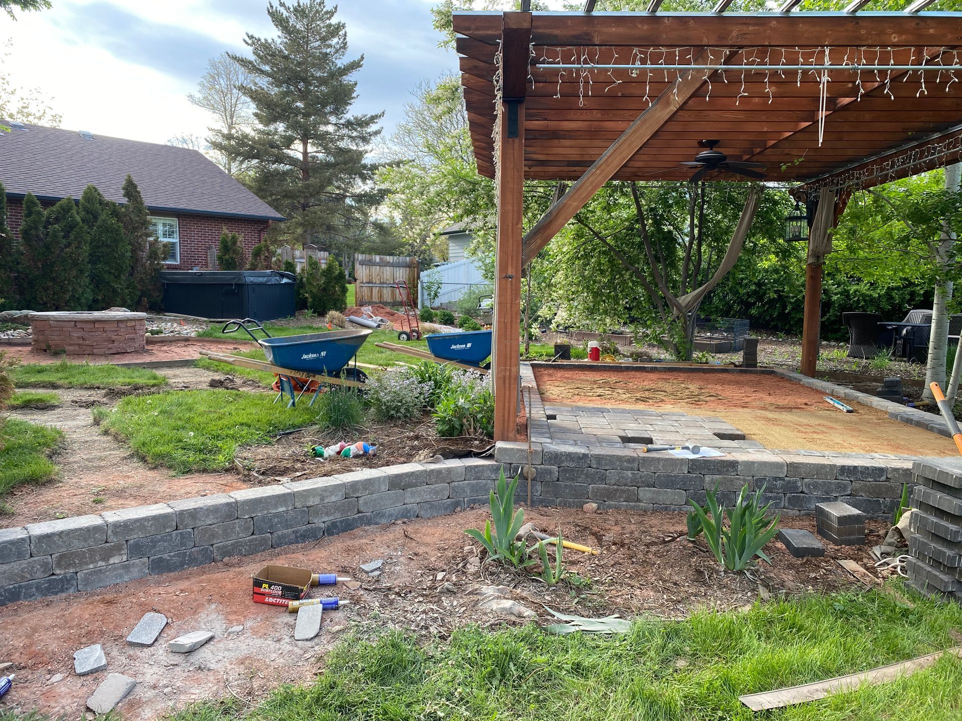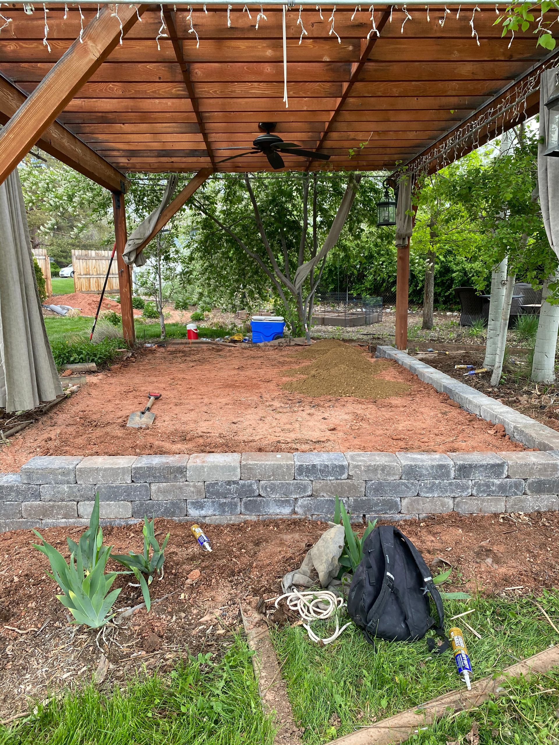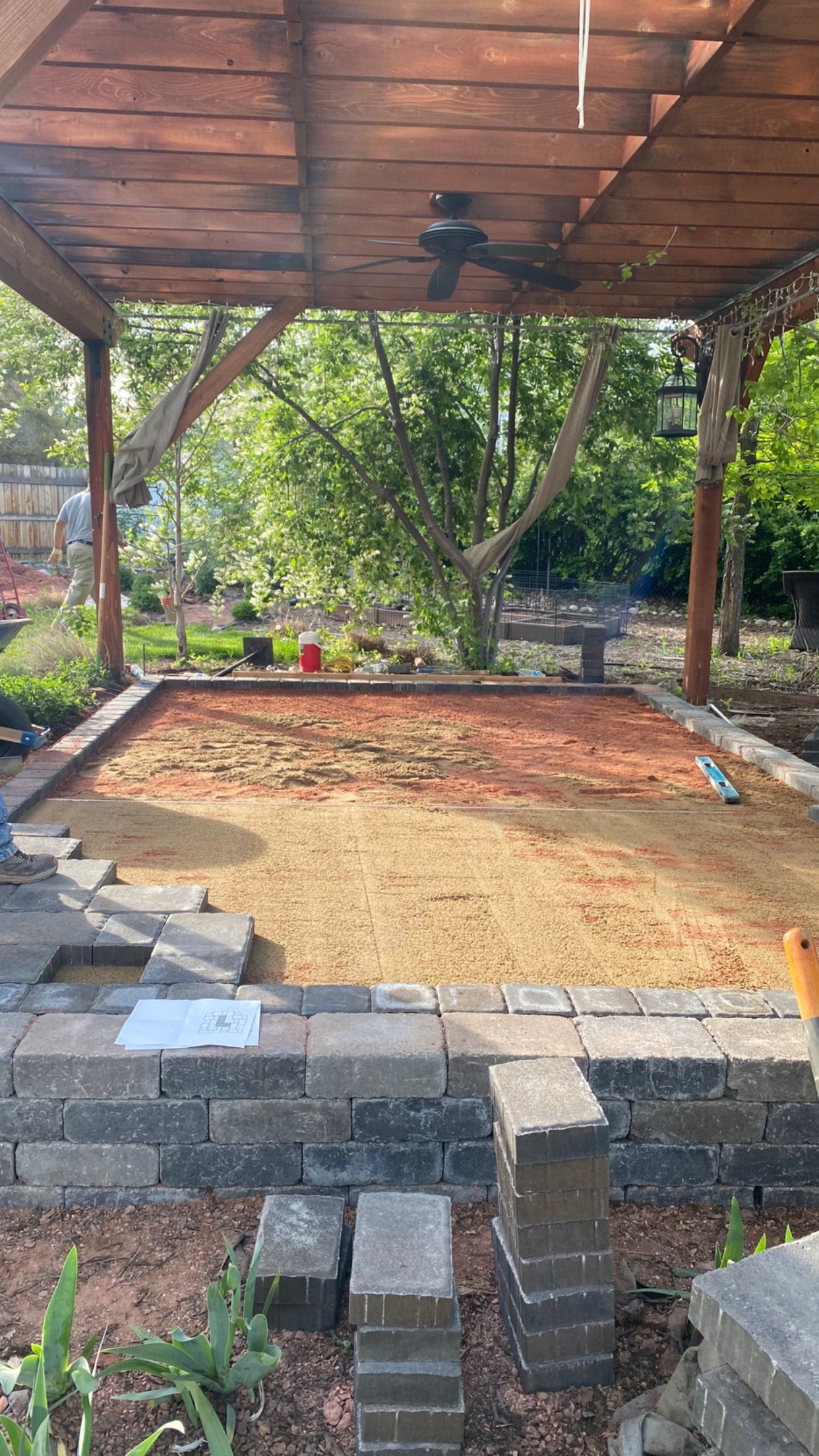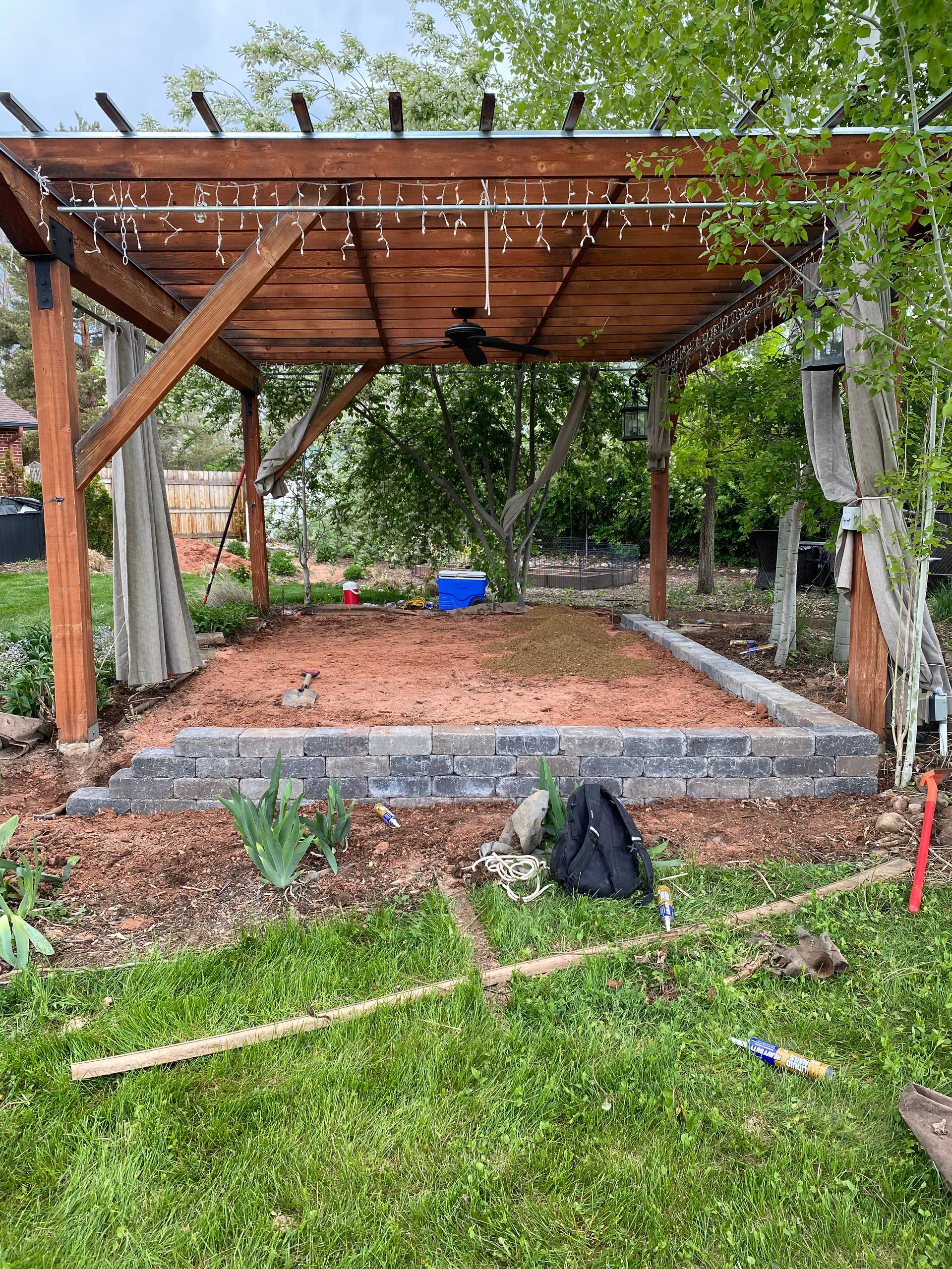 Patio areas that used to be Colorado red flagstone were changed to pavers with a new paver driveway addition. Borgert cobble series pavers. Longmont, CO 2021