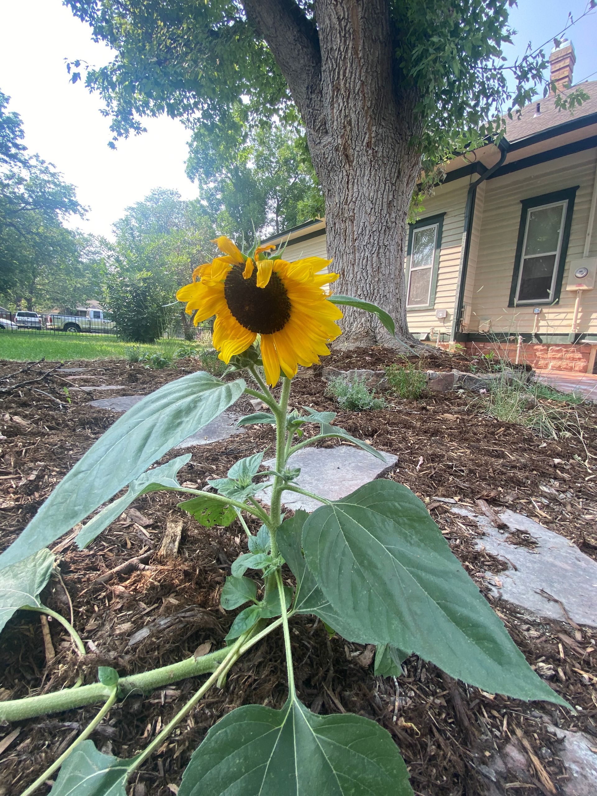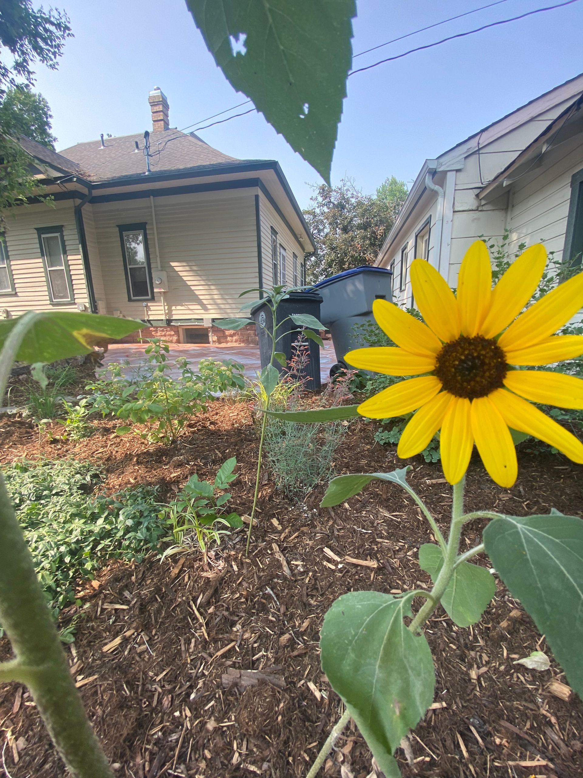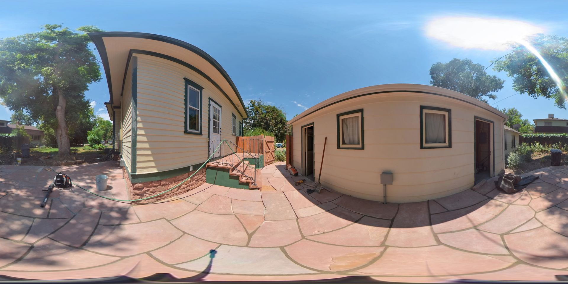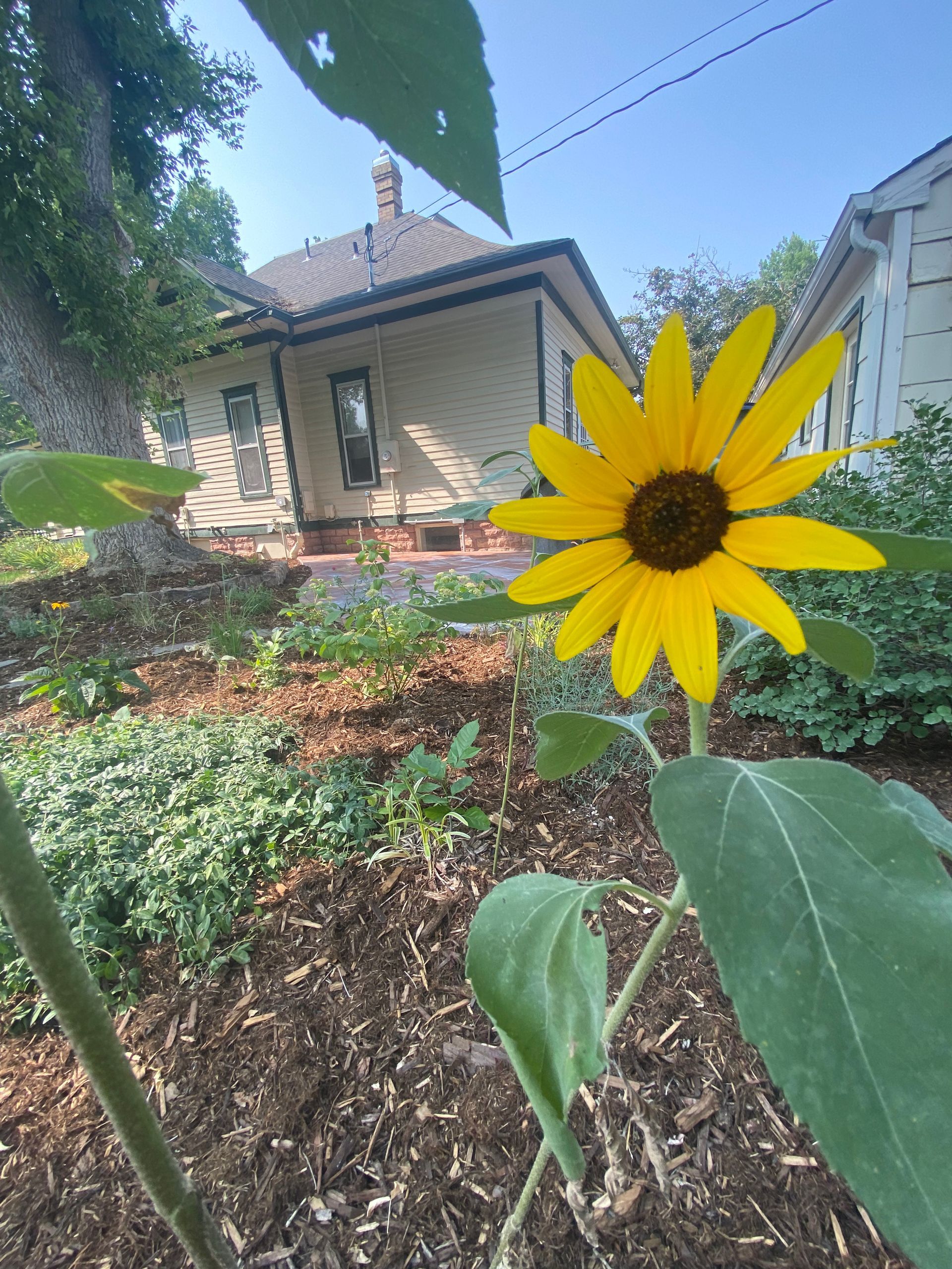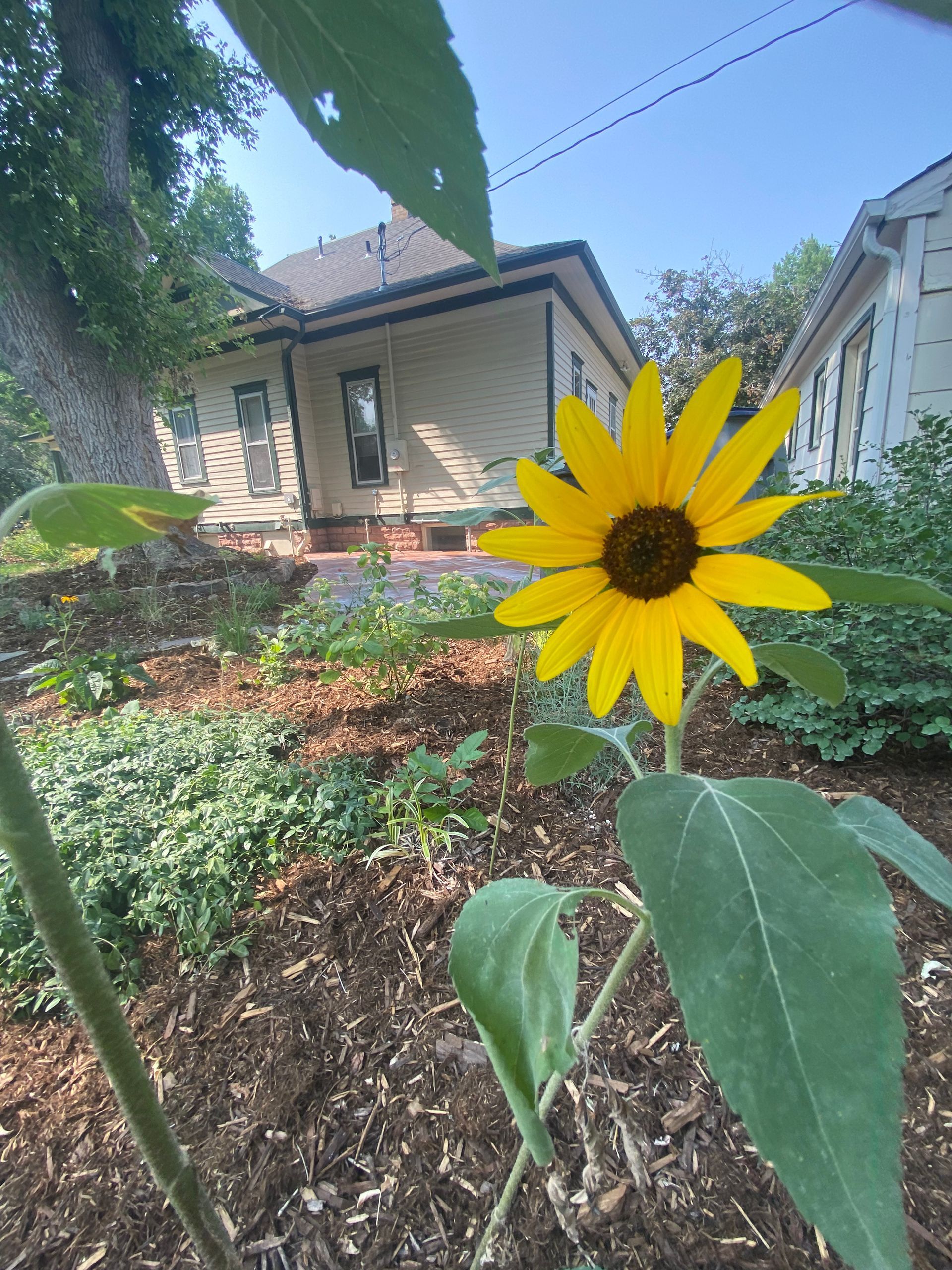 Colorado red flagstone patio set in mortar and in joints with previously concrete base. Matches color of house with addition of color in plantings. Longmont, CO 2021