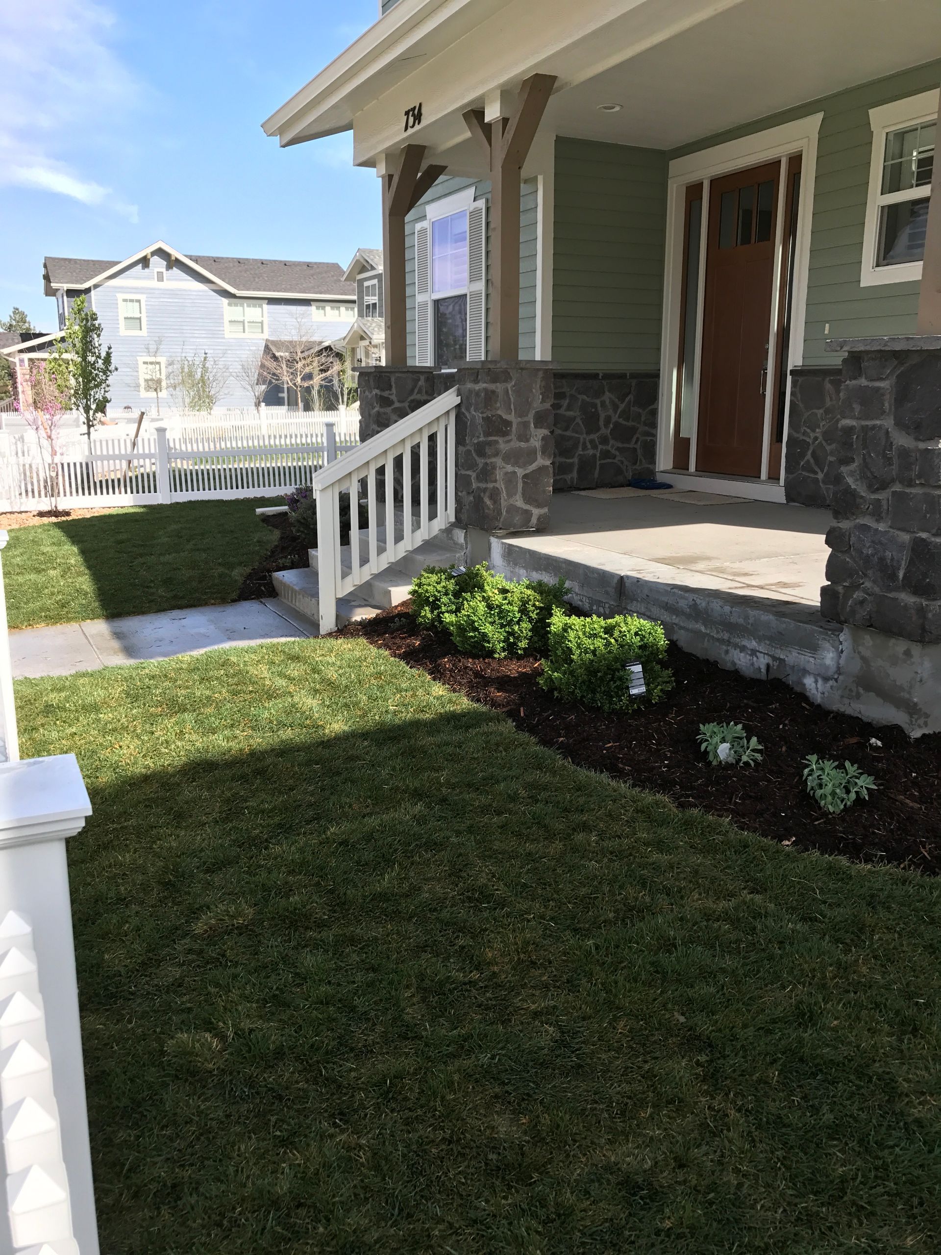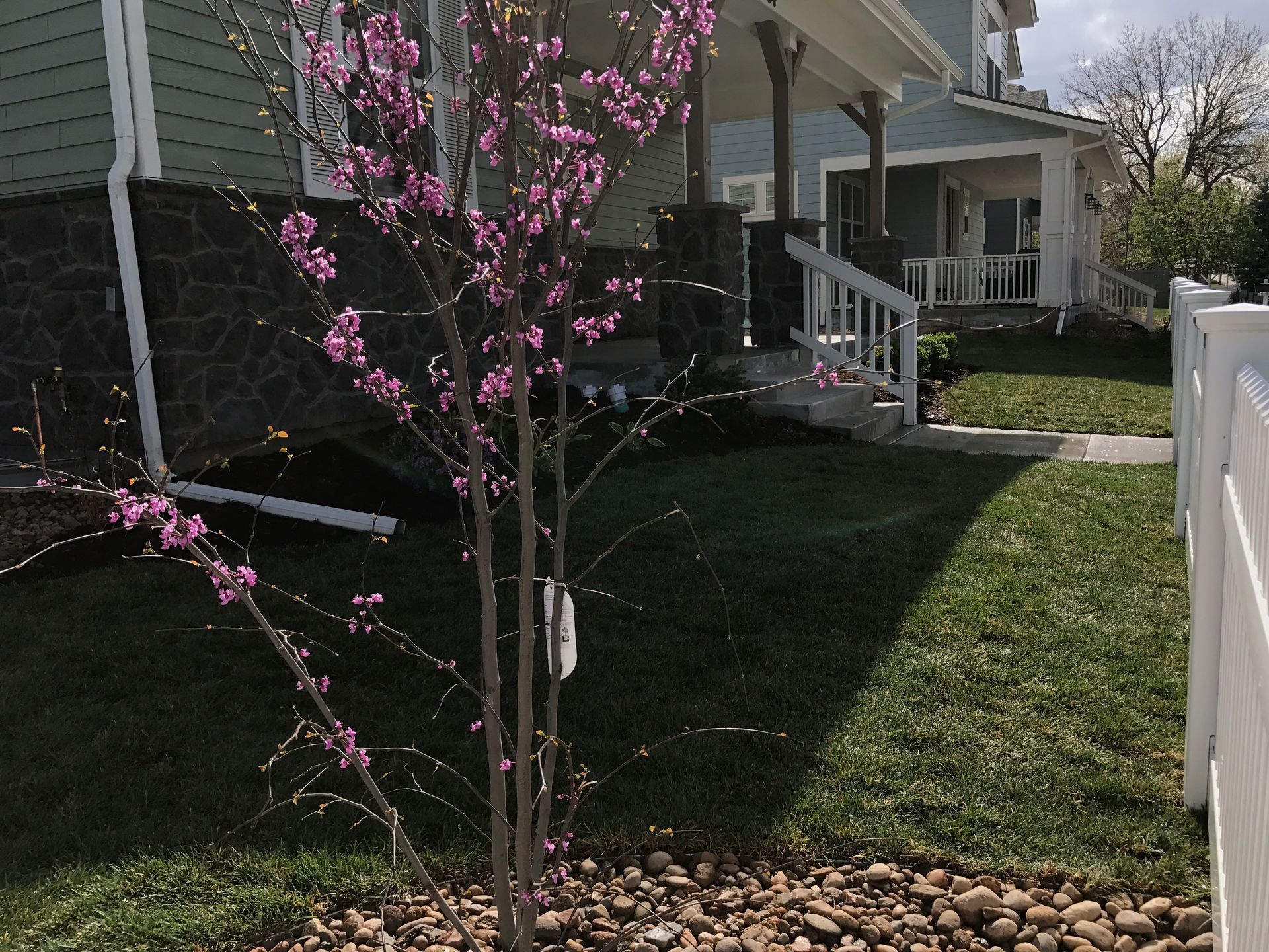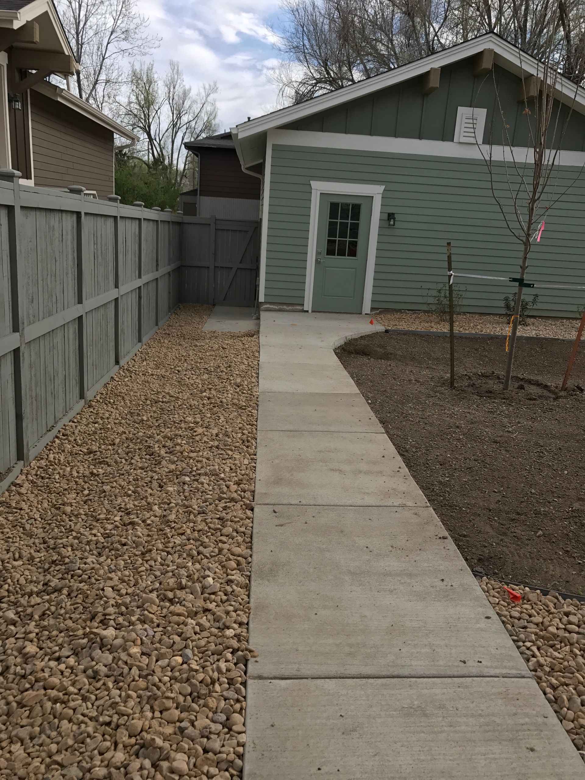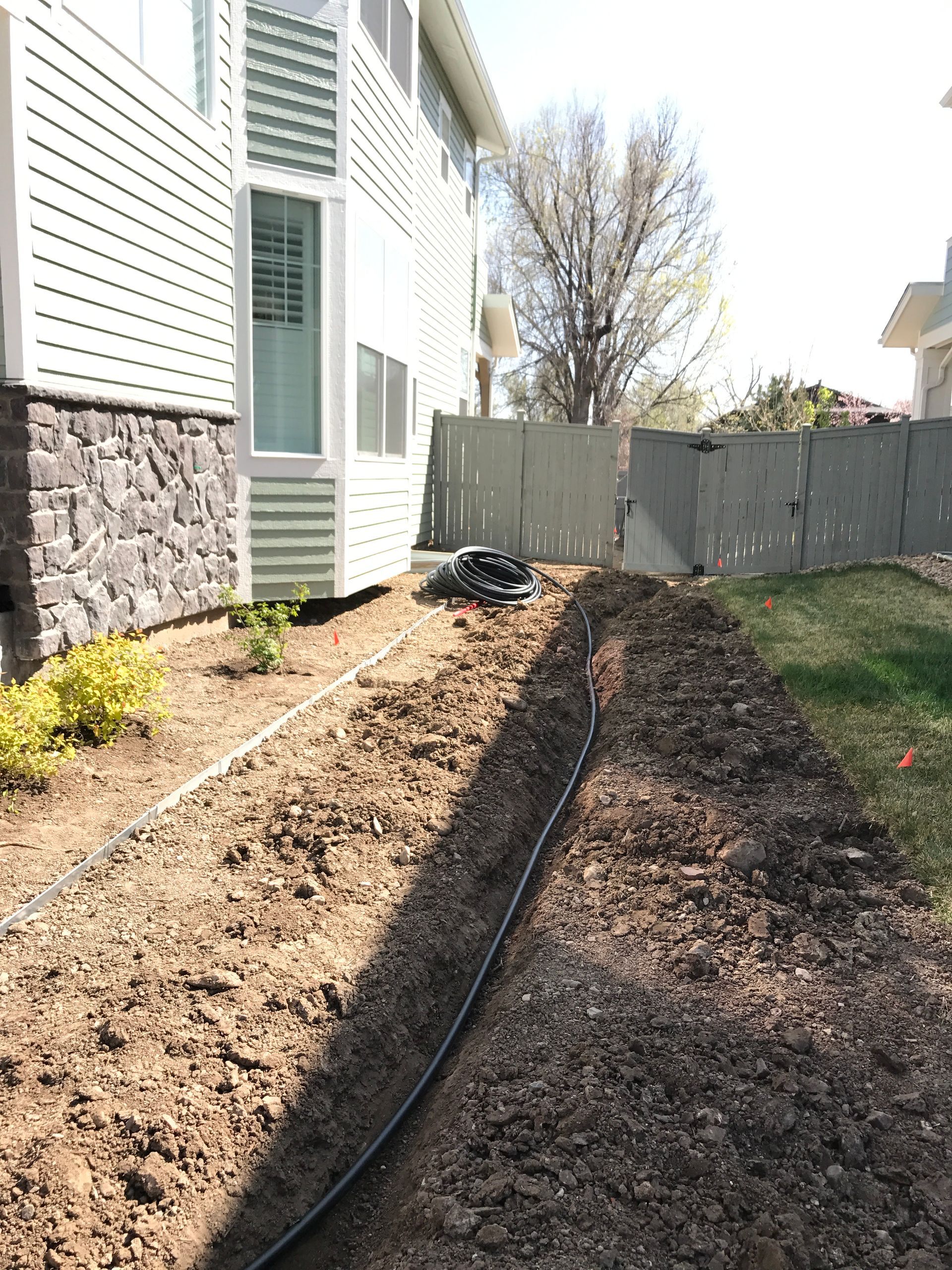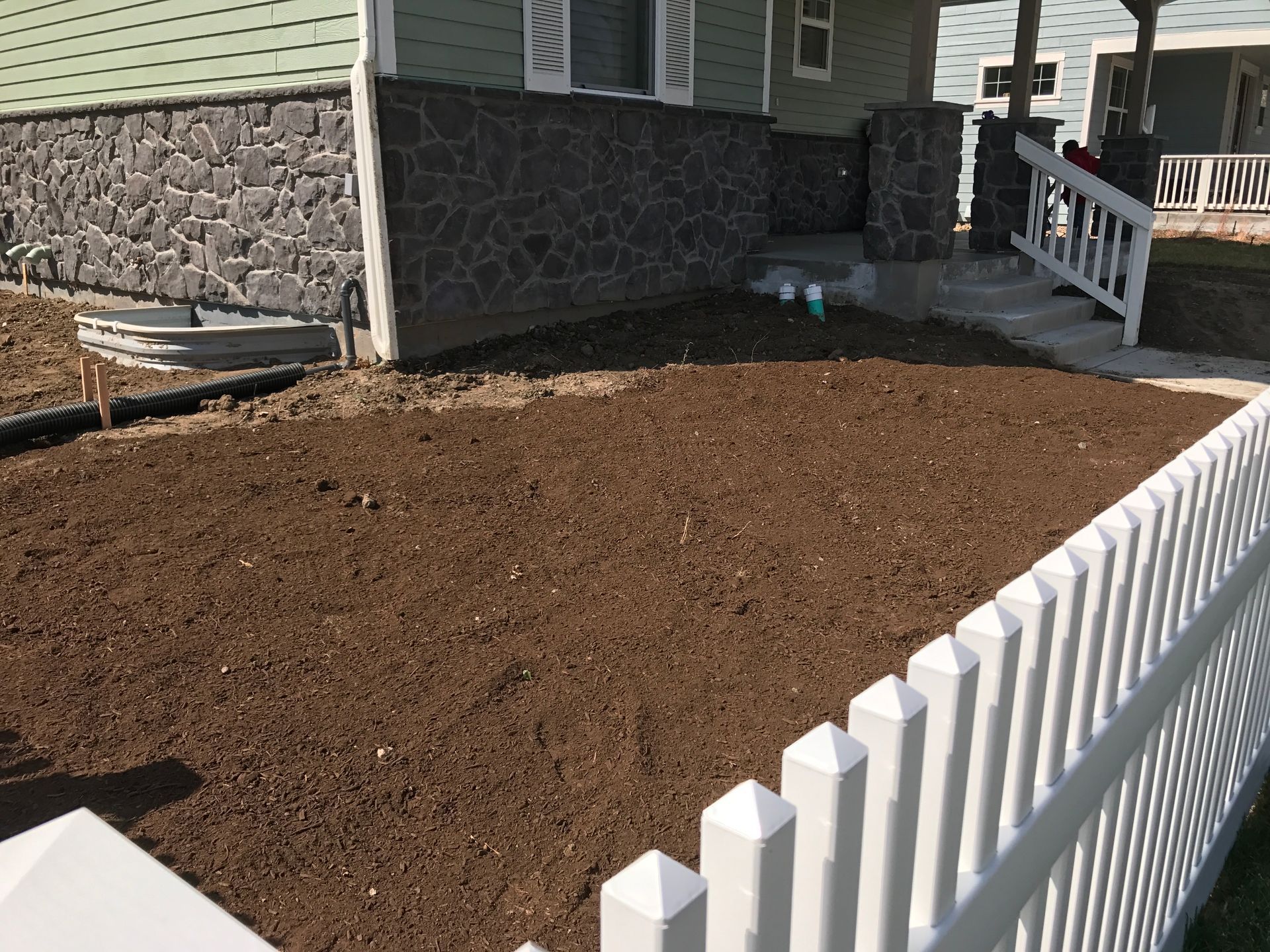 Full landscape remodel with decorative rock, plantings, sprinklers and grass. Lafayette, CO 2019