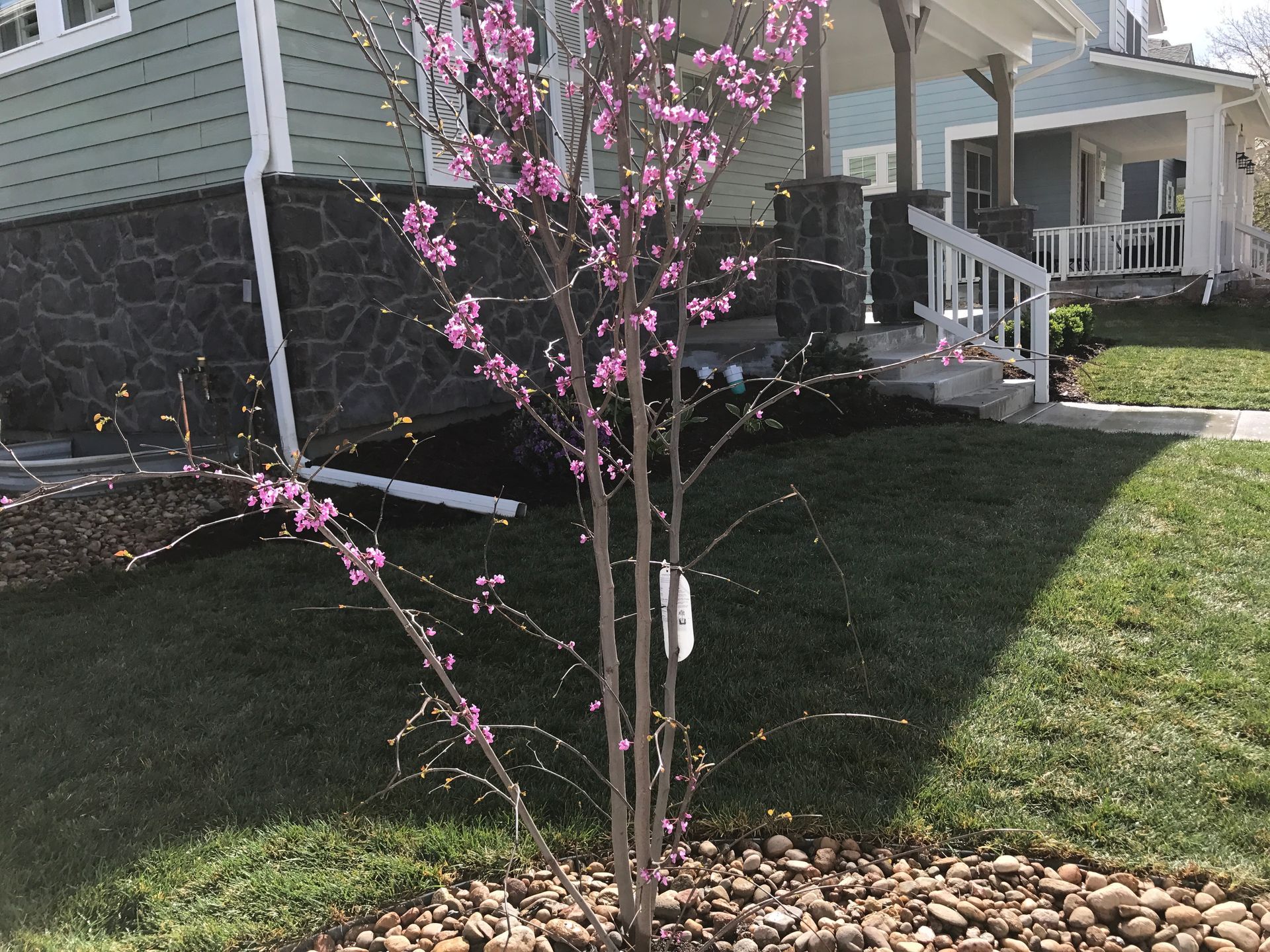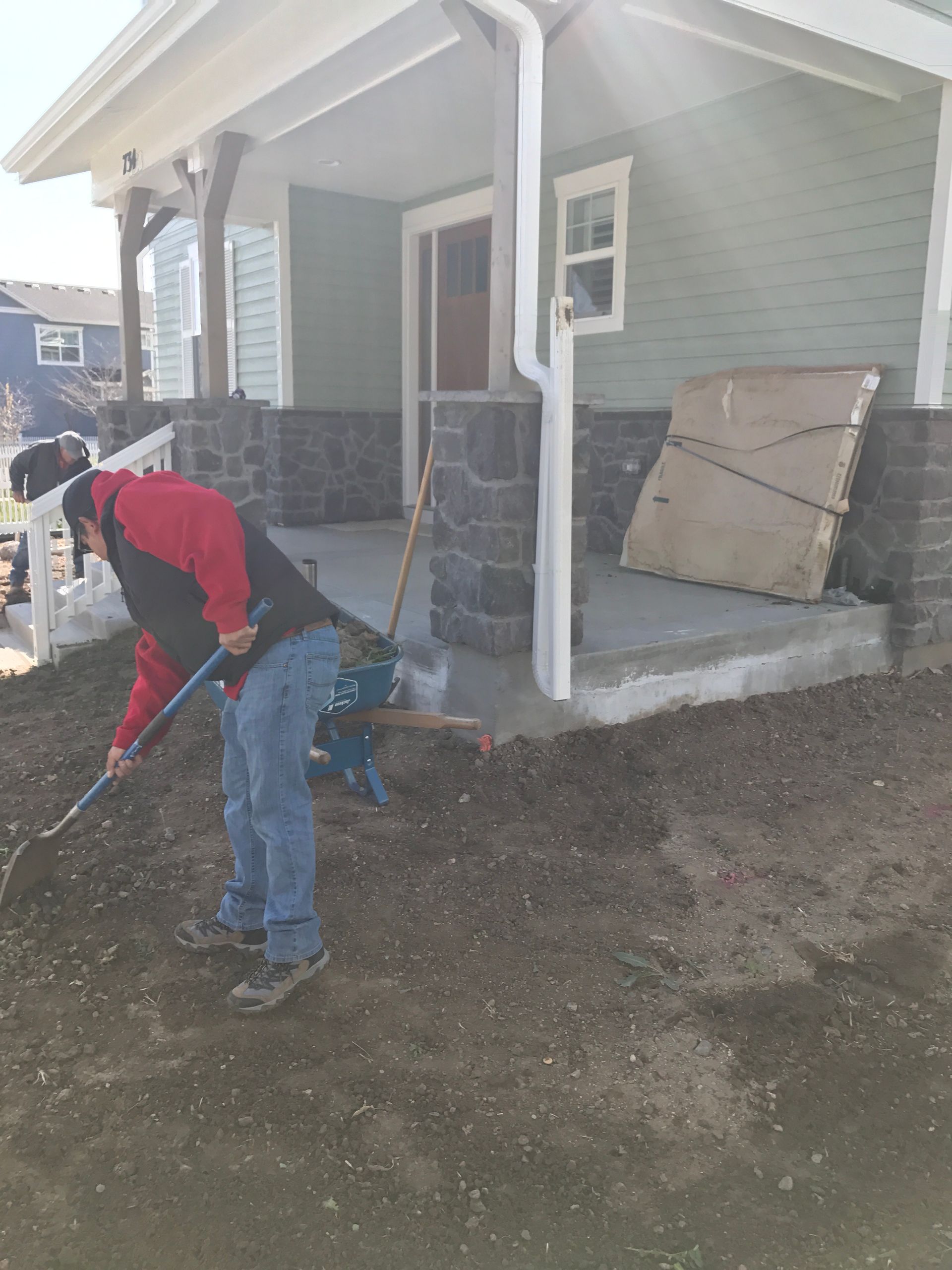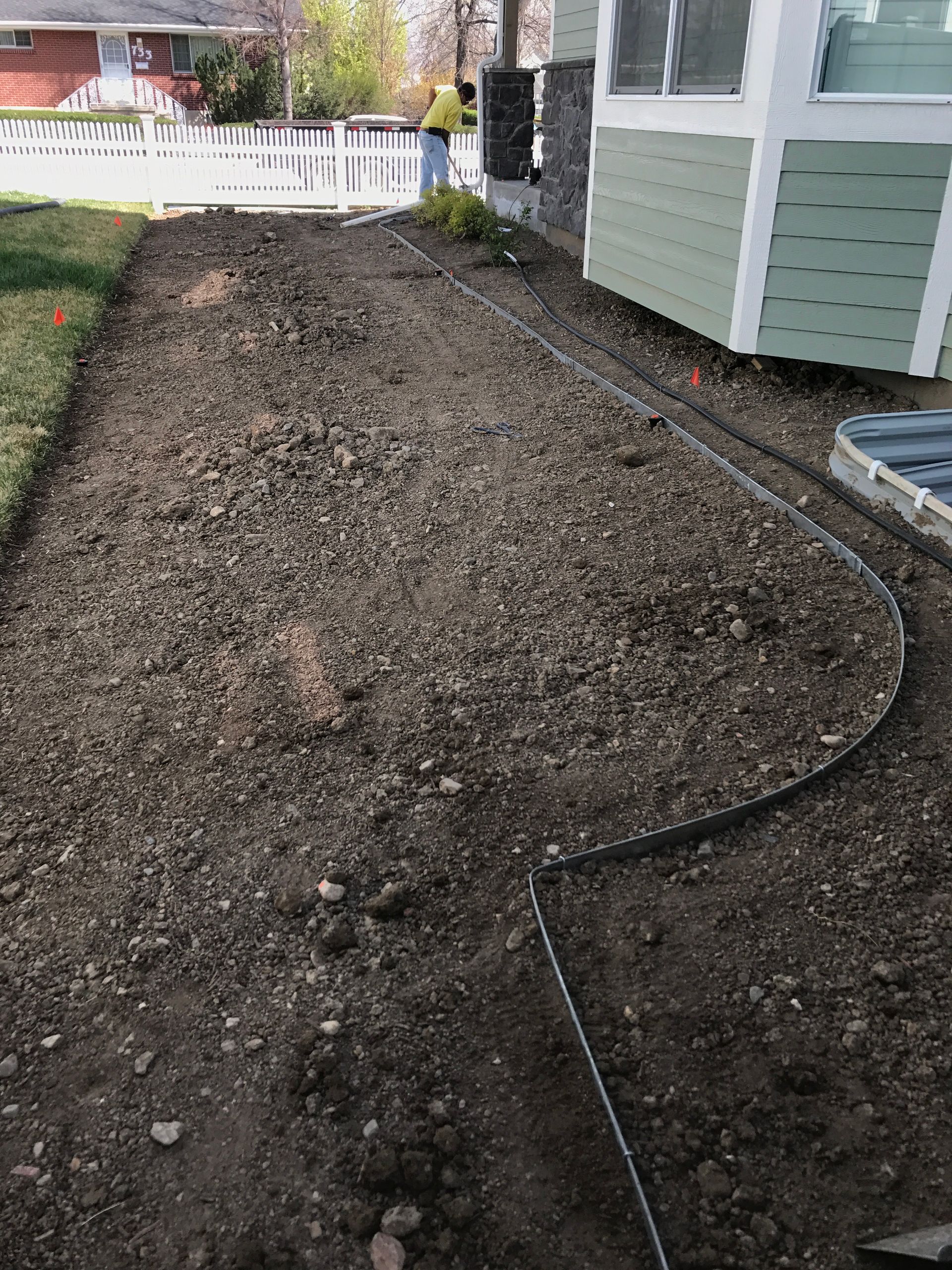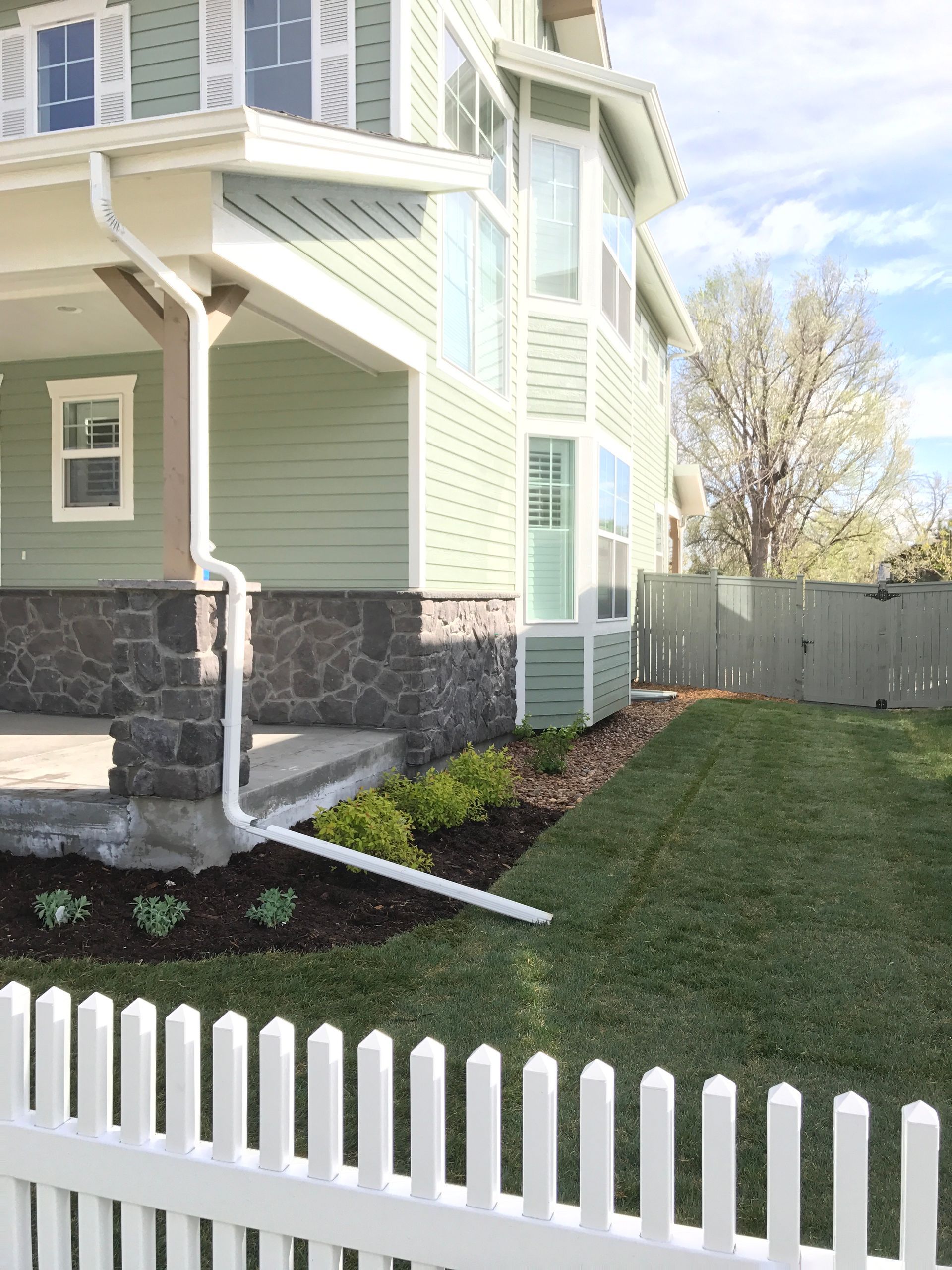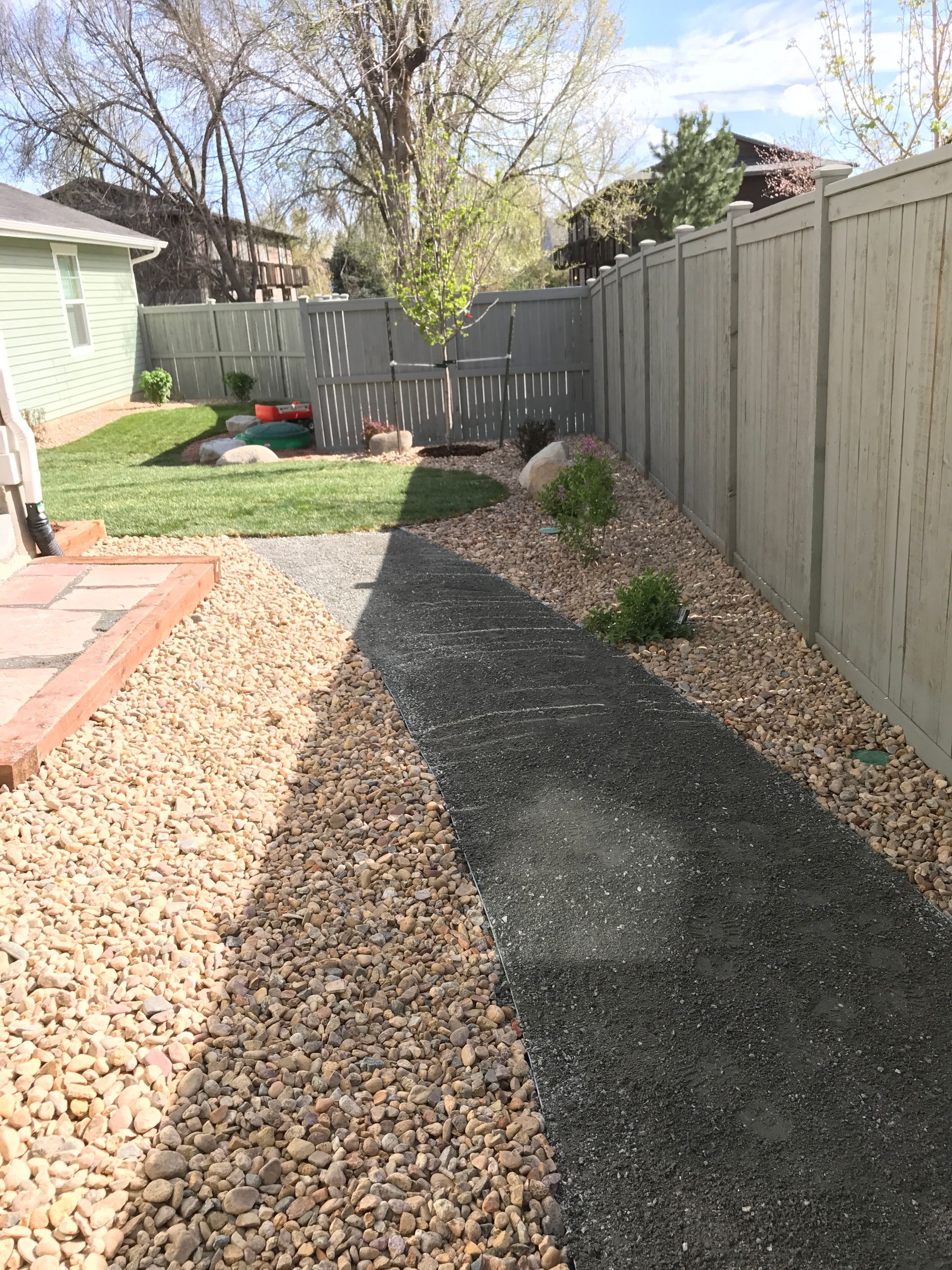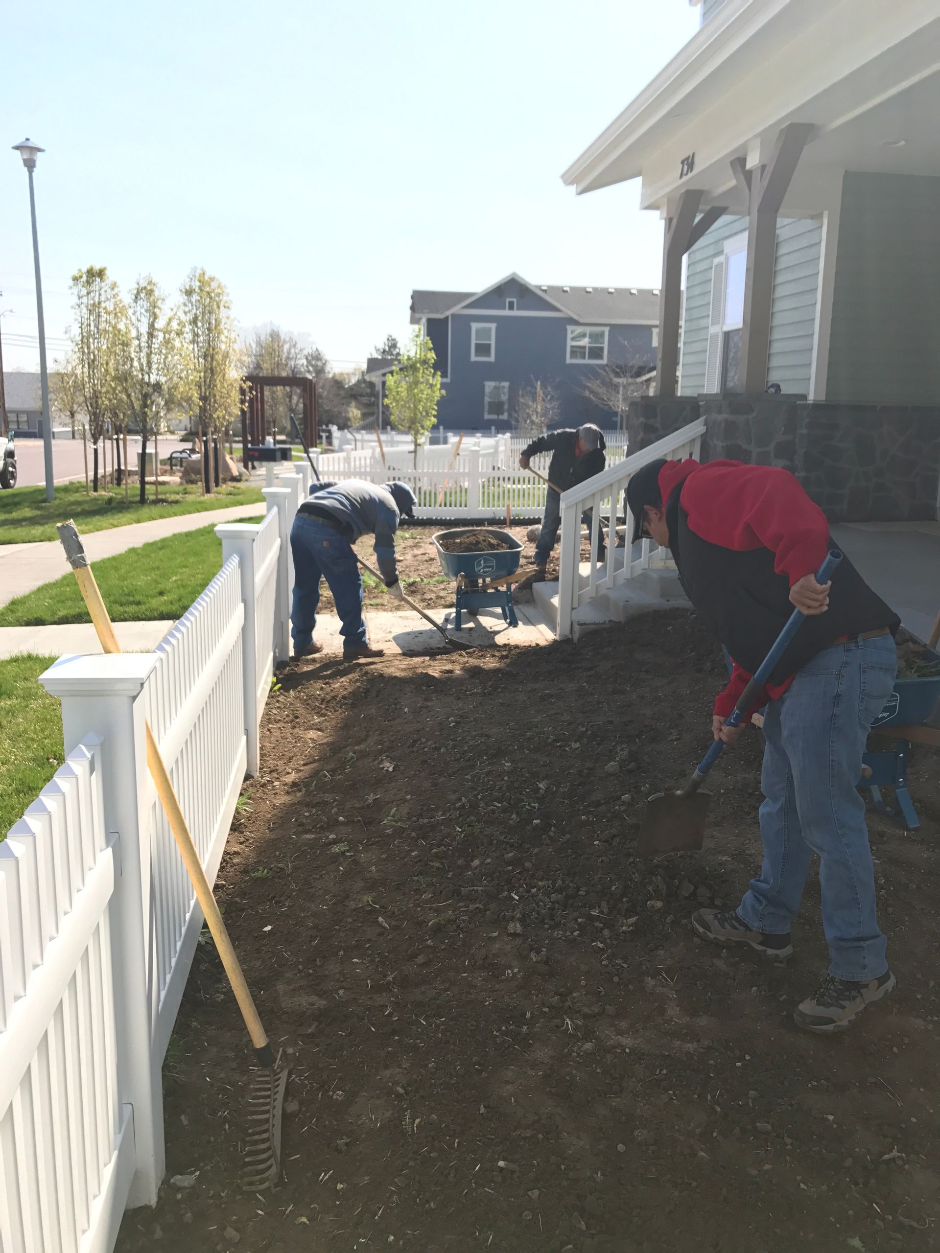 Full landscape remodel with decorative rock, plantings, sprinklers and grass. Lafayette, CO 2019