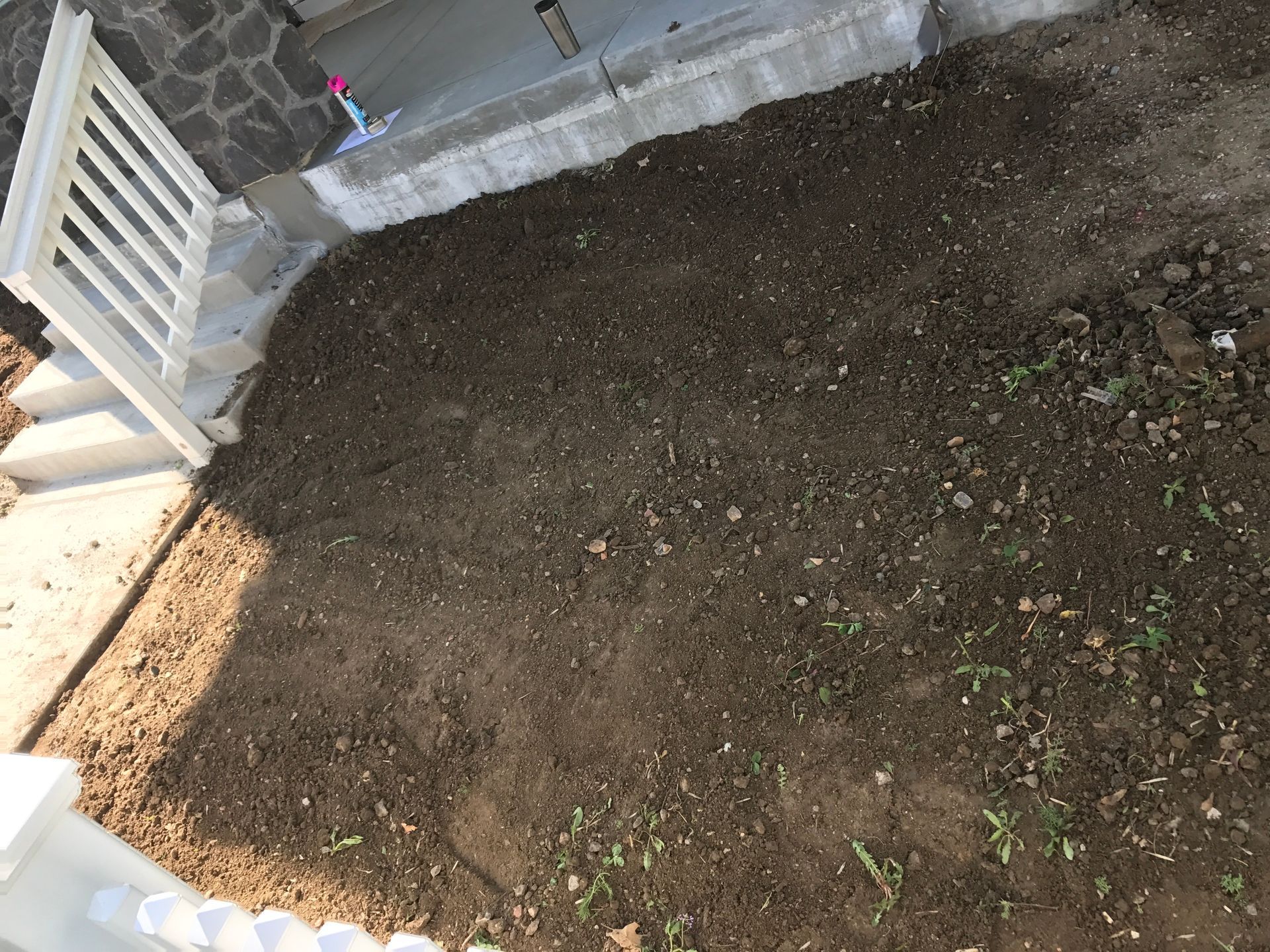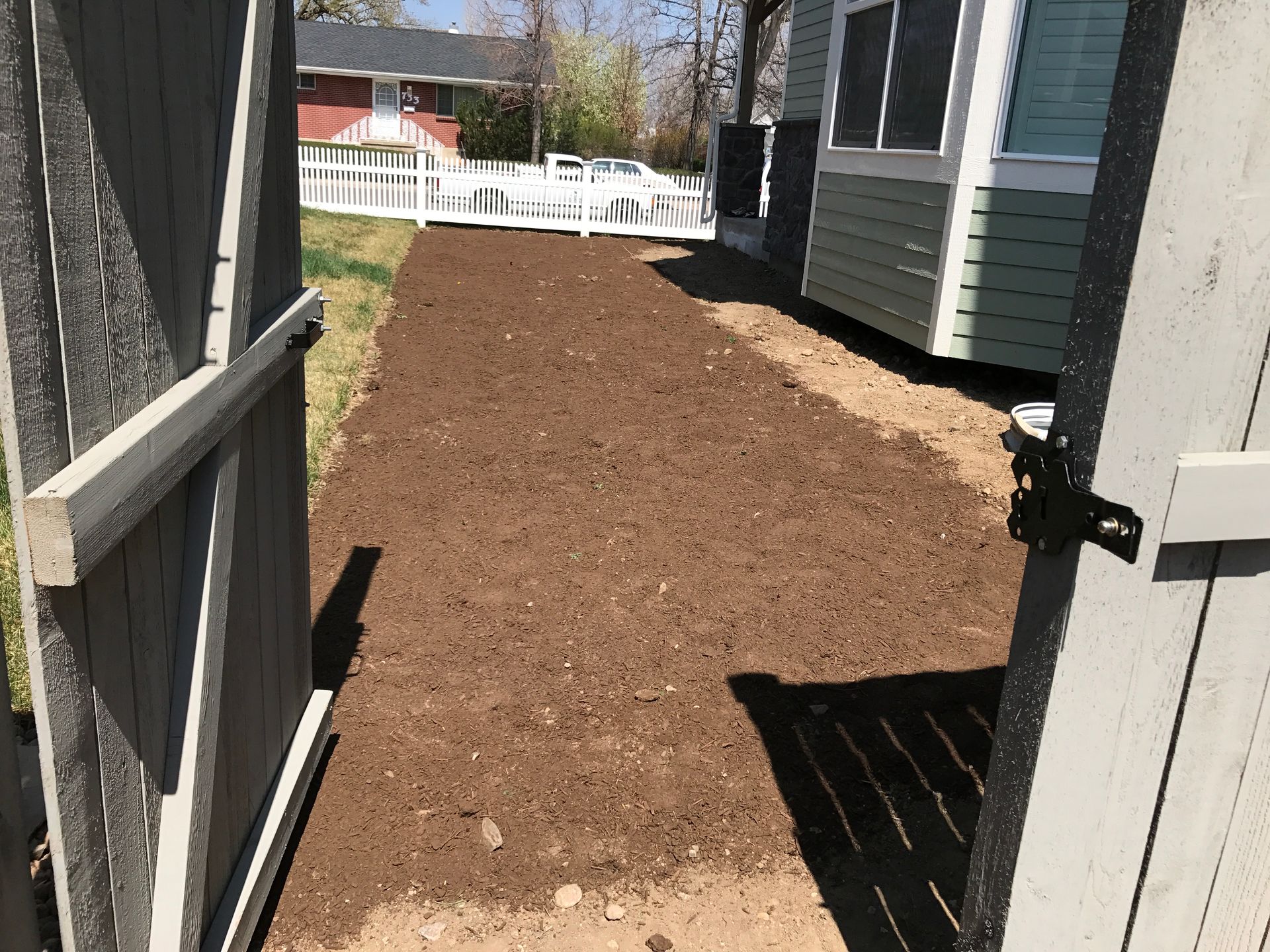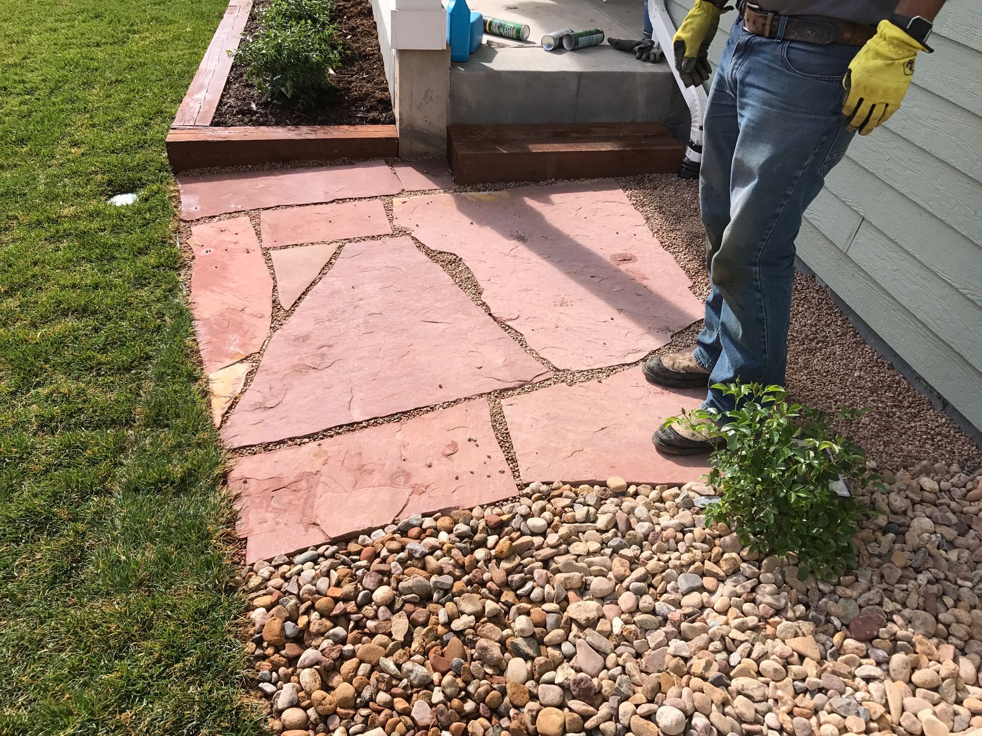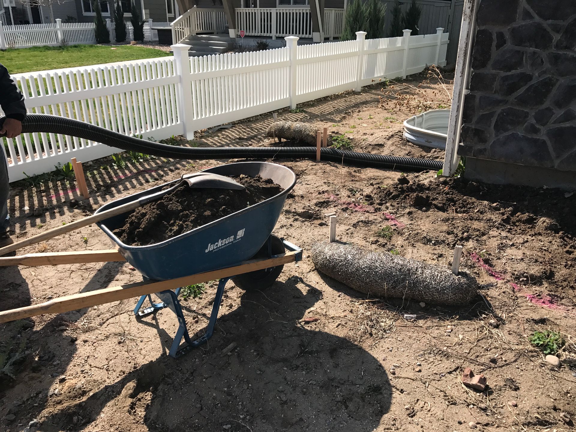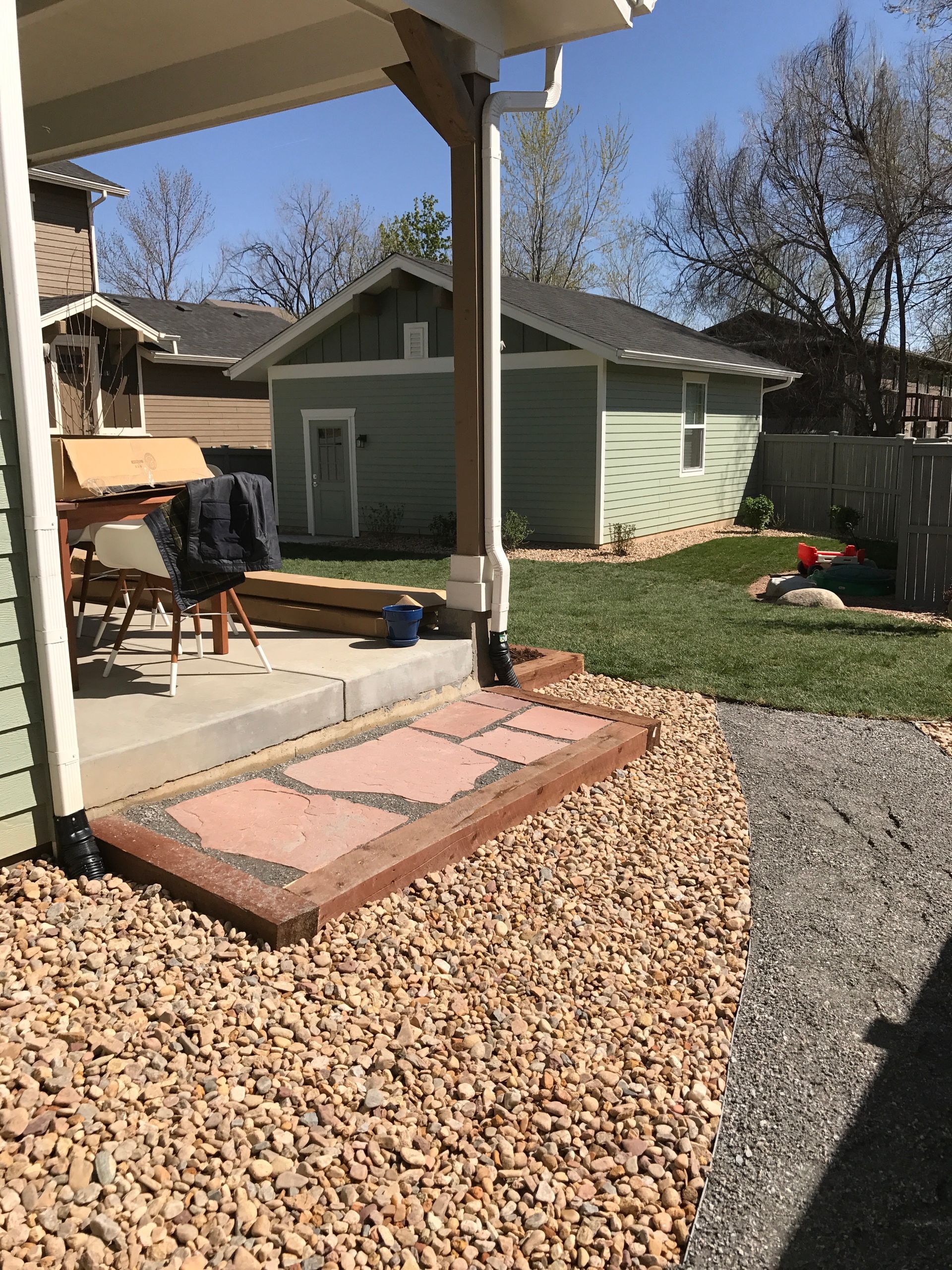 Full landscape remodel with decorative rock, plantings, sprinklers and grass. Lafayette, CO 2019