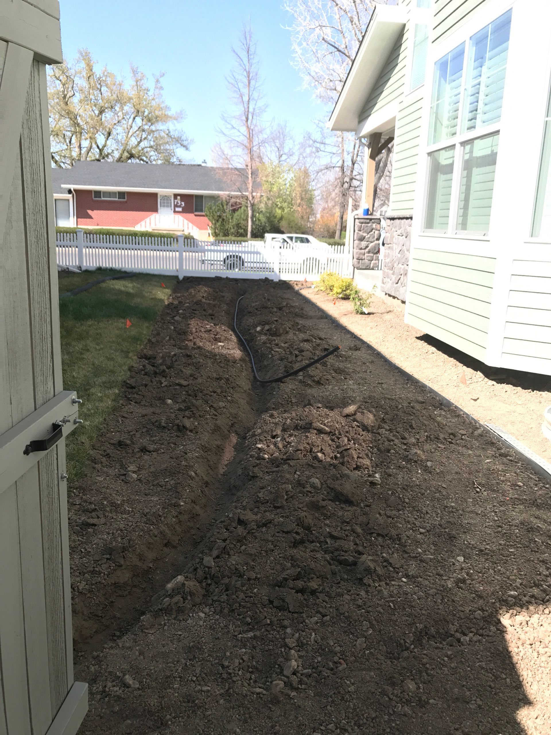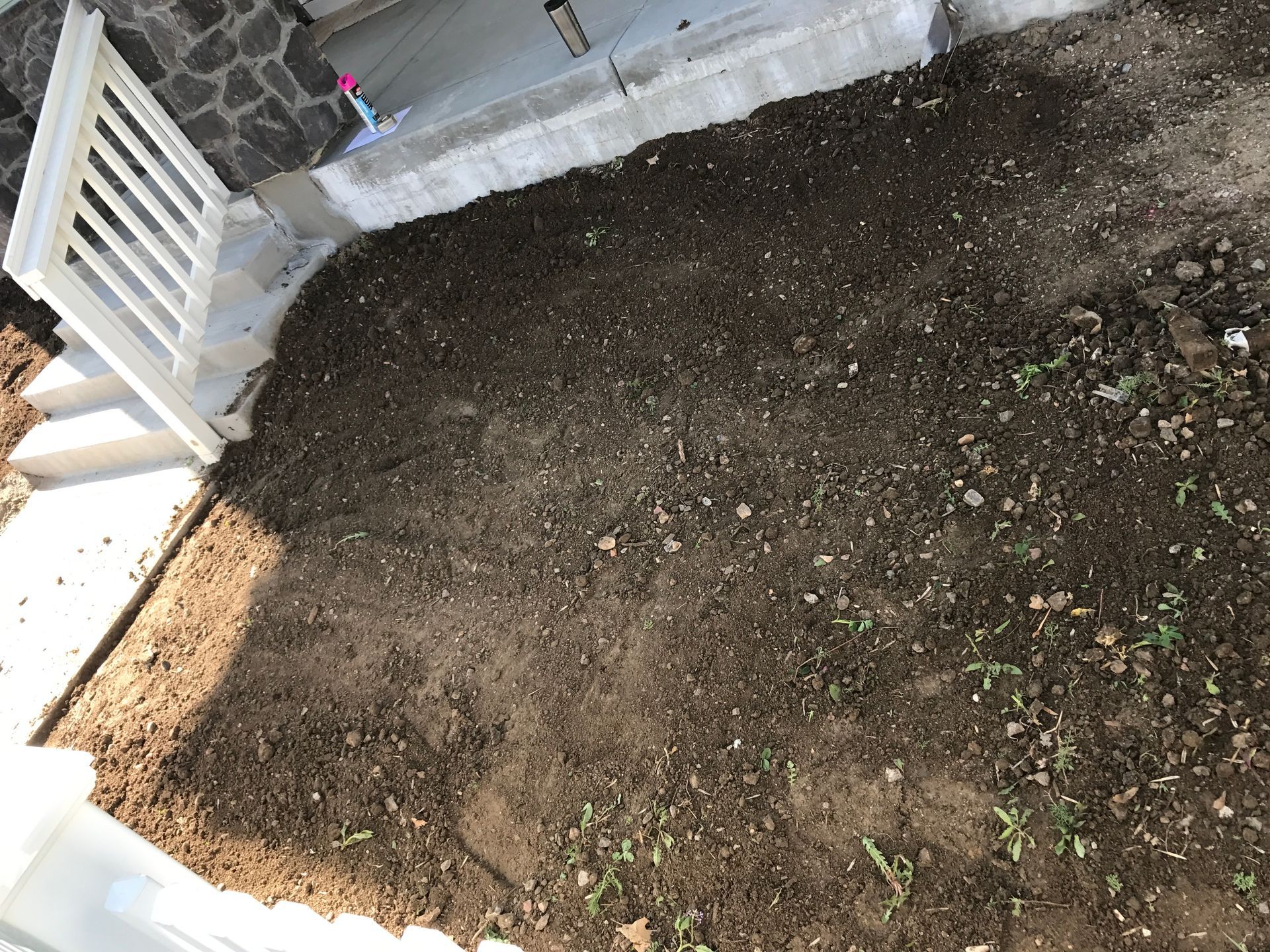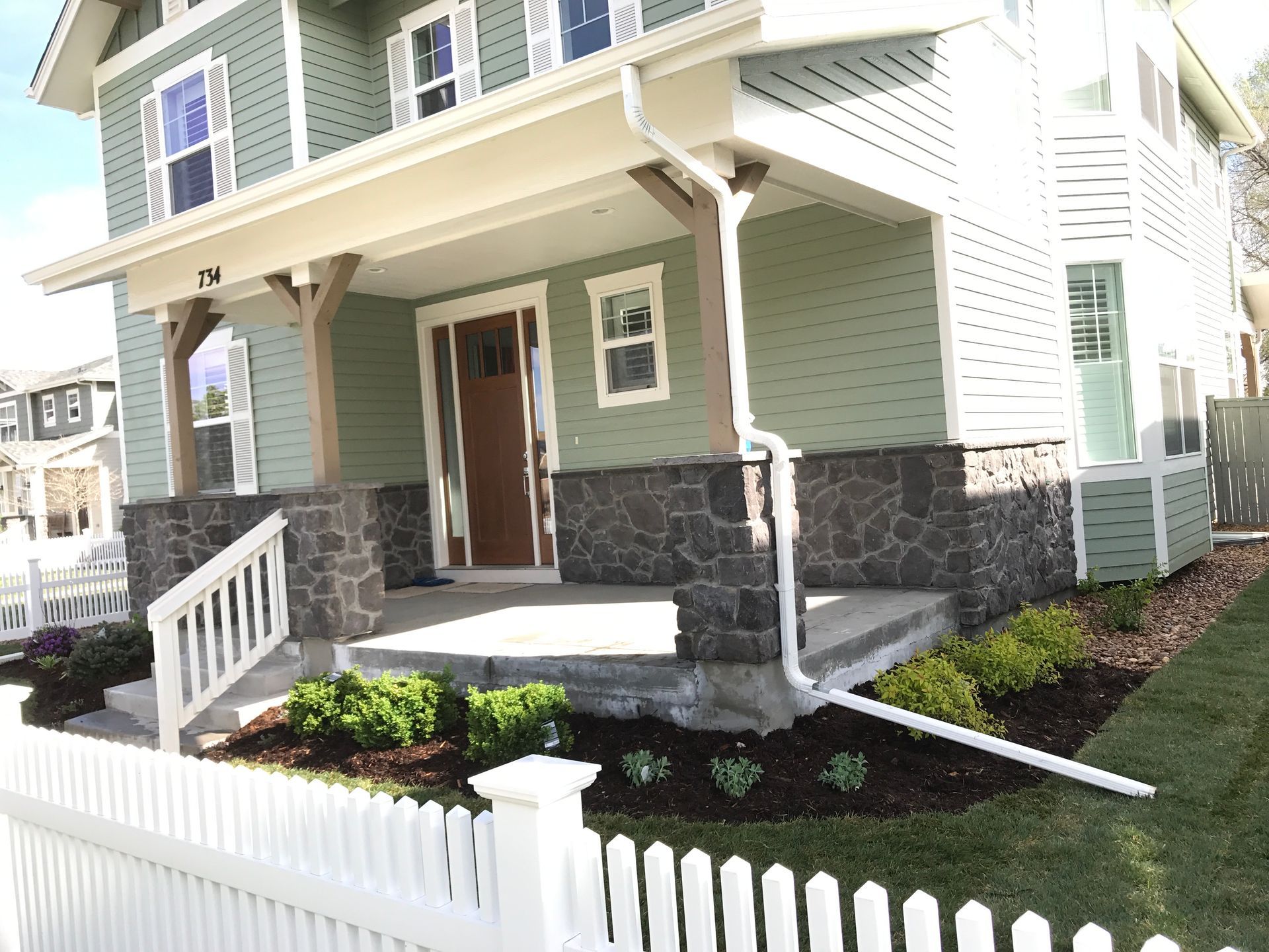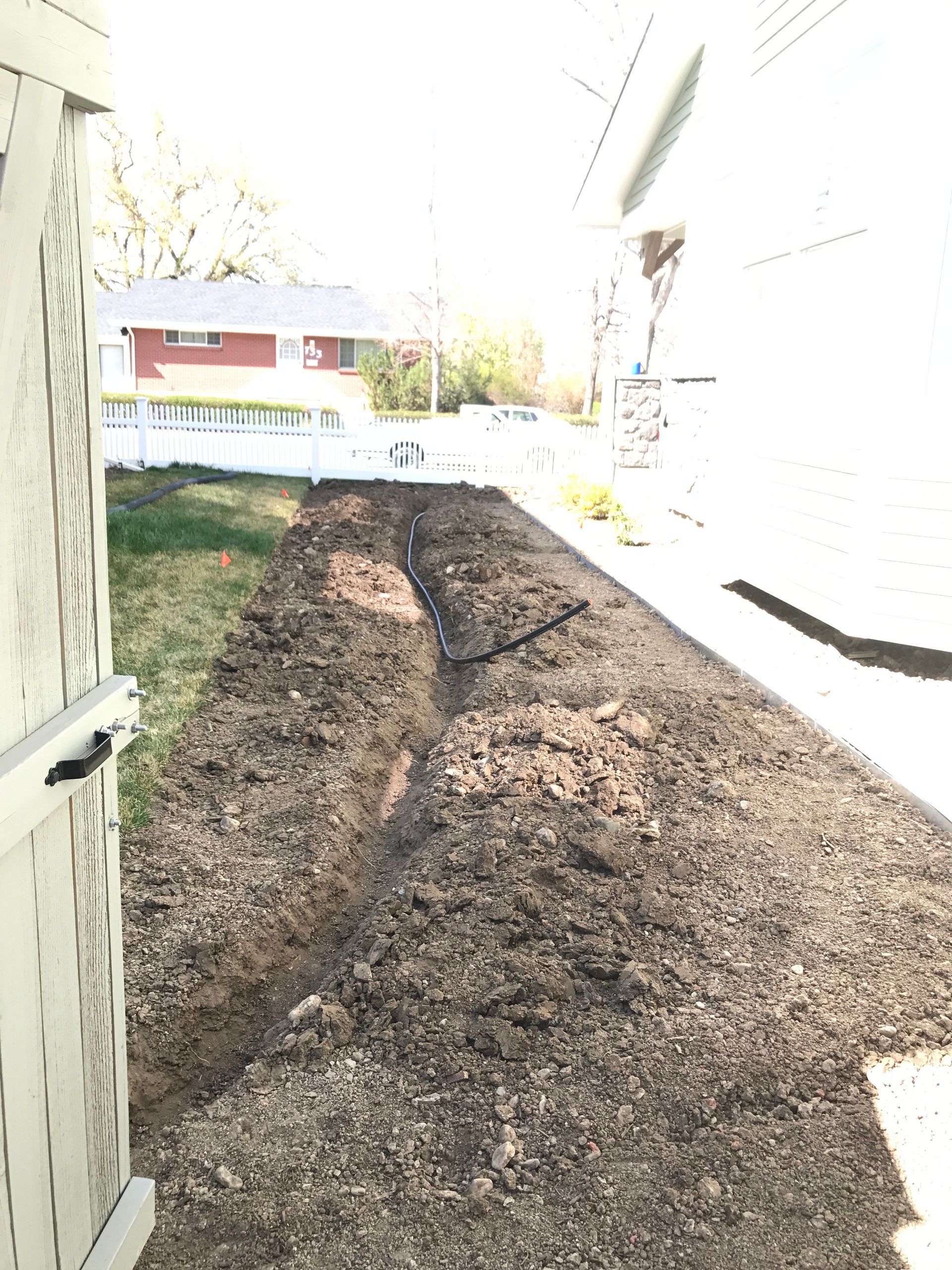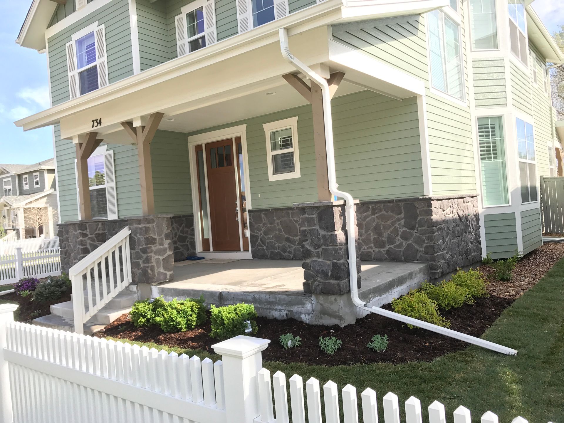 Full landscape remodel with decorative rock, plantings, sprinklers and grass. Lafayette, CO 2019