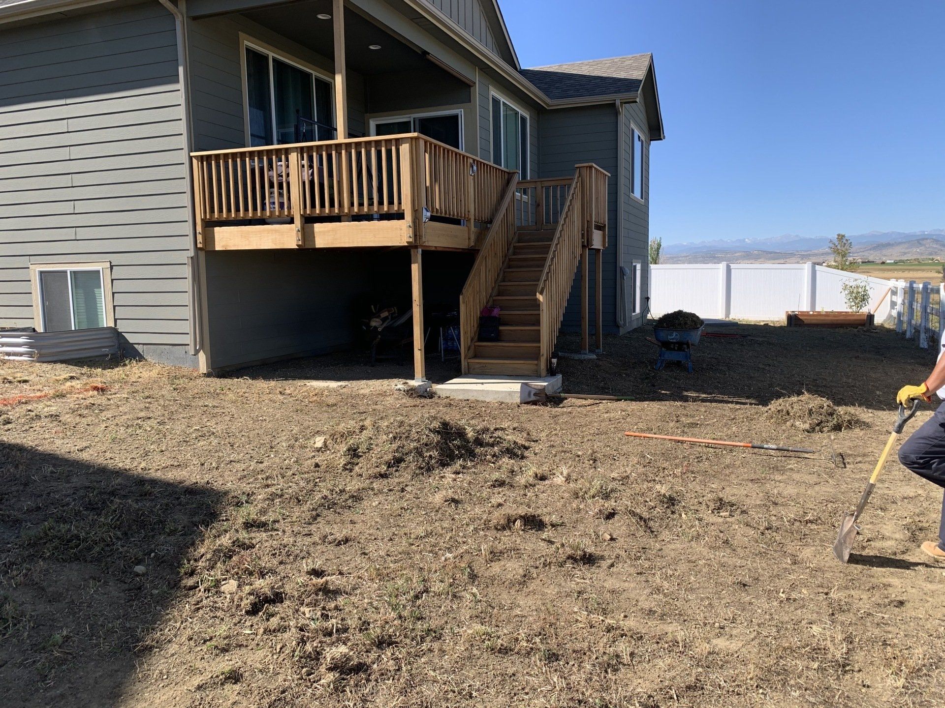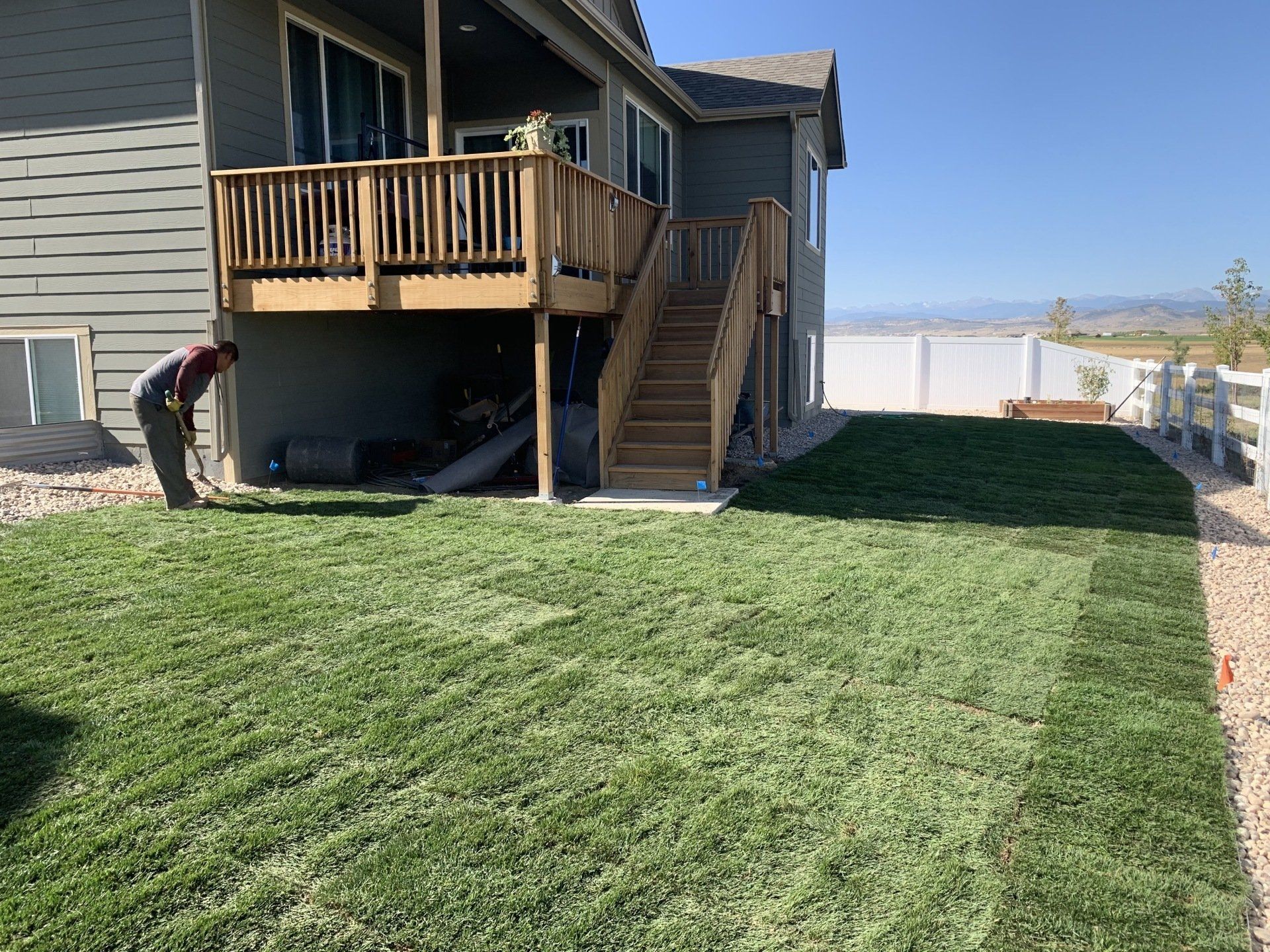 Newly built home with Kentucky bluegrass, irrigation and rock added in backyard.