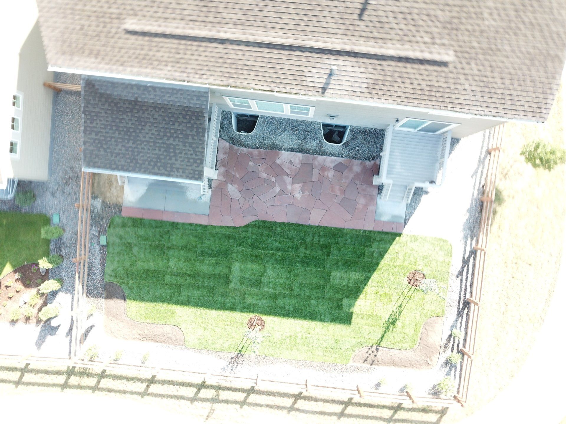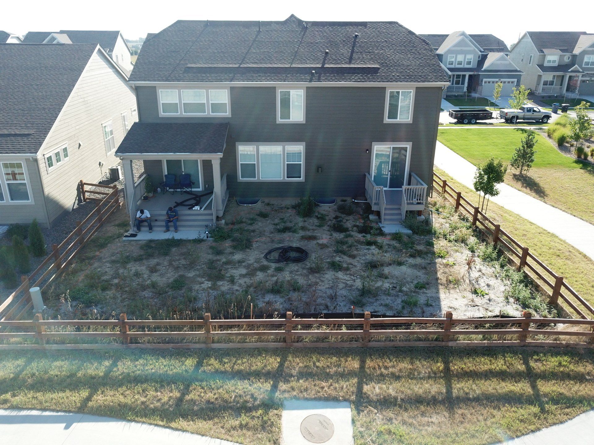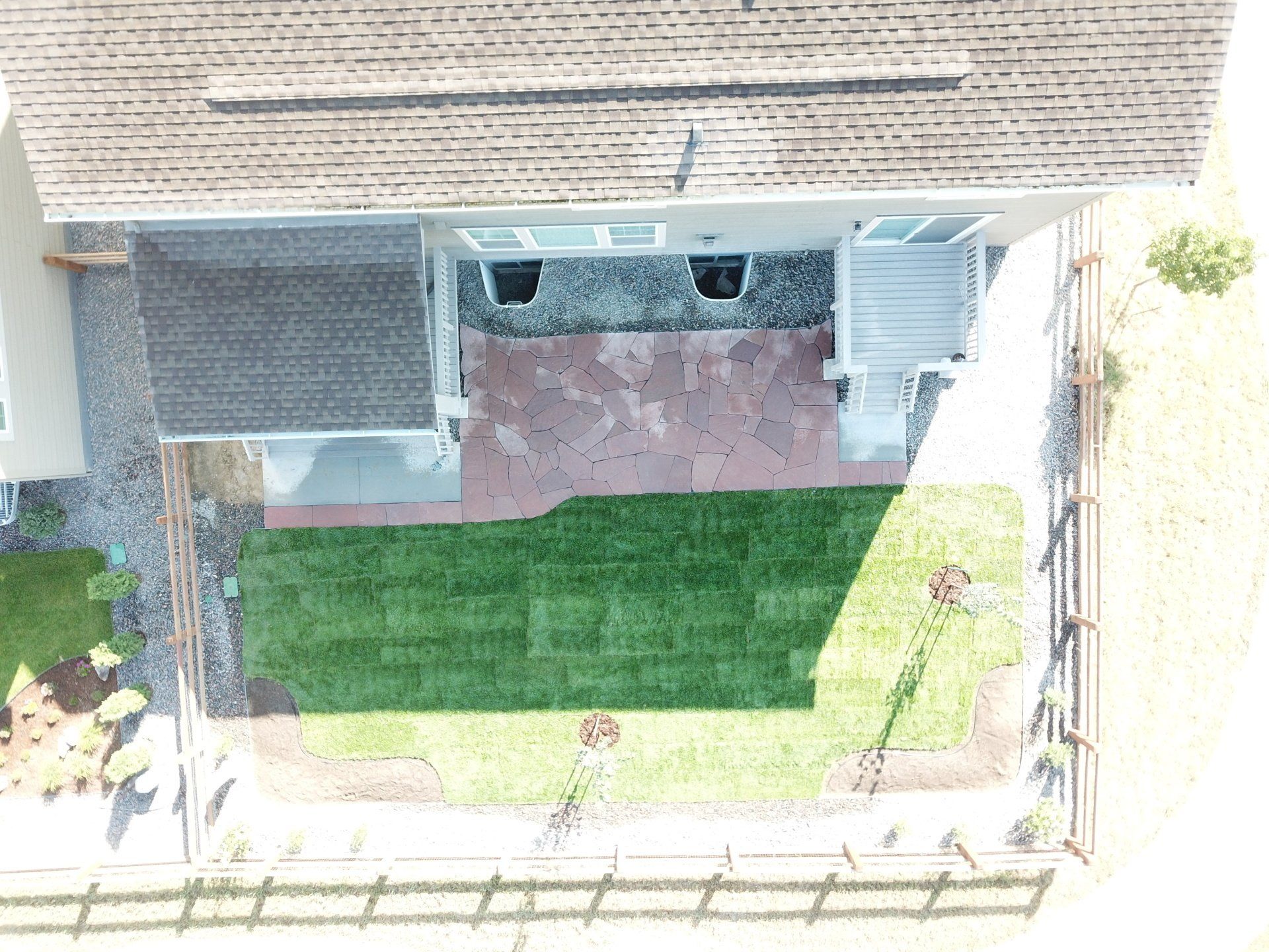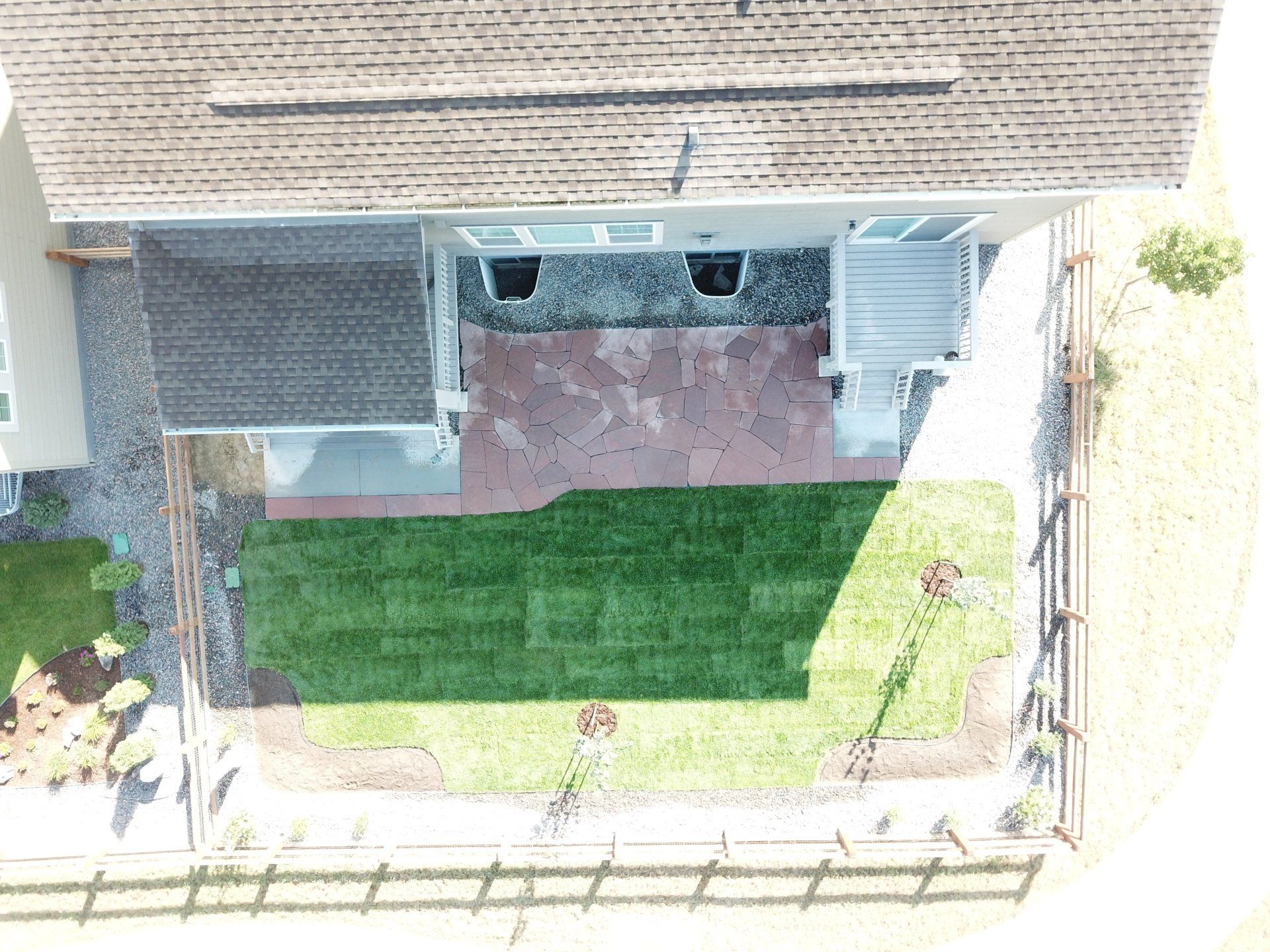 Newly built home with patio, grass, sprinklers, and rock added. From nothing to something.