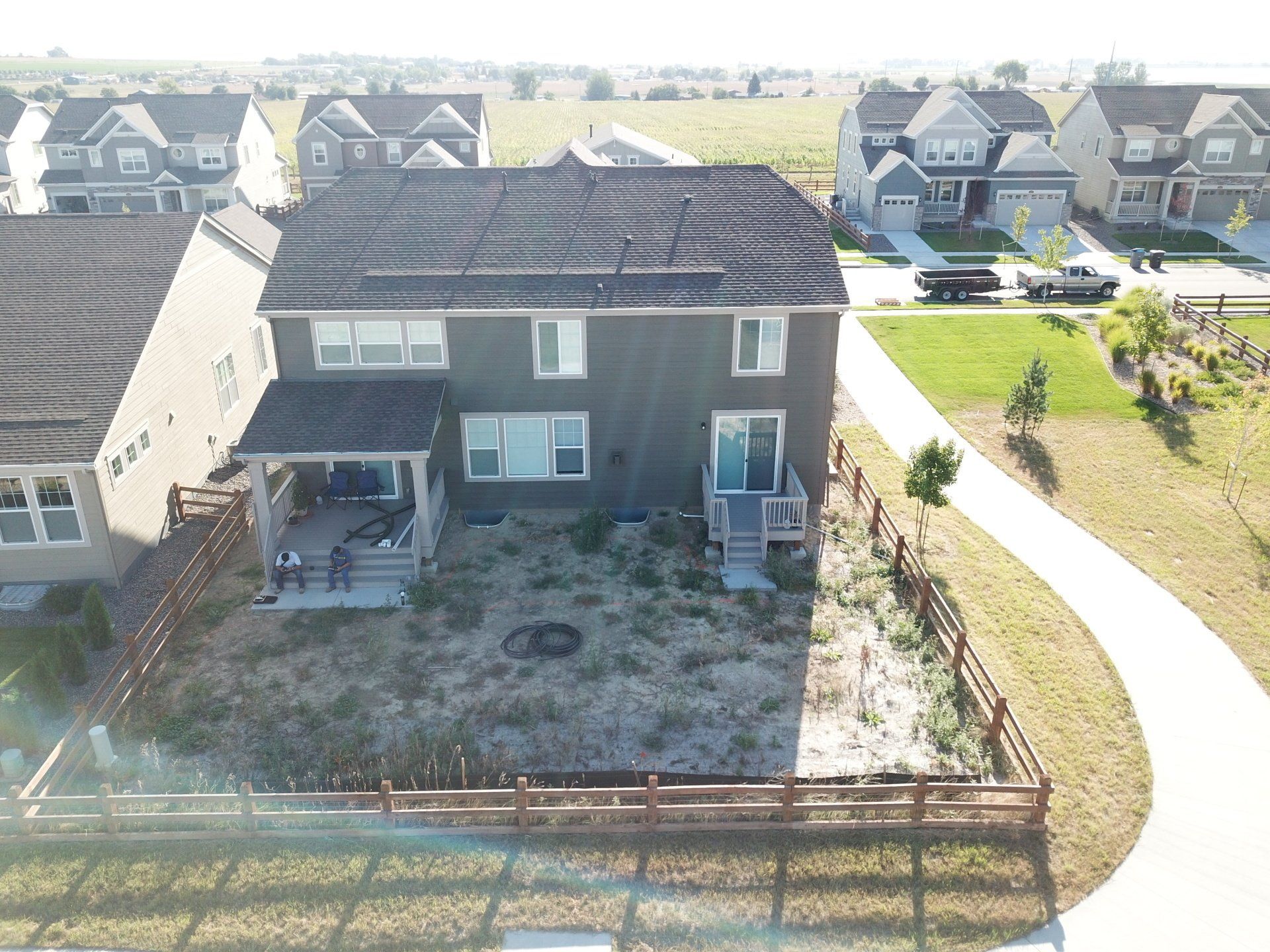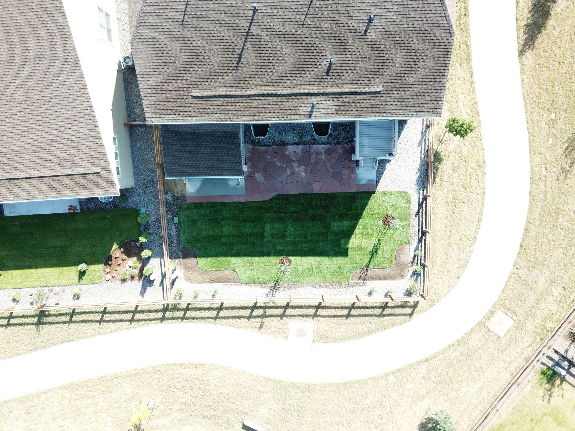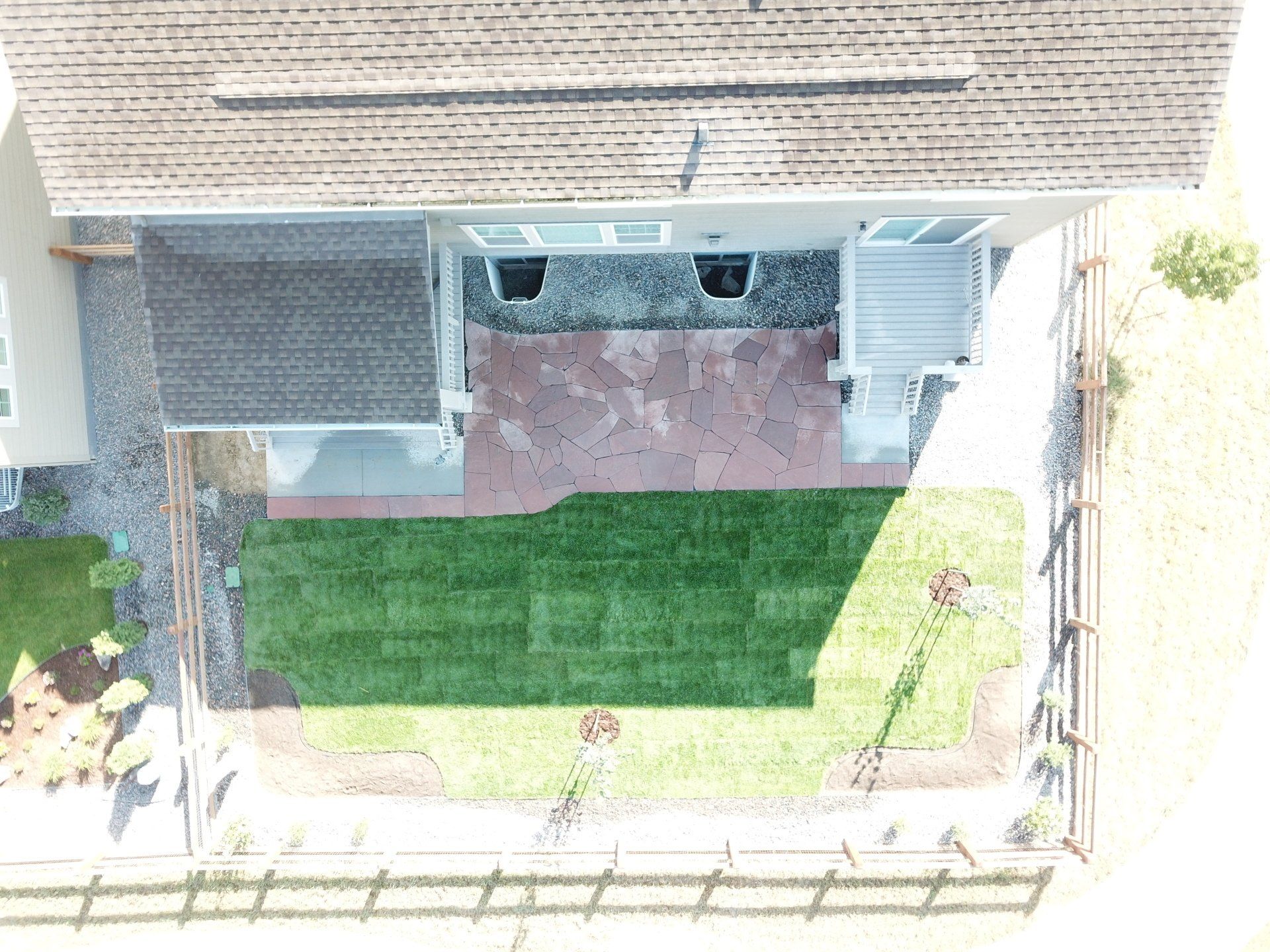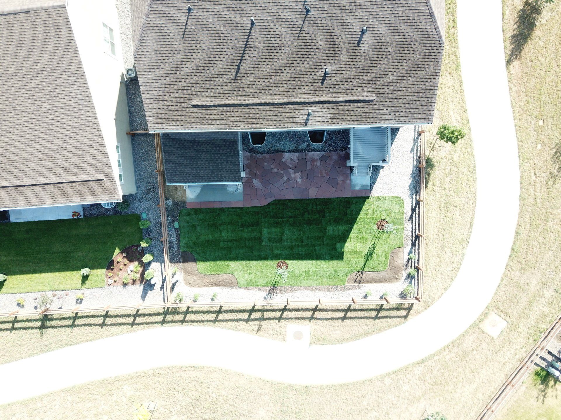 Newly built home with patio, grass, sprinklers, and rock added. From nothing to something.