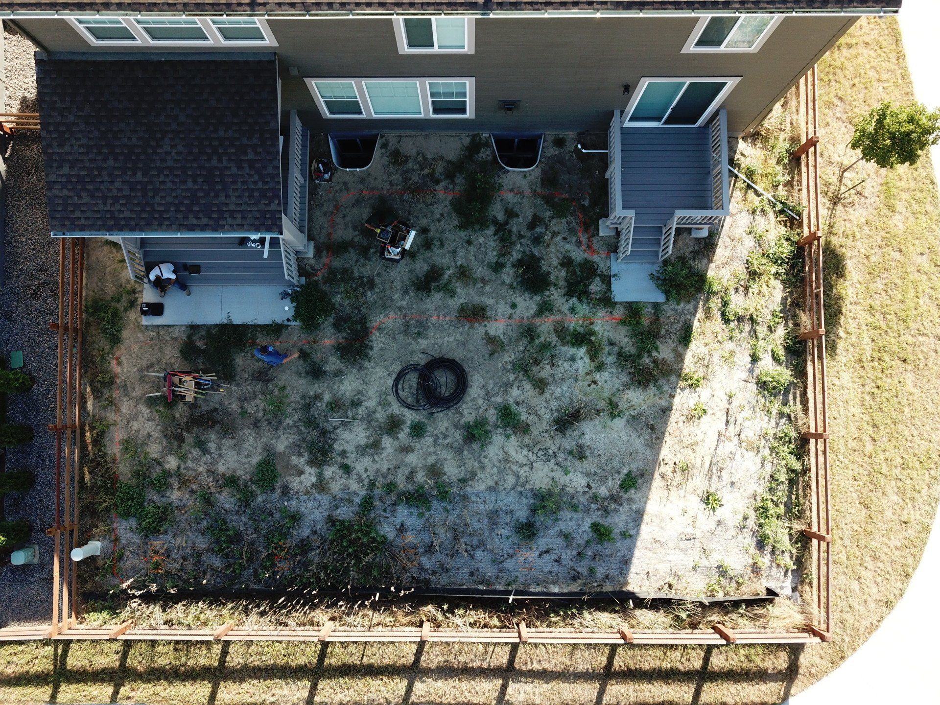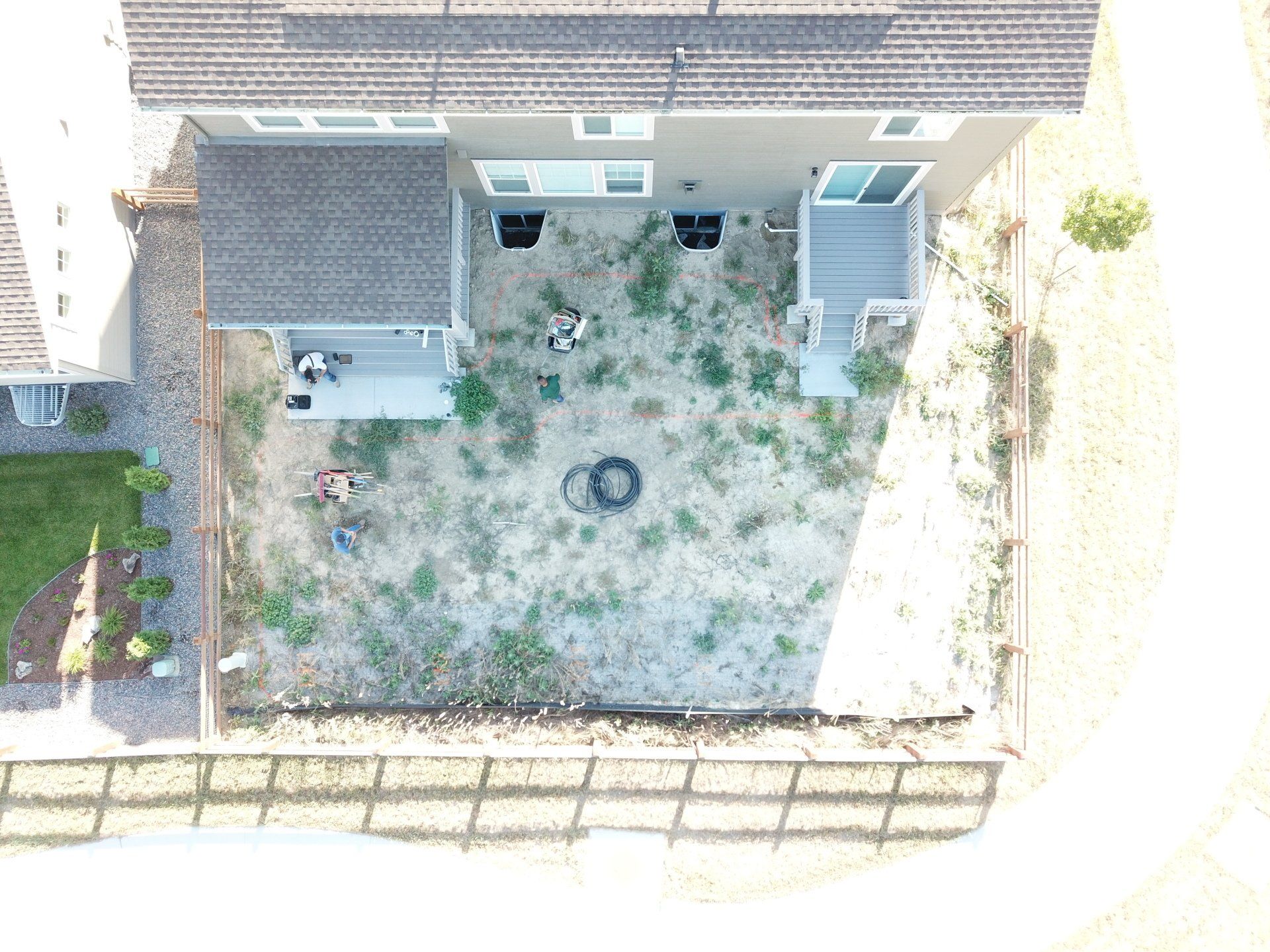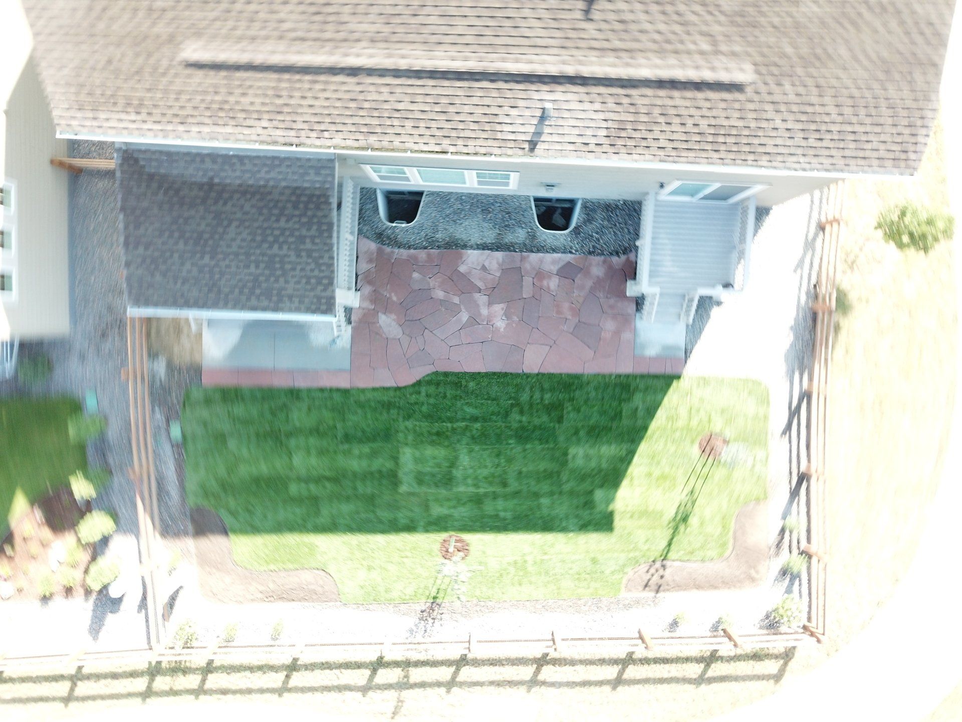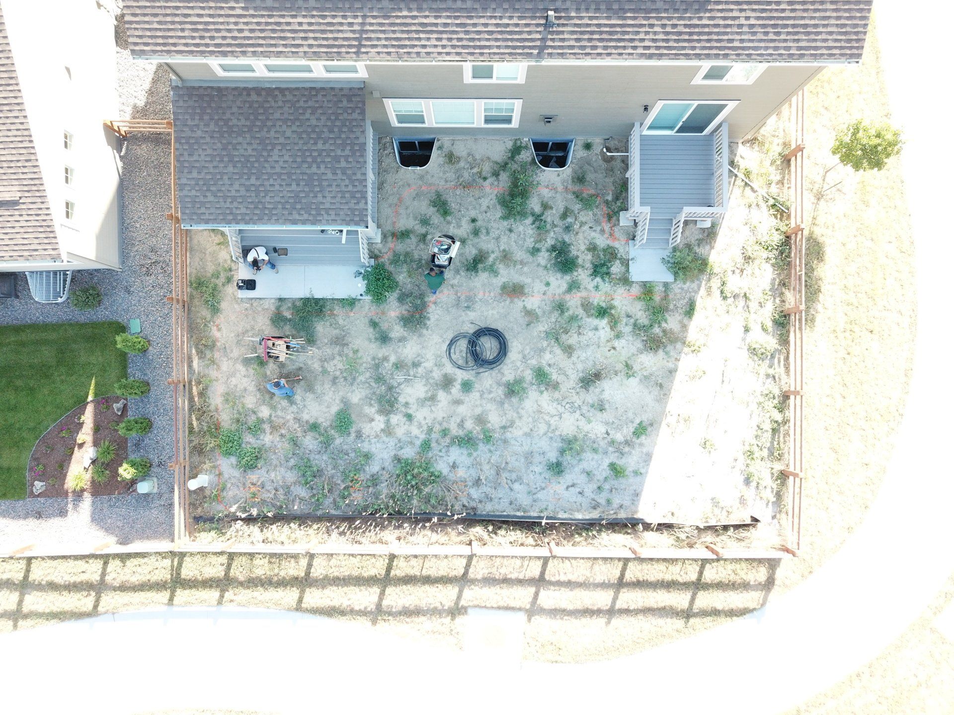 Newly built home with patio, grass, sprinklers, and rock added. From nothing to something.