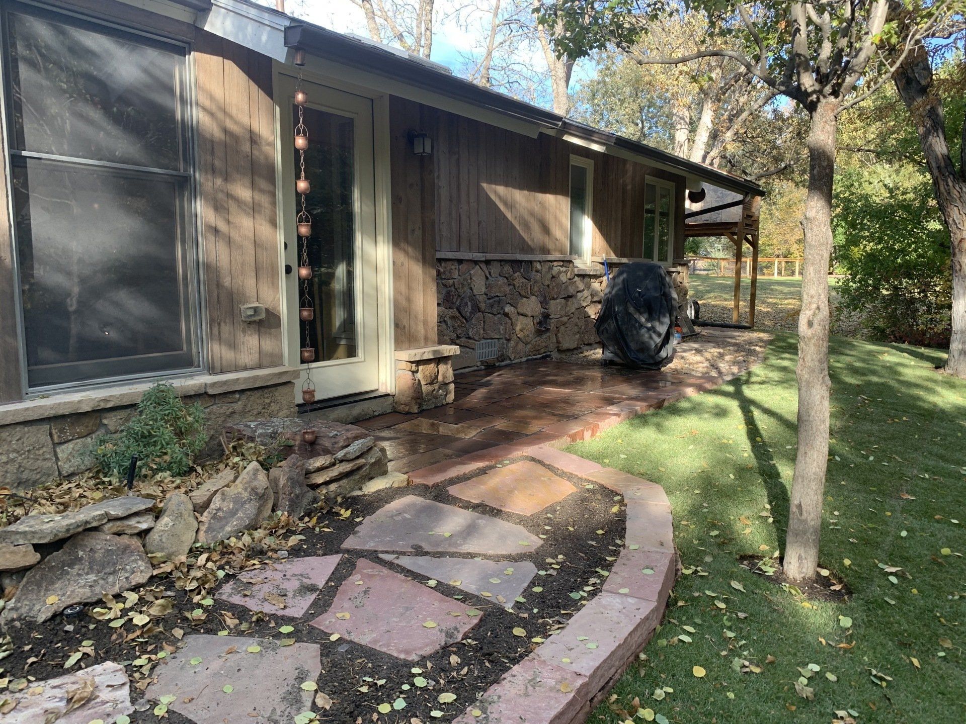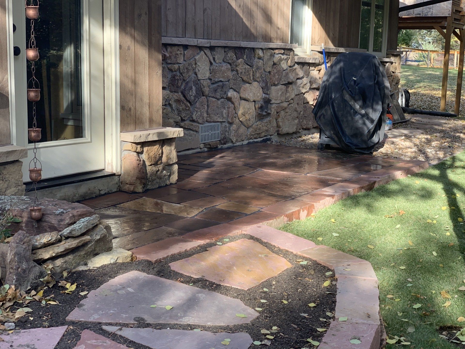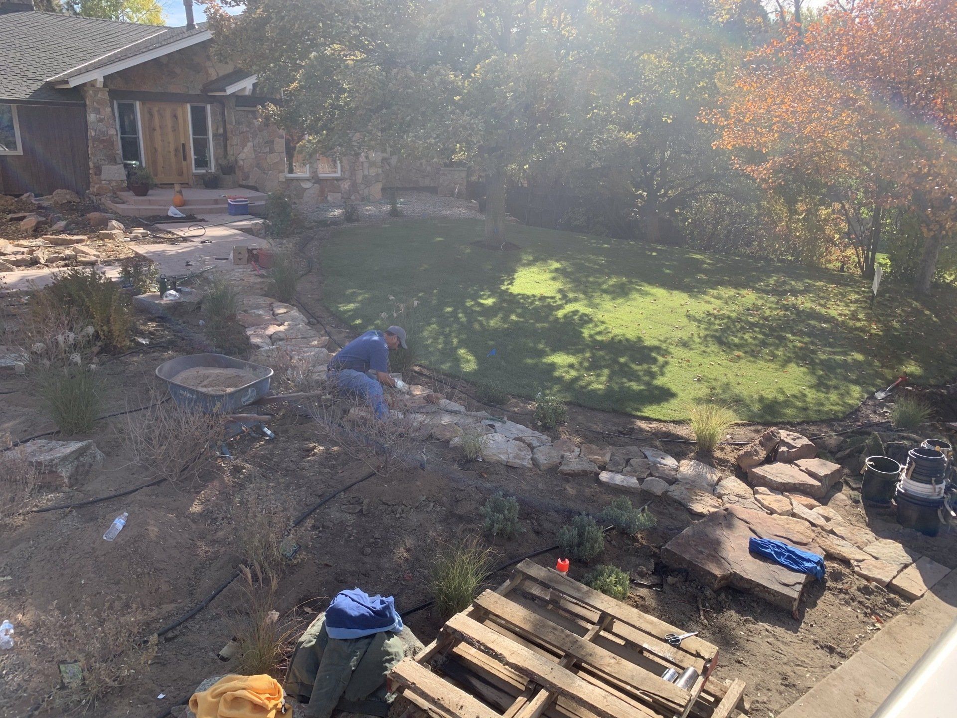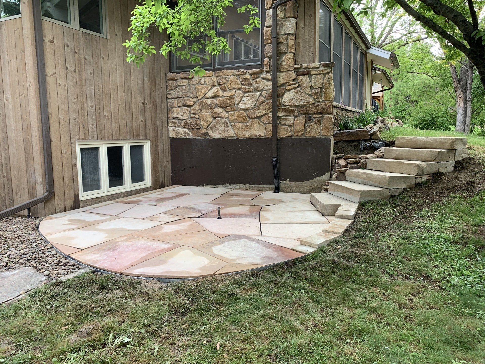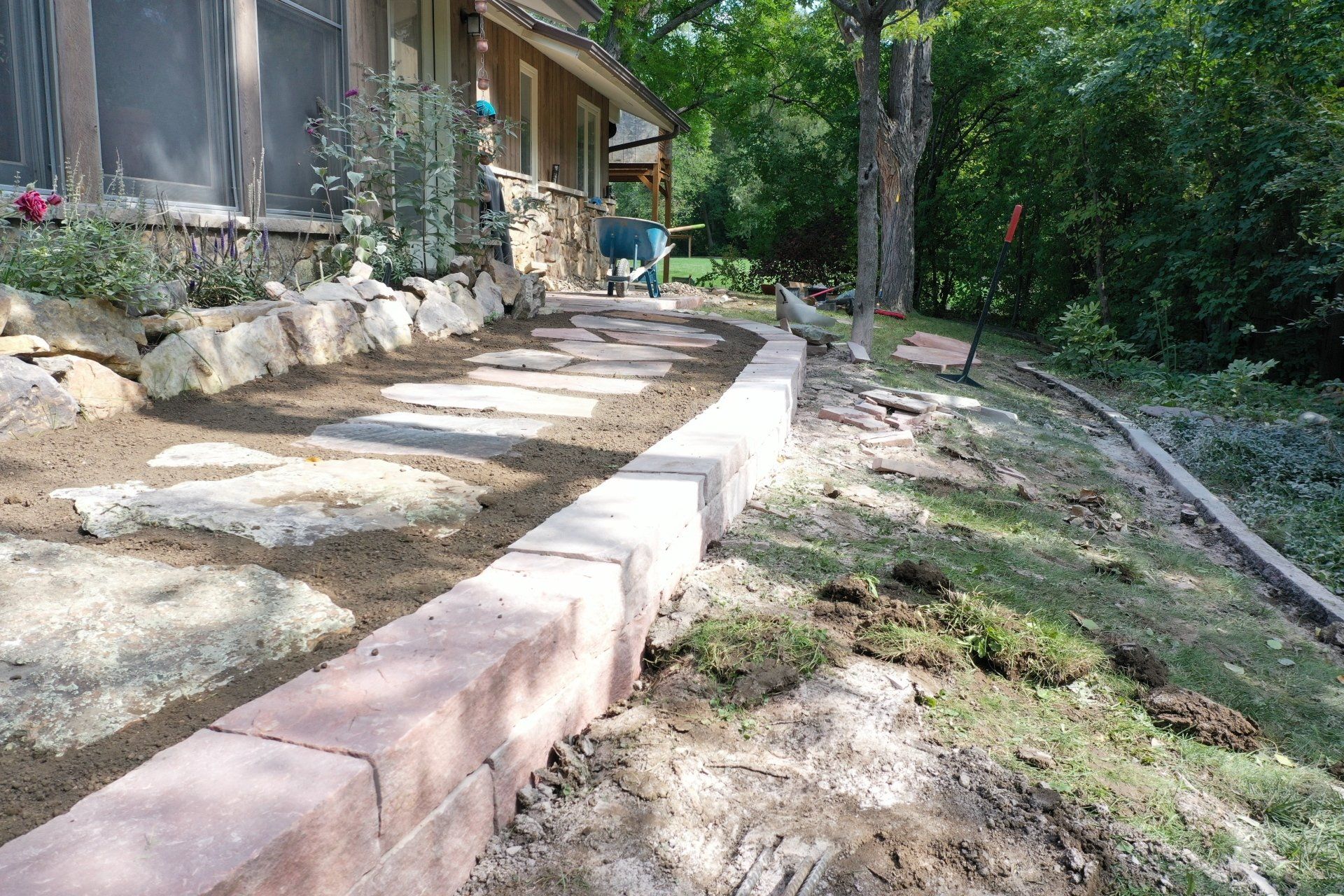 Longly anticipated changes to front and backyard. One of our biggest projects with changes in everything imaginable. Flagstone patio,