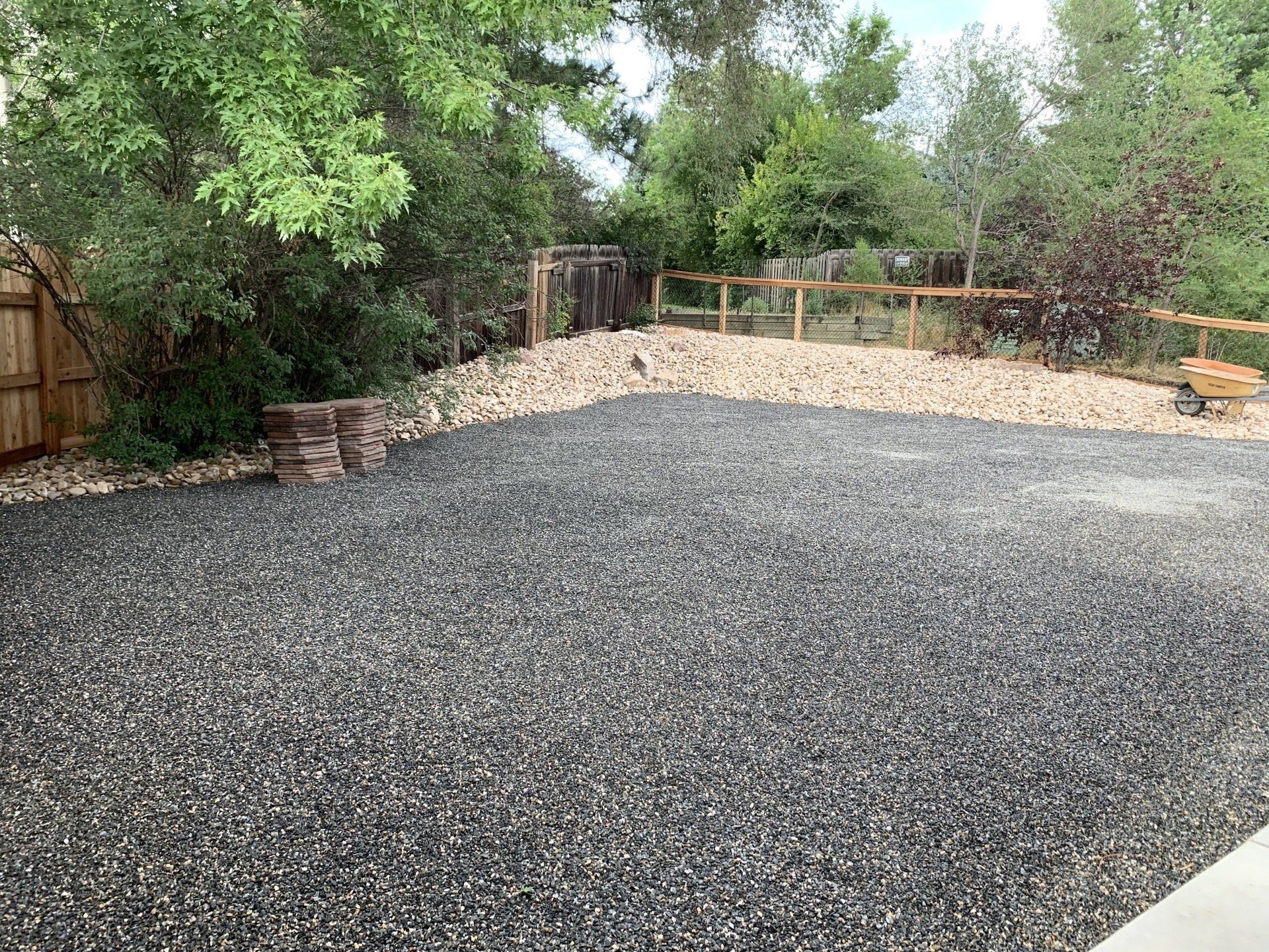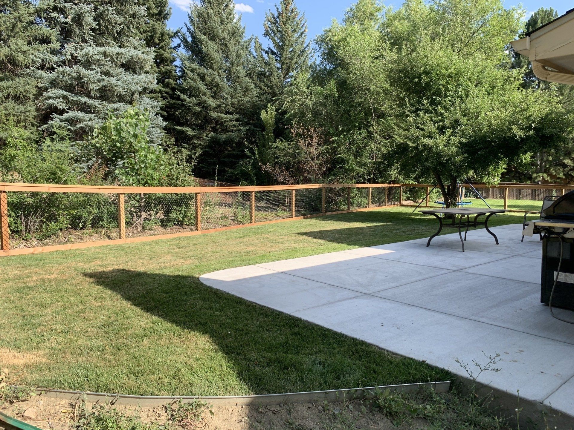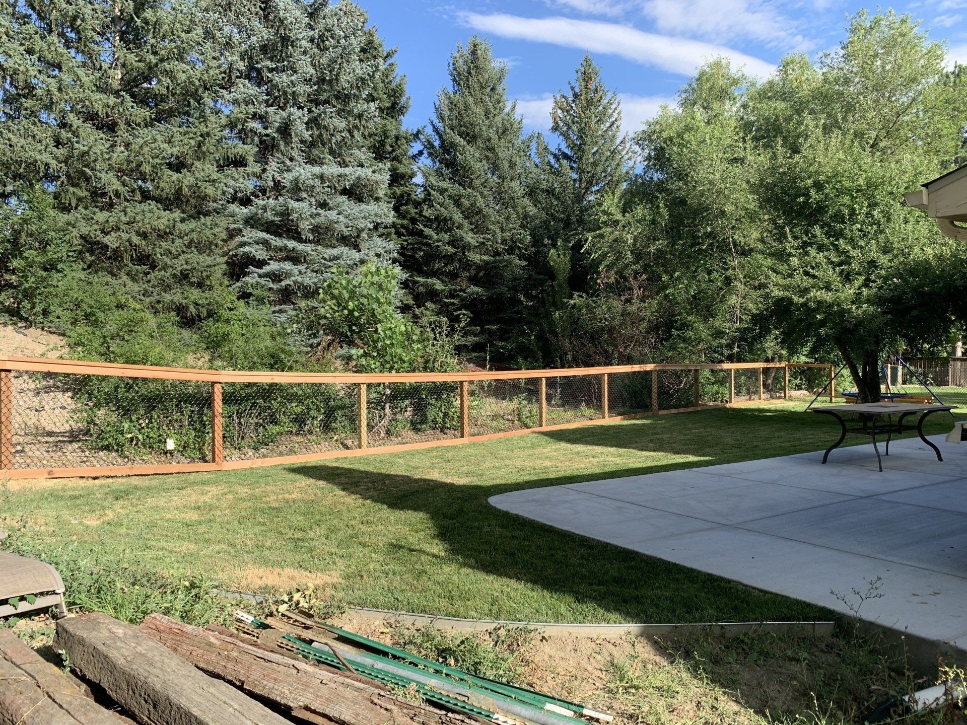 Black vinyl chain link fence to keep the small pets in with grading for shed area. All fences are reinforced with concrete and built with craftsmanship to ensure they are built to last years.